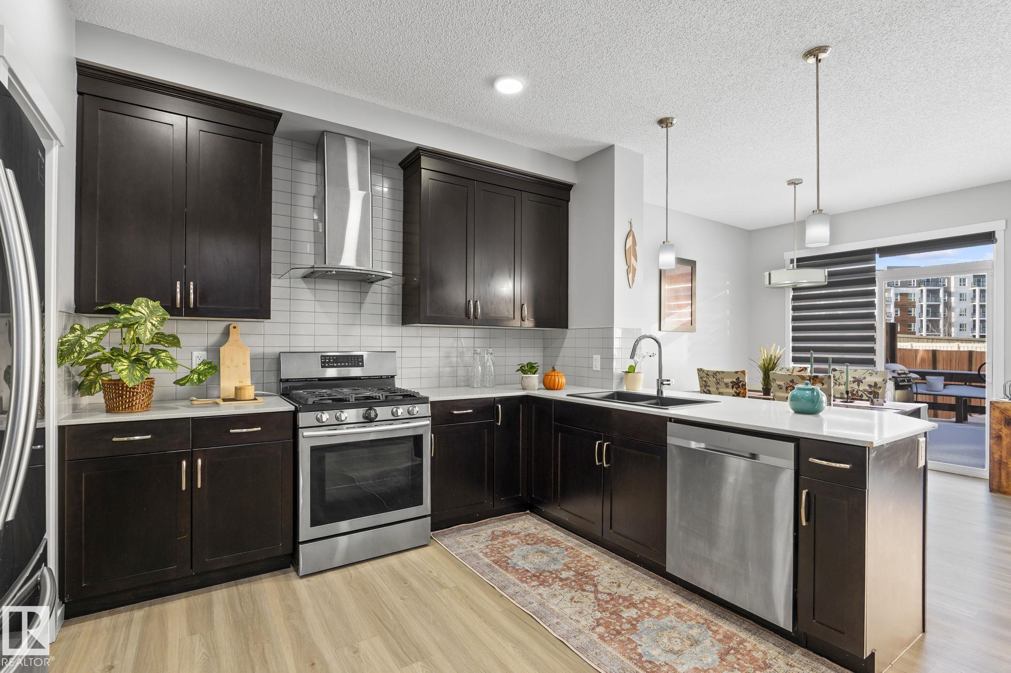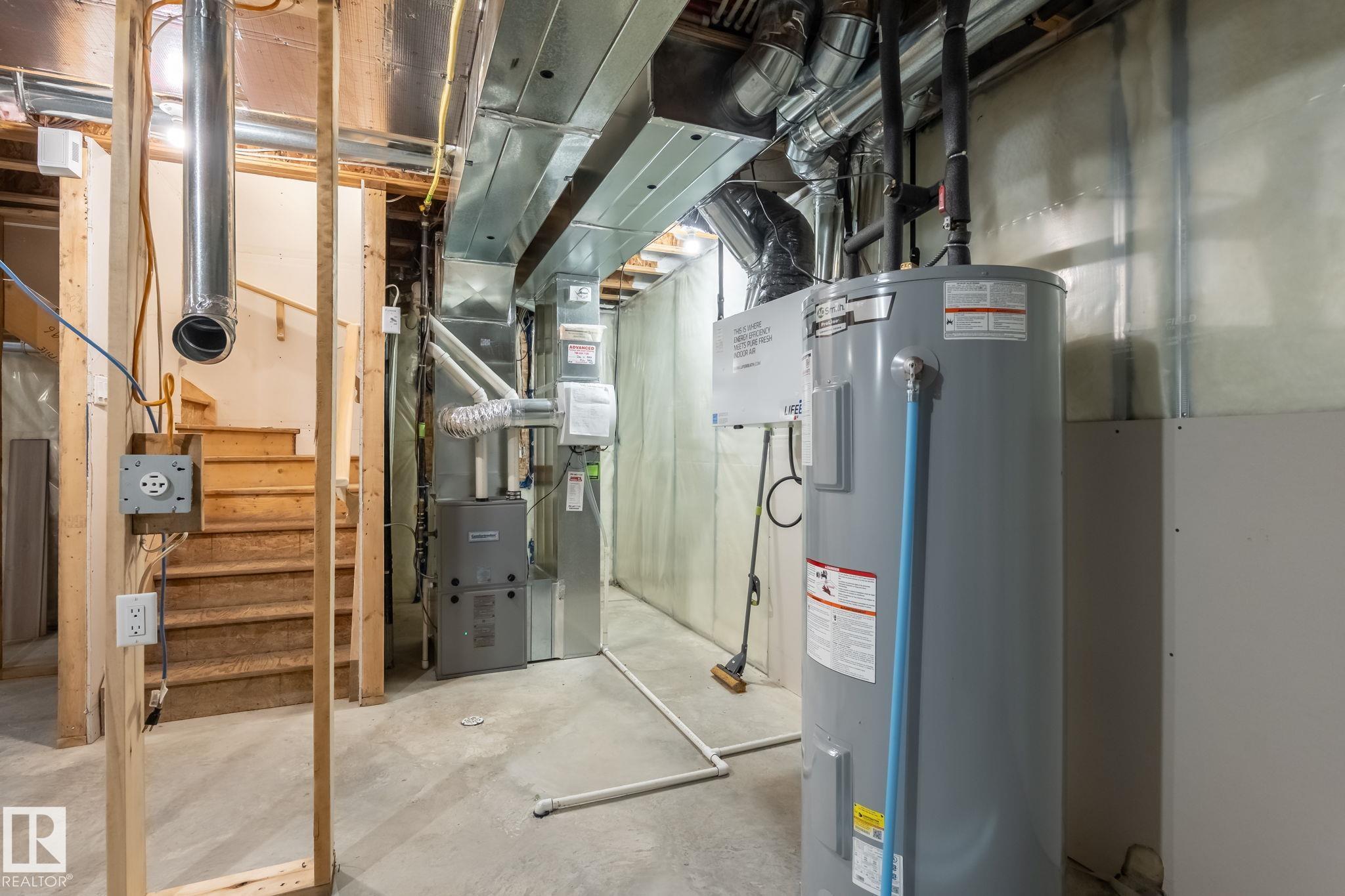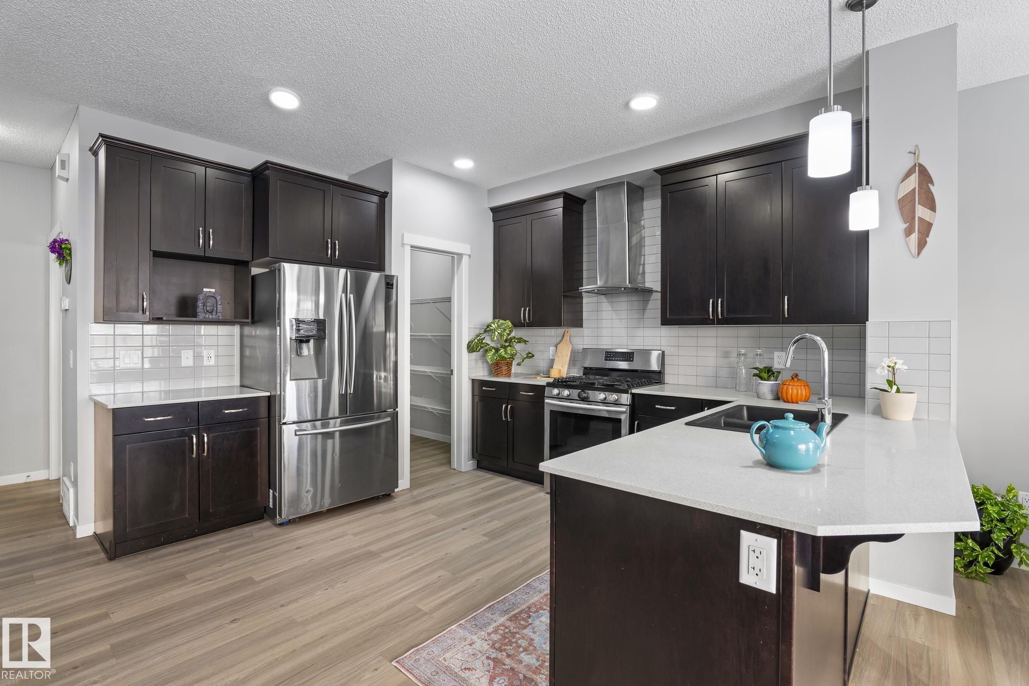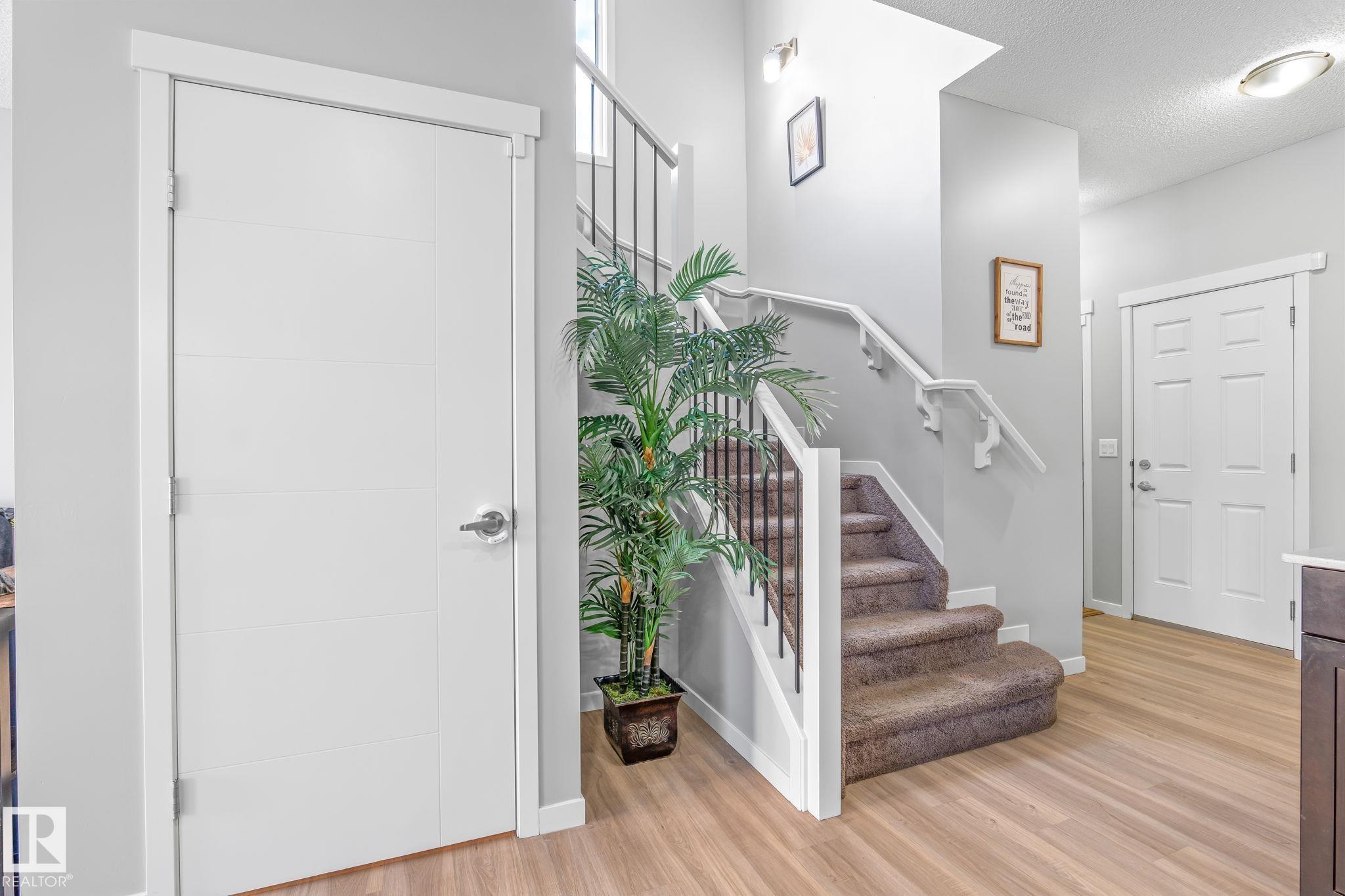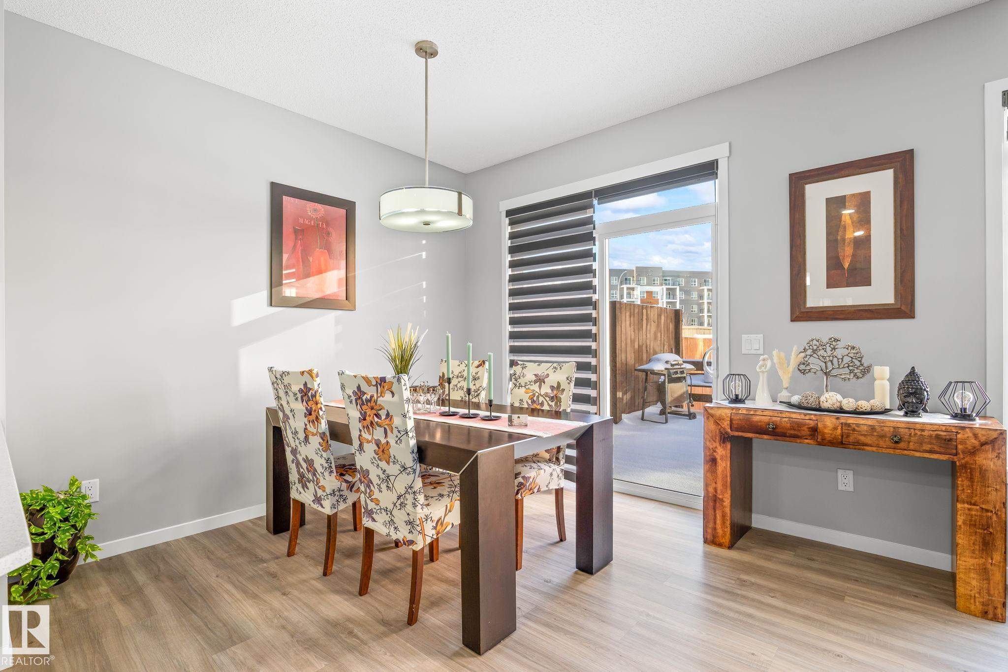 Welcome to Allard ? one of the most prestigious communities in Southwest Edmonton, where convenience meets comfort. This beautifully maintained half-duplex offers a DOUBLE GHARAGE, a separate SIDE ENTRENCE to the basement, and a generous PIE -LOT featuring a premium-finished, oversized deck. Inside, the upgraded kitchen complements the open-concept layout, seamlessly connecting the living and dining areas with views of the expansive backyard. The upper level includes three spacious bedrooms, including a master suite with its own ensuite, along with a versatile bonus room perfect for a home office or loft. The unfinished basement comes with a separate side entrance, providing an excellent opportunity to develop a future legal suite. Located close to schools and just 15 minutes from the airport, this home offers both comfort and convenience. A must-see property!