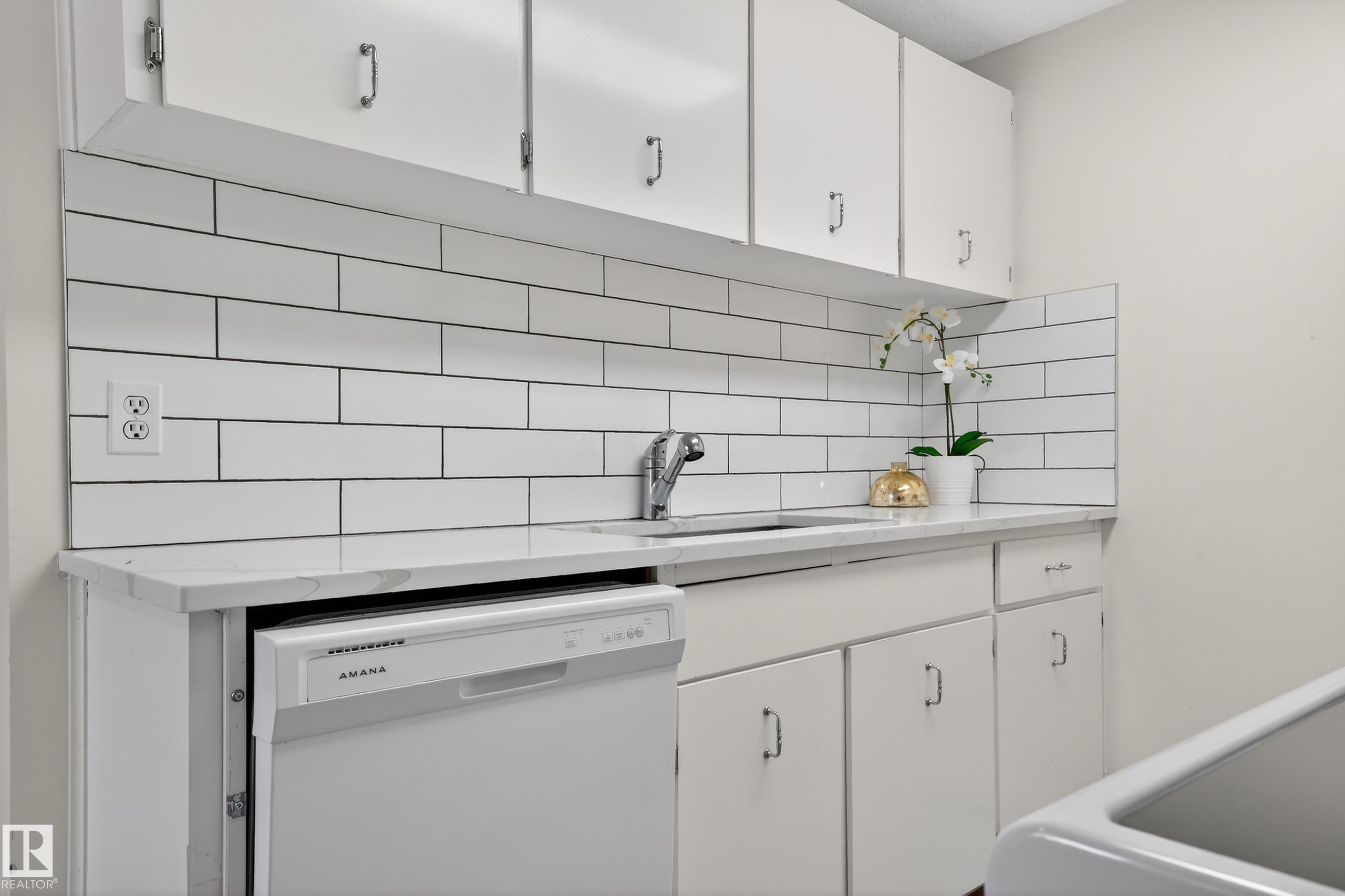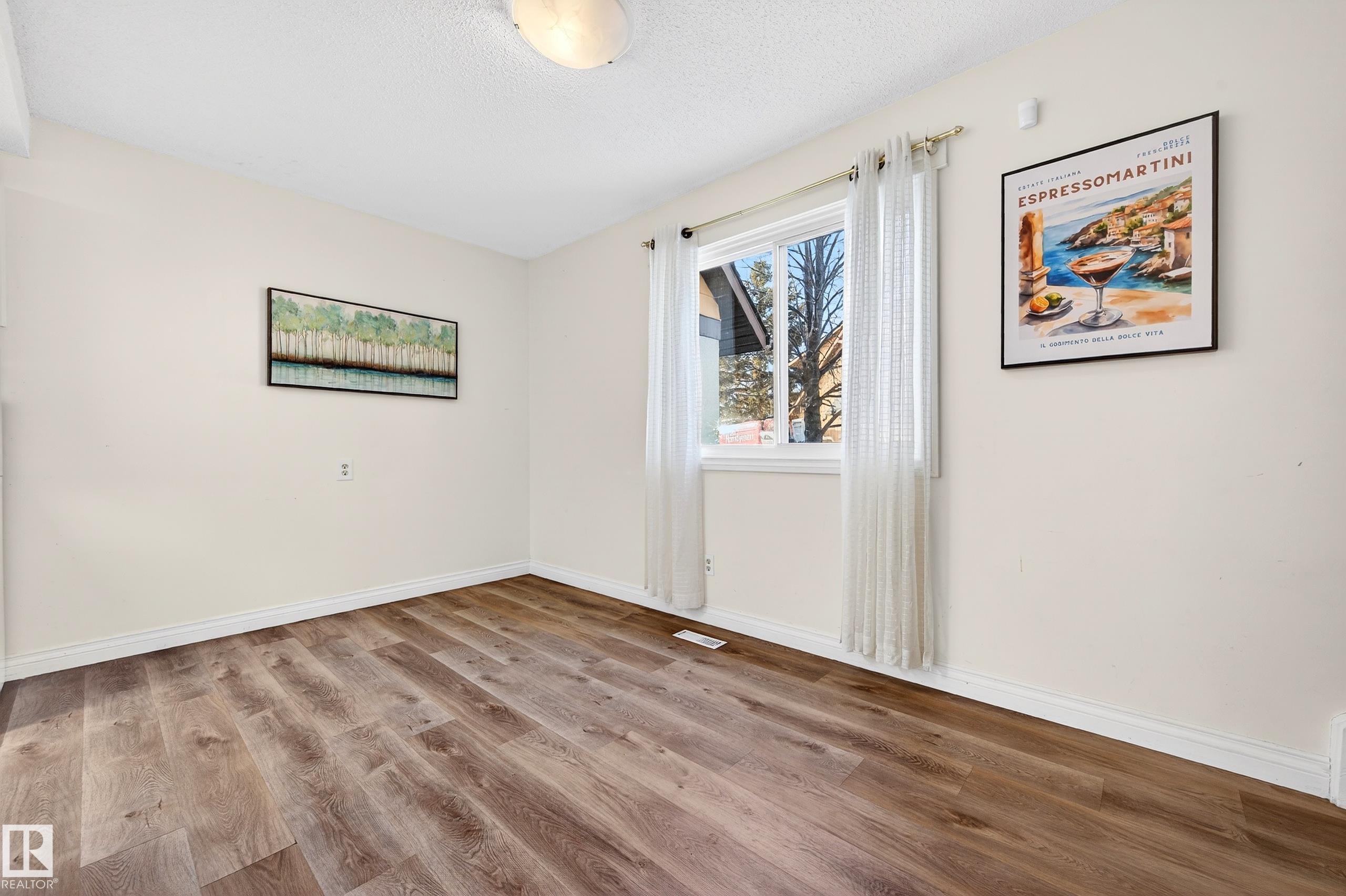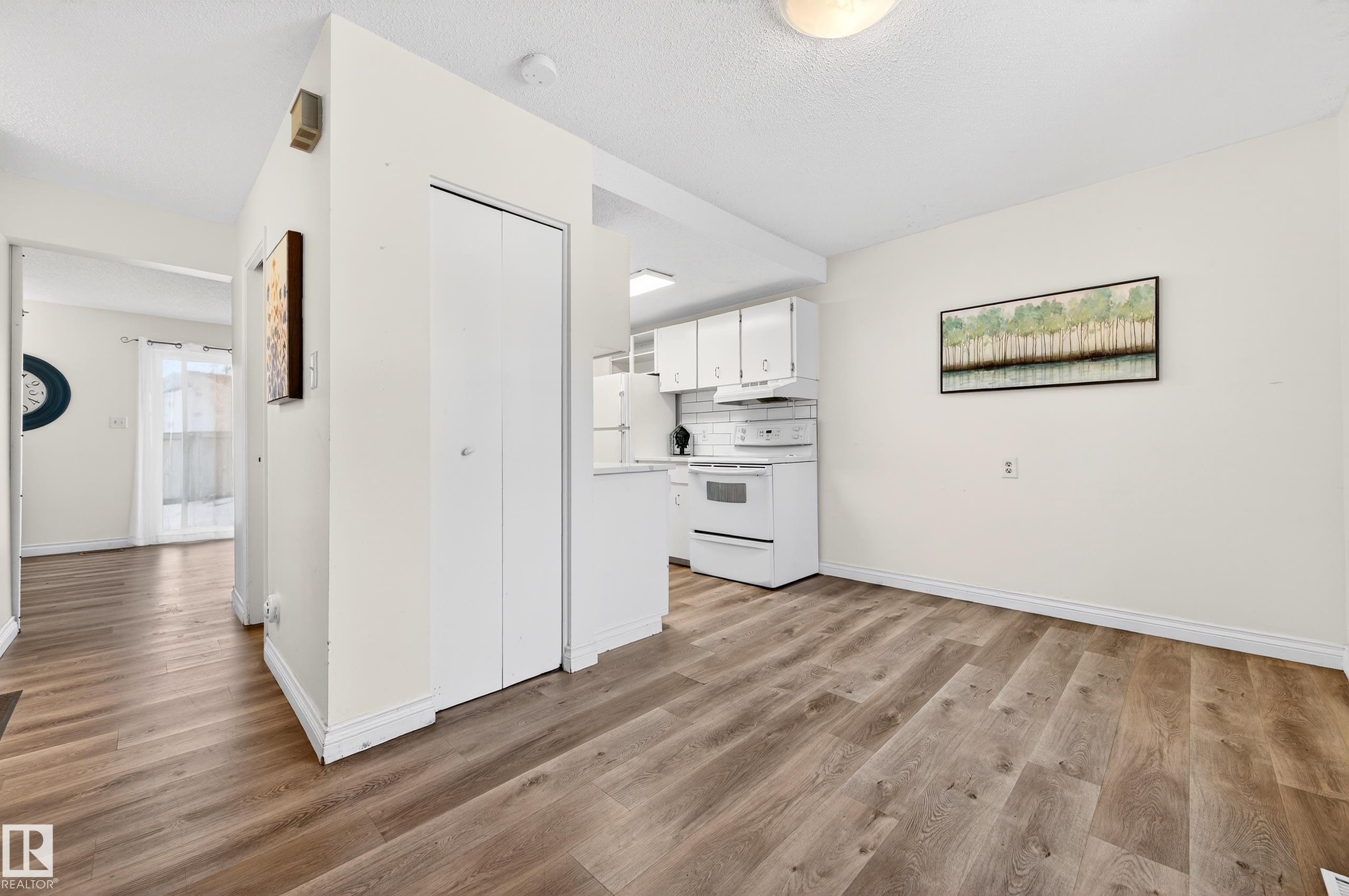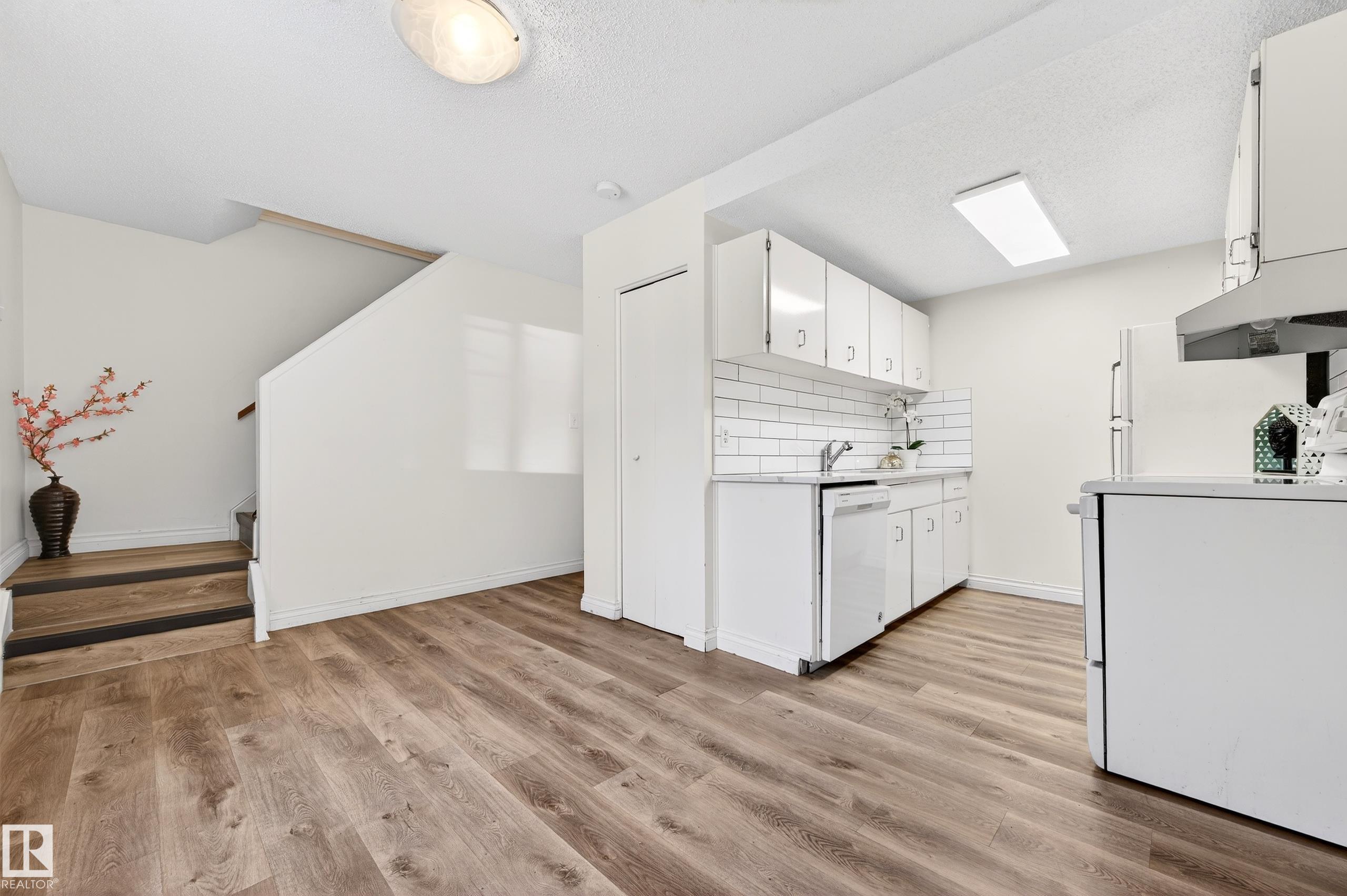 Welcome to 107 Woodstock, a bright two-storey townhome ideally located minutes from West Edmonton Mall and within walking distance to school, parks, shopping, and public transit. On the main level you enjoy a spacious living room with access to a private fenced yard, and a dining area open to the galley kitchen with updated countertops, backsplash, and refreshed cabinets. There is a main f 2-piece washroom and modern vinyl plank flooring throughout the living room, stairs, and upper hallway. Second level offers a large primary bedroom plus two additional bedrooms and an updated 4-piece bathroom. The almost finished basement provides a family room and plenty of storage space. A rare bonus is the private parking for 2?3 vehicles directly in front of the unit. Conveniently located near West Edmonton Mall, Collingwood Shopping Centre, schools, parks, and transit. Ideal for first-time buyers, young families, or investors.