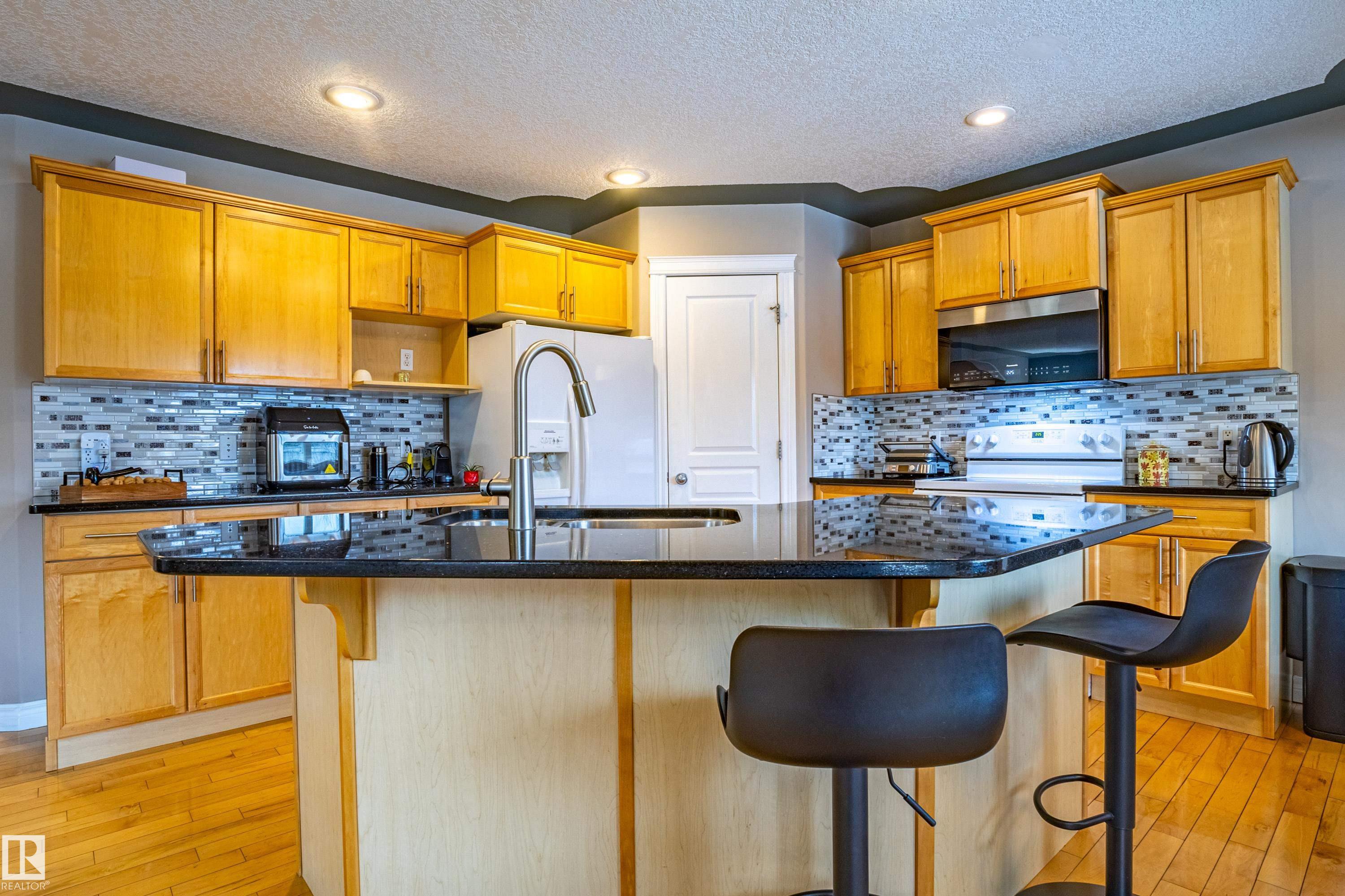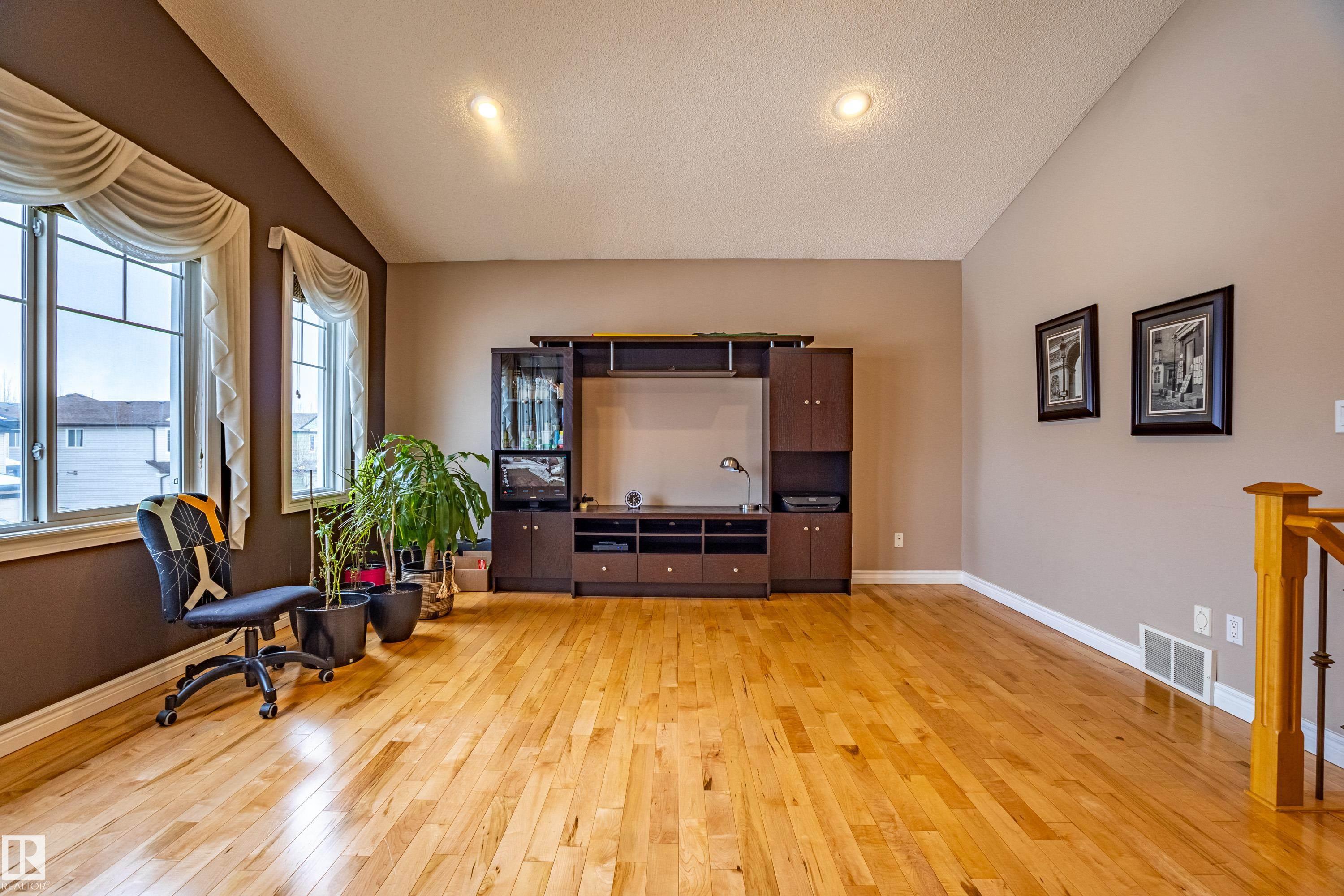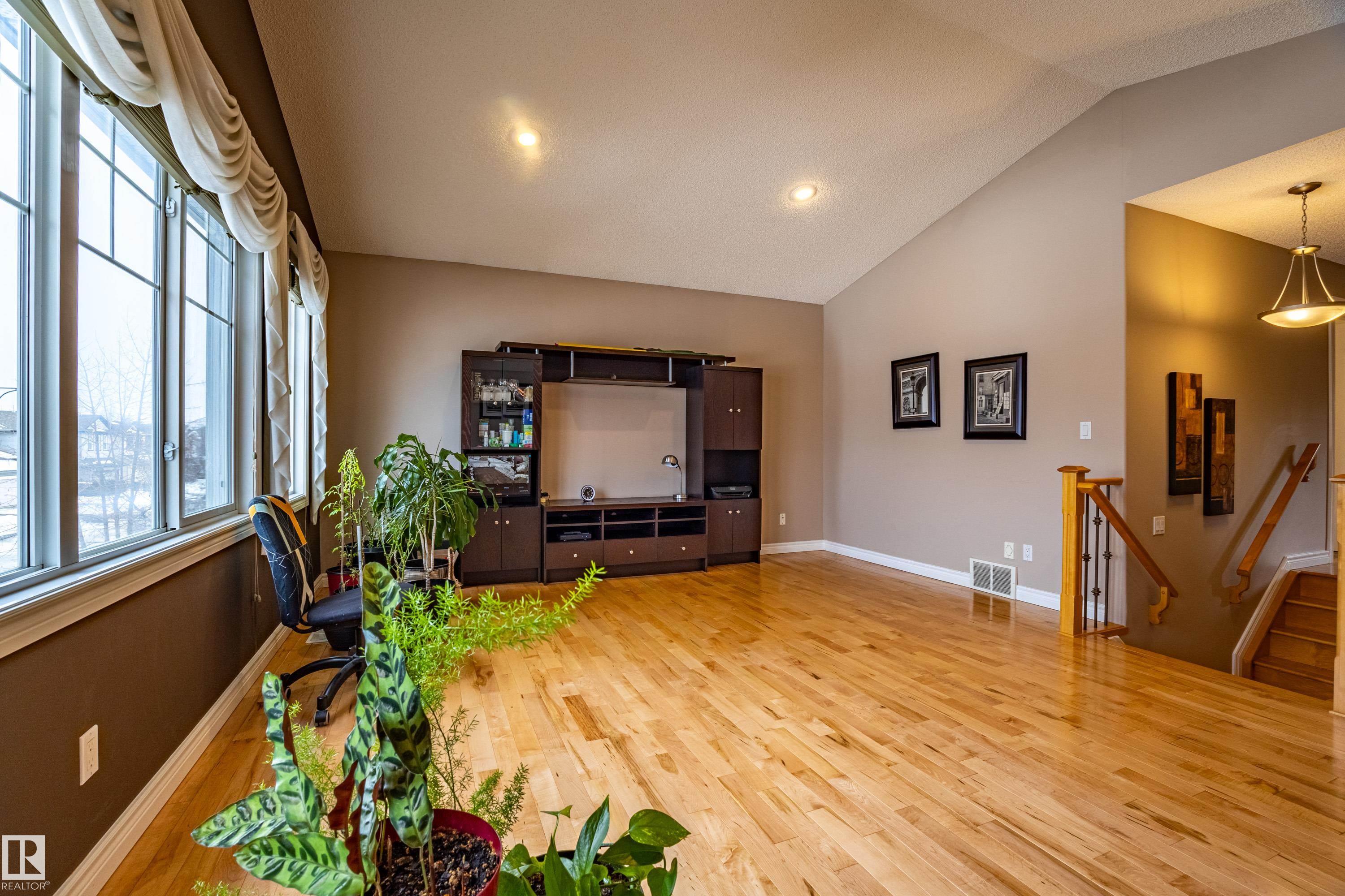 Welcome to this beautifully maintained home in desirable South Edmonton! Offering 2100sqft of well-designed living space, this property features an open & bright floor plan that is perfect for both everyday living & entertaining. Main floor showcases hardwood flooring, granite countertops & a seamless flow between the living room, kitchen & dining area. You?ll also find a convenient main floor laundry room, a 2-piece bathroom & direct access to the double attached garage. Upstairs features a spacious bonus room with vaulted ceilings, ideal for a family room or media space. Down the hall are 3 bedrooms including a large primary suite complete with walk-in closet & a beautiful ensuite featuring a separate bathtub & shower. The fully finished basement offers additional living & entertainment space. Additional highlights include Central A/C, built-in vacuum system & newer hot water tank. Step outside to enjoy the south-facing backyard with two-tier deck, perfect for relaxing or entertaining.