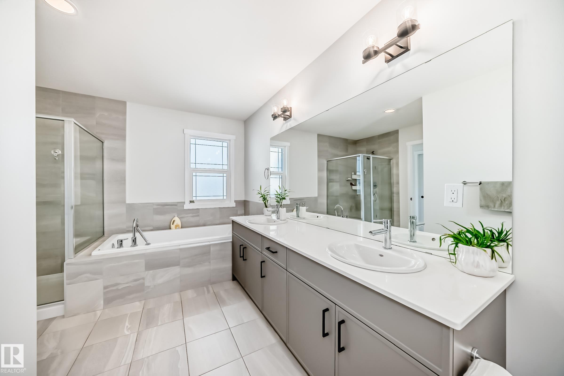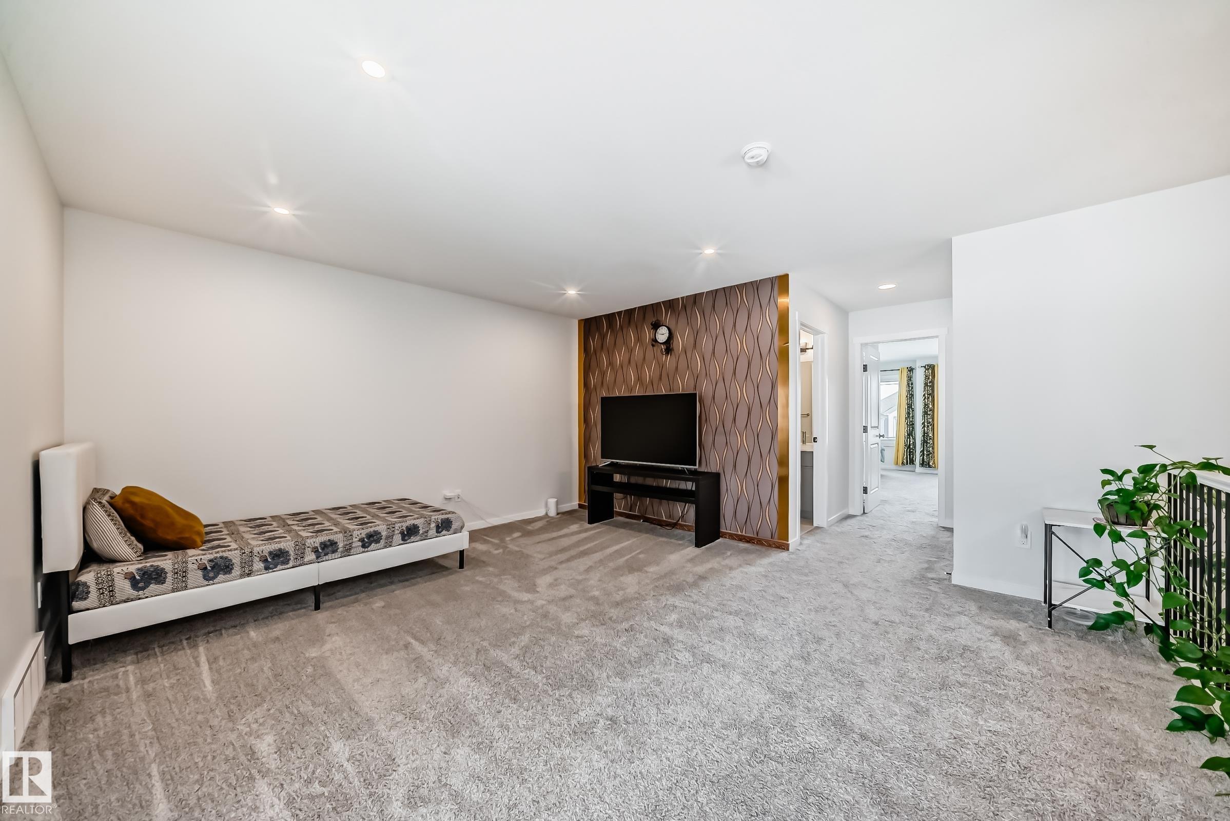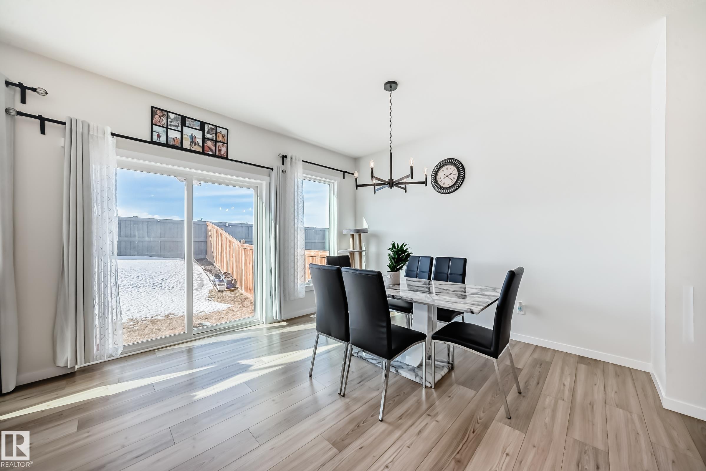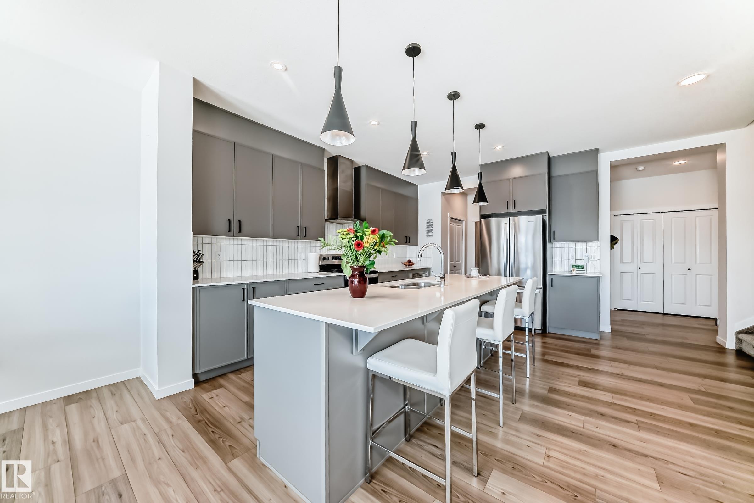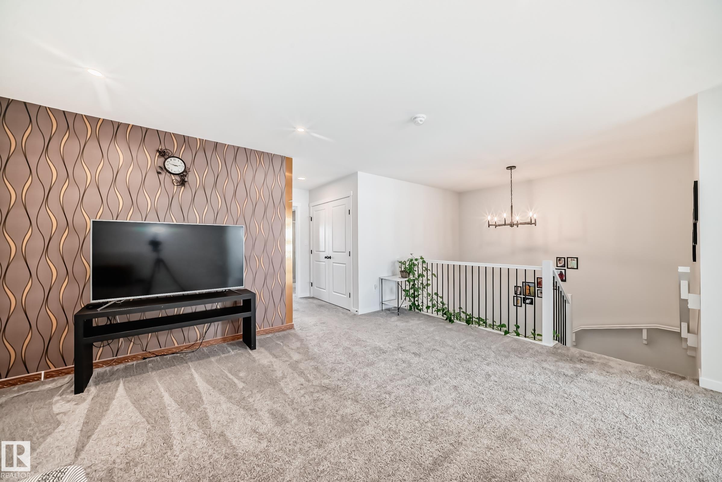 Welcome to this beautiful single-family home built by Coventry Homes. Offering just under 2200 SQ/FT, this stunning 3 bedroom, 2.5 bath home has it all and is located in the family-friendly community of Cy Becker. The main floor showcases durable laminate flooring throughout and an open-concept kitchen, living, and dining area. The living room features an electric fireplace with mantle and large picturesque windows. The spacious kitchen includes stylish cabinets, an under-mount sink, stainless steel appliances with built-in microwave and chimney-style hood fan, quartz countertops, and a huge island perfect for entertaining. A 2-piece bath and iron-railed staircase complete the main level. Upstairs offers a large central bonus room, convenient upper laundry, a 4-piece main bath with quartz vanity, two additional spacious bedrooms, and a primary bedroom with walk-in closet and 5-piece ensuite featuring quartz vanity, dual sinks, soaker tub, and separate shower. Enjoy fully landscaped & fenced yard.