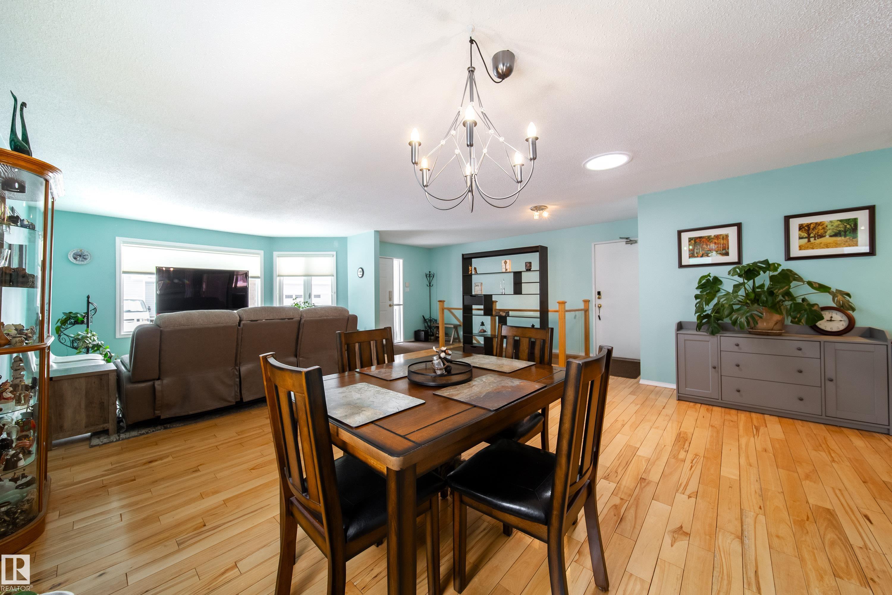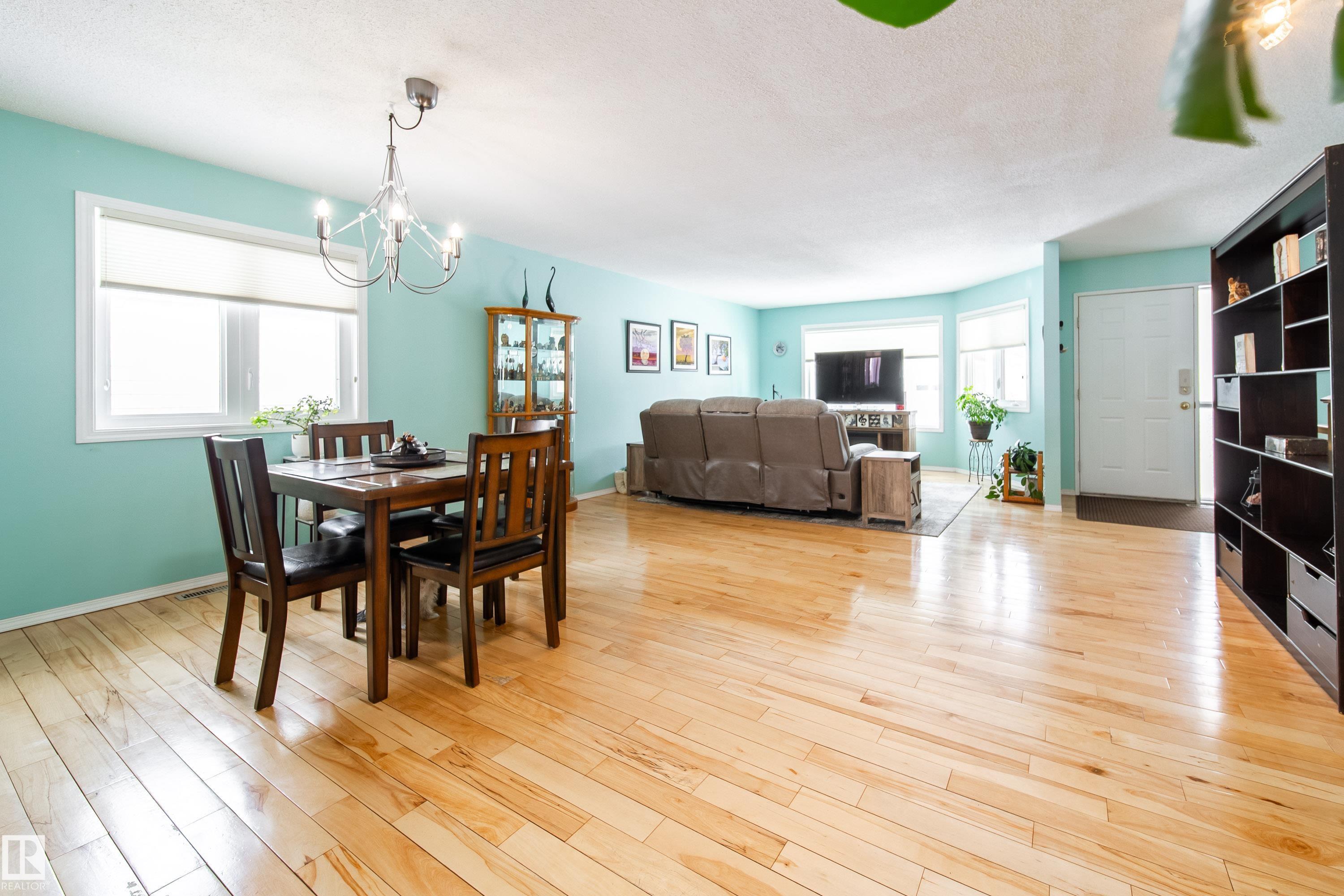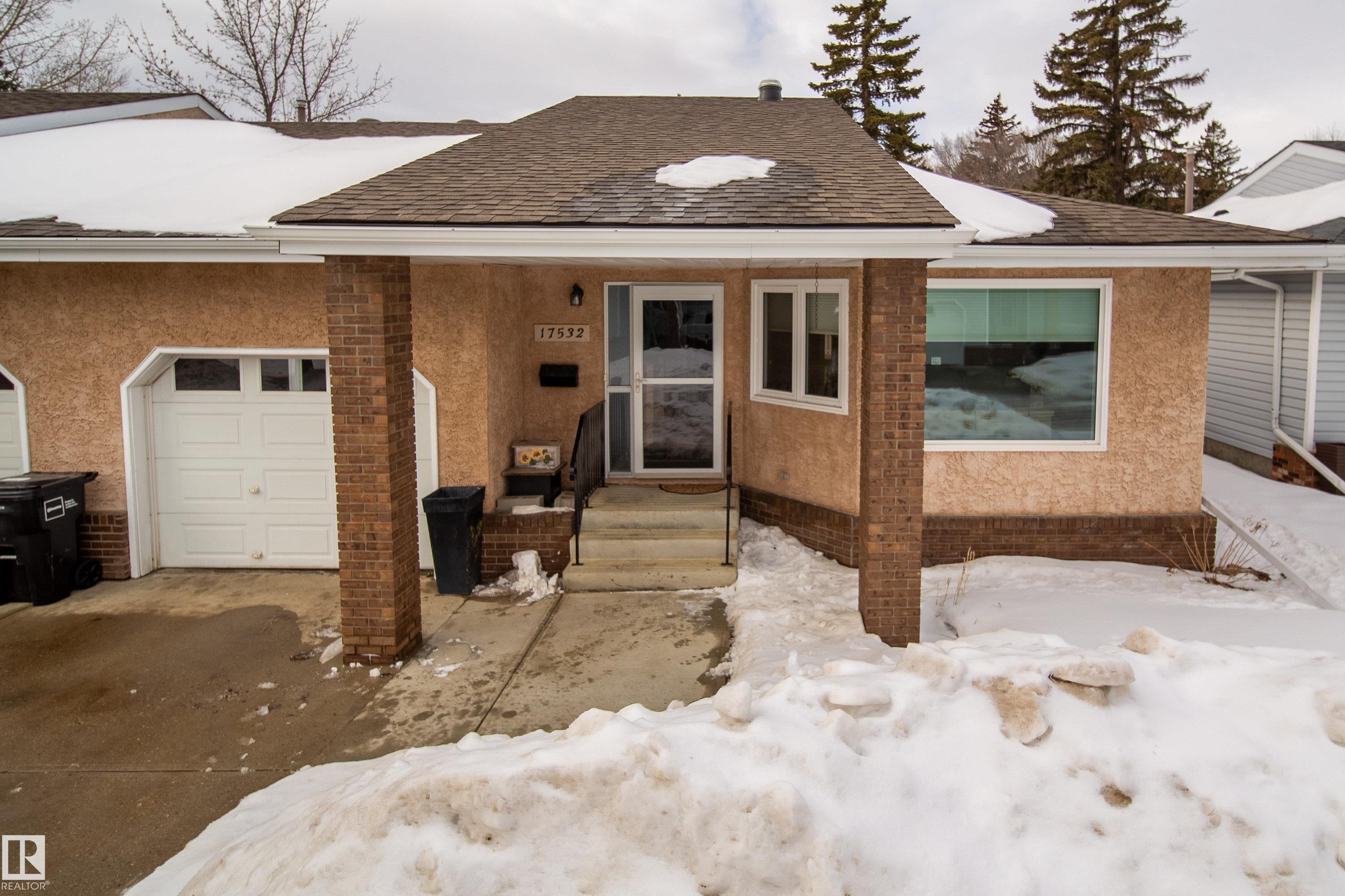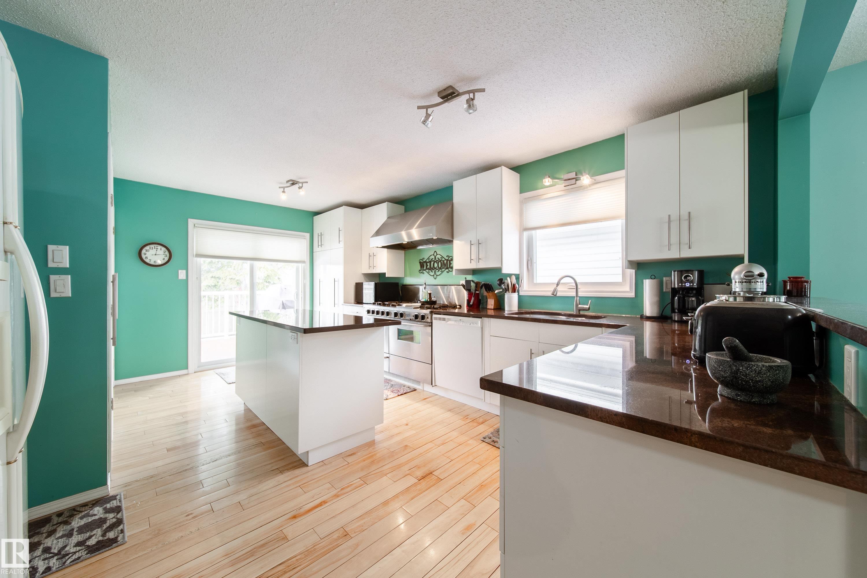 Renovated 55+ bungalow living in desirable Callingwood! This beautifully updated duplex condo offers bright, open-concept living with hardwood flooring, two spacious main-floor bedrooms, and a main bathroom featuring a walk-in shower for comfort and accessibility. The standout gourmet kitchen is perfect for those who love to cook, complete with granite countertops, large island, multiple pantry spaces, and an impressive six-burner gas stove. Main floor laundry adds everyday convenience and can easily be relocated back to the basement if desired. The fully finished lower level provides a large workshop and excellent storage space, ideal for hobbies or projects. Enjoy evenings on your west-facing deck (with gas BBQ hookup), perfect for relaxing or entertaining. Residents also enjoy access to a separate social building for gatherings, all within a well-located west Edmonton community close to shopping, amenities, and transit.