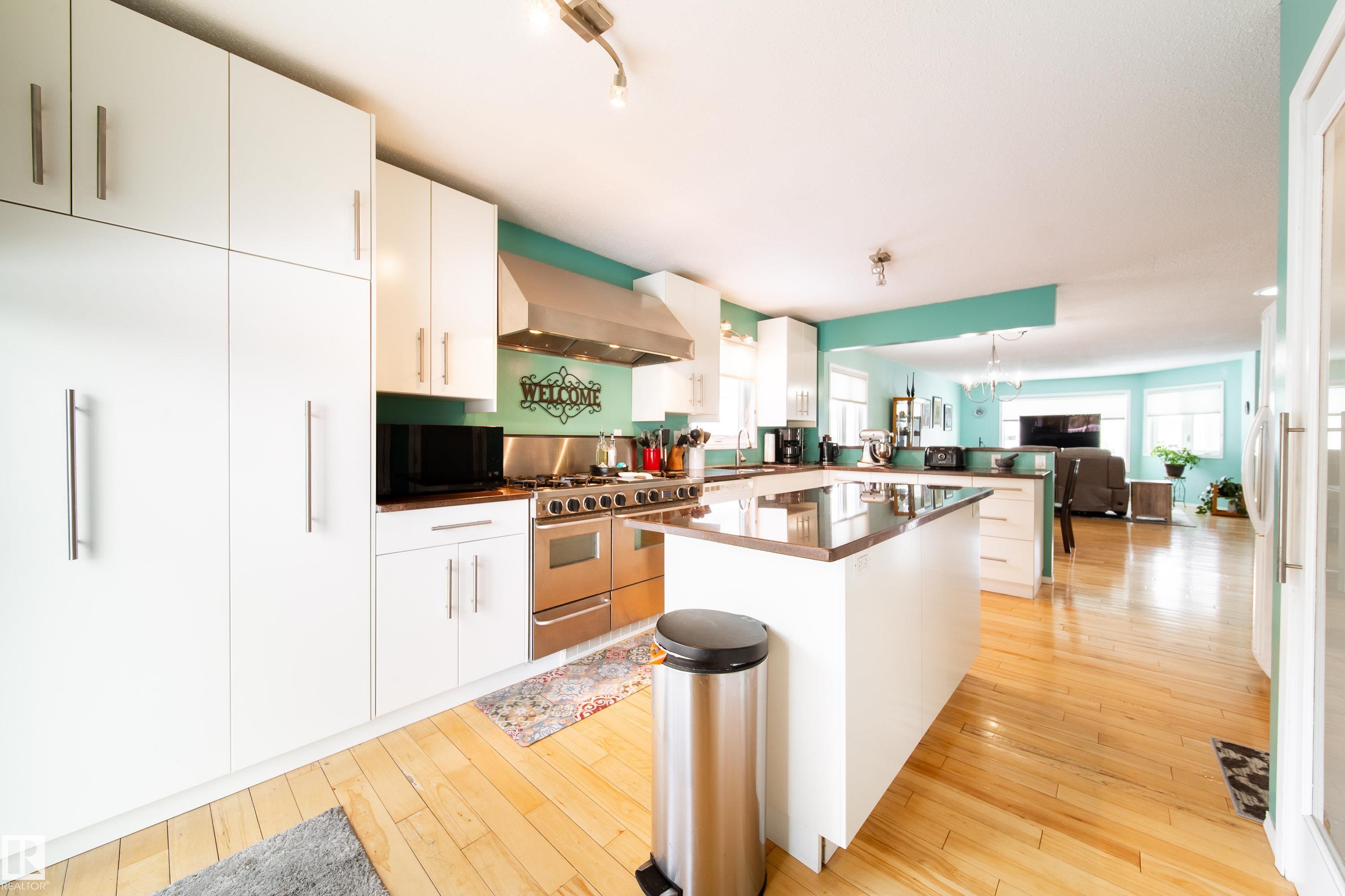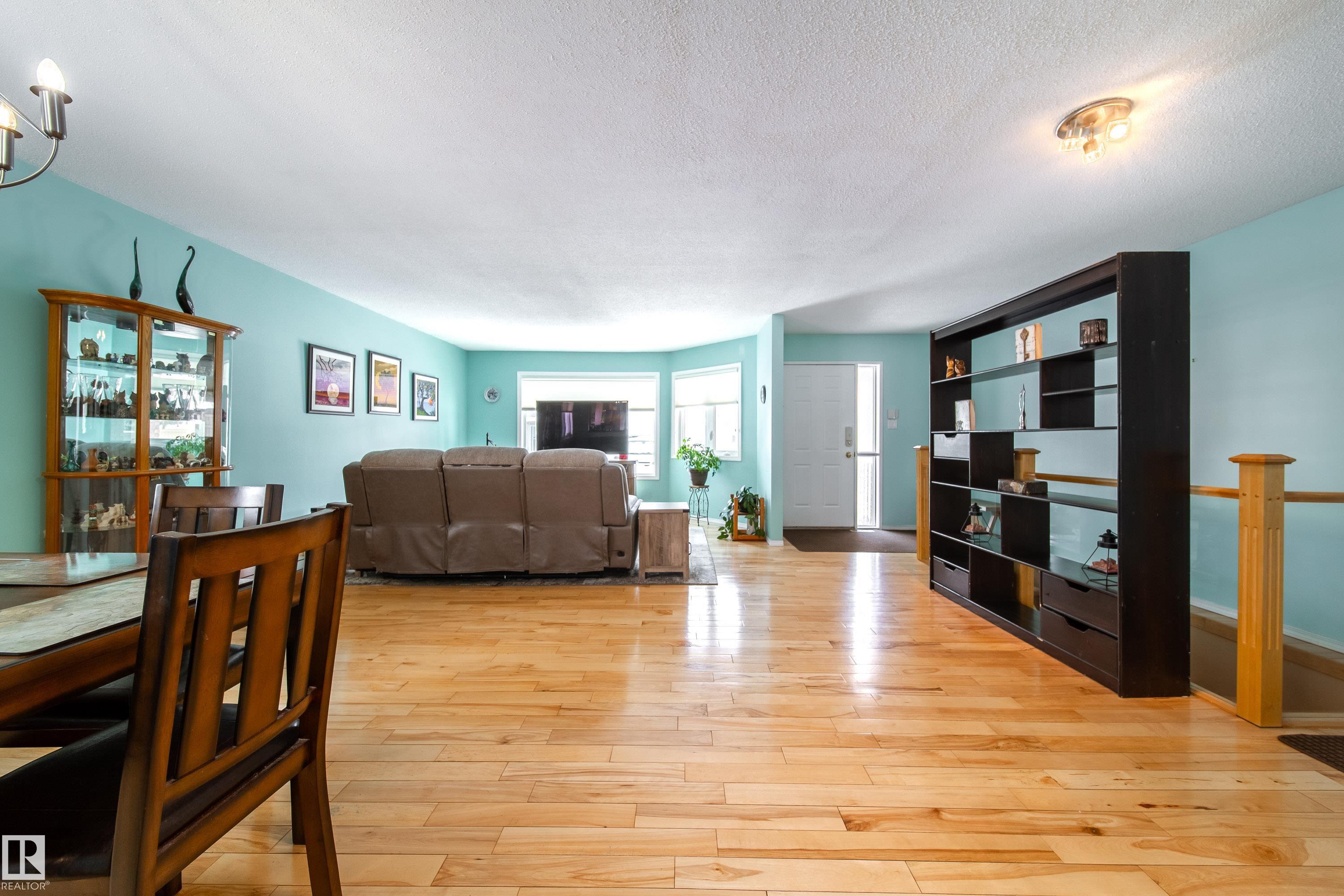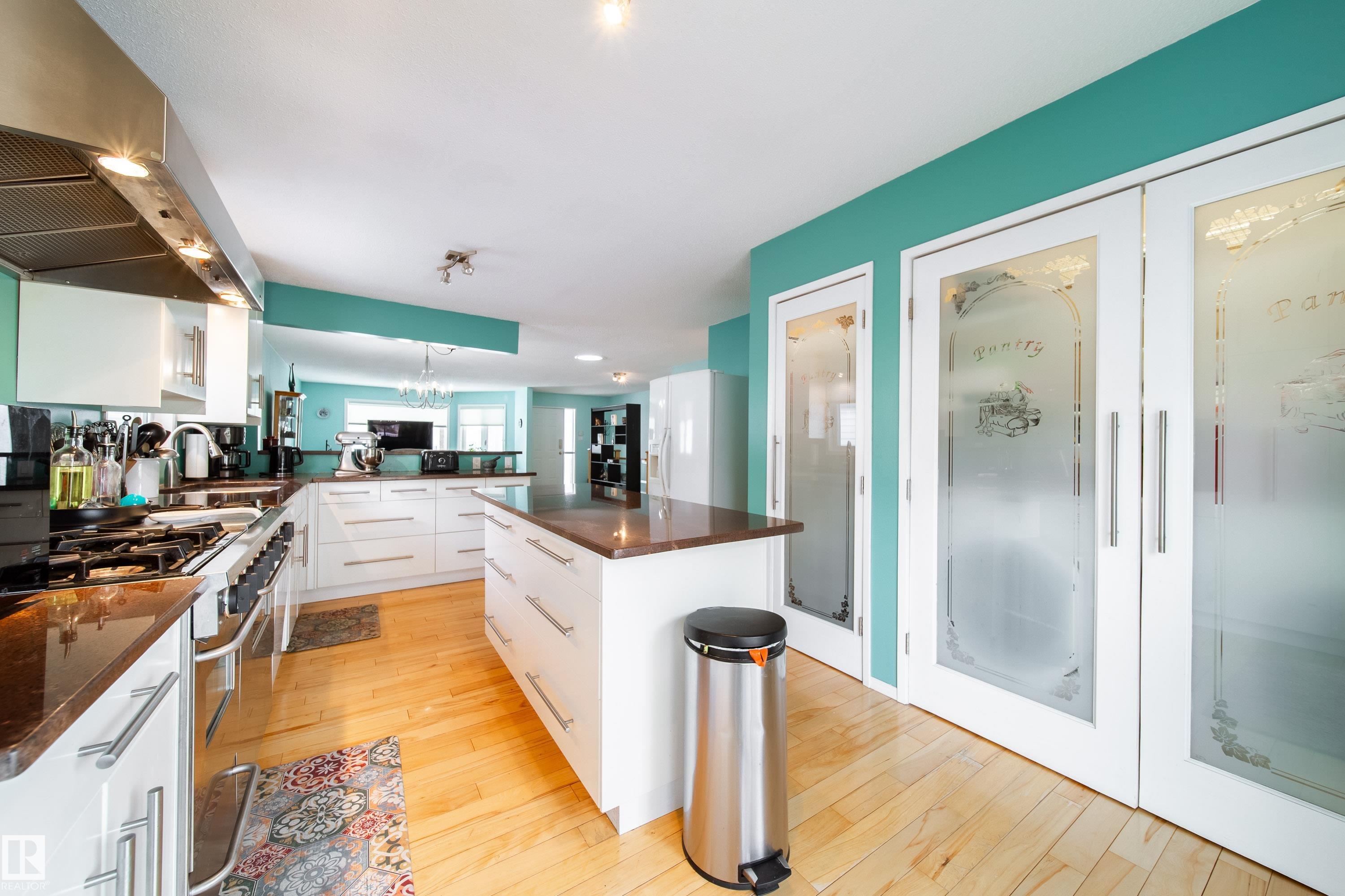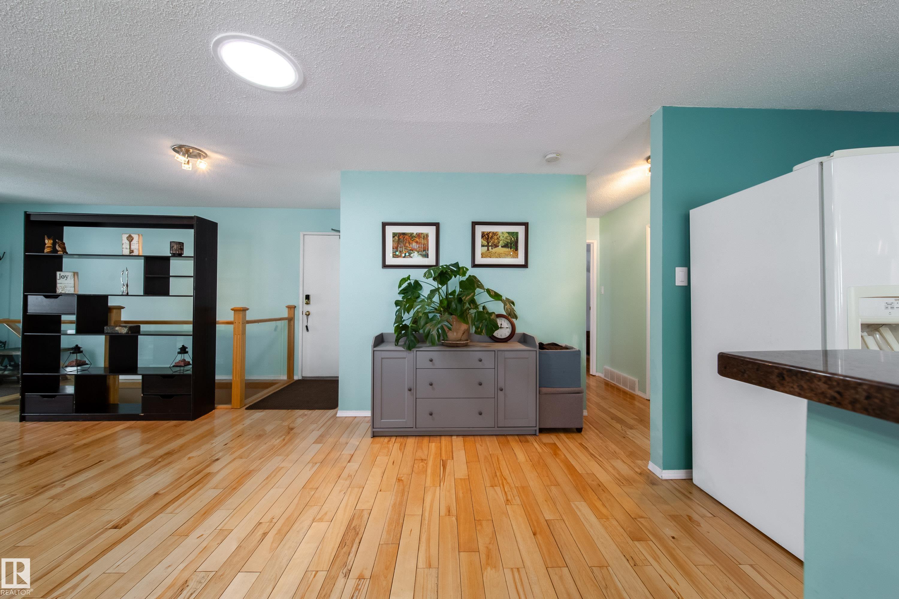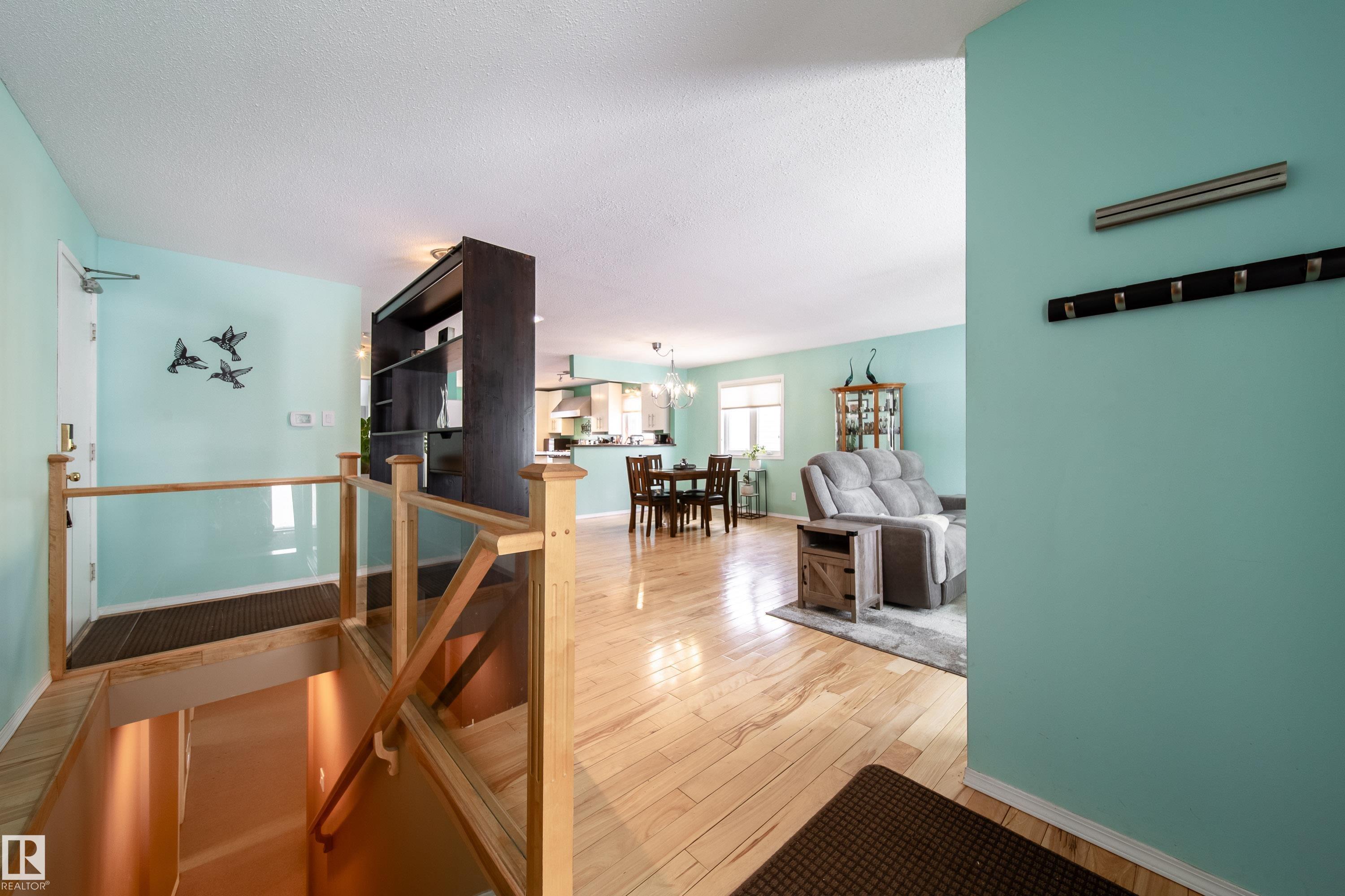 Renovated 55+ bungalow living in desirable Callingwood! This beautifully updated duplex condo offers bright, open-concept living with hardwood flooring, two spacious main-floor bedrooms, and a main bathroom featuring a walk-in shower for comfort and accessibility. The standout gourmet kitchen is perfect for those who love to cook, complete with granite countertops, large island, multiple pantry spaces, and an impressive six-burner gas stove. Main floor laundry adds everyday convenience and can easily be relocated back to the basement if desired. The fully finished lower level provides a large workshop and excellent storage space, ideal for hobbies or projects. Enjoy evenings on your west-facing deck (with gas BBQ hookup), perfect for relaxing or entertaining. Residents also enjoy access to a separate social building for gatherings, all within a well-located west Edmonton community close to shopping, amenities, and transit.