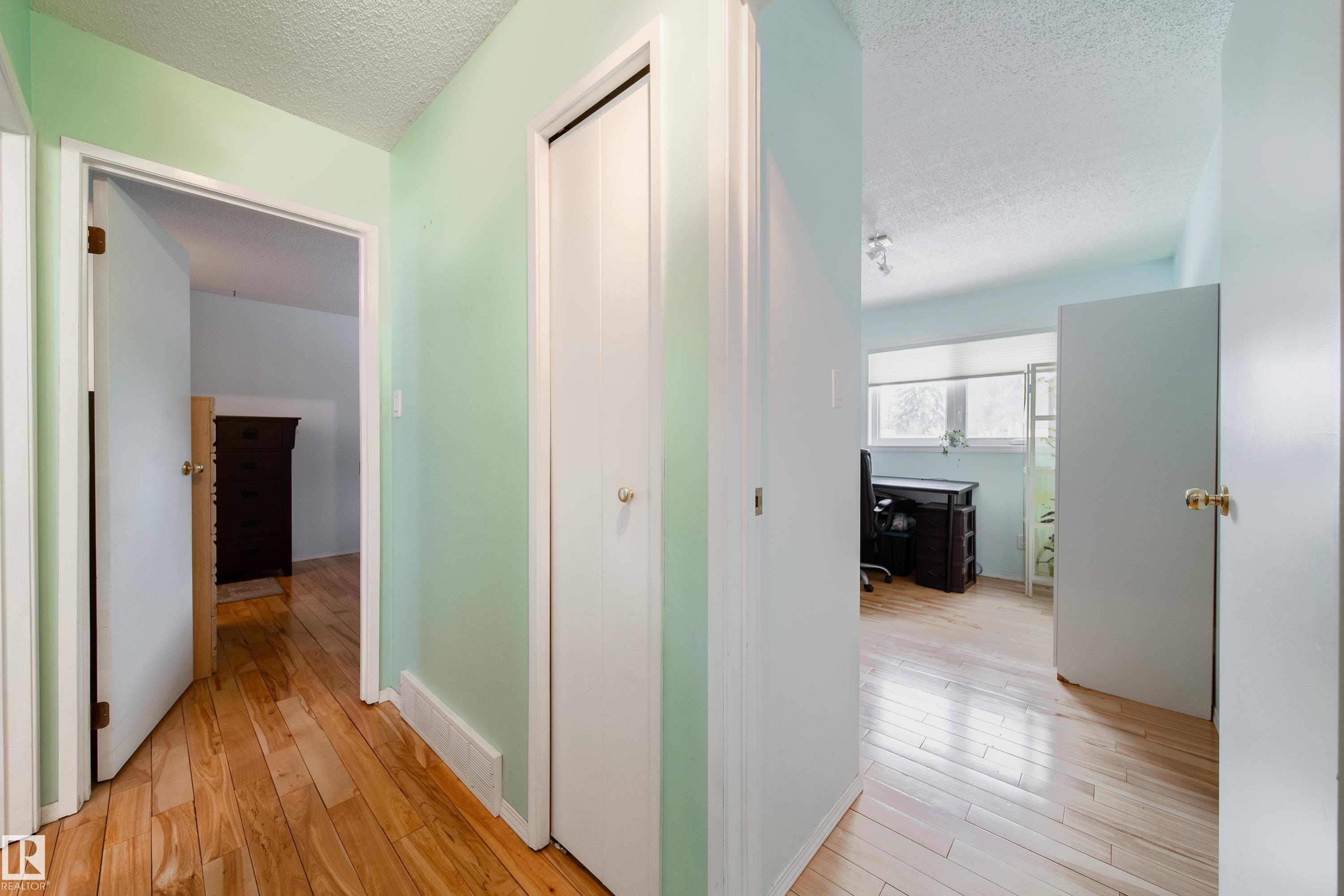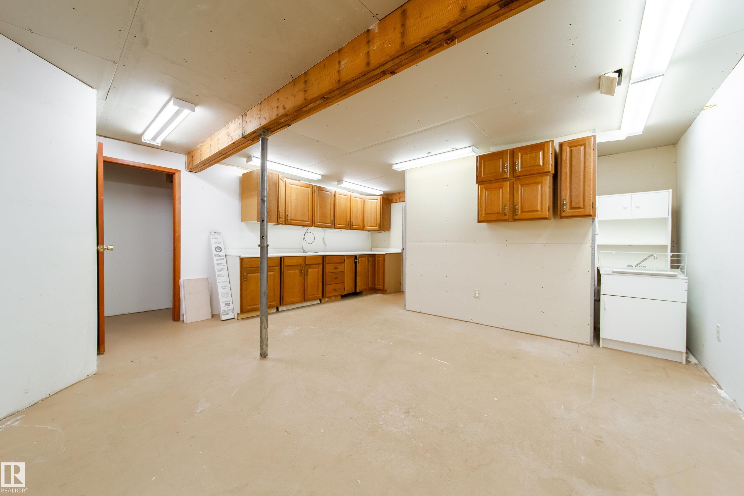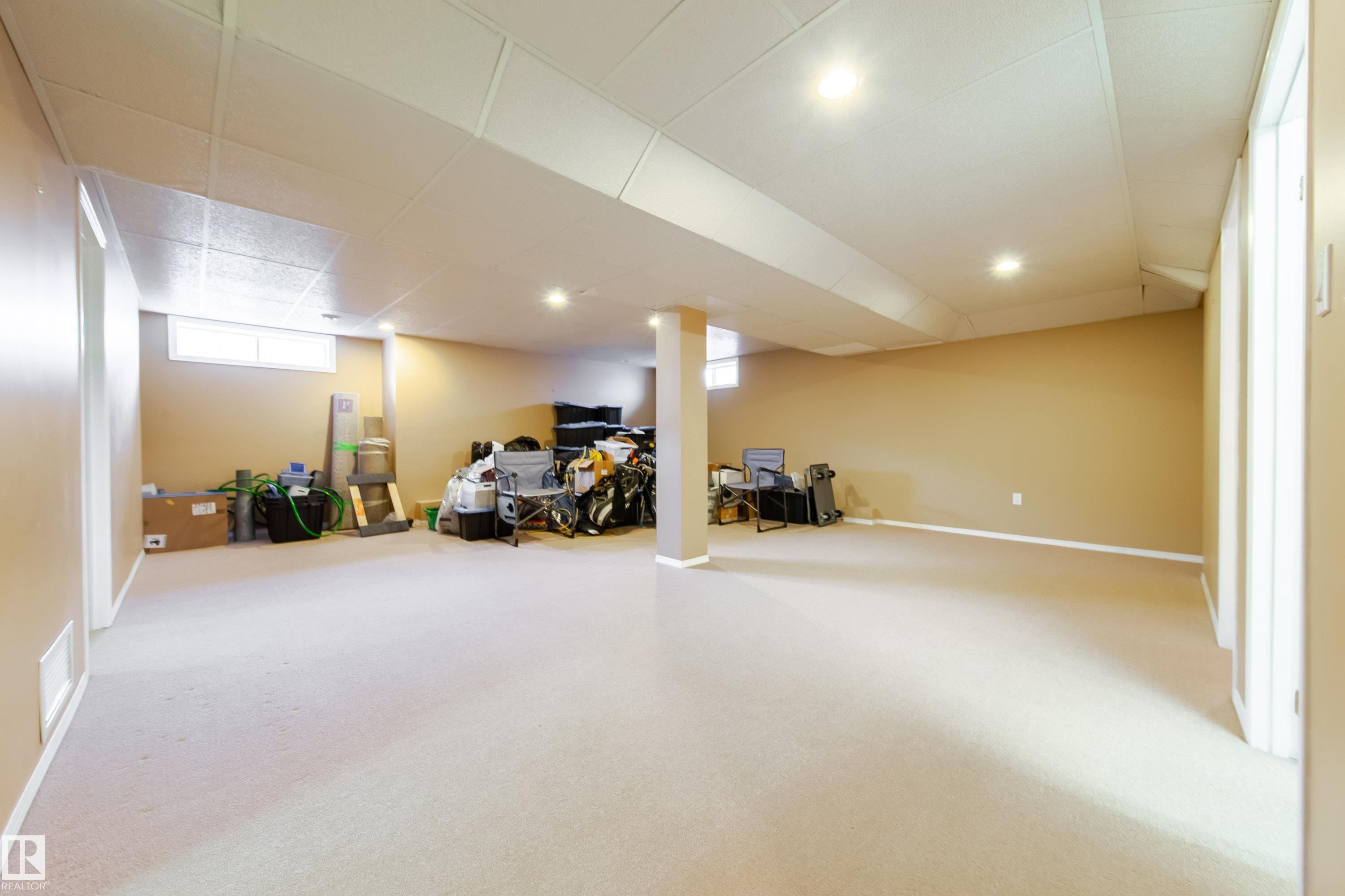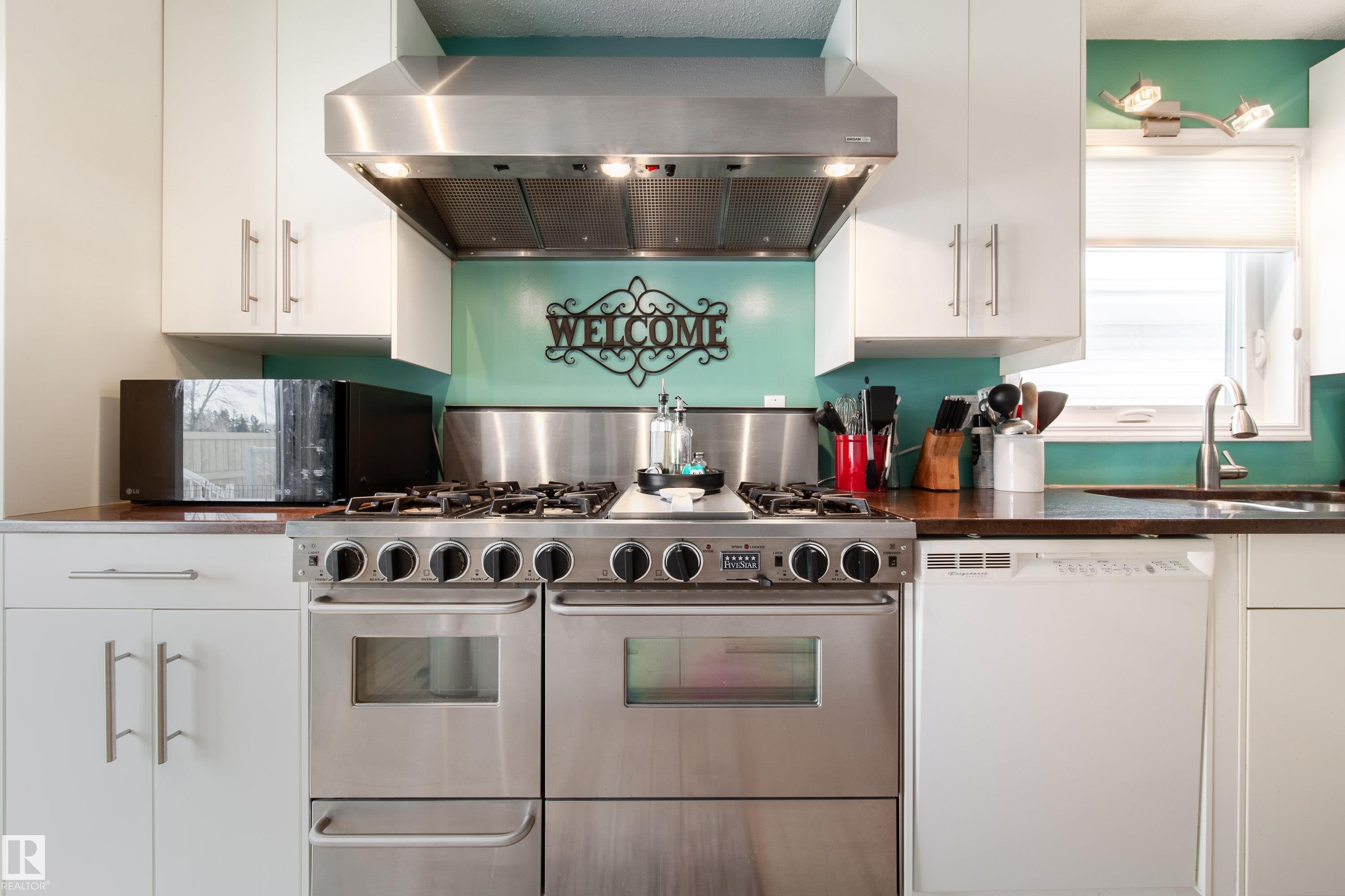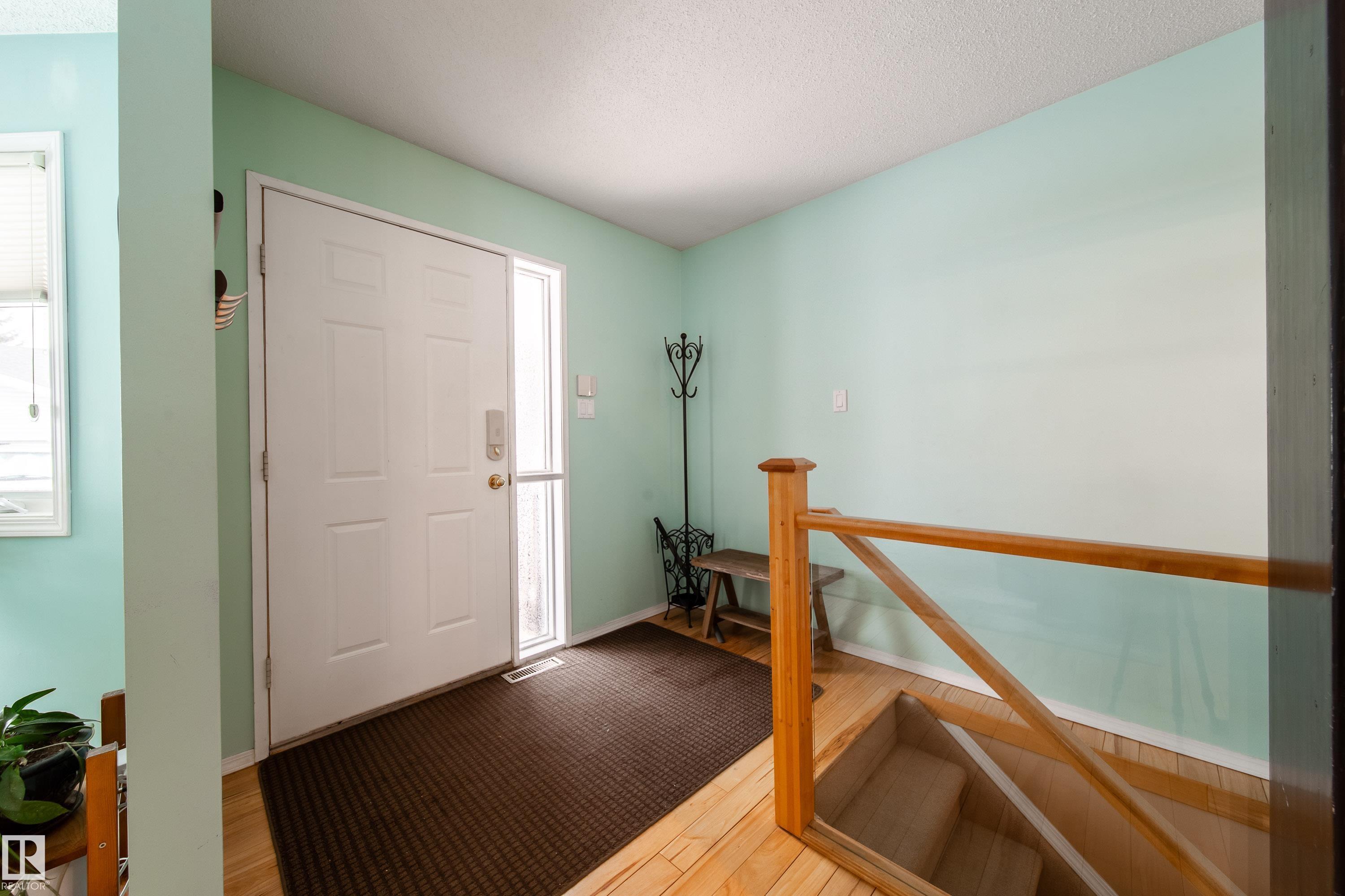 Renovated 55+ bungalow living in desirable Callingwood! This beautifully updated duplex condo offers bright, open-concept living with hardwood flooring, two spacious main-floor bedrooms, and a main bathroom featuring a walk-in shower for comfort and accessibility. The standout gourmet kitchen is perfect for those who love to cook, complete with granite countertops, large island, multiple pantry spaces, and an impressive six-burner gas stove. Main floor laundry adds everyday convenience and can easily be relocated back to the basement if desired. The fully finished lower level provides a large workshop and excellent storage space, ideal for hobbies or projects. Enjoy evenings on your west-facing deck (with gas BBQ hookup), perfect for relaxing or entertaining. Residents also enjoy access to a separate social building for gatherings, all within a well-located west Edmonton community close to shopping, amenities, and transit.
