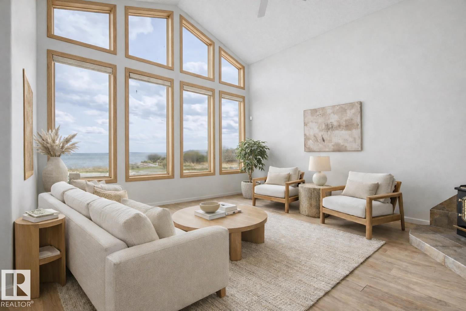 Discover this stunning 7 bedroom waterfront home on Pigeon Lake with almost 3500 sft of developed living space! Only 1 hour from the city this four season home is perfect for families, entertainers, outdoor lovers, and Airbnb hosts alike. The bright main floor features an A-frame living room, cozy wood-burning fireplace open to your dining and well-appointed kitchen - all with Bose sound system. Step out onto your screened-in room, soak in the hot tub, or host gatherings on the expansive patio. The beautiful private primary suite features lake views, an ensuite, and walk-in closet. Main floor laundry, two additional bedrooms, a full bathroom and family theatre room complete the main floor. The fully finished basement adds four more bedrooms, a full bath, room for multiple families to stay, all with their own space! The detached shop features a work area, 2 single bays great for storing all your toys and a whole home back up generator! Don?t miss this rare opportunity to own a piece of lakefront paradise!