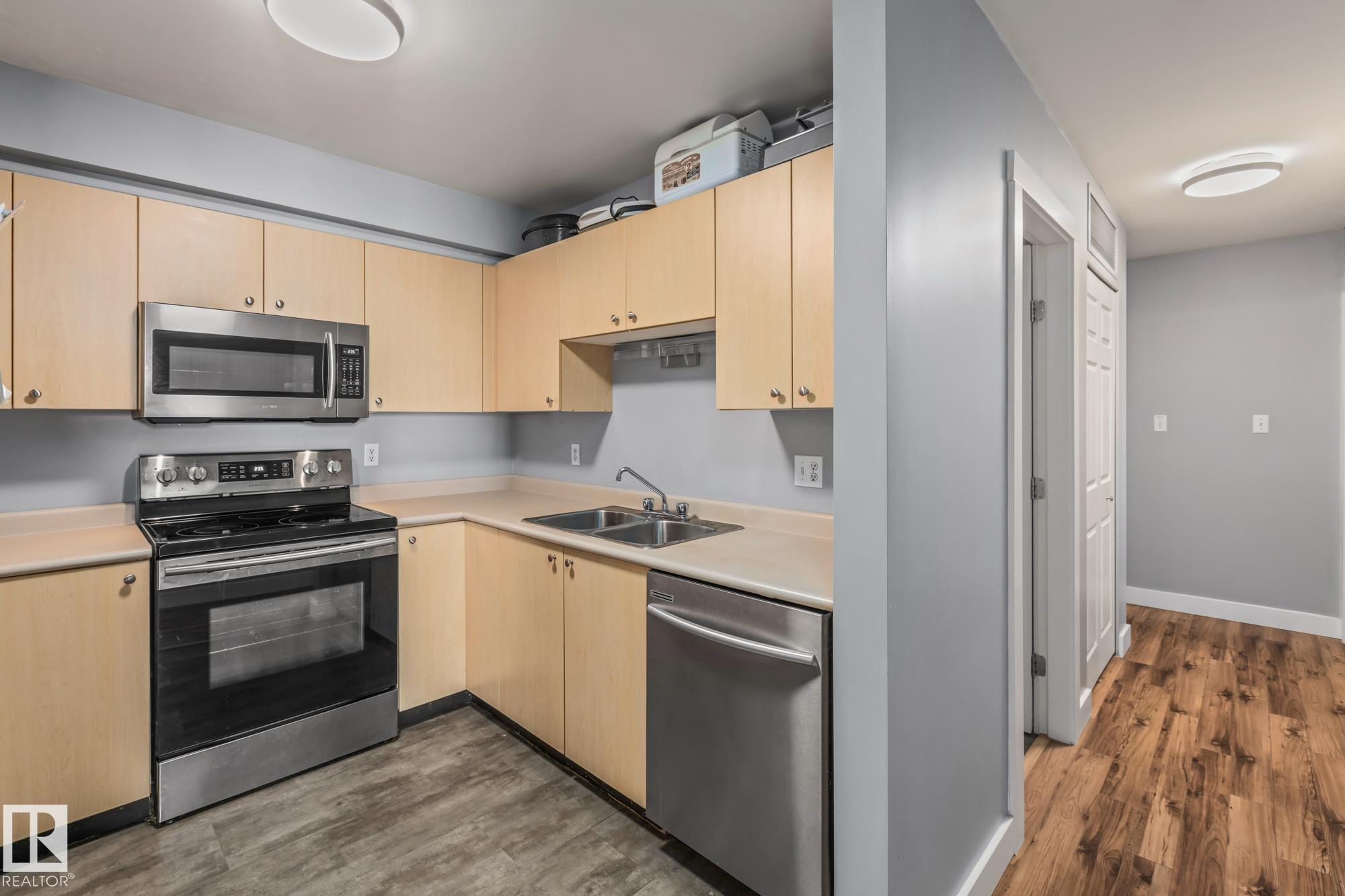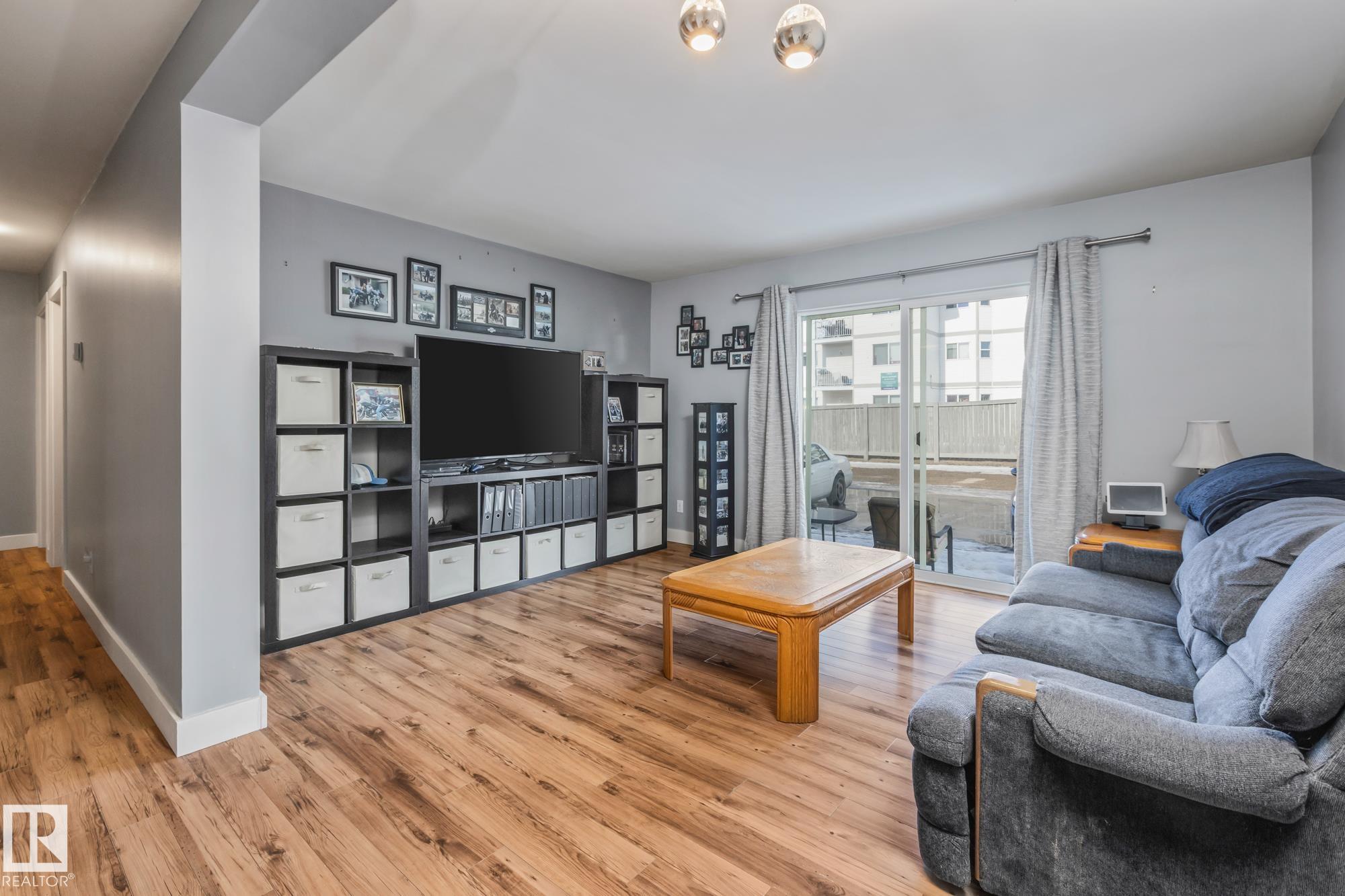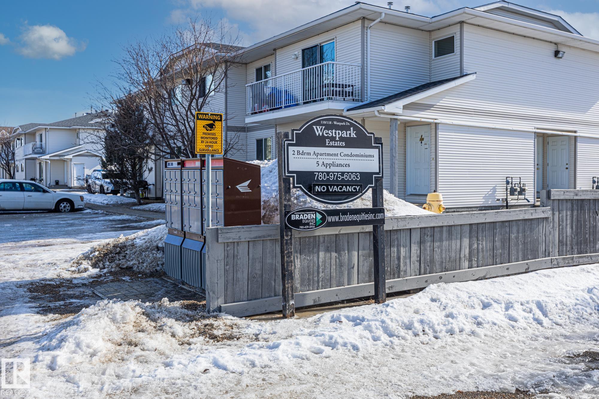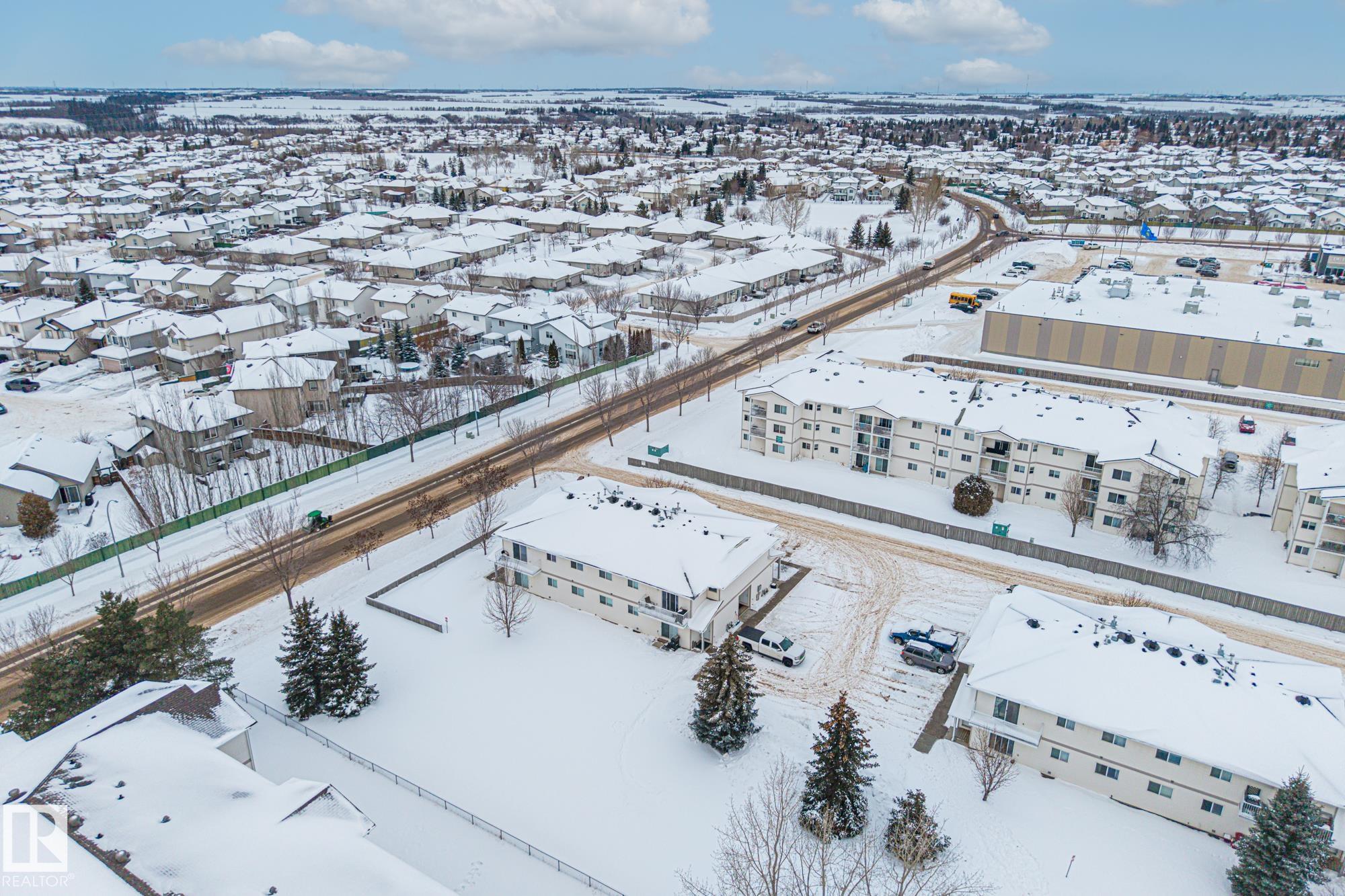 Welcome to this bright and well-maintained 2 bedroom, 1 bathroom carriage home in Fort Saskatchewan. Ideally located close to shopping, parks, and recreation including the Dow Centennial Centre. This updated unit features newer laminate flooring throughout, custom baseboards and trim, updated interior doors, and a kitchen with stainless steel appliances. The functional layout offers two spacious bedrooms and a 5-piece bathroom. Additional highlights include outside storage with built-in shelving and two parking stalls conveniently located right outside the front door. With quick access to Highway 21, this property is perfect for first-time buyers, downsizers, or investors looking for excellent value in a great location!