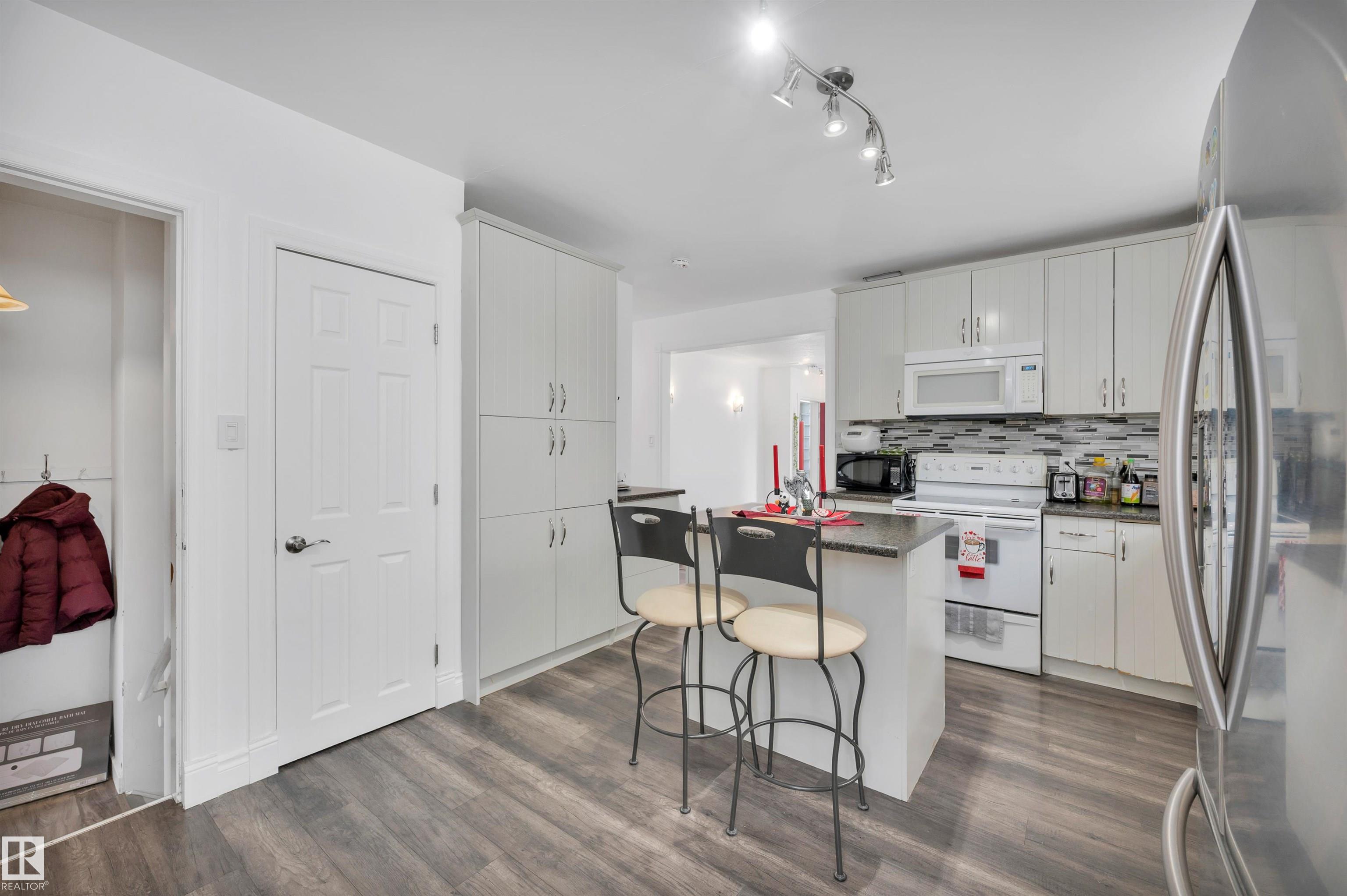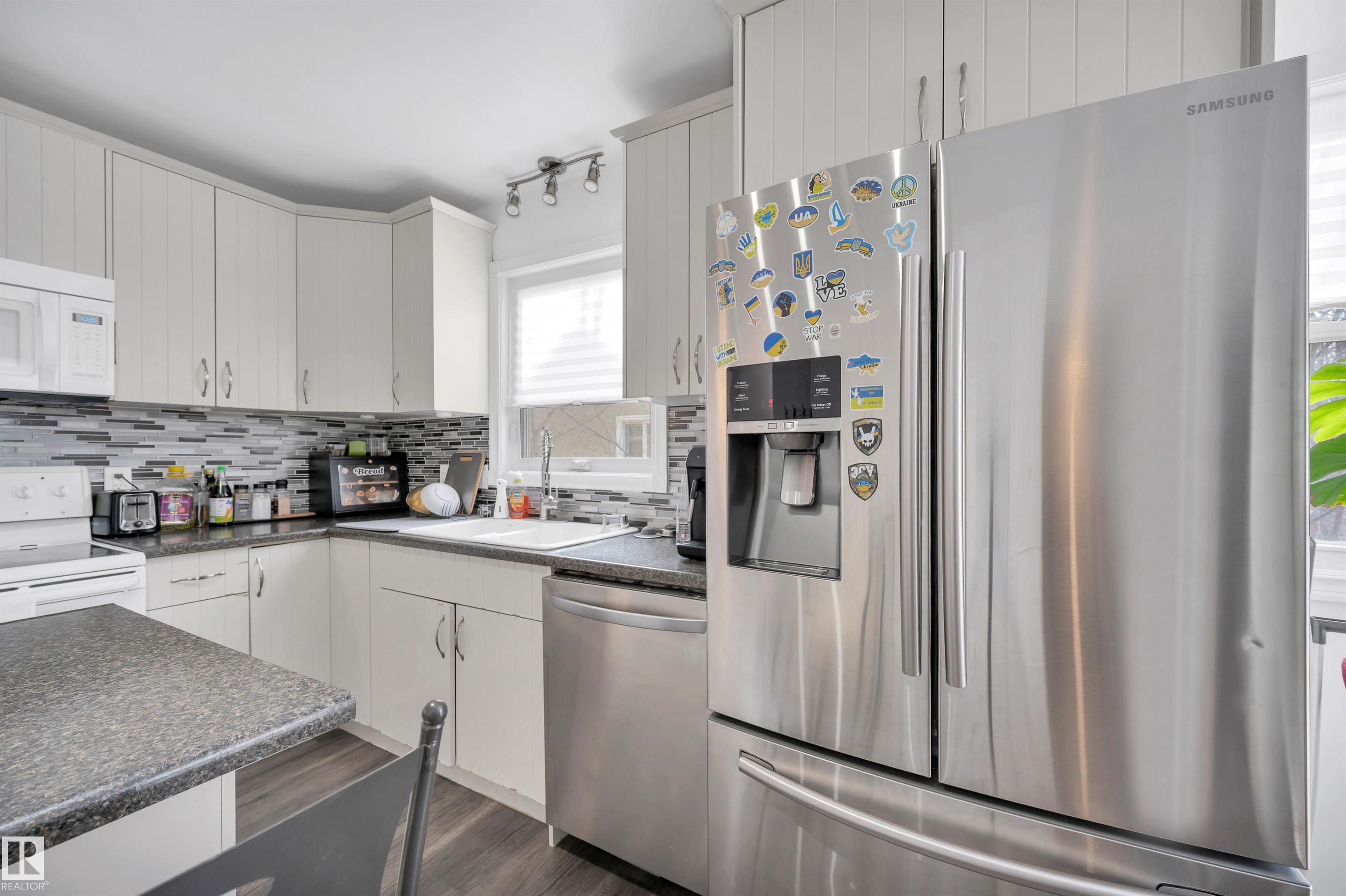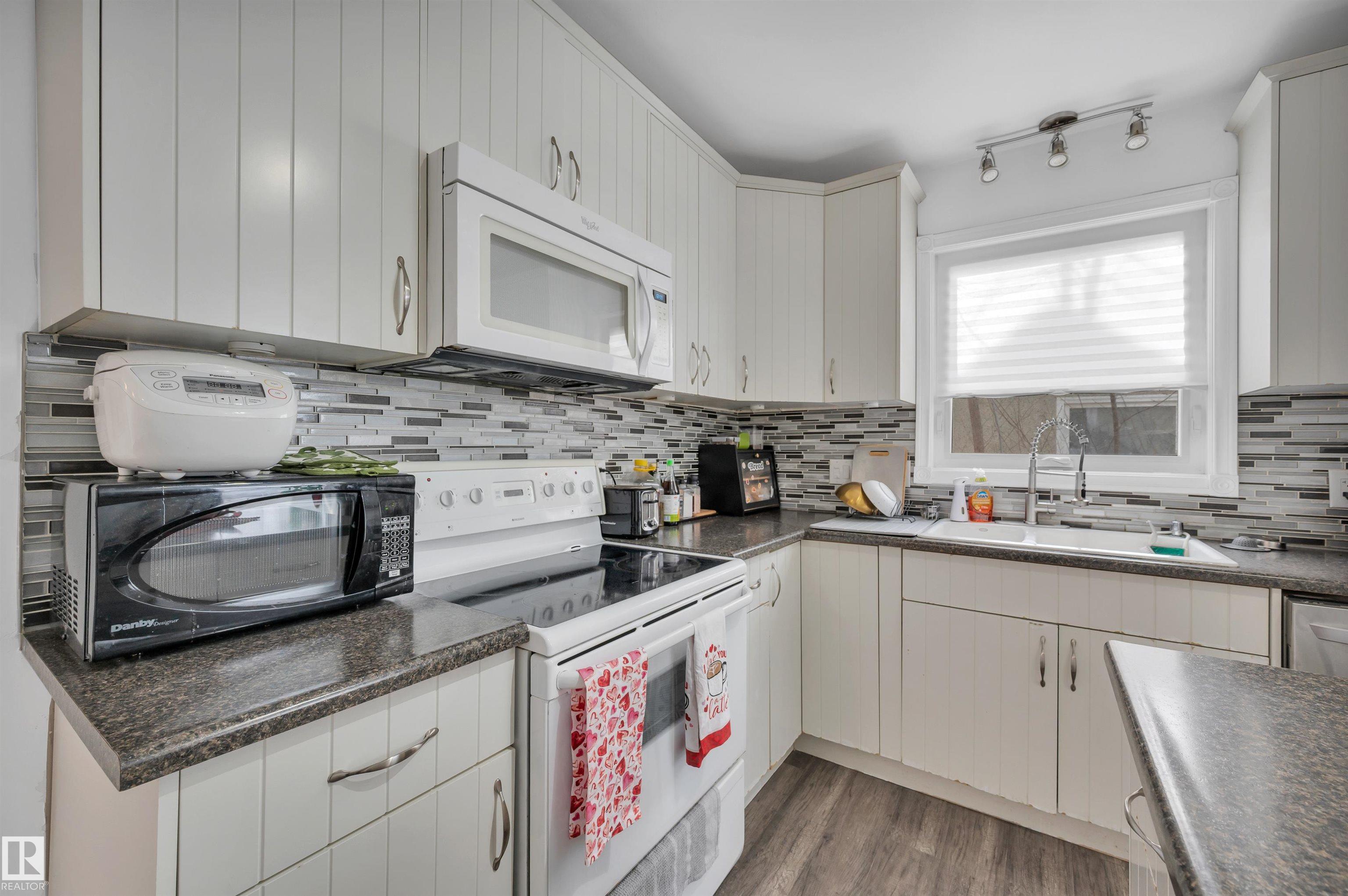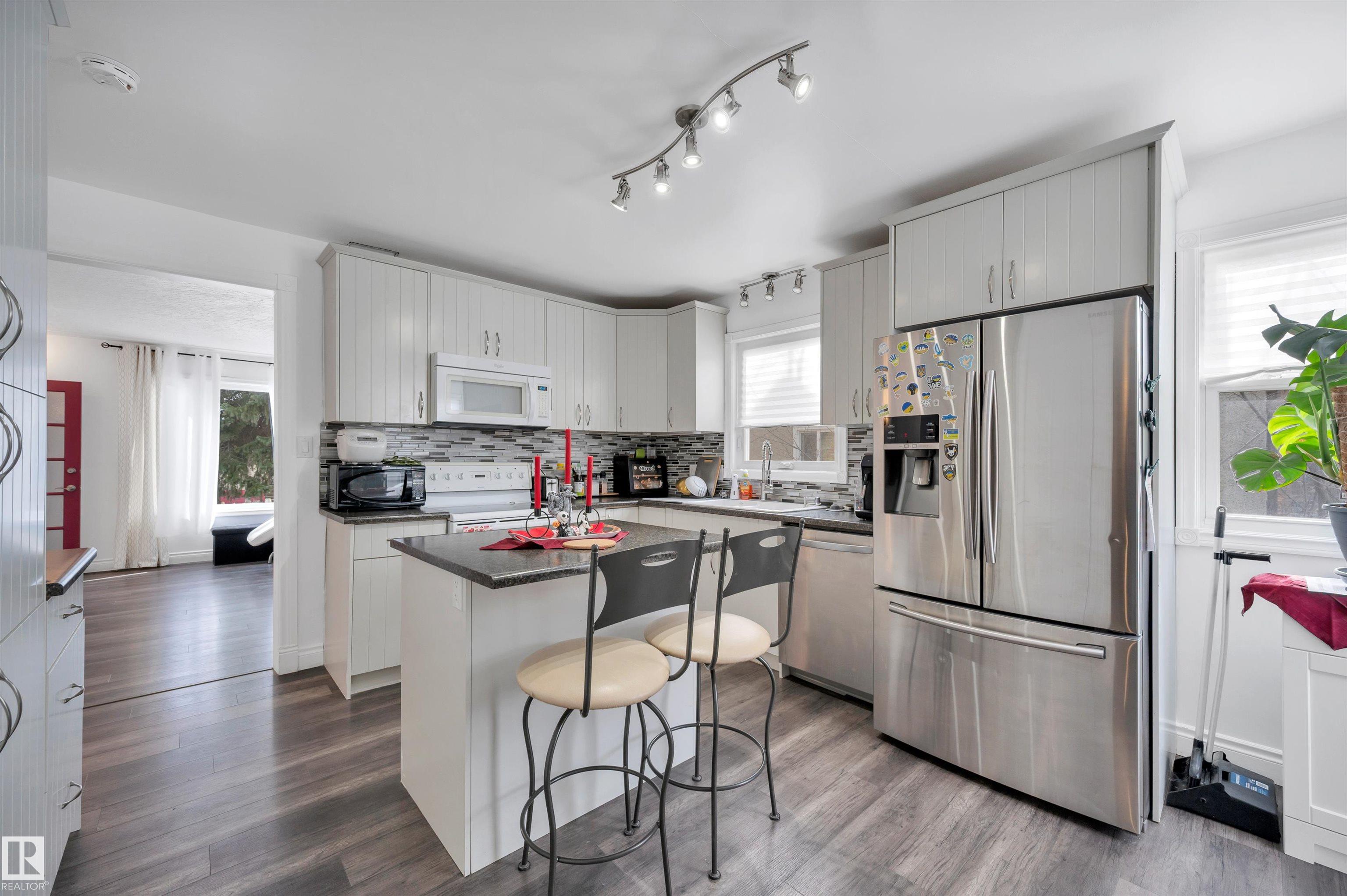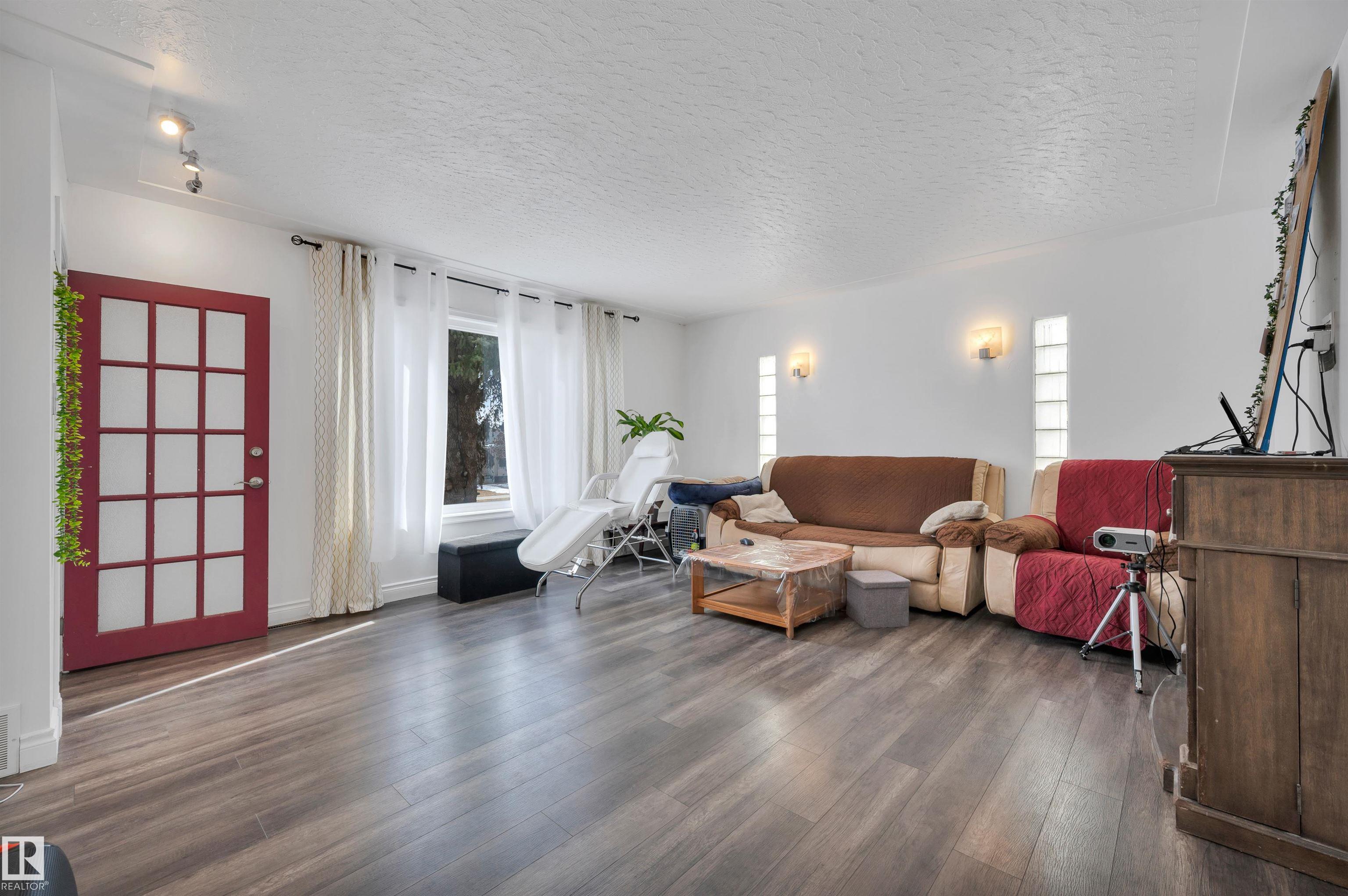 Remarkable home with 6 bedrooms and three baths has loads of appeal! Welcome to Elmwood Park, this home is on a quiet street just steps away from the Park/playground, is located in the Playground zone for quieted traffic, and near the community hall.Easy commuting access to Wayne Gretzky drive or the Yellowhead.If you are looking for a solid family home with some major updates, look no further-Major reno 2016-The windows have all been done, all flooring upgraded, and recent paint, fixtures etc throughout.Stepping into this home you will notice the abundance of natural light, and a great floorplan.Some SS appliances and lots of countertops in this eat in kitchen design.2 large bedrooms,a bath and livingroom for entertaining.Upstairs we have 2 more bedrooms, another bath and a second livingroom.Downstairs with access thru the back door we have a bath, 2 beds, den and large rec room area with potential.This is a rare style in this area,single o/s garage as well,lots of extra parking out back off the alley!