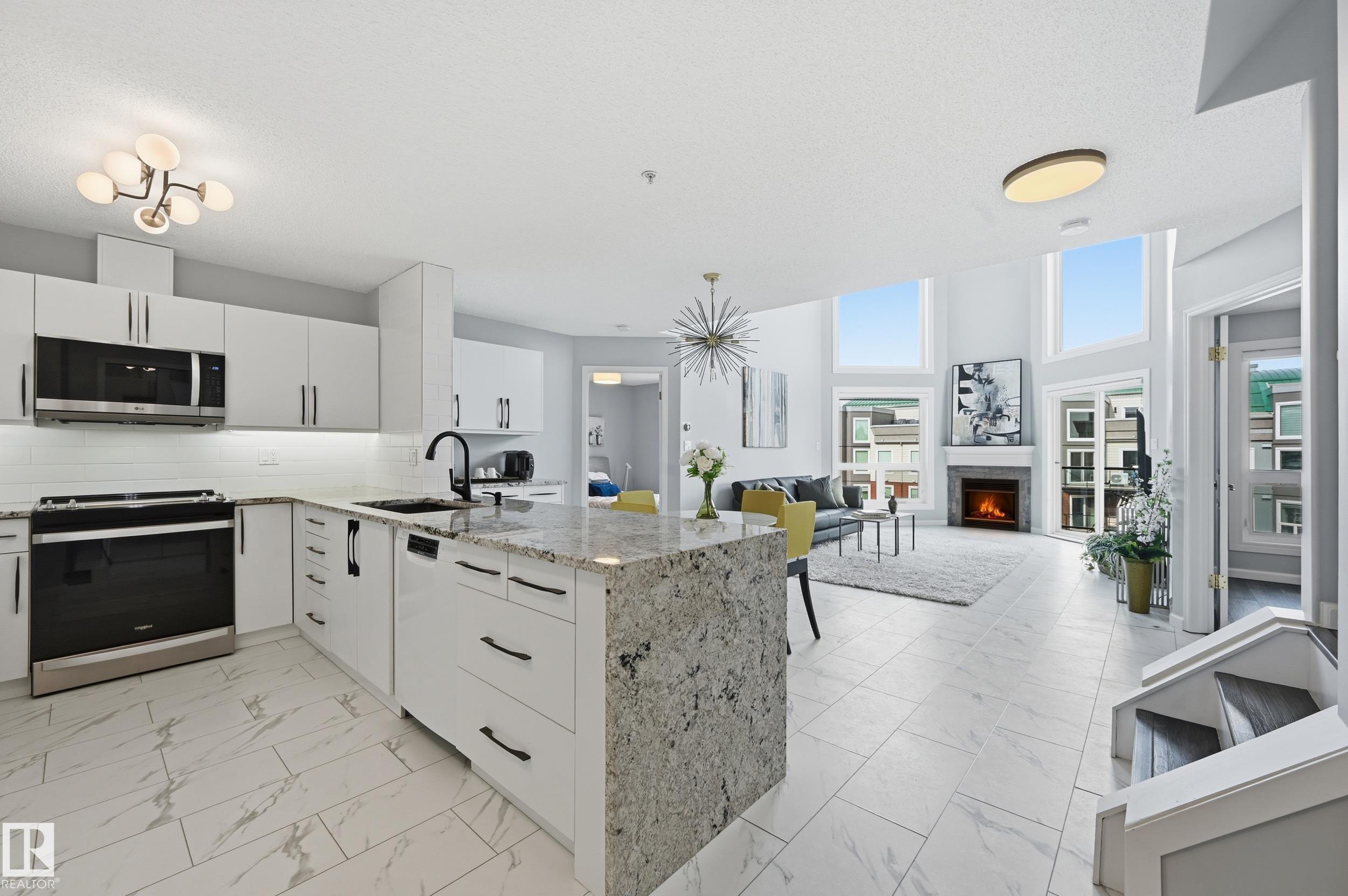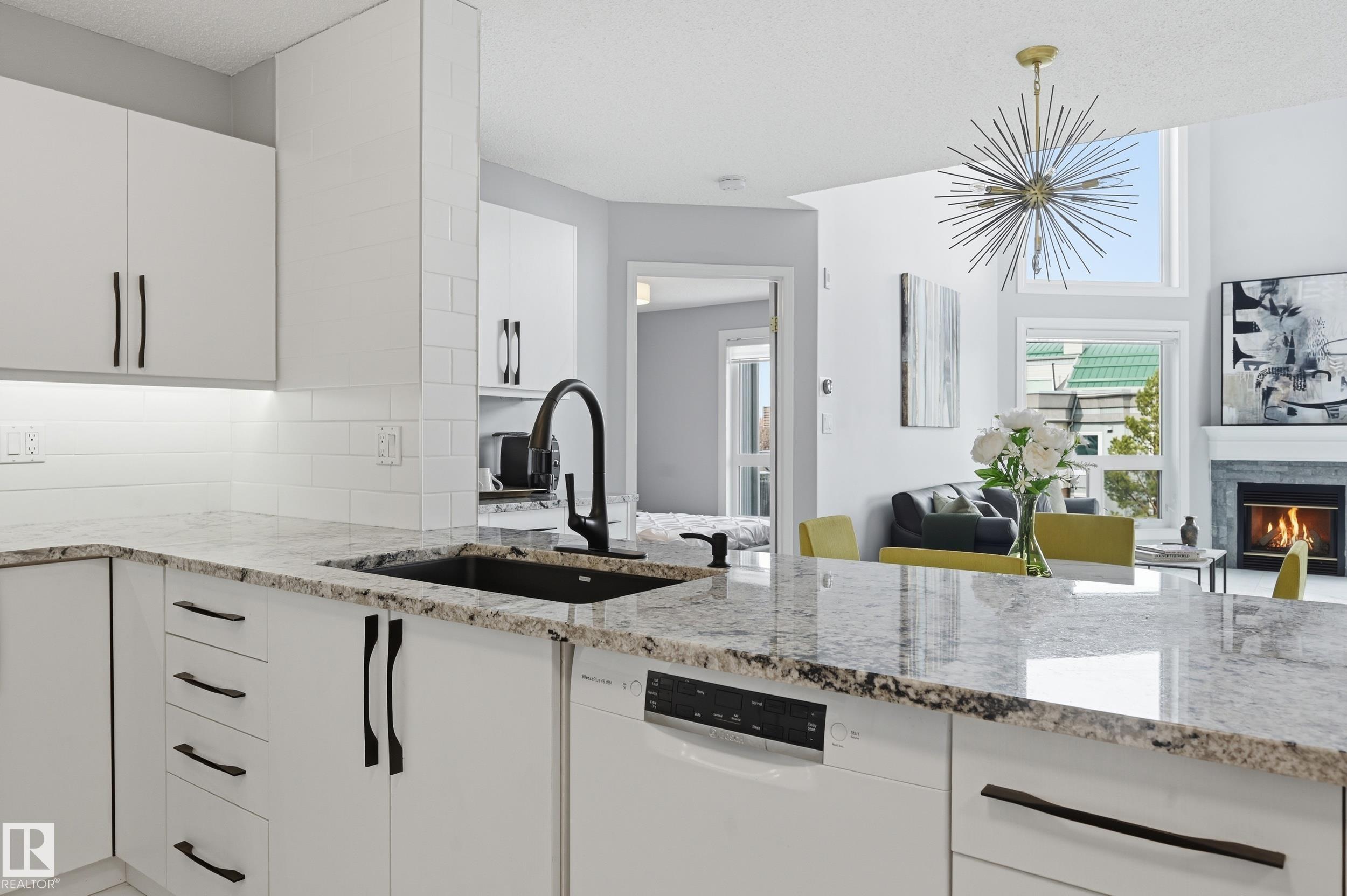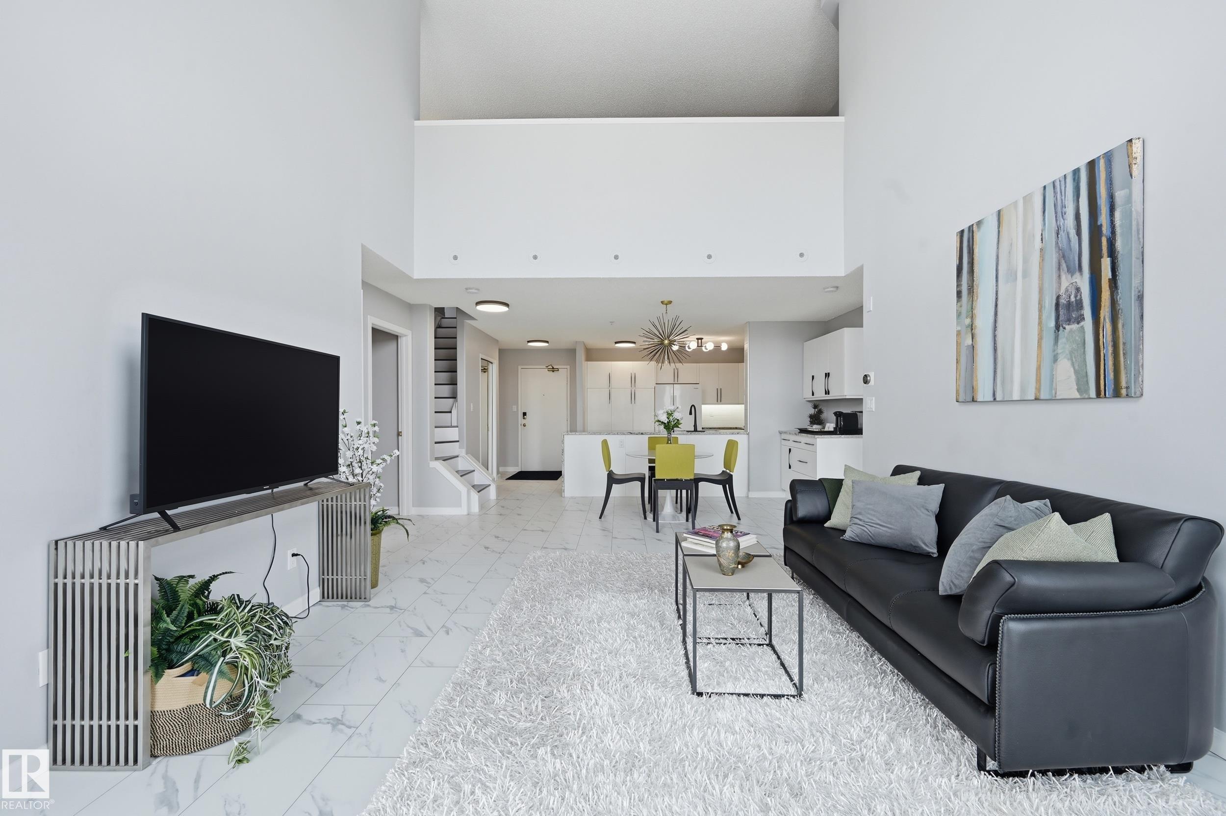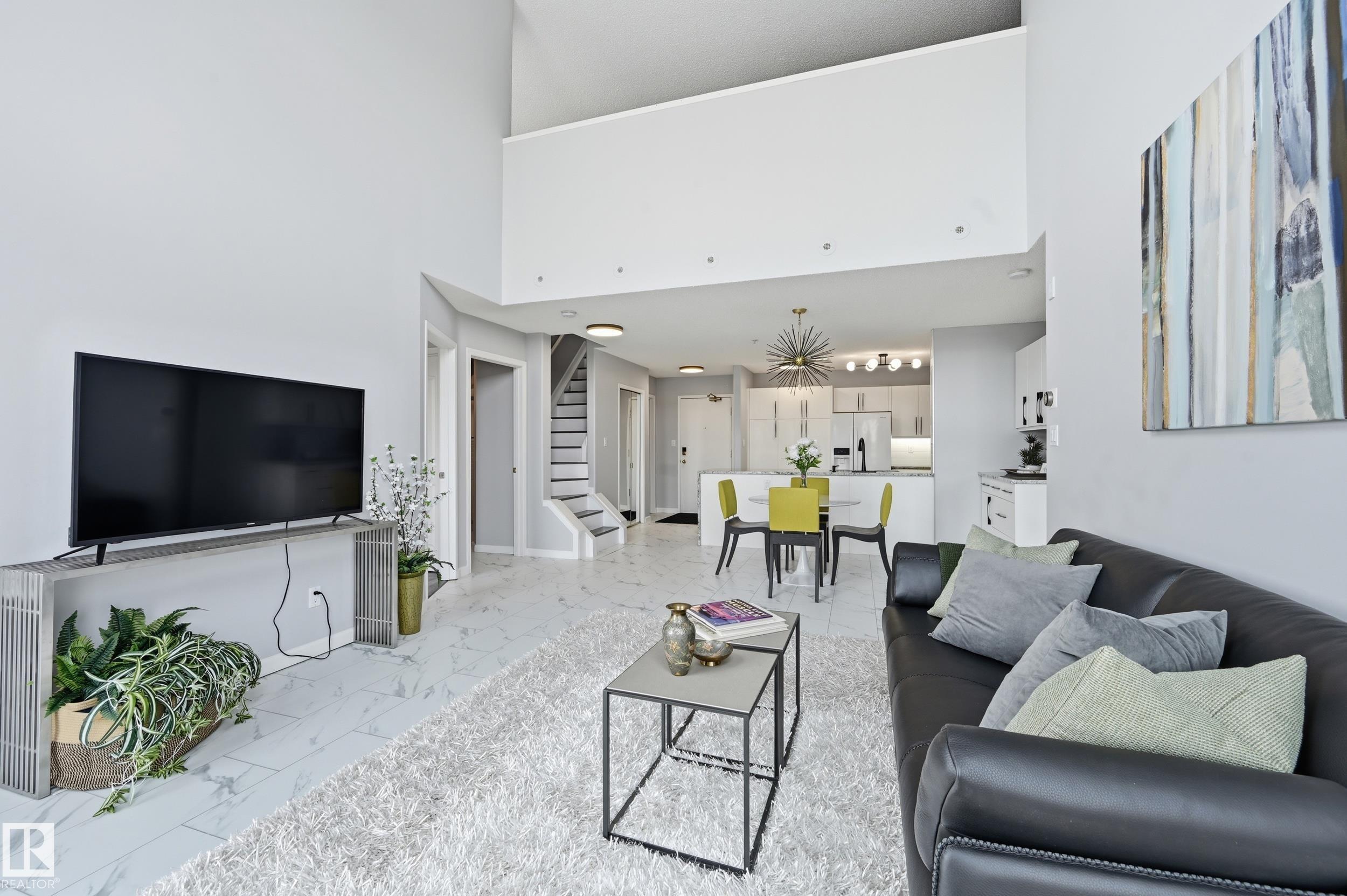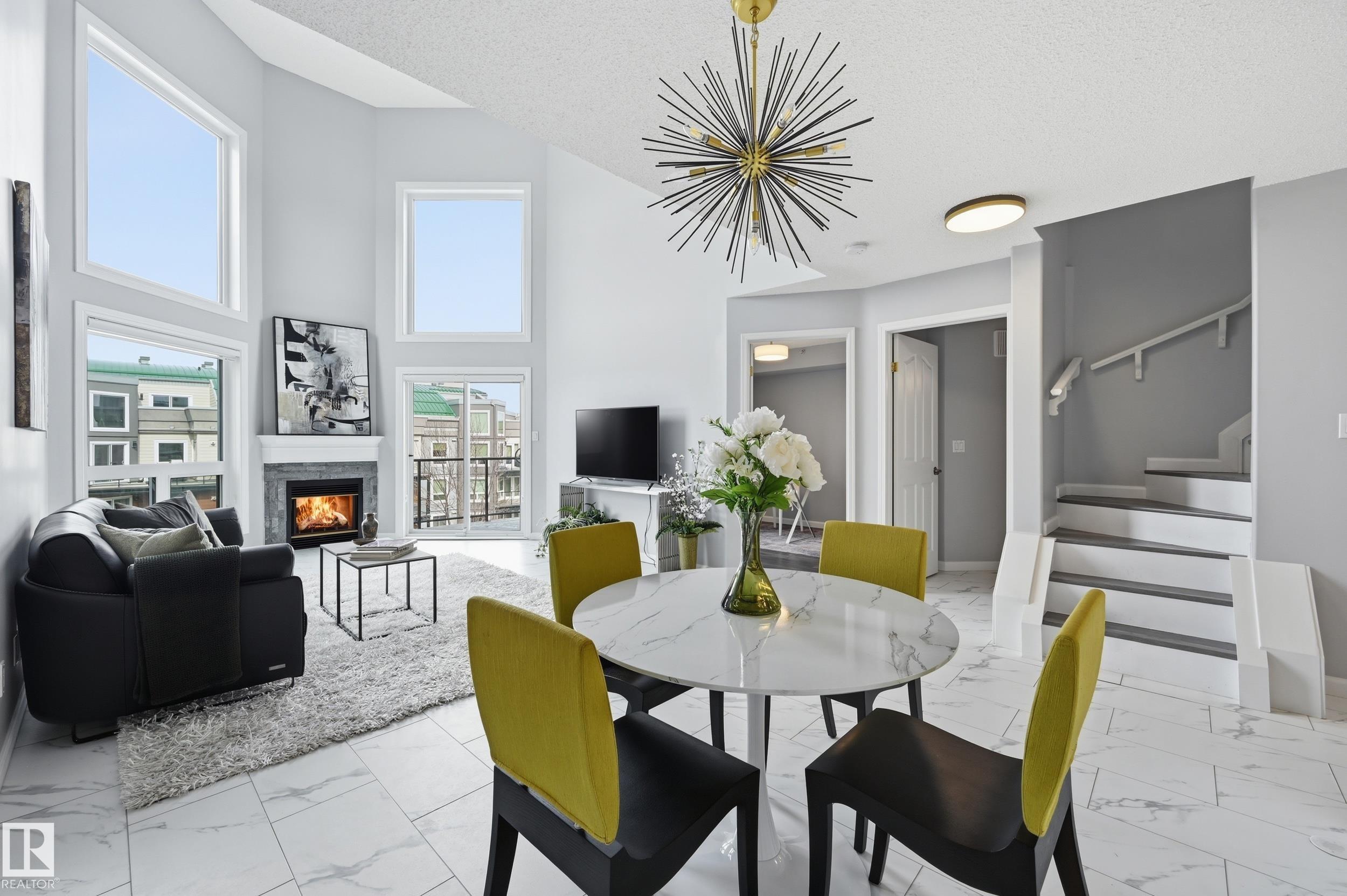 Visually stunning two-story penthouse on Mill Creek Ravine. Executive Living at it finest, in the heart of Ritchie. This 1,458 Sq Ft Condo has Soaring 20 foot vaulted ceilings with floor to ceiling windows which feature endless natural light. This premium ravine unit boasts Breathtaking views of Mill Creek ravine. Fantastic $80,000 modern renovations include a stunning chef?s kitchen with granite counters with waterfall as well as Modern appliances and lighting fixture?s. The 2 bedrooms feature their own en suite bathrooms, luxury flooring and a custom window Zebra blind package accent this beautiful unit. The huge loft / flex area may be used as a third bedroom or office area or entertainment space. There are two outdoor decks to enjoy ravine views including a private rooftop terrace ideal for entertaining or lounging or having your morning coffee. This condo features a heated underground parking stall as well as a storage locker. Up to two pets are allowed with board approval.