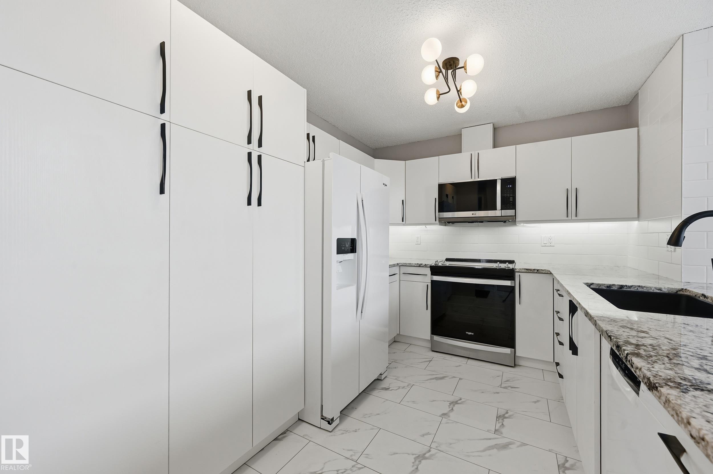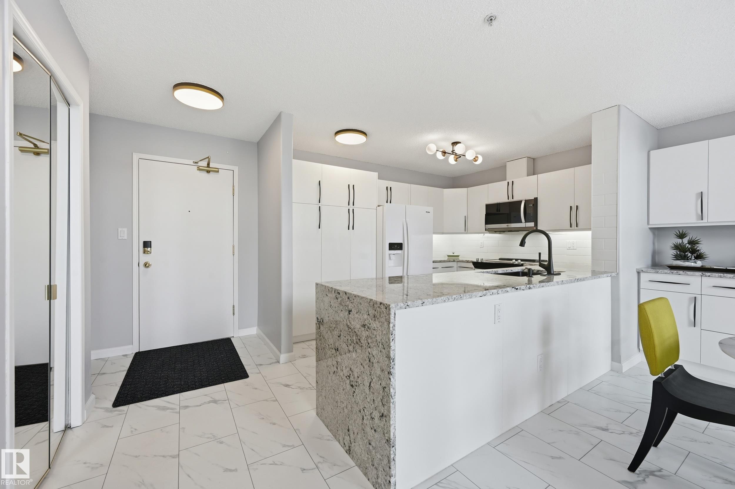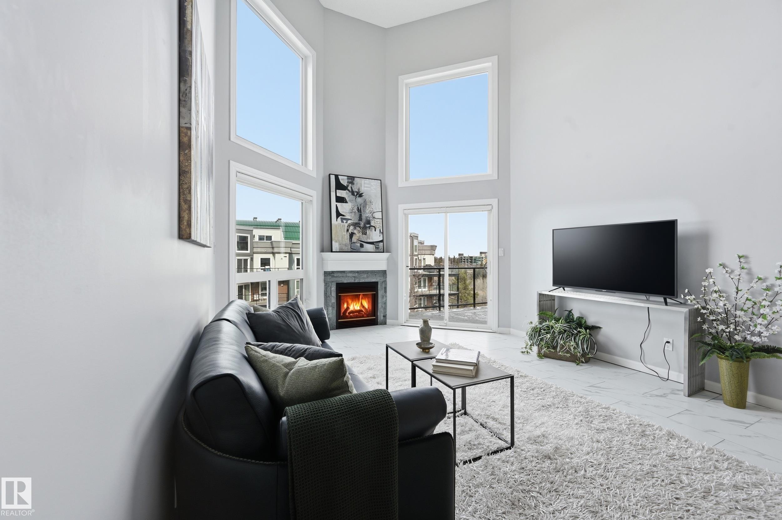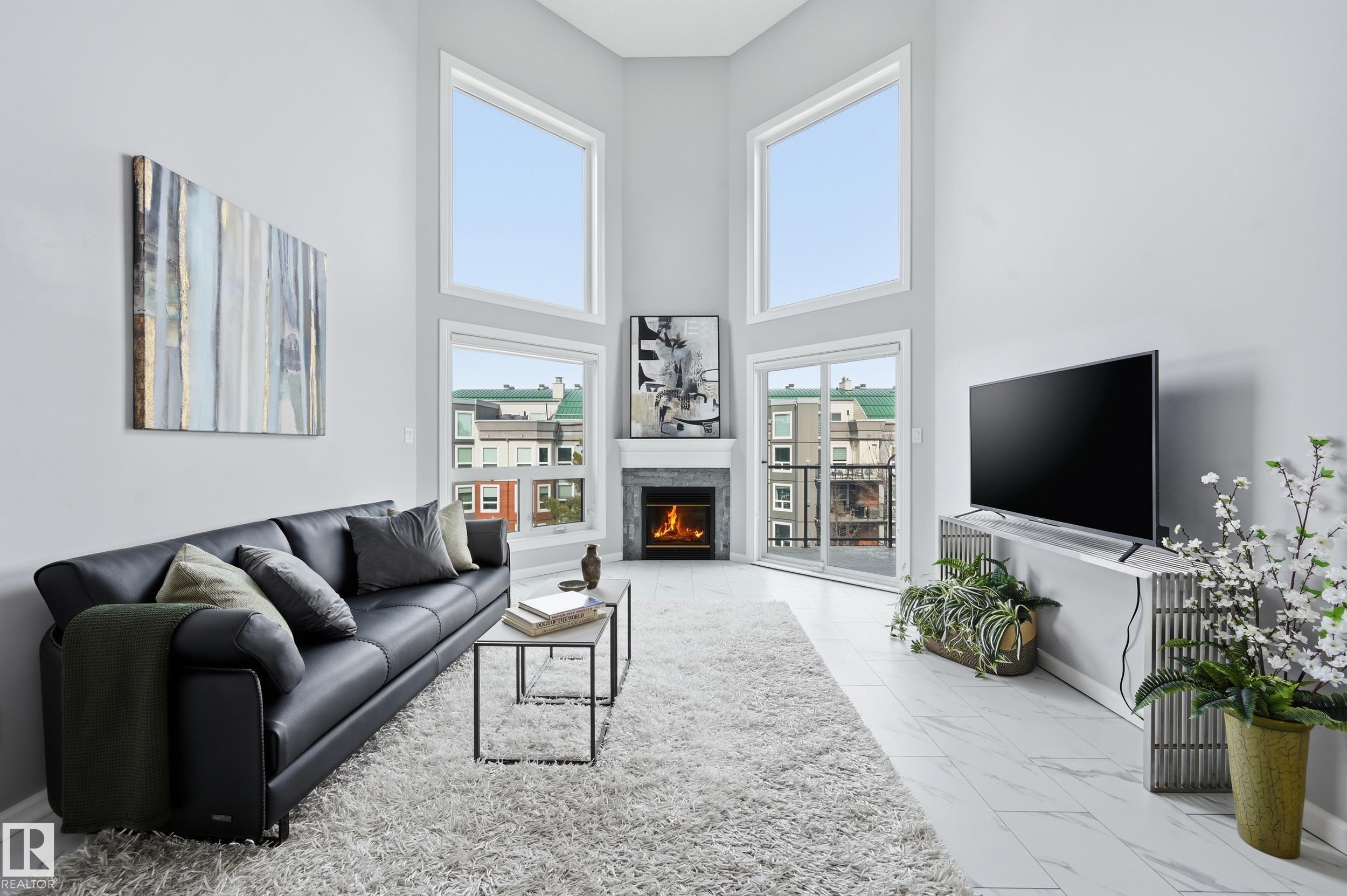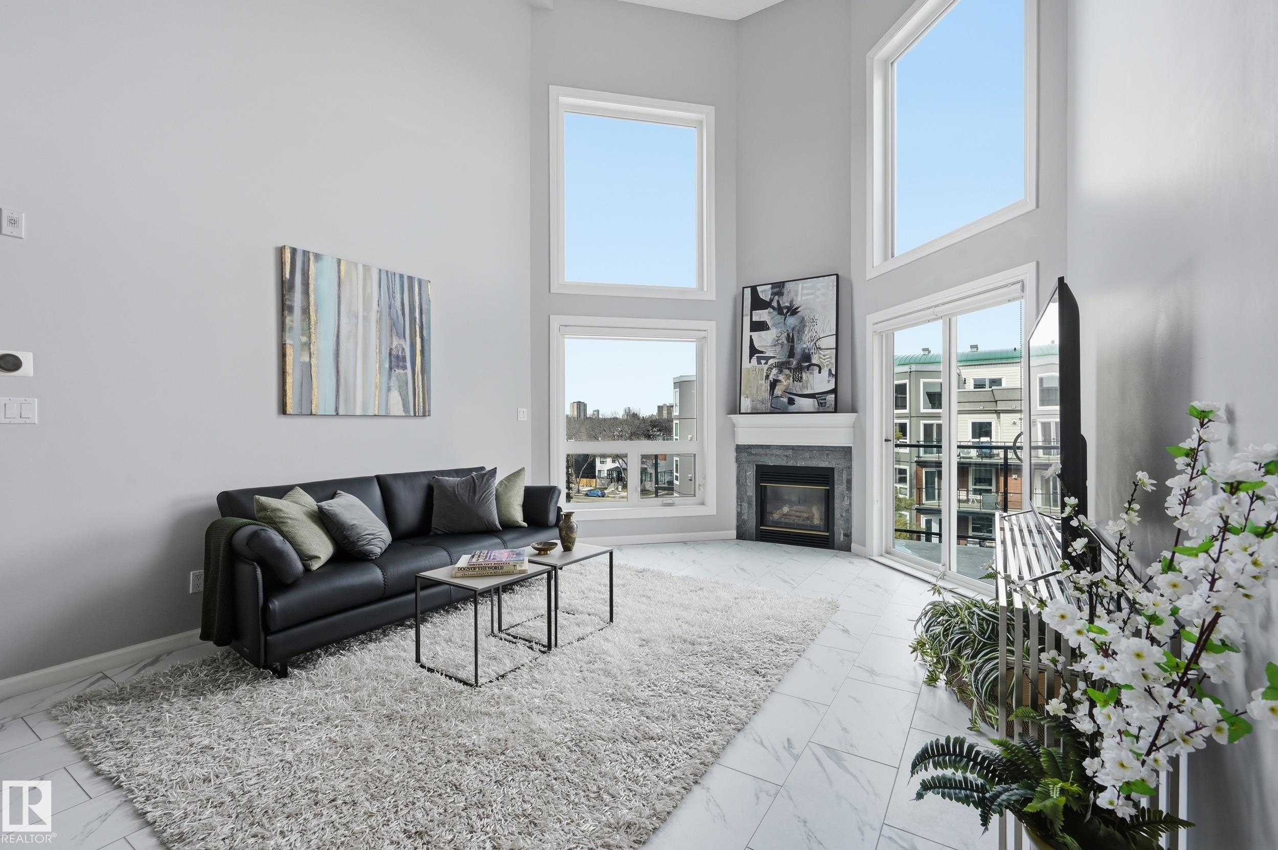 Visually stunning two-story penthouse on Mill Creek Ravine. Executive Living at it finest, in the heart of Ritchie. This 1,458 Sq Ft Condo has Soaring 20 foot vaulted ceilings with floor to ceiling windows which feature endless natural light. This premium ravine unit boasts Breathtaking views of Mill Creek ravine. Fantastic $80,000 modern renovations include a stunning chef?s kitchen with granite counters with waterfall as well as Modern appliances and lighting fixture?s. The 2 bedrooms feature their own en suite bathrooms, luxury flooring and a custom window Zebra blind package accent this beautiful unit. The huge loft / flex area may be used as a third bedroom or office area or entertainment space. There are two outdoor decks to enjoy ravine views including a private rooftop terrace ideal for entertaining or lounging or having your morning coffee. This condo features a heated underground parking stall as well as a storage locker. Up to two pets are allowed with board approval.