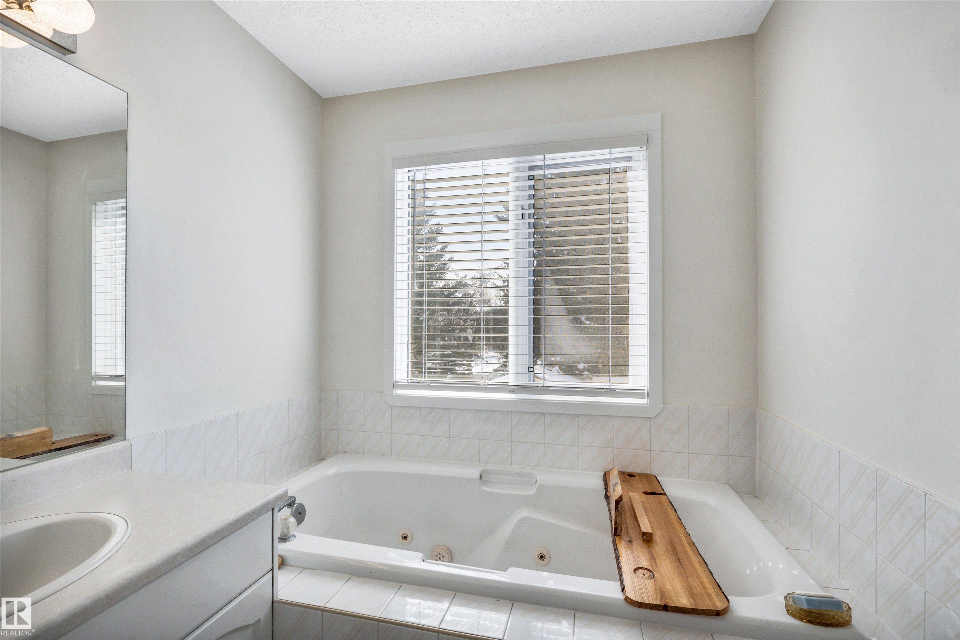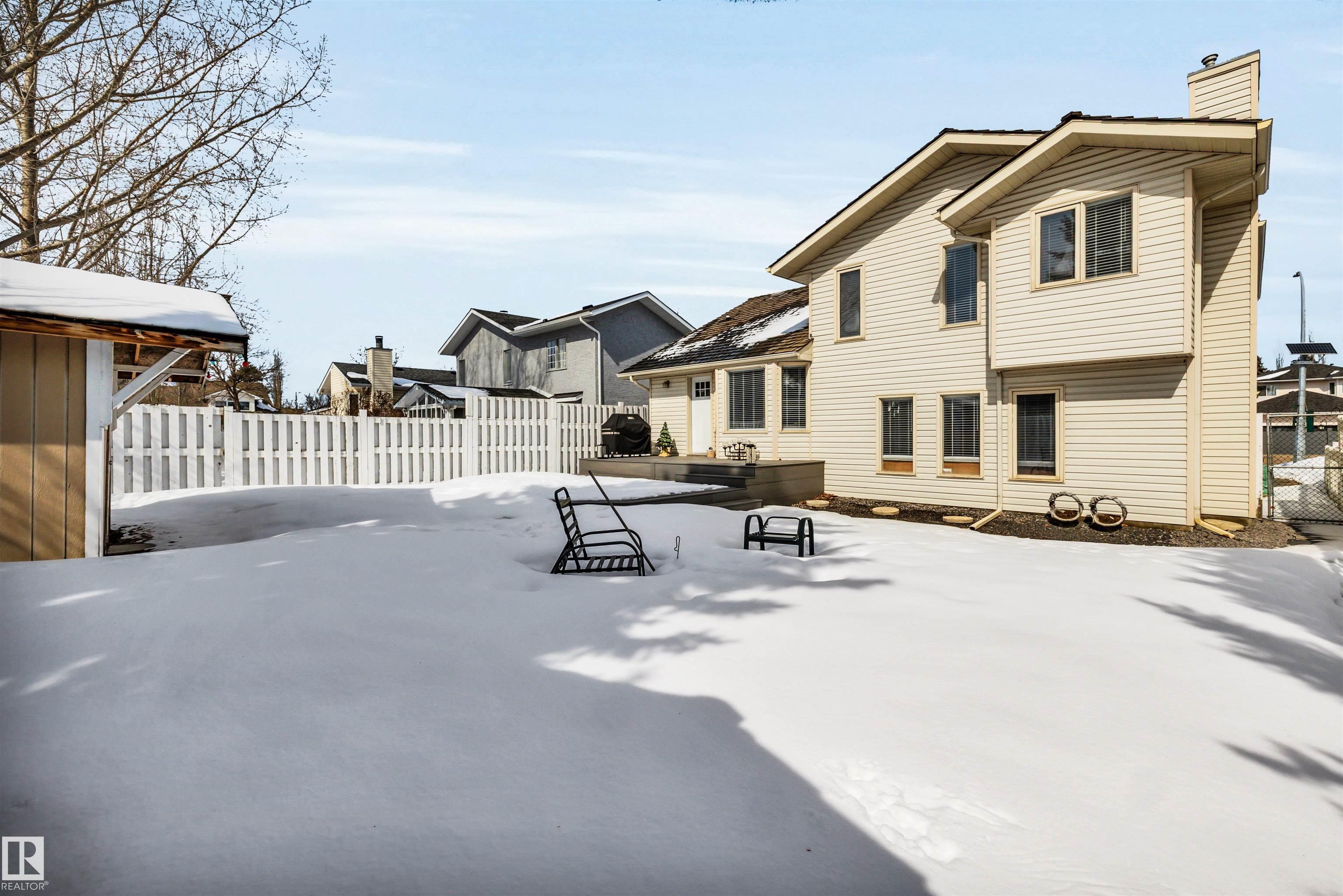 Bright, sunny and spacious 4 level split in Erin Ridge that is well-kept. With 2024 sq. ft. on the top three levels plus a finished basement, there is plenty of space for your growing family. Main floor features large living and dining rooms with a vaulted ceiling and spacious kitchen equipped with stainless steel appliances and large eating area. Three good sized bedrooms upstairs including a large primary bedroom with walk-in closet and 4 pce ensuite with walk-in shower and jetted tub. Newer hardwood flooring on the main and top floors. The 3rd level has a huge family room with a gas fireplace that opens to the kitchen, a 3rd full bath, a 4th bedroom (currently used as a hair salon), a laundry room and access to the heated garage. The basement has a 5th bedroom, big recreation room, and crawl space that is amazing for storage! New interior doors, trim and baseboards on the top 3 levels! Central A/C. Enjoy the SW facing backyard this summer from the 2-tiered, maintenance free deck and large patio area!