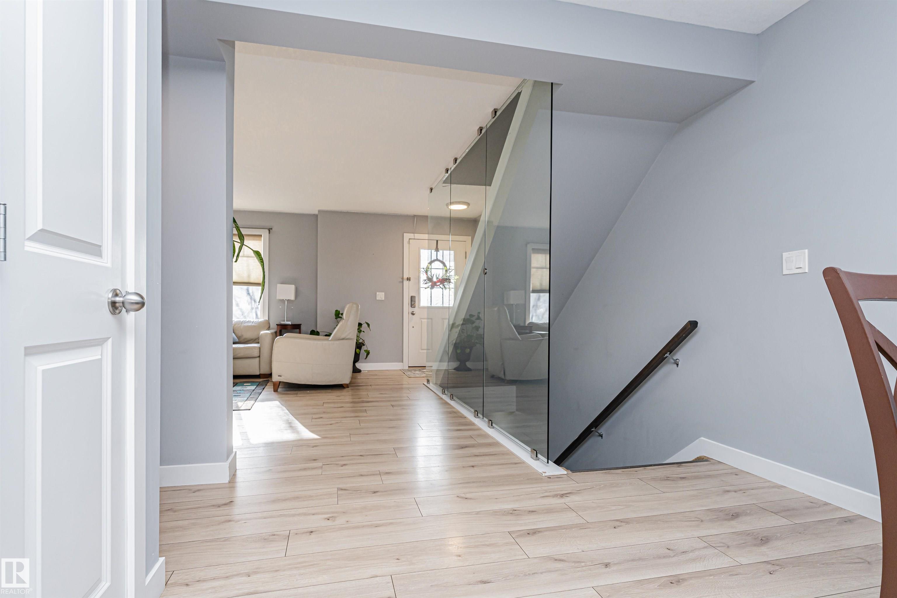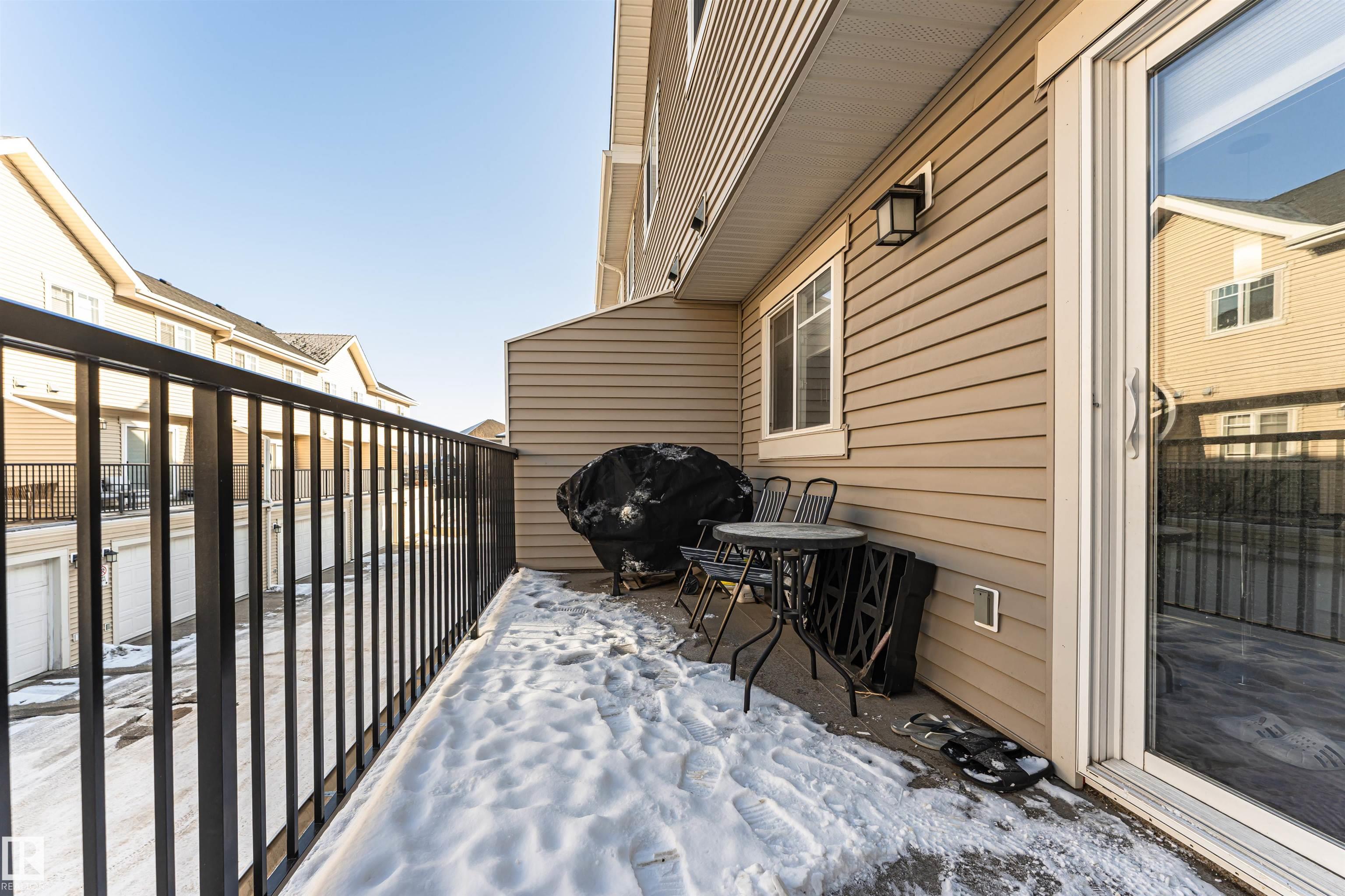 Welcome to this quiet 3 bedroom Townhome in the sought after area of Albany. The main floor is bright and spacious which features a 2 pc powder room, good size kitchen separated from a large dining area with access to the balcony, great for summer entertainment. The glass walled stair case enhances the bright open feel of the living room. Upper level primary bedroom has an 3 pc ensuite and walk in closet. There are 2 other good size bedrooms which share a 4 pc main bath in the hallway. The Lower level has a washer, dryer and access to the oversized attached double garage which features a new garage door opener and 2 controls. This home is located minutes away to all amenities and access to Anthony Henday. This one will not last long!