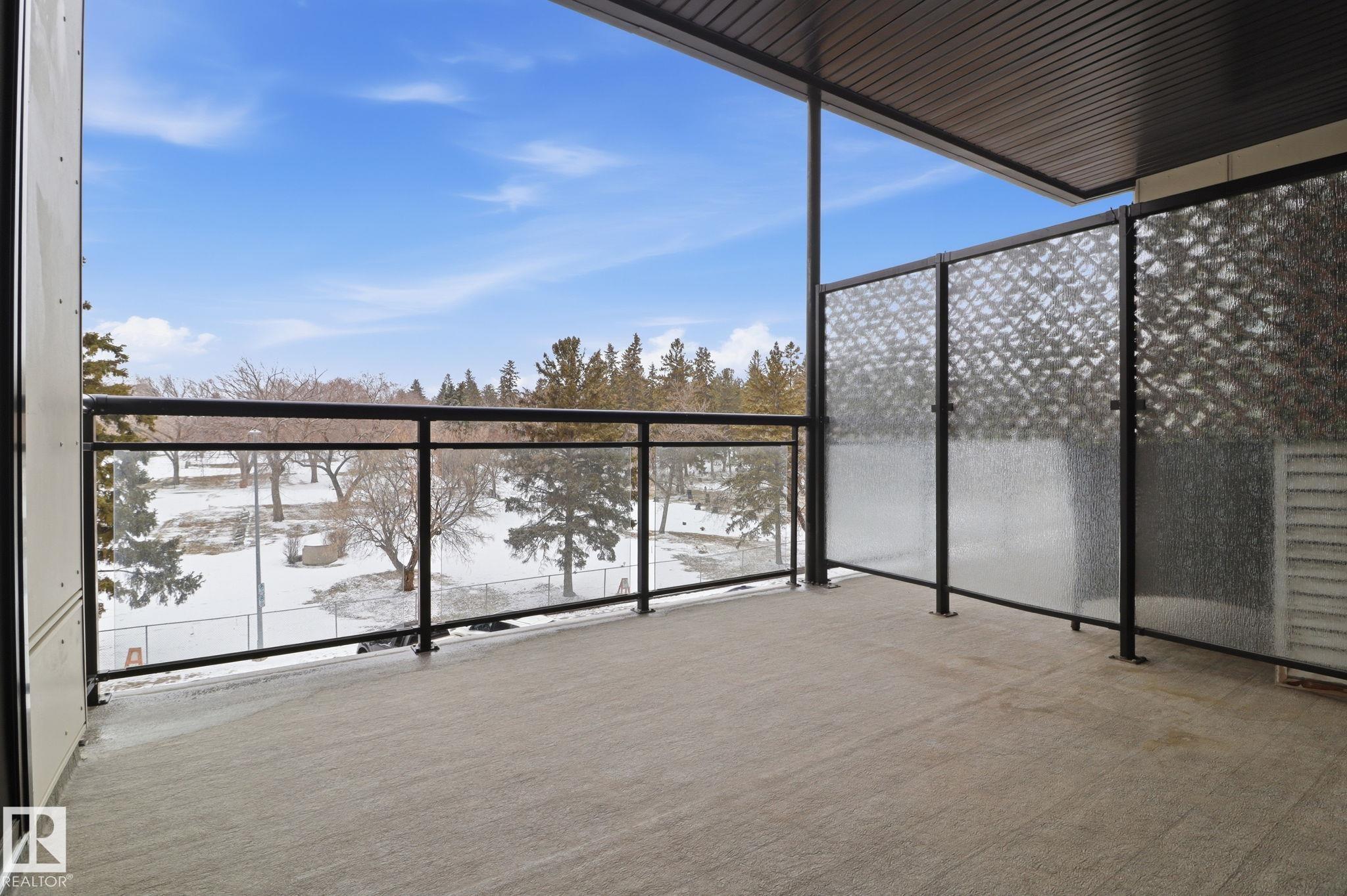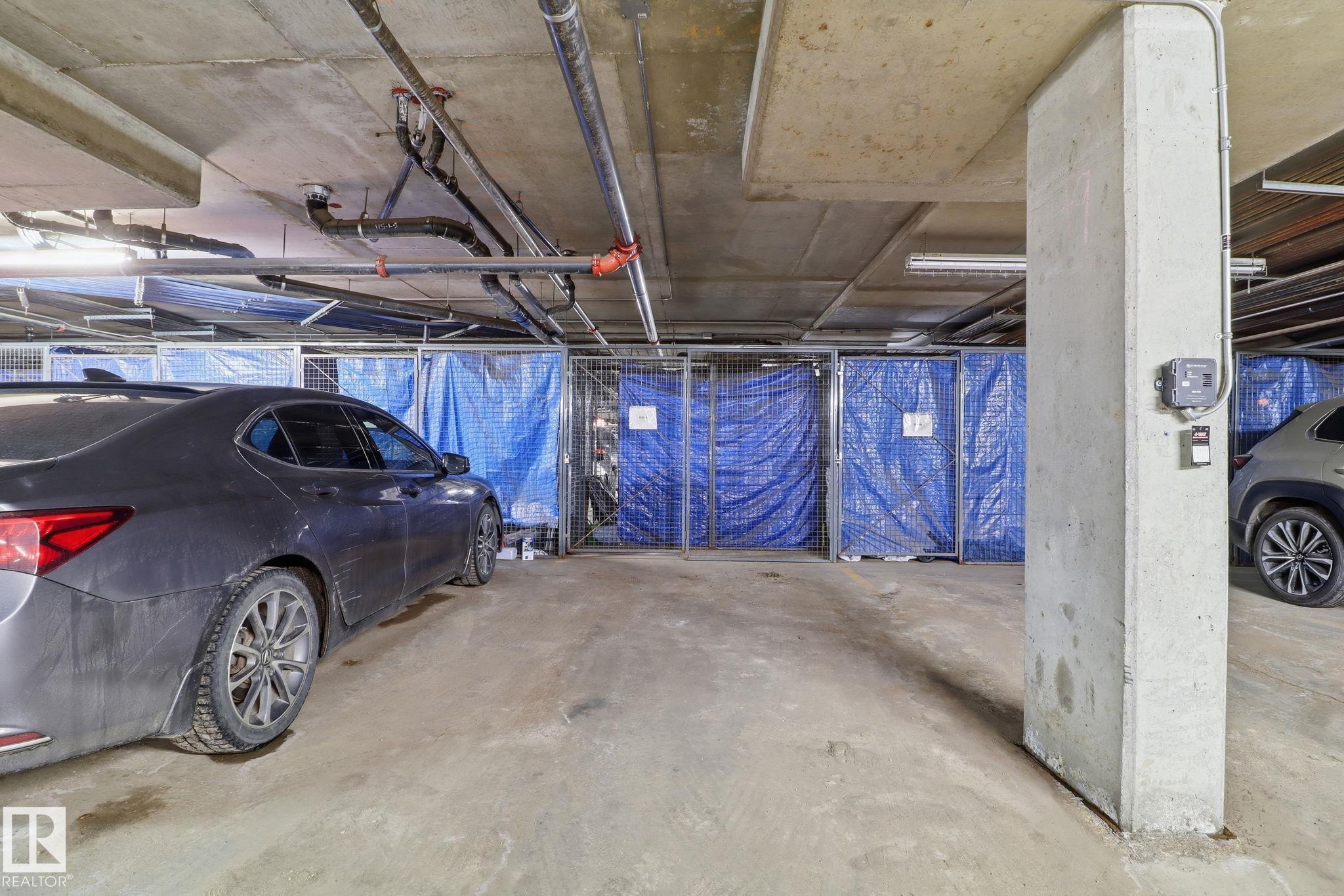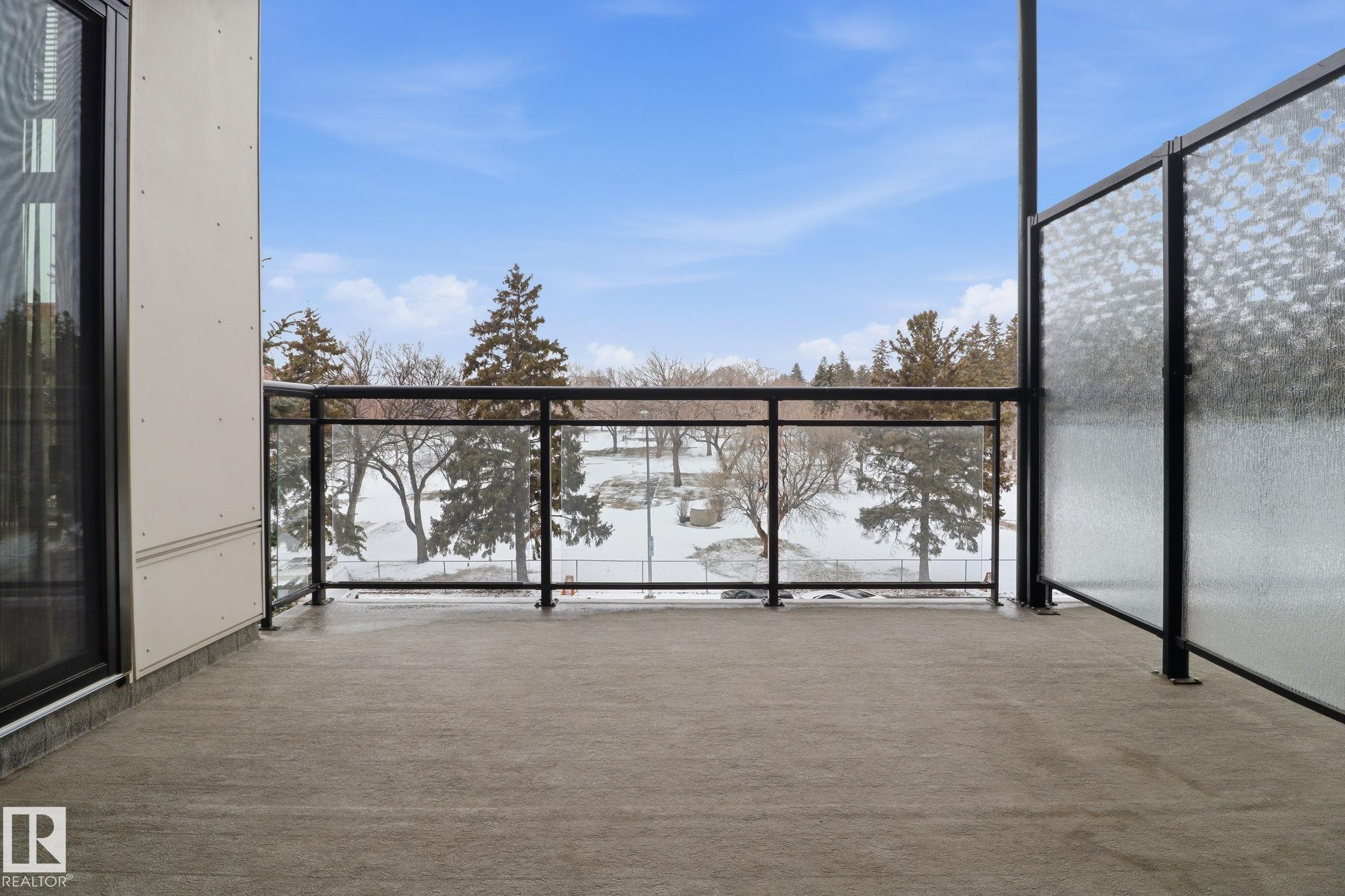 This 1,097 sq ft, 2-bedroom, 2-bath condo is on the 3rd floor of a modern development in a quiet, walkable neighbourhood. Featuring an Art Deco-inspired design with an open-concept layout and 10? ceilings, the unit boasts new maple hardwood flooring and ceramic tile in bathrooms. The kitchen is equipped with solid maple cabinets, subway tile backsplash, and upgraded stainless steel appliances. The primary suite offers a generous walk-in closet and an ensuite with a deep soaker tub. In-suite front-loading washer and dryer add convenience. Floor-to-ceiling windows flood the space with natural light and provide striking views, while a sliding glass door leads to a 120 sq ft walk-out balcony with a natural gas hookup, overlooking a lush park. Included are one heated, security-monitored underground parking stall, a large secured storage cage, and free on-street parking nearby. Close to Unity Square and the Brewery District, restaurants, shopping, groceries, and just a 15-minute walk to MacEwan University.