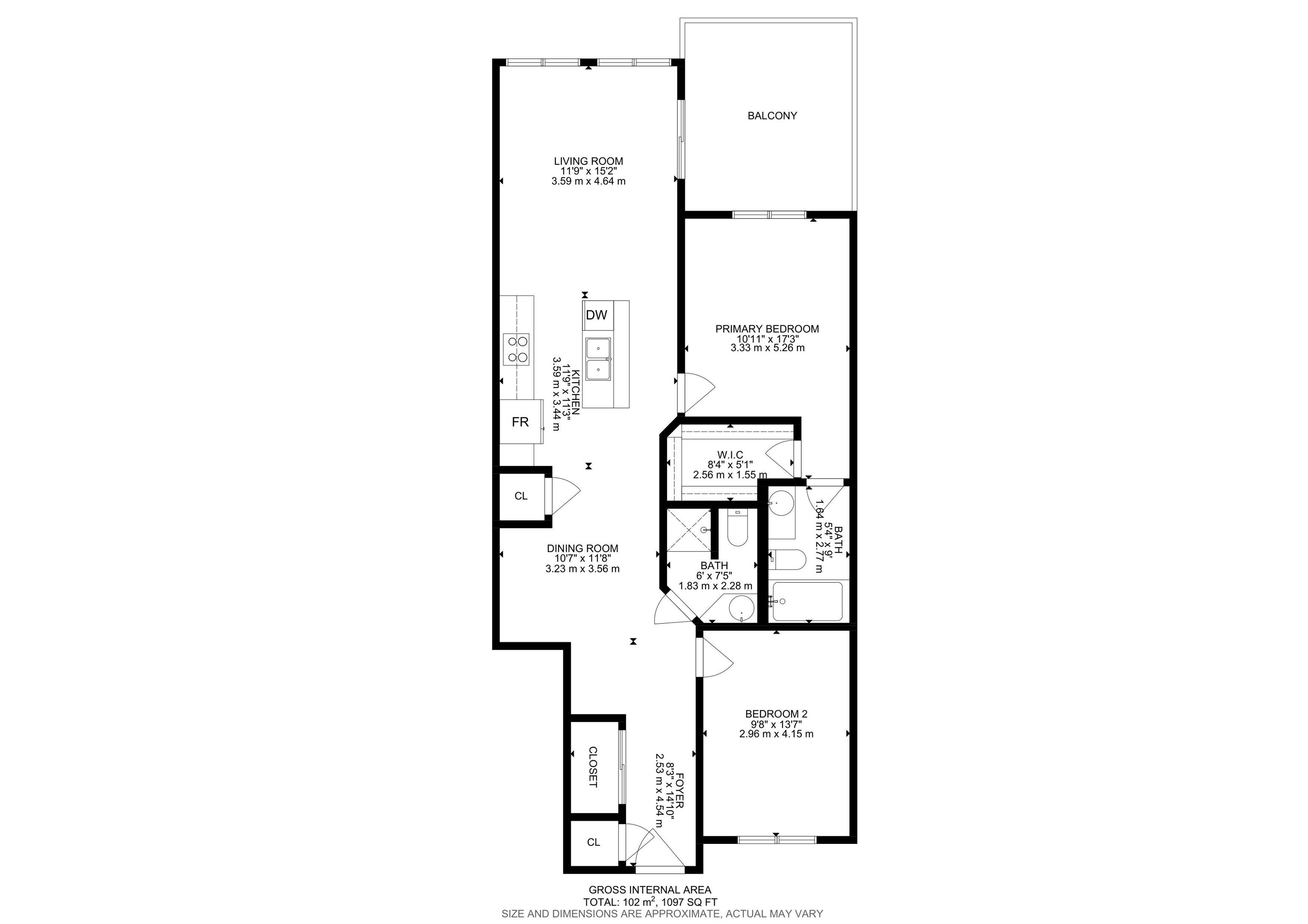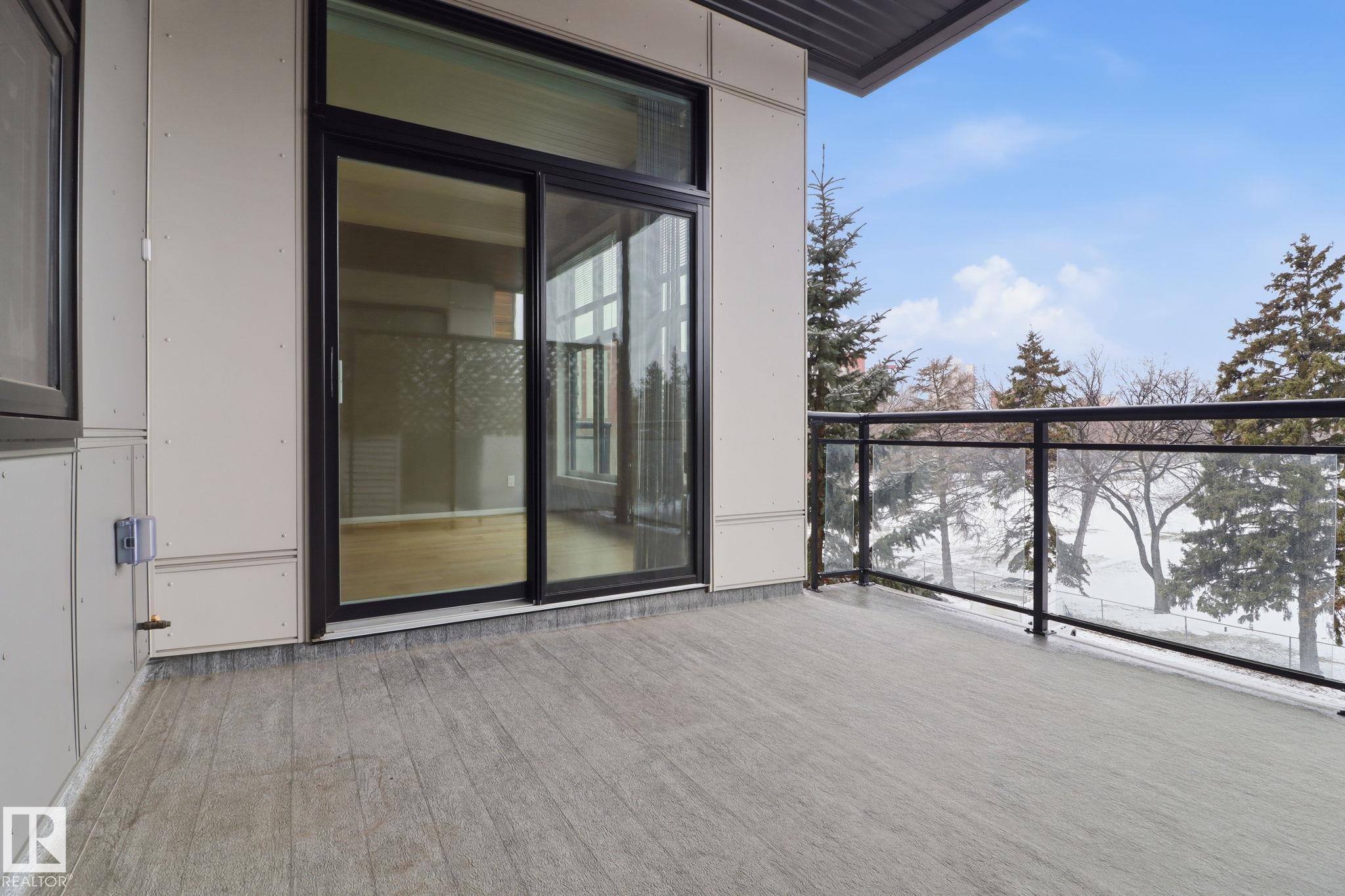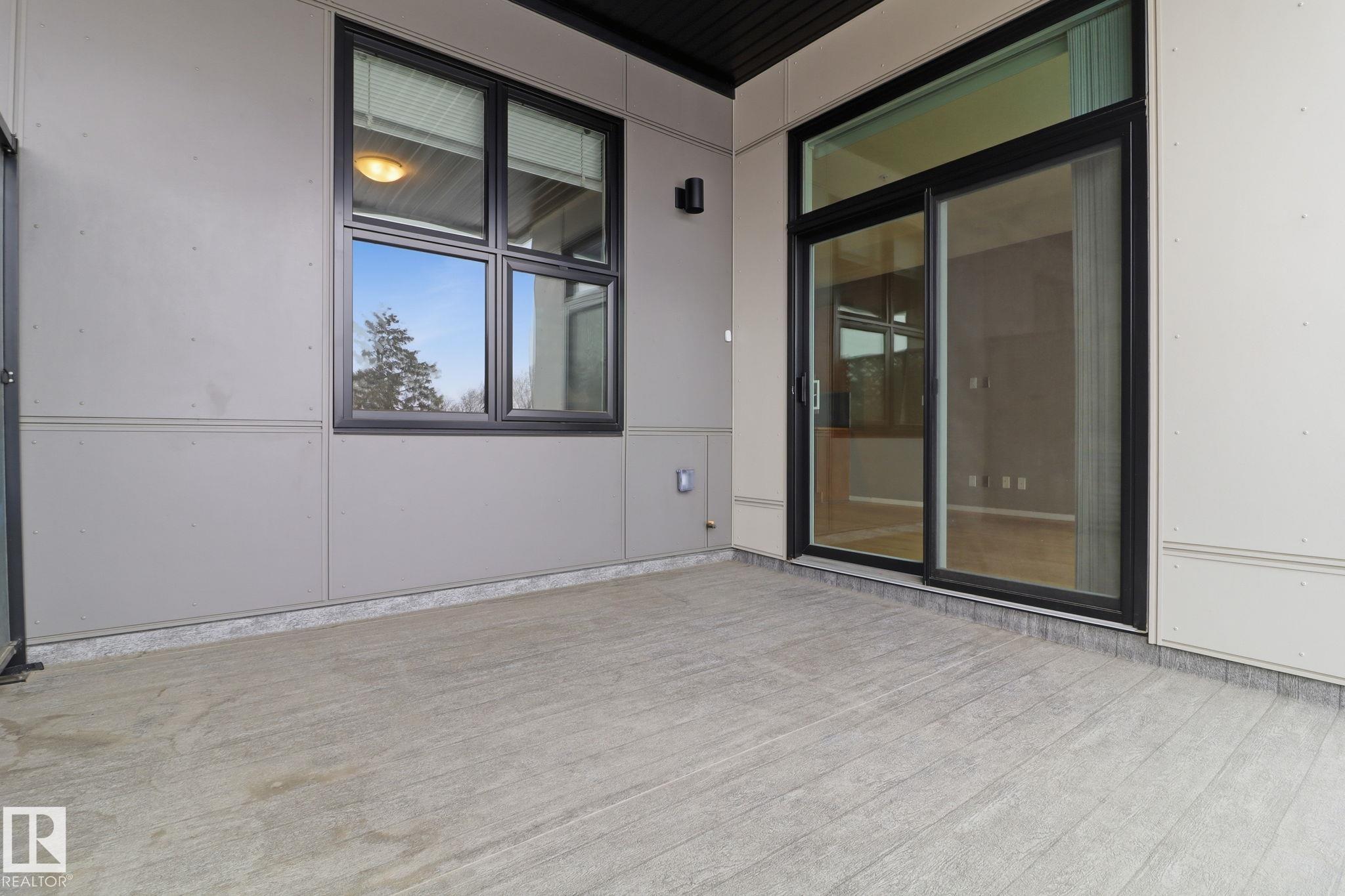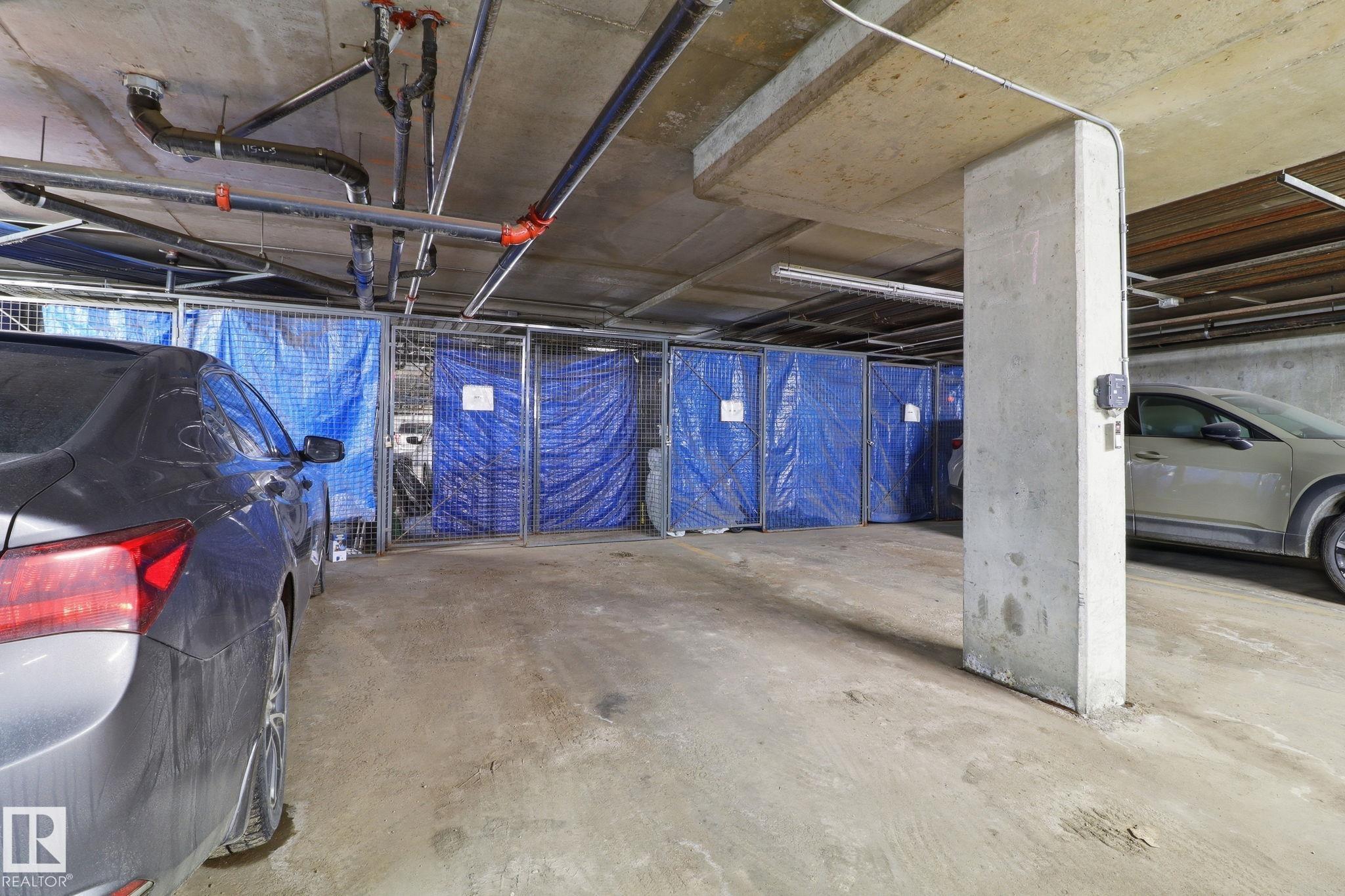 This 1,097 sq ft, 2-bedroom, 2-bath condo is on the 3rd floor of a modern development in a quiet, walkable neighbourhood. Featuring an Art Deco-inspired design with an open-concept layout and 10? ceilings, the unit boasts new maple hardwood flooring and ceramic tile in bathrooms. The kitchen is equipped with solid maple cabinets, subway tile backsplash, and upgraded stainless steel appliances. The primary suite offers a generous walk-in closet and an ensuite with a deep soaker tub. In-suite front-loading washer and dryer add convenience. Floor-to-ceiling windows flood the space with natural light and provide striking views, while a sliding glass door leads to a 120 sq ft walk-out balcony with a natural gas hookup, overlooking a lush park. Included are one heated, security-monitored underground parking stall, a large secured storage cage, and free on-street parking nearby. Close to Unity Square and the Brewery District, restaurants, shopping, groceries, and just a 15-minute walk to MacEwan University.
