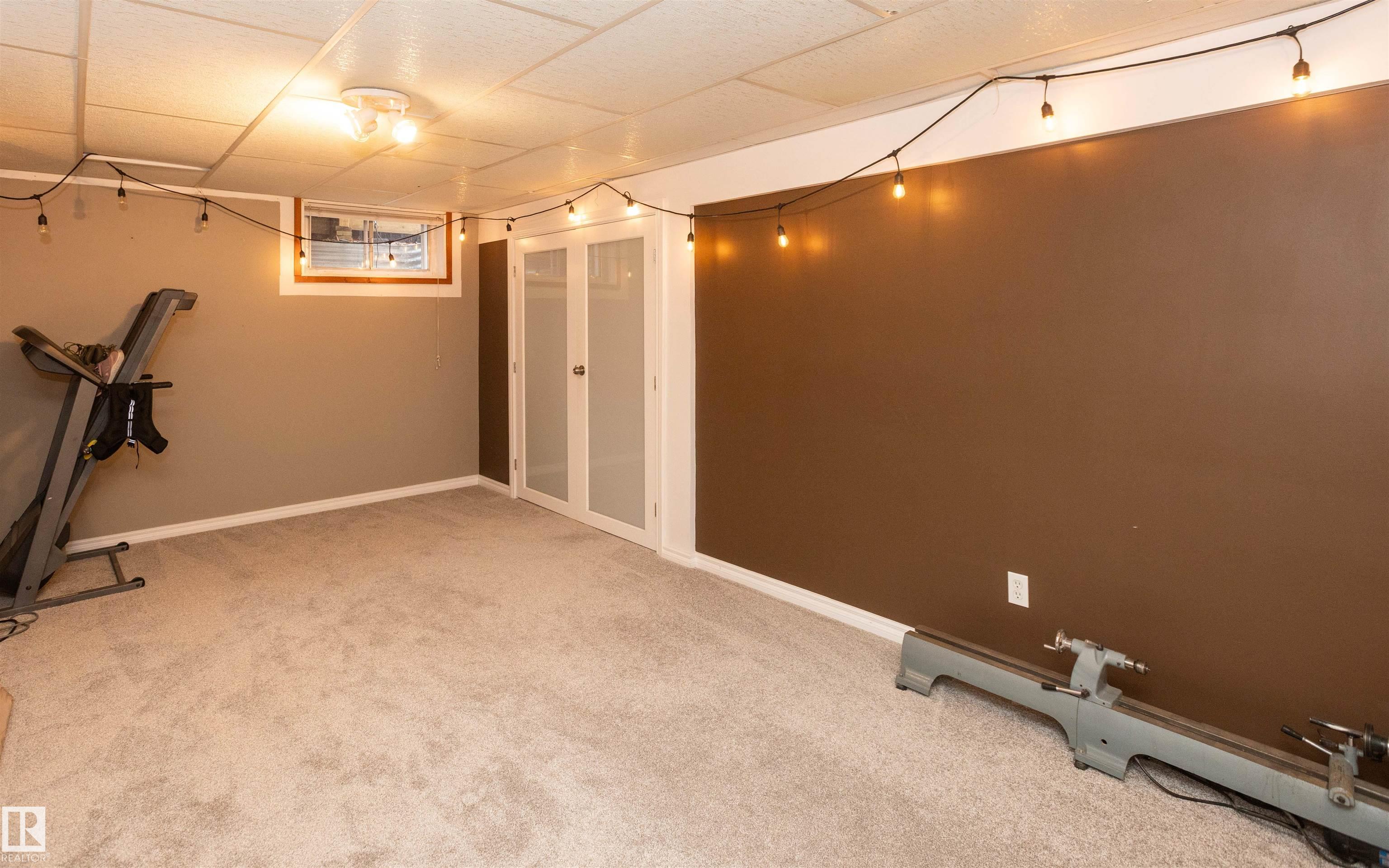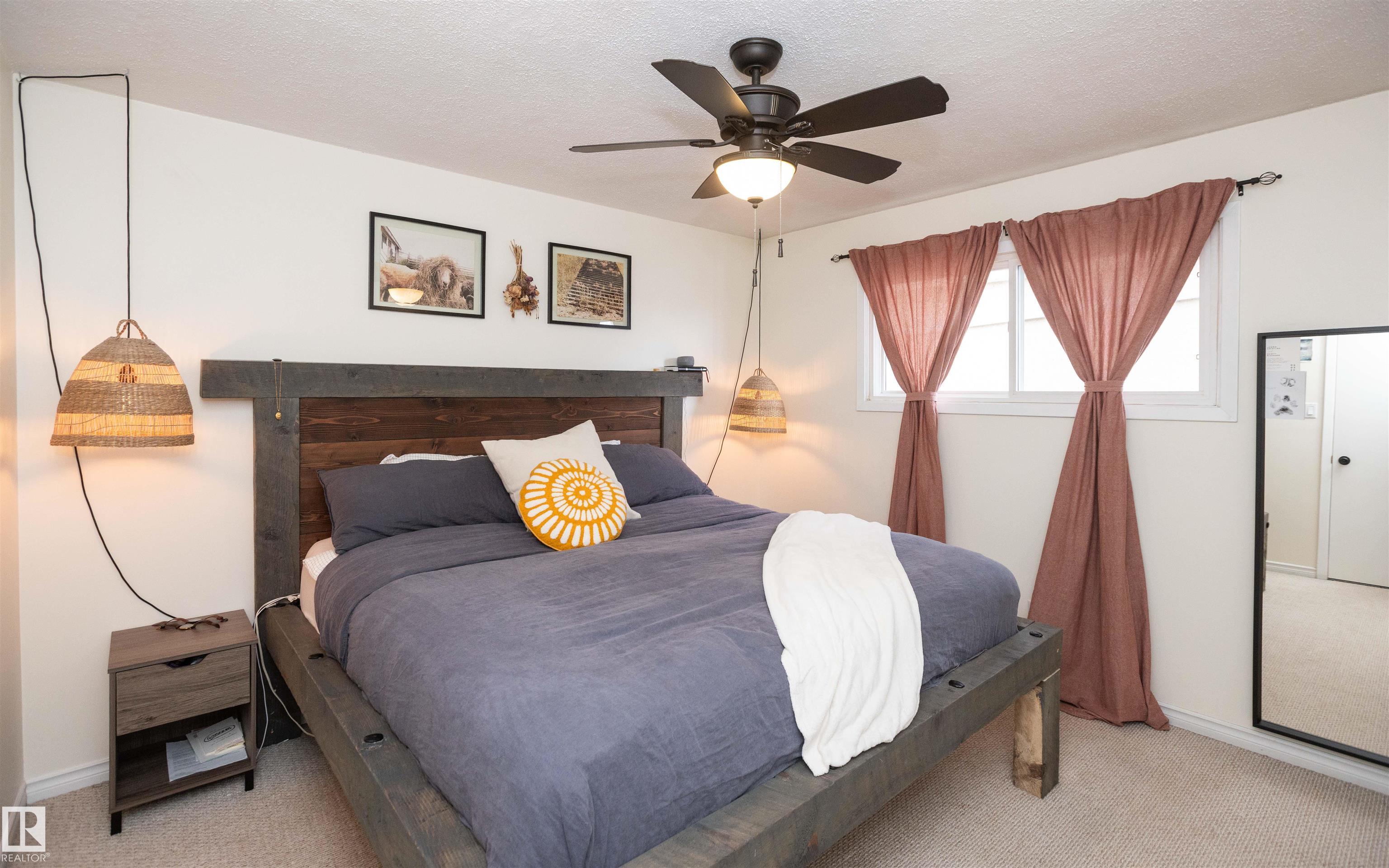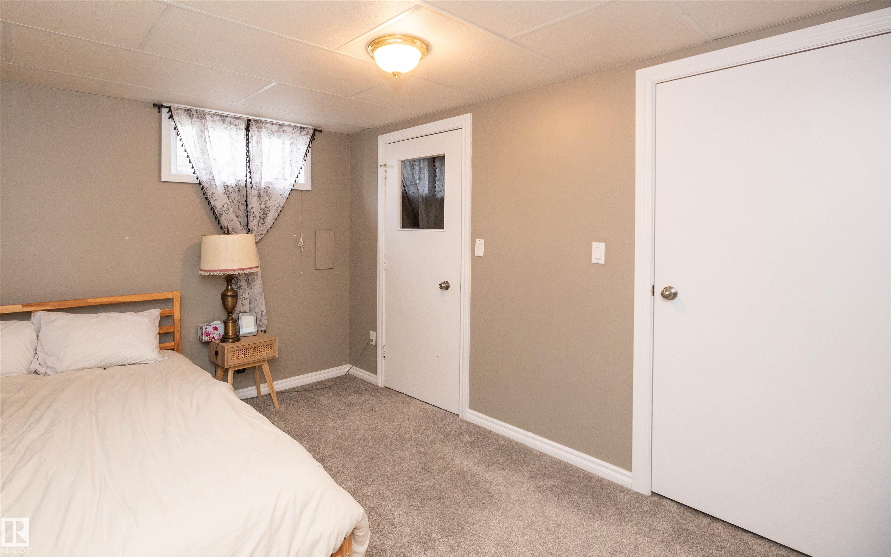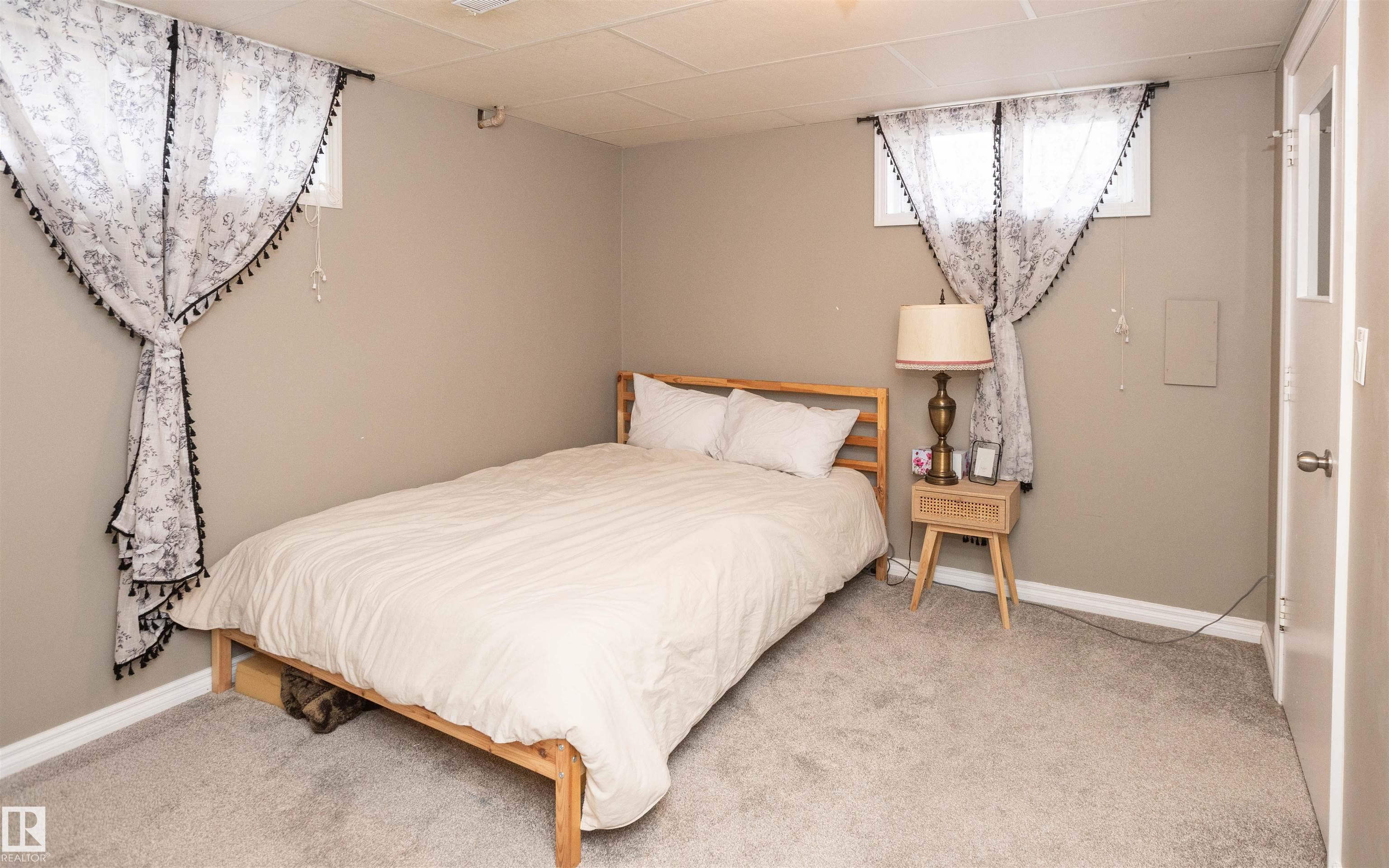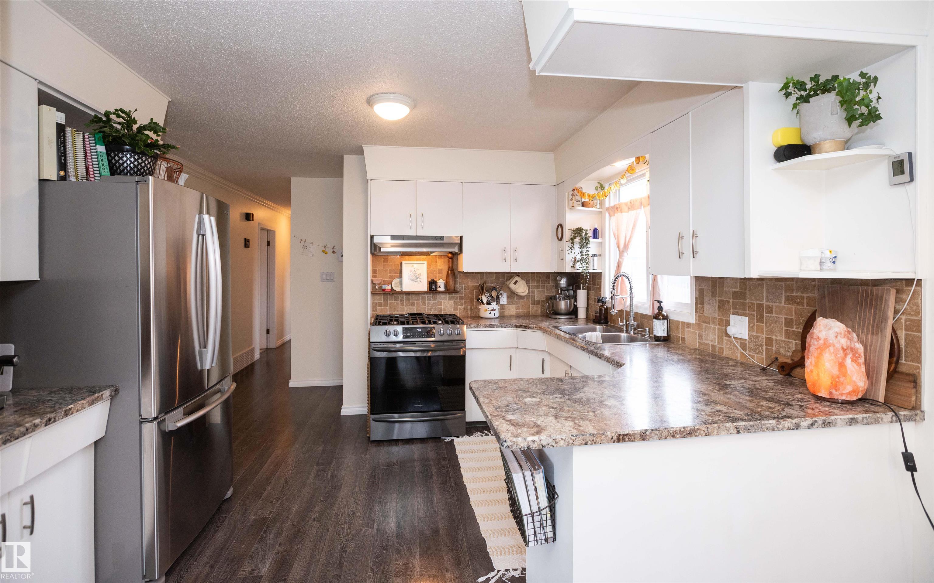 Across from Westlock Elementary school is a lovely home. Bright south-facing kitchen w/white cabinets, nice countertops, beautiful appliances (gas stove 1 yr) & nice eating area. Patio doors to deck on west. Spacious living room is lovely & bright. Three bedrooms main floor- the primary bdrm has full wall of closets. Bdrm 2 - nice size & bdrm 3 makes a nice den or office w/patio doors to large deck. Main floor bath w/double sinks, deep soaker tub & ceramic floor. Downstairs you'll find a massive family room w/beautiful carpet, large bdrm w/French doors & ensuite bath, laundry room w/plenty of space & front load W/D, storage room & furnace room. On your front deck sit and watch the fireworks on July 01. In the rear yard enjoy the beautiful new deck, trees & privacy. There is an area perfect for a garden, also two storage sheds, trees, new lawn & new landscaping! New shingles 2023. Furnace & water tank upgraded - not sure of date. Room for garage at rear or park on front driveway (room for 2) or street.