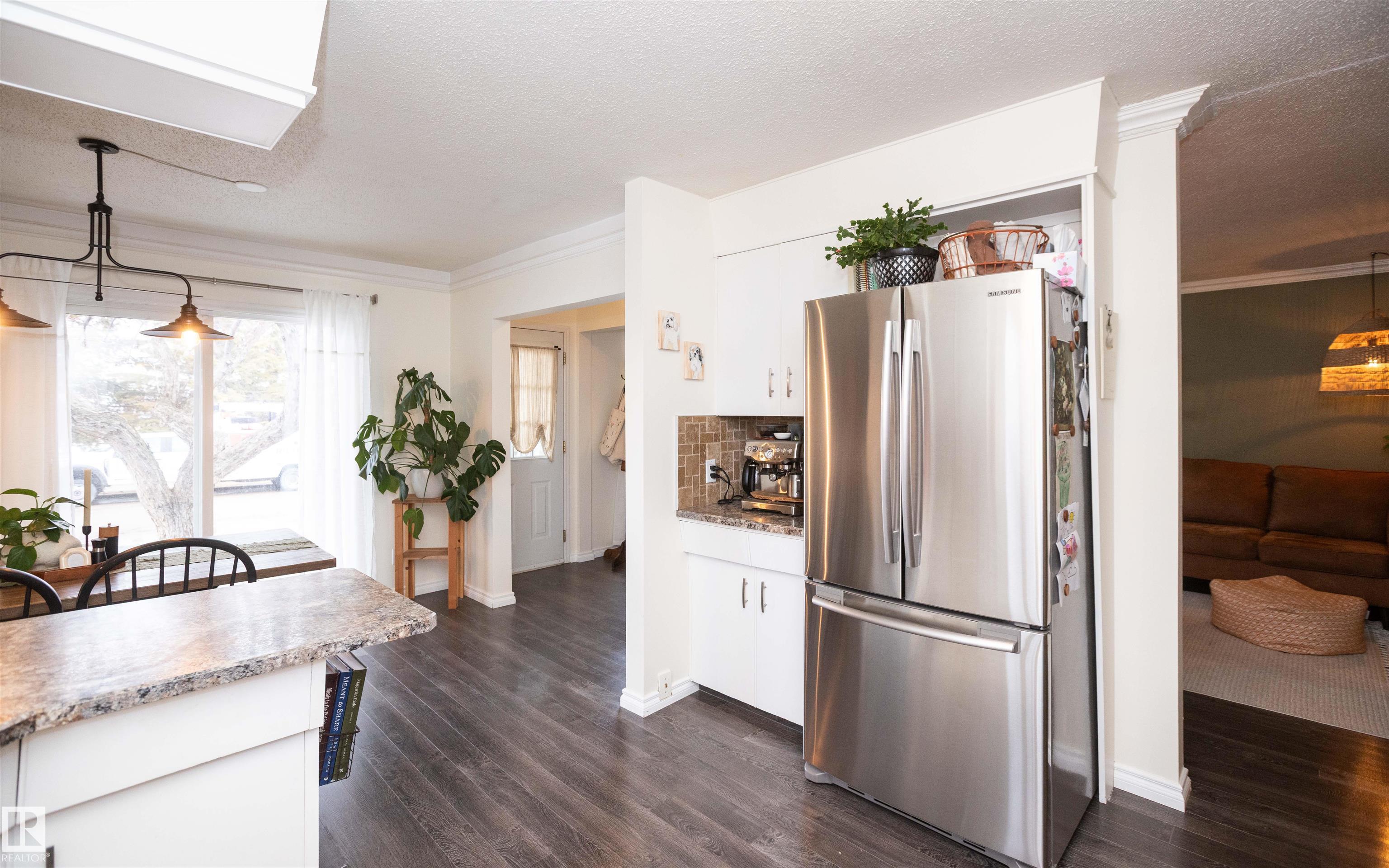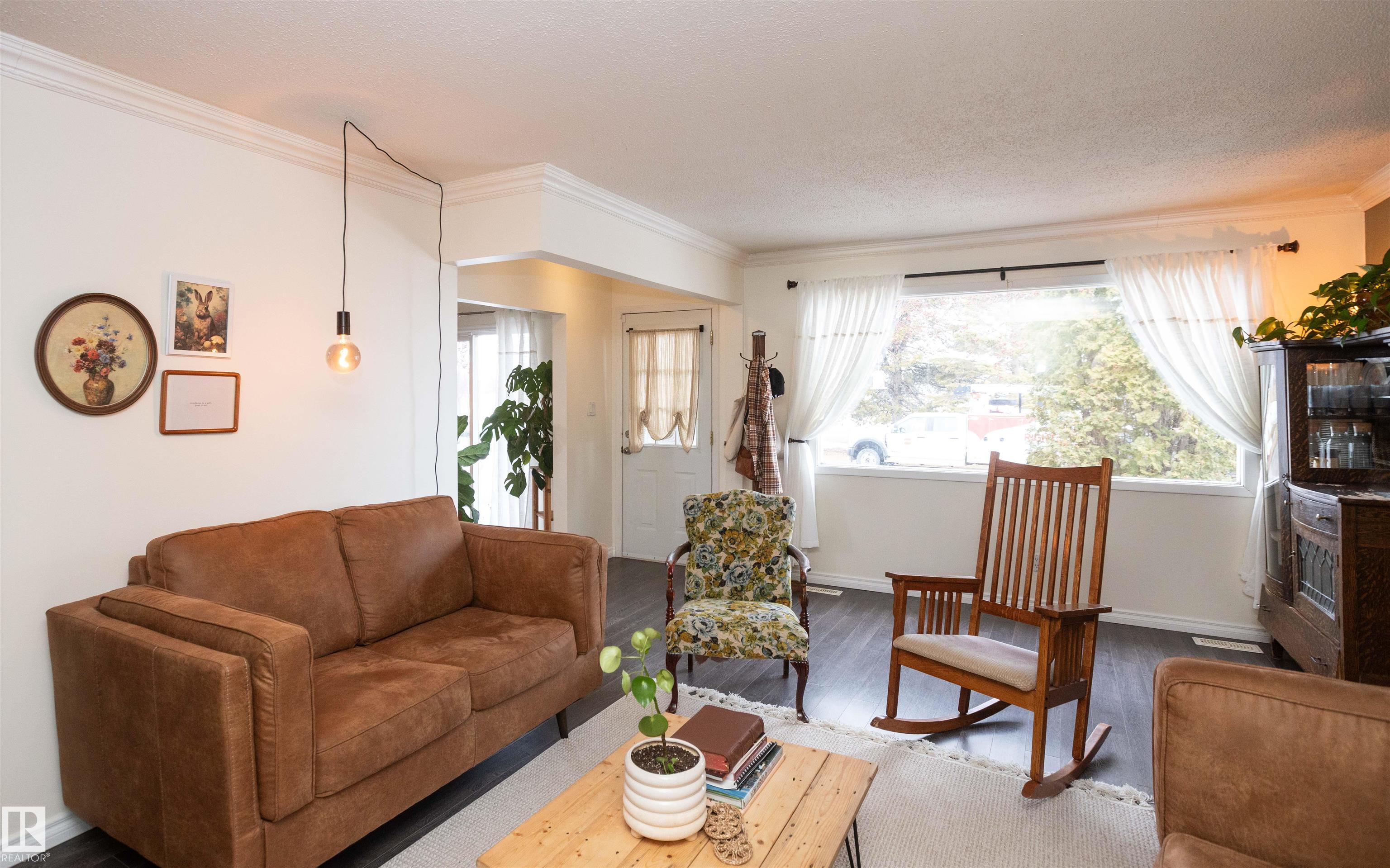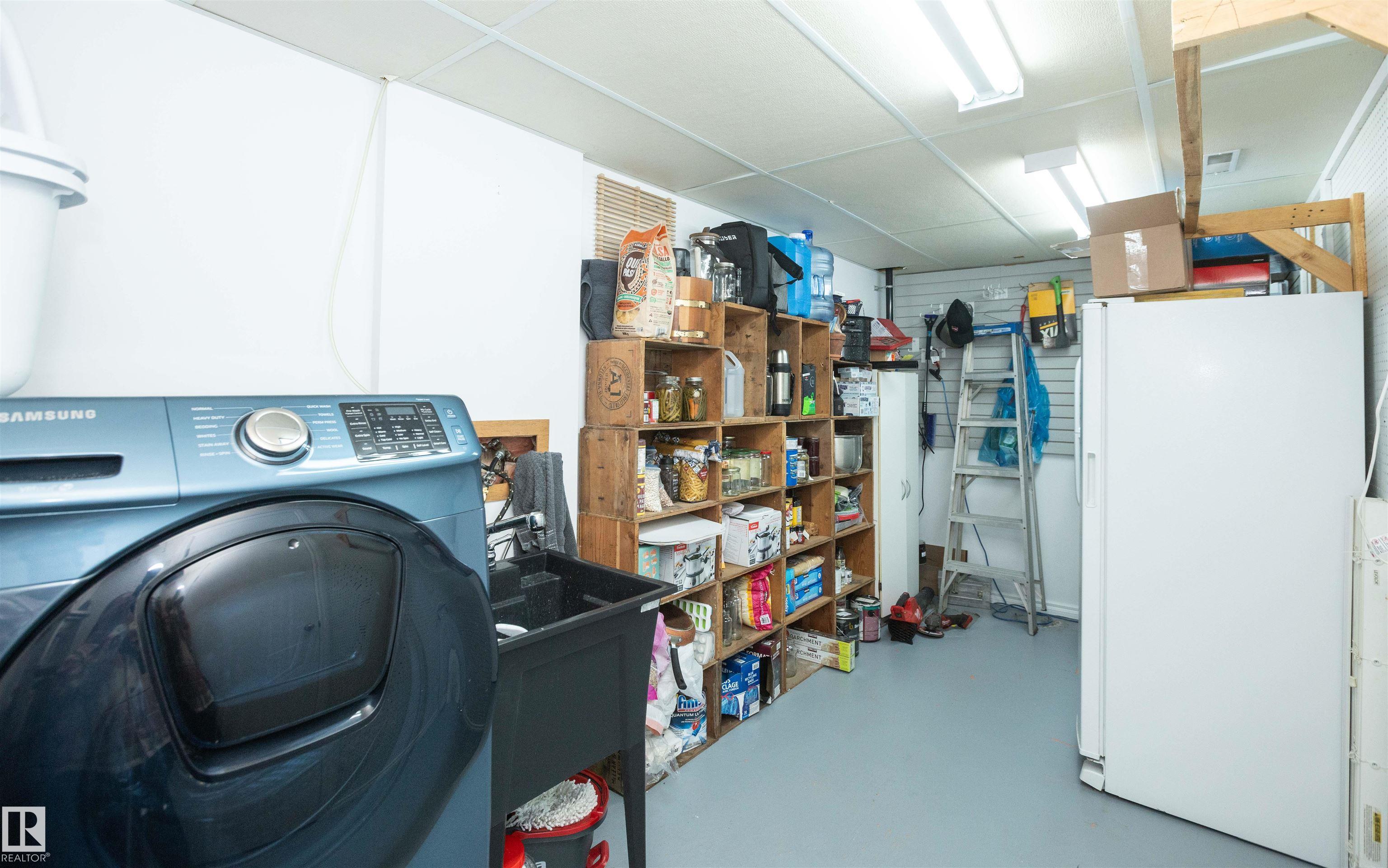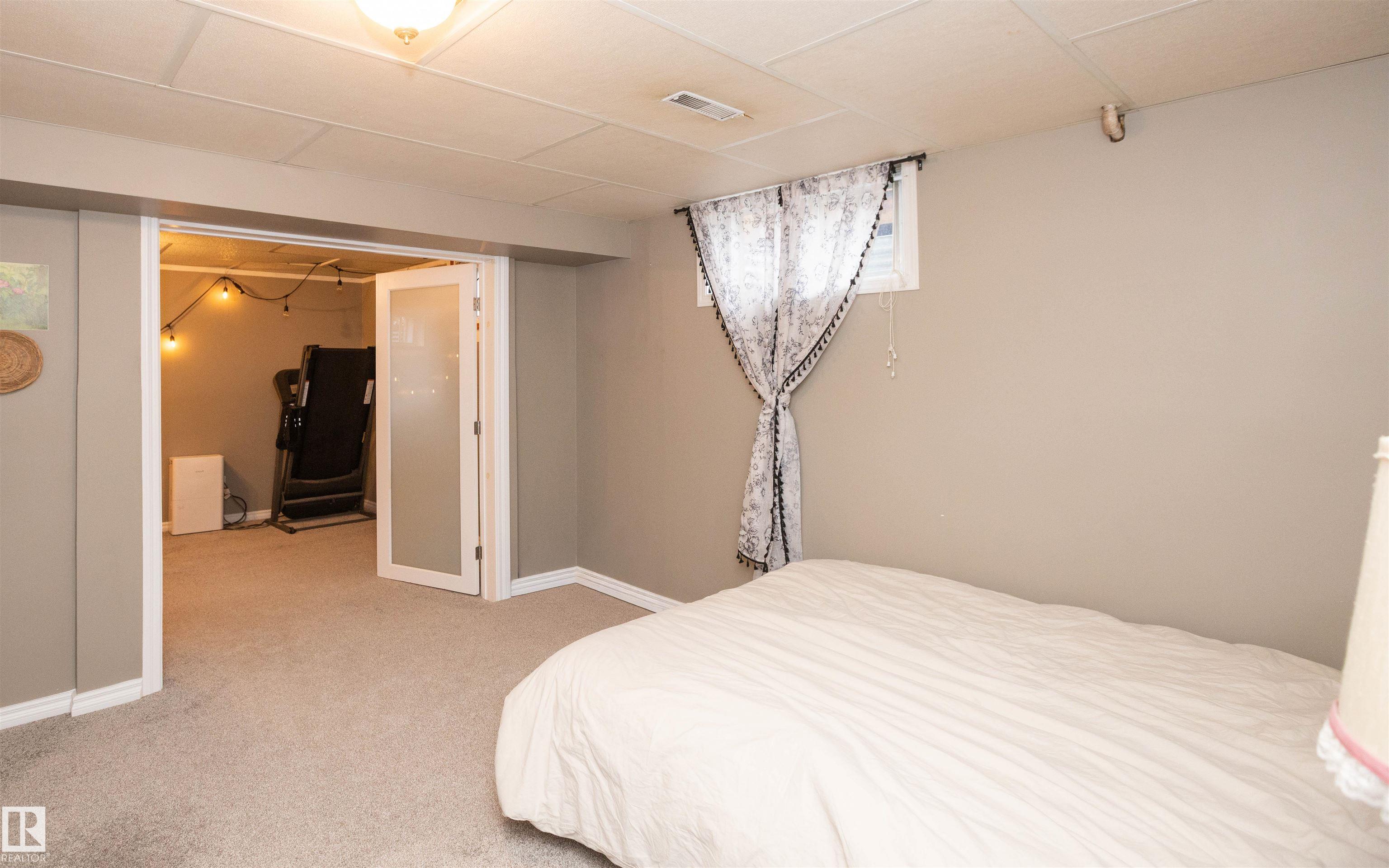 Across from Westlock Elementary school is a lovely home. Bright south-facing kitchen w/white cabinets, nice countertops, beautiful appliances (gas stove 1 yr) & nice eating area. Patio doors to deck on west. Spacious living room is lovely & bright. Three bedrooms main floor- the primary bdrm has full wall of closets. Bdrm 2 - nice size & bdrm 3 makes a nice den or office w/patio doors to large deck. Main floor bath w/double sinks, deep soaker tub & ceramic floor. Downstairs you'll find a massive family room w/beautiful carpet, large bdrm w/French doors & ensuite bath, laundry room w/plenty of space & front load W/D, storage room & furnace room. On your front deck sit and watch the fireworks on July 01. In the rear yard enjoy the beautiful new deck, trees & privacy. There is an area perfect for a garden, also two storage sheds, trees, new lawn & new landscaping! New shingles 2023. Furnace & water tank upgraded - not sure of date. Room for garage at rear or park on front driveway (room for 2) or street.