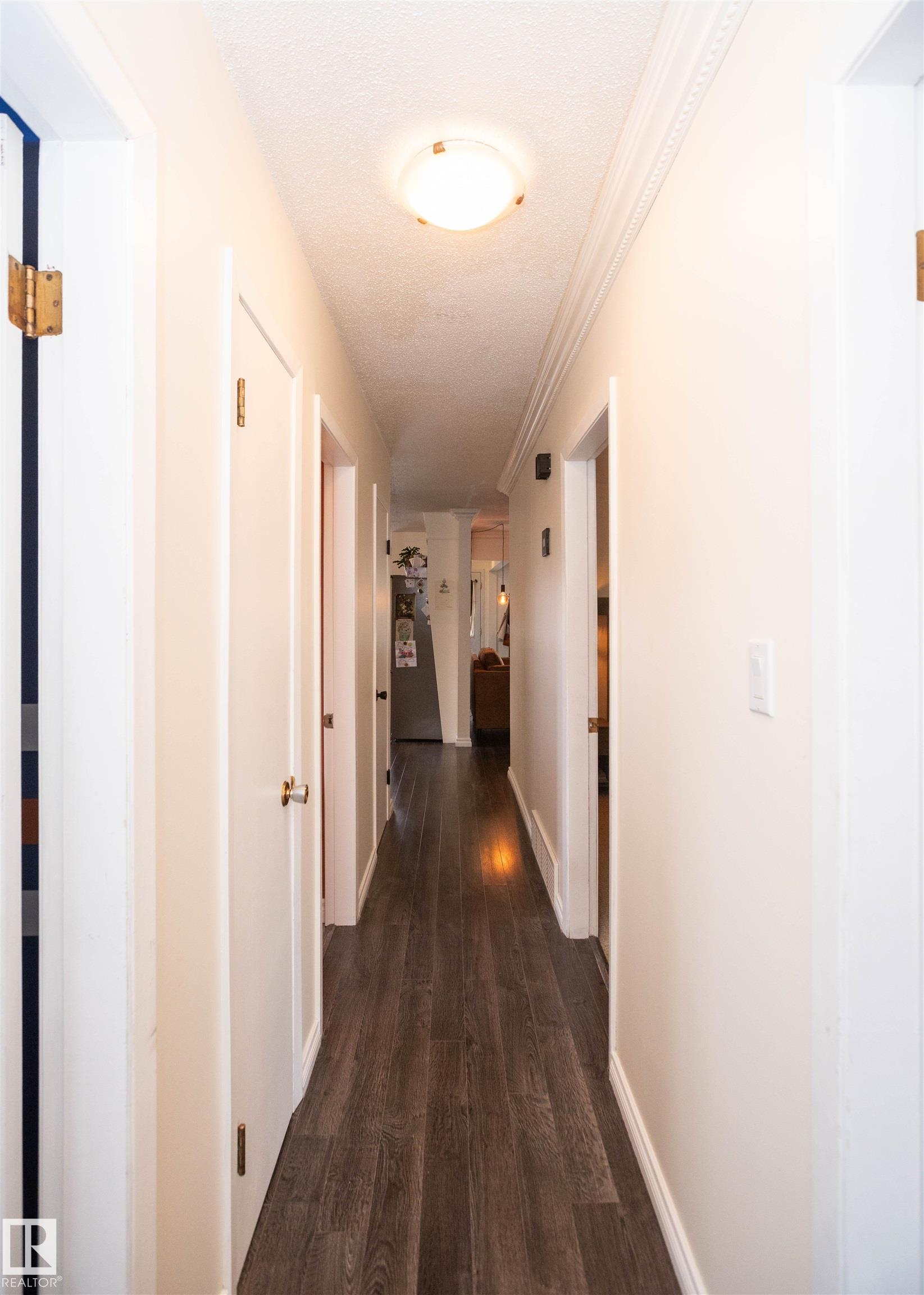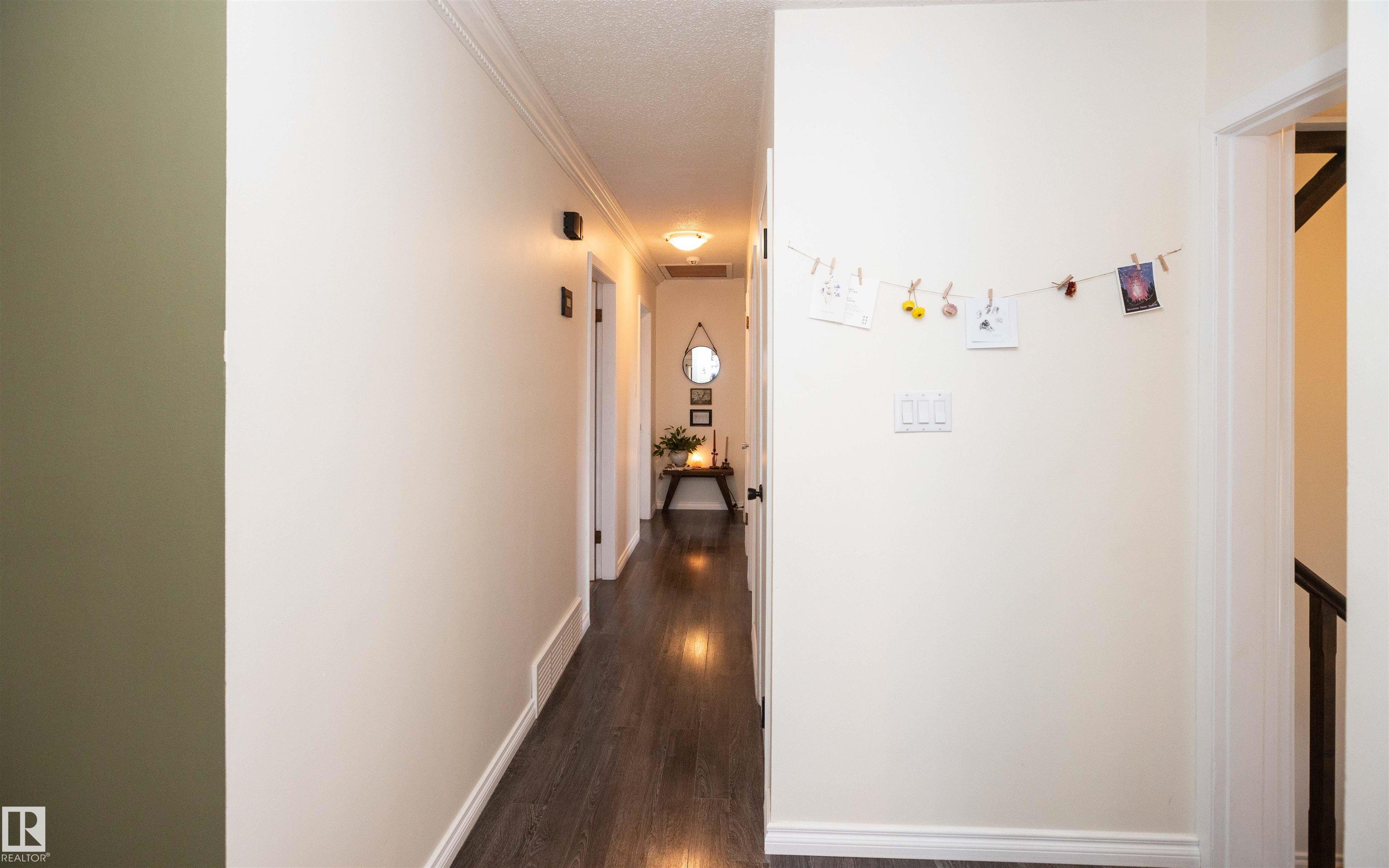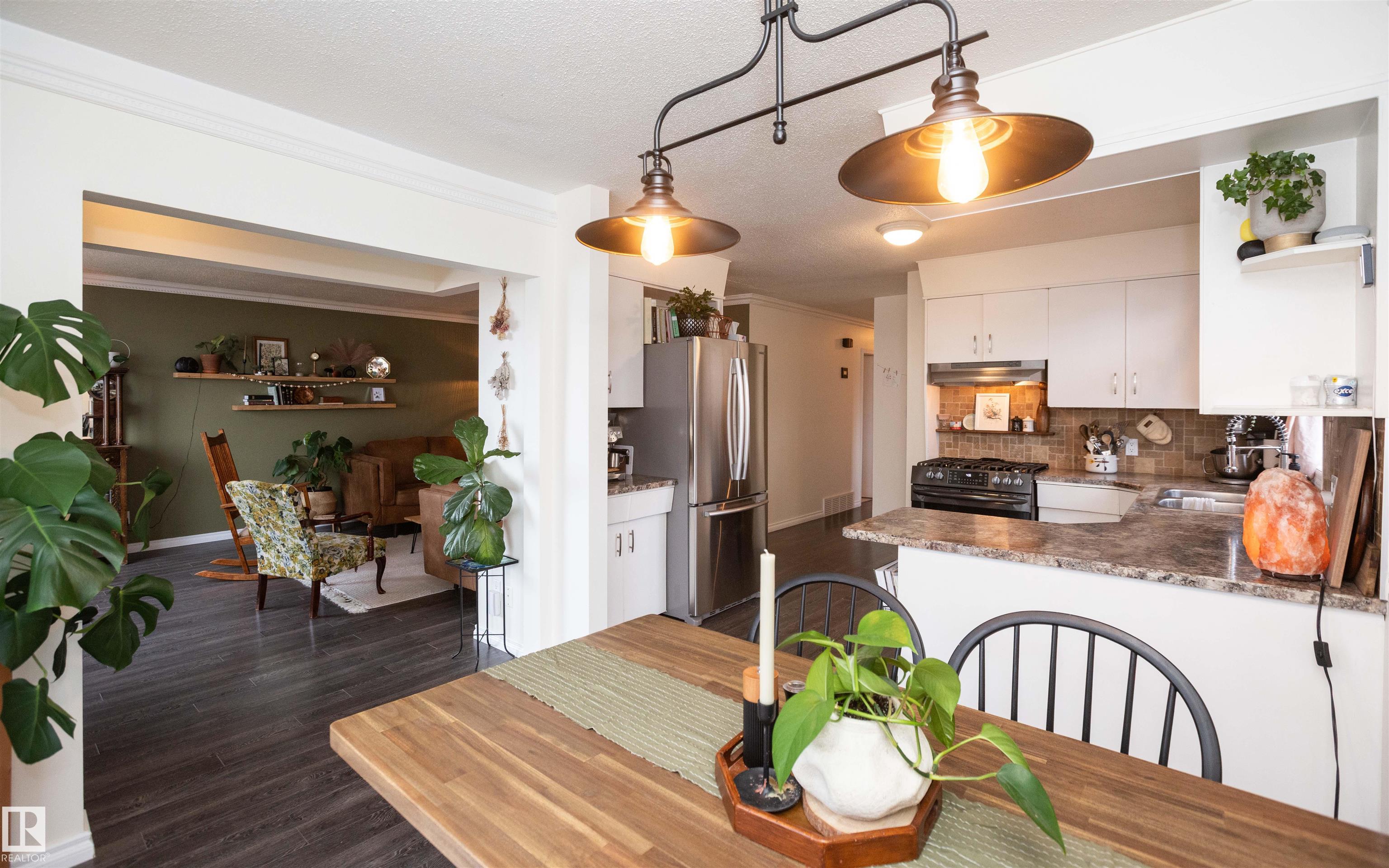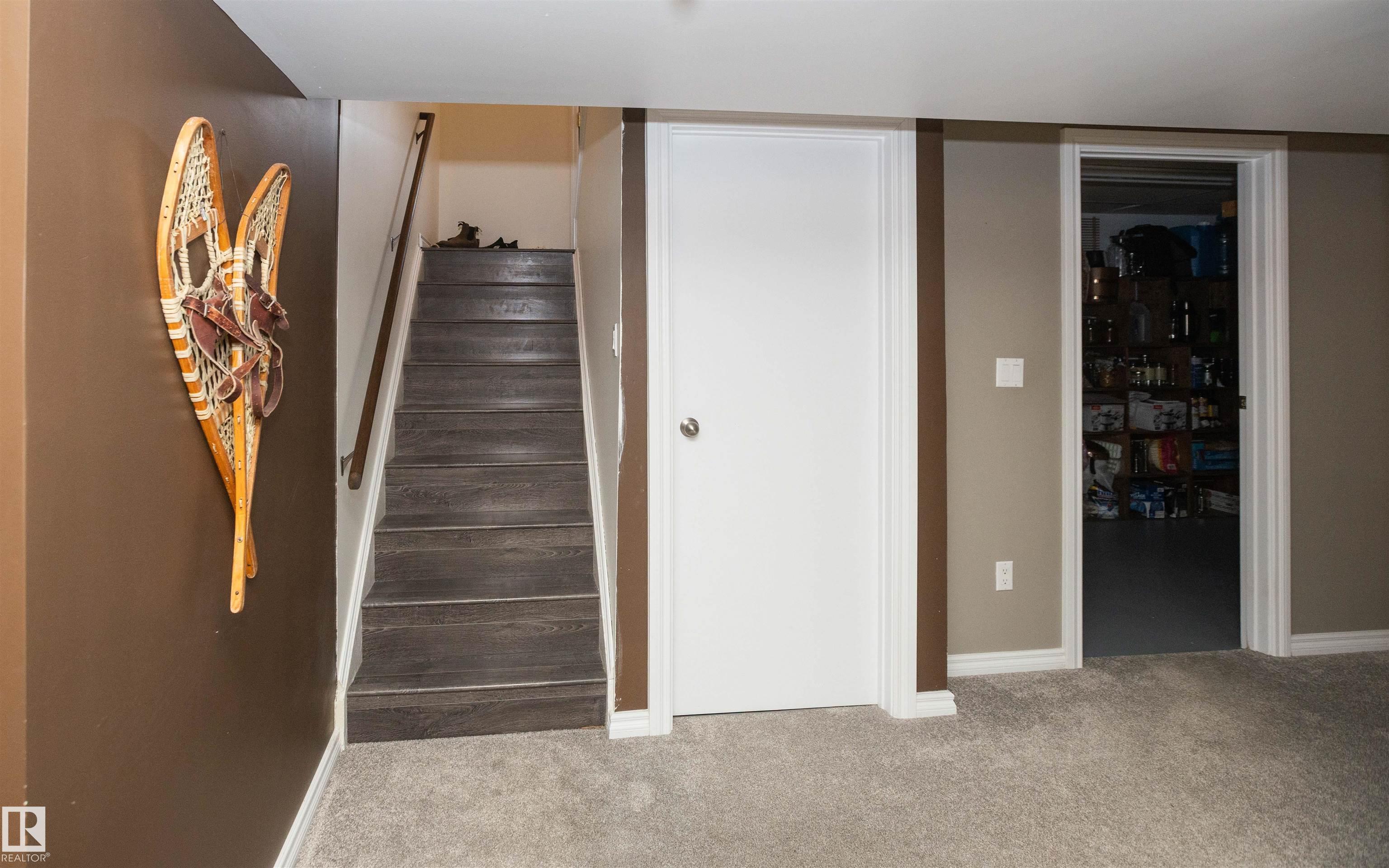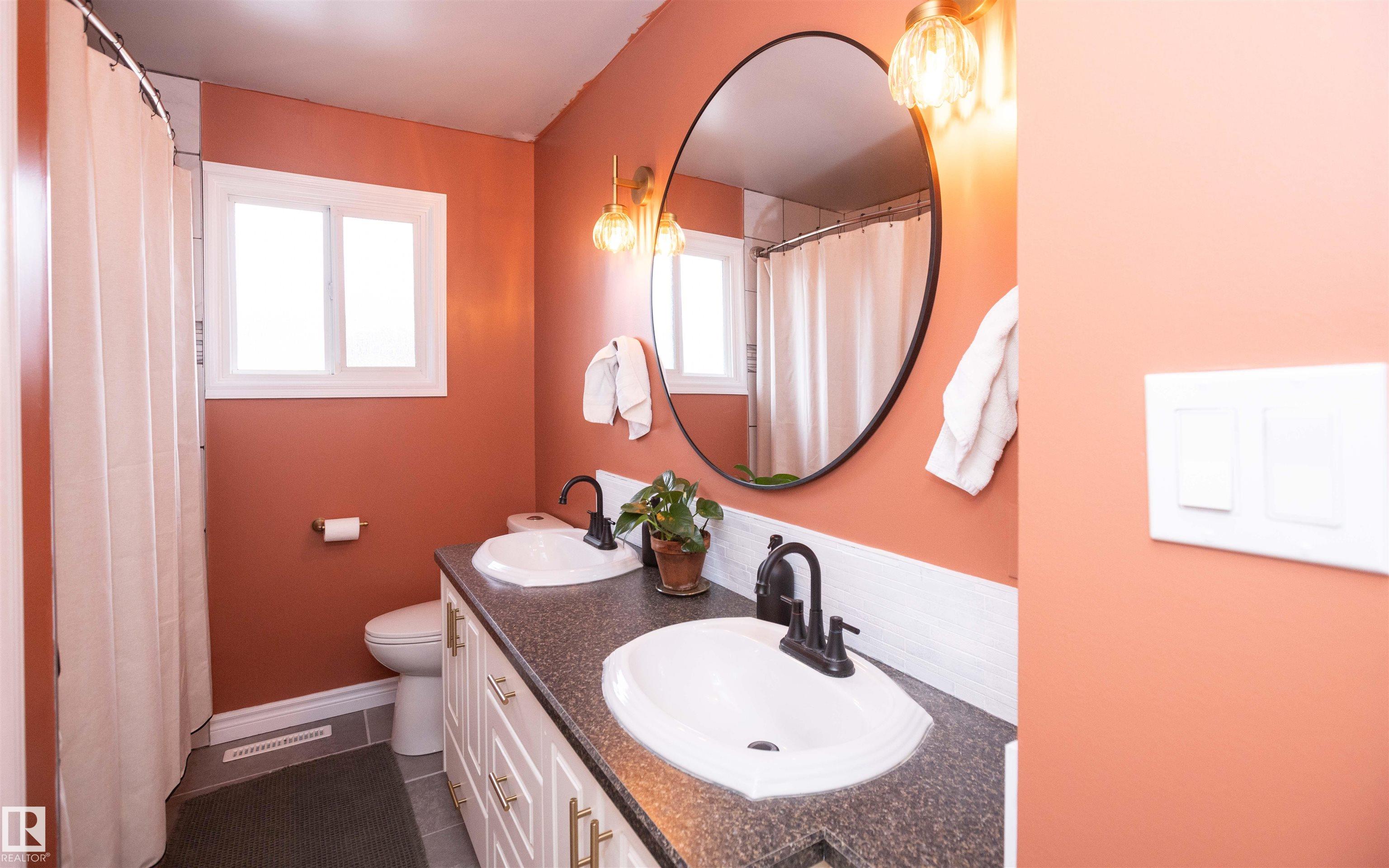 Across from Westlock Elementary school is a lovely home. Bright south-facing kitchen w/white cabinets, nice countertops, beautiful appliances (gas stove 1 yr) & nice eating area. Patio doors to deck on west. Spacious living room is lovely & bright. Three bedrooms main floor- the primary bdrm has full wall of closets. Bdrm 2 - nice size & bdrm 3 makes a nice den or office w/patio doors to large deck. Main floor bath w/double sinks, deep soaker tub & ceramic floor. Downstairs you'll find a massive family room w/beautiful carpet, large bdrm w/French doors & ensuite bath, laundry room w/plenty of space & front load W/D, storage room & furnace room. On your front deck sit and watch the fireworks on July 01. In the rear yard enjoy the beautiful new deck, trees & privacy. There is an area perfect for a garden, also two storage sheds, trees, new lawn & new landscaping! New shingles 2023. Furnace & water tank upgraded - not sure of date. Room for garage at rear or park on front driveway (room for 2) or street.