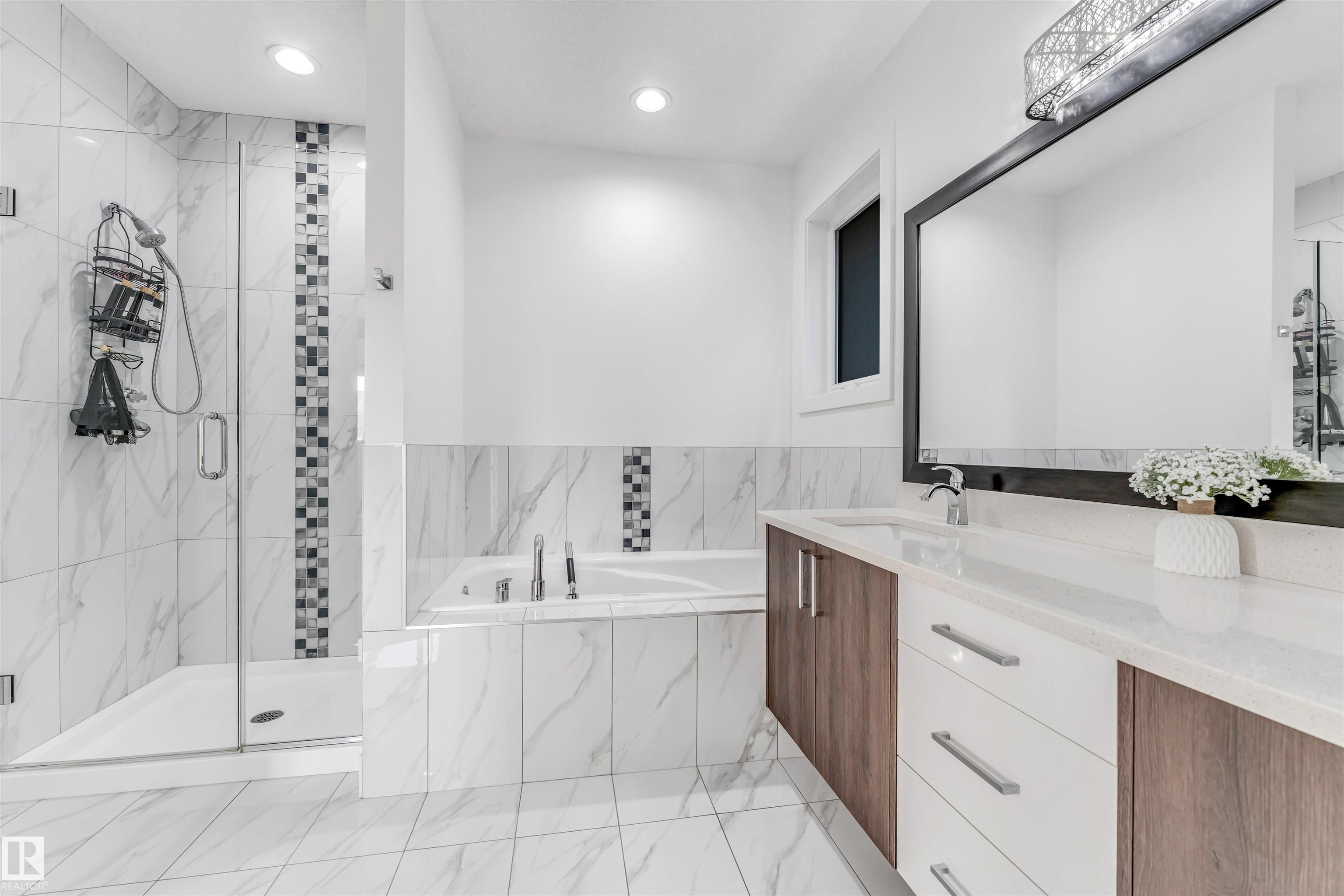 Welcome to Graydon Hill, a serene southwest community surrounded by nature yet minutes from city conveniences. This beautifully maintained home offers over 2,700 sq.ft. plus a fully finished basement with a side entrance. Enjoy natural light throughout w/ soaring windows & a vaulted living room. Gorgeous kitchen features a walk through pantry, upgraded appliances (incl. gas stove), Air Condition & reverse osmosis. Open concept kitchen, dining, living room + MAIN FLOOR BATH & DEN/BDRM. Upstairs find huge primary walk-in & 5pc ensuite. 2 more well-sized bedrooms, 4pc bathroom, laundry & spacious bonus room. Basement offers 2 additional bedrooms, living area & wet bar. Features engineered hardwood, quartz throughout, central vac rough-in, 8' doors, 9' ceilings, new windows, BACK GATE for ADDTL PARKING & new landscaping. Walking trail across the street leading to a naturalized storm pond + large park down the block. Easy access to Henday, Calgary Trail, Currents of Windermere, South Common & more!