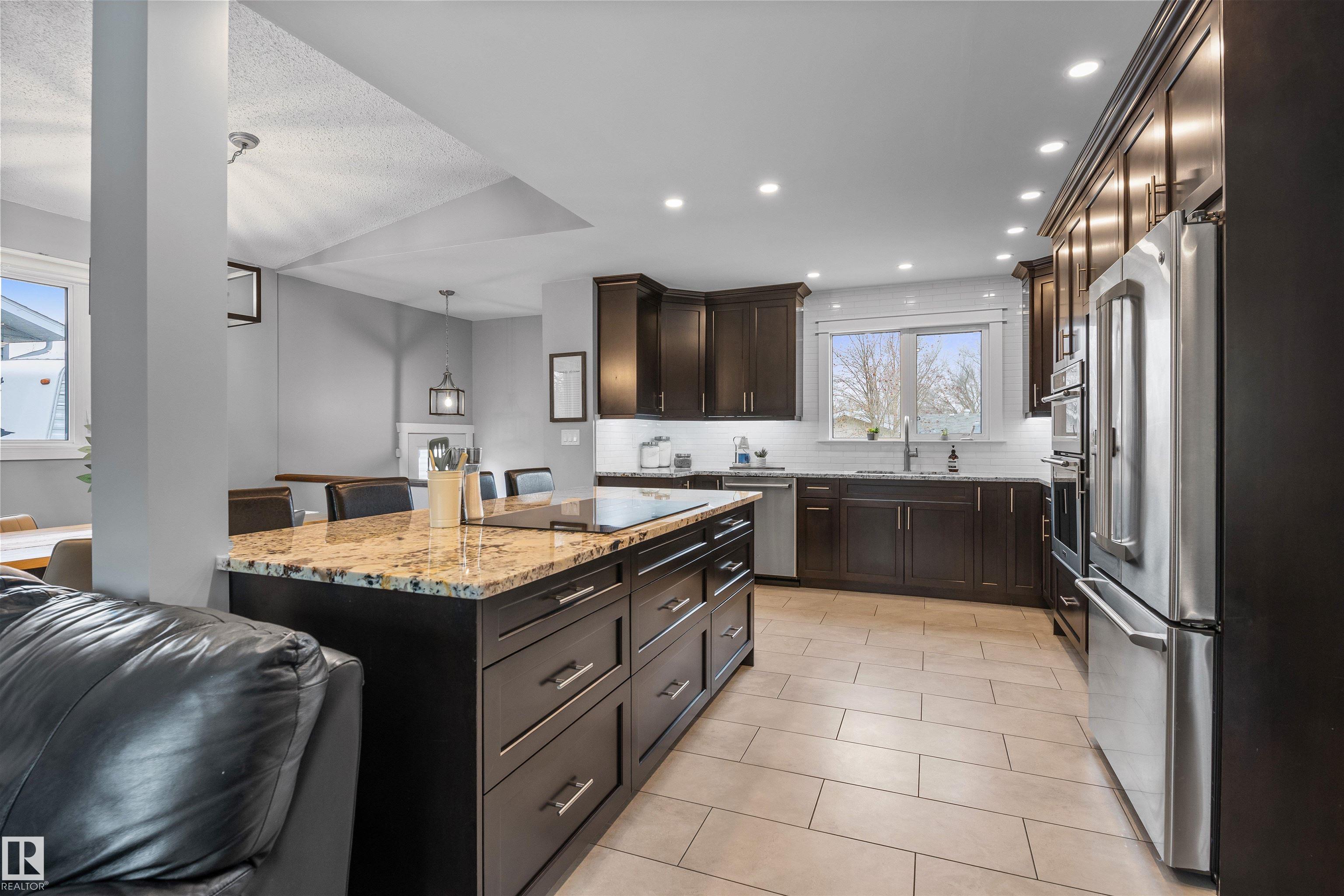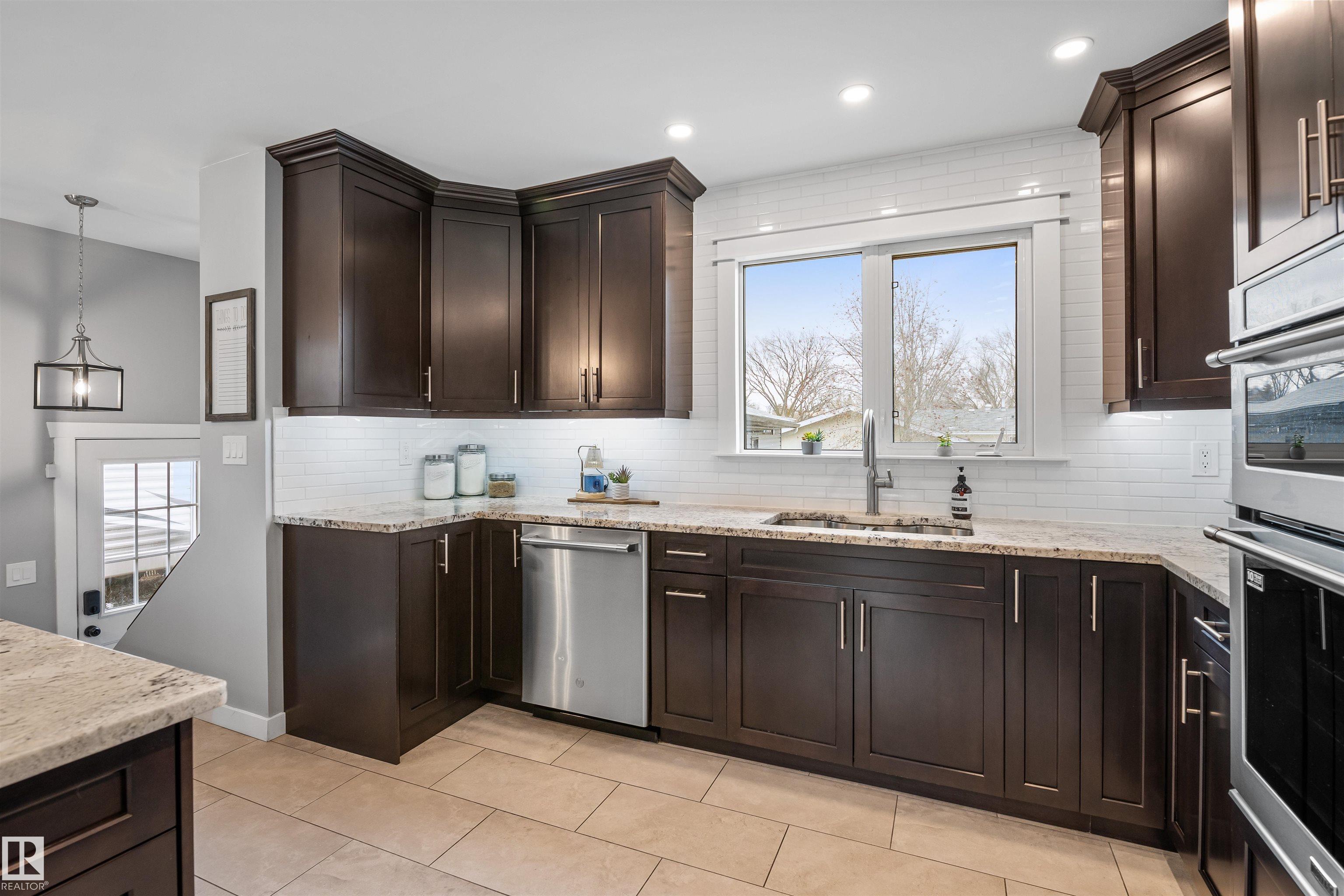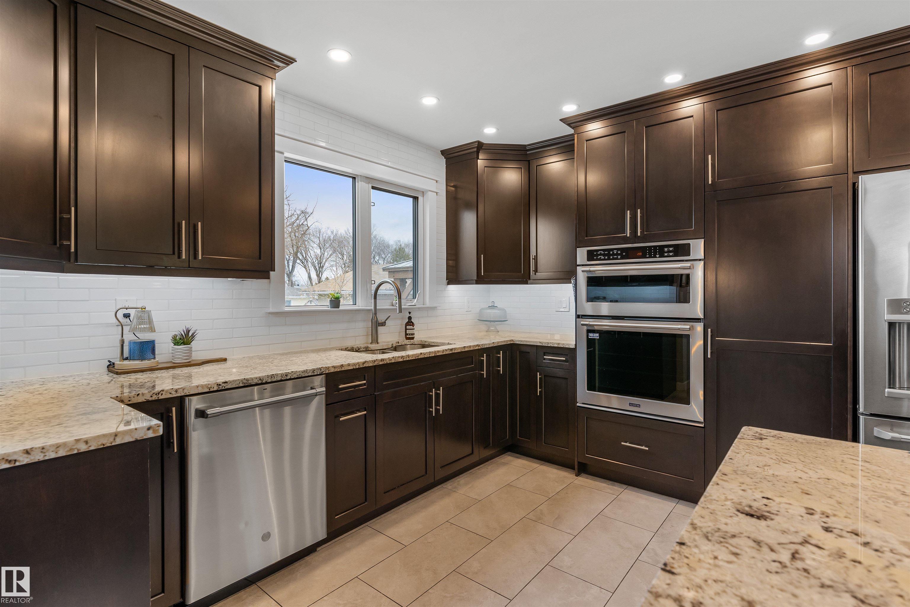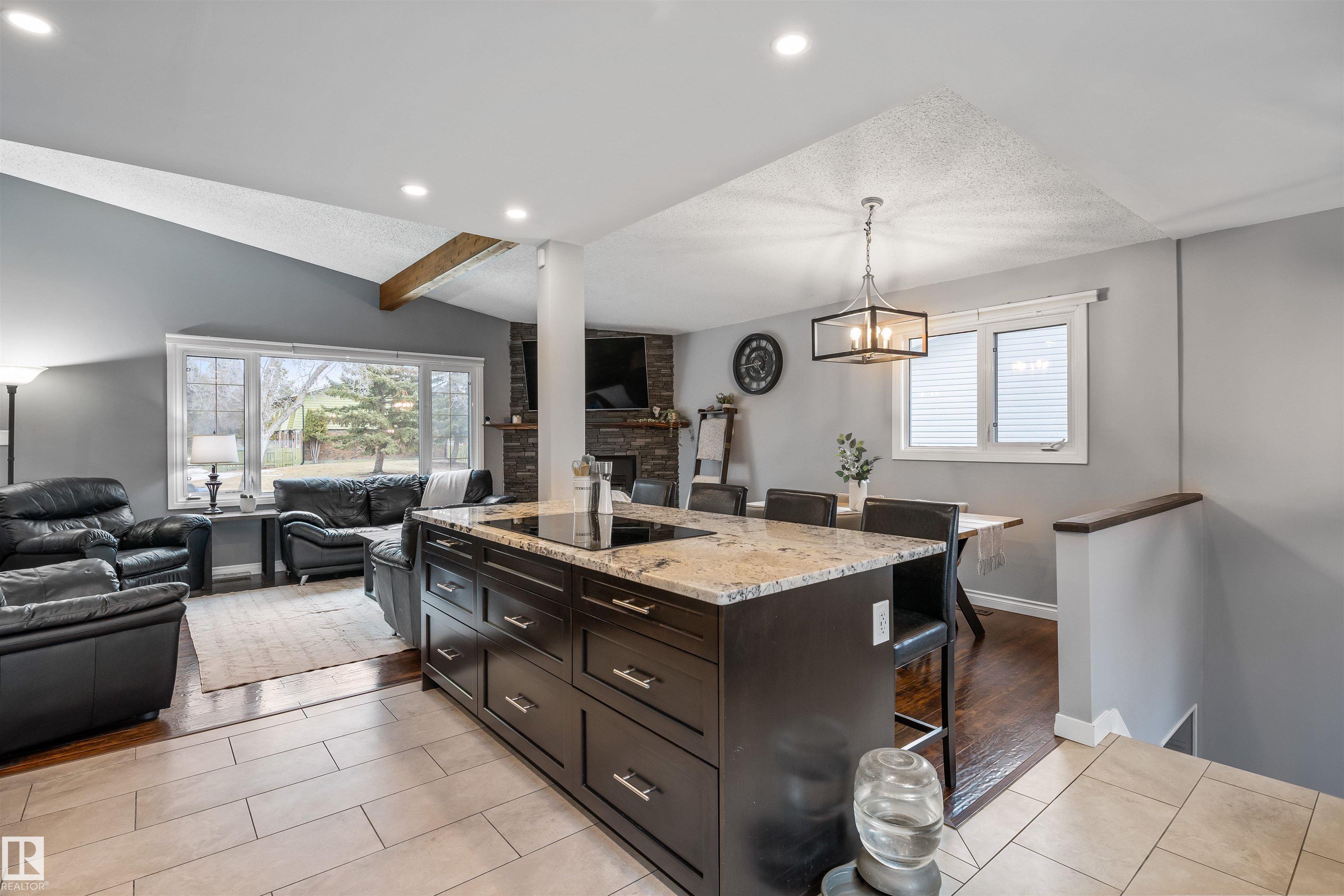On a mature street in Pineview, discover this FULLY RENOVATED & spacious BUNGALOW. The entrance welcomes guests w/ laminate flooring that spreads through most of the main floor. There are soaring VAULTED CEILINGS w/ open beams in the main living areas. The living room has a corner gas f/p. The chef's kitchen feat a huge eating bar island, pantry, built-in oven, GRANITE countertops, full height cabinetry w/ crown trim, pot lighting, tile backsplash, pot/pan drawers & tile flooring. The dining room can accommodate large entertaining, as it is opens to the living room to expand the table. The renovated main 5pce bath has double sinks. There are 3 bedrooms. The primary bedroom has a 2pce ensuite. The basement has a large rec room, space for a gym & so much more. The media room has a ELECTRIC F/P. There is a 3pce bath w/ a JETTED TUB, under-stair storage & a mech/laundry room. The double detached HEATED garage (25x23) has OSB lined walls & a newer garage door. Enjoy privacy w/ a fully fenced & gated yard!
