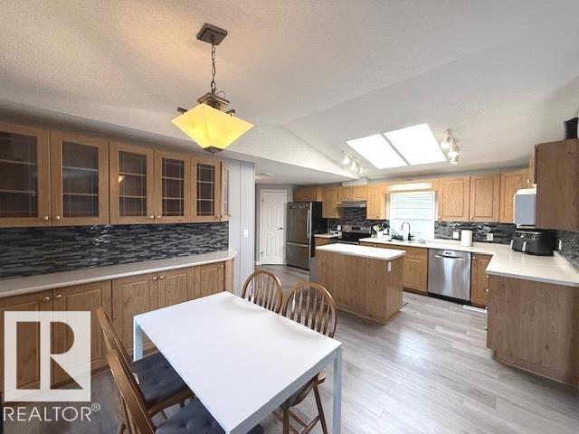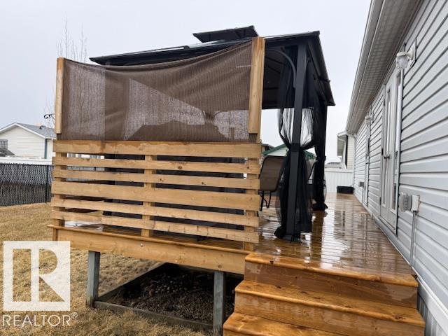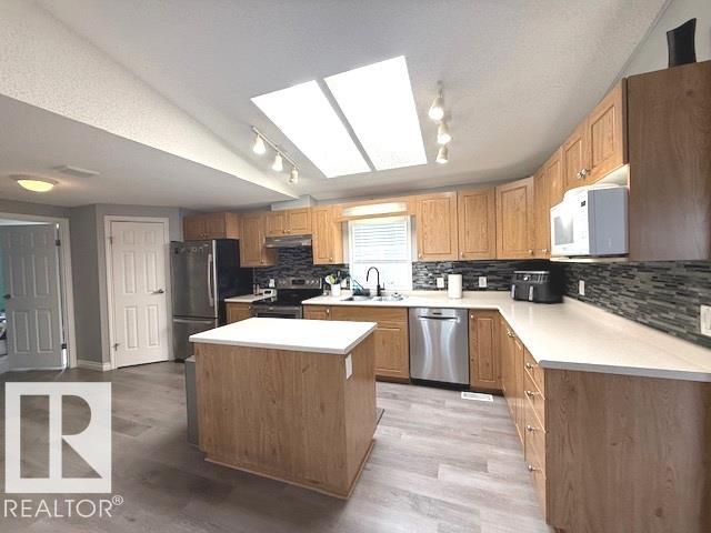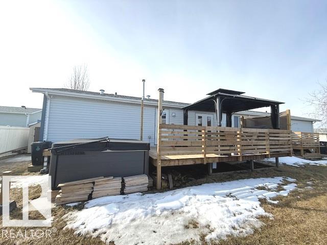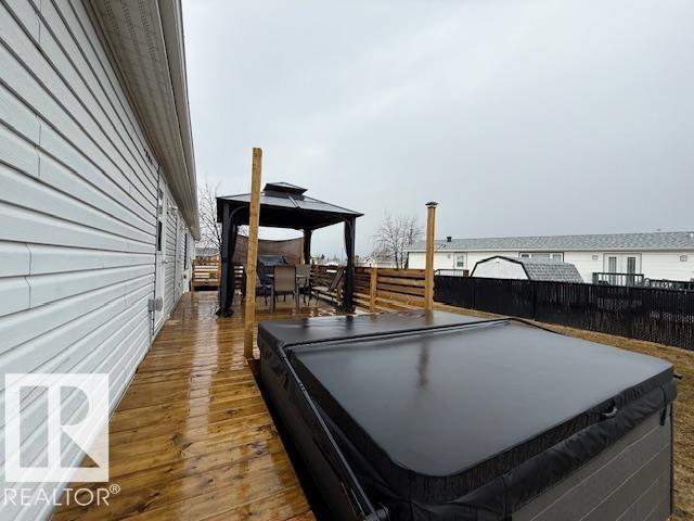 Spacious home featuring cathedral ceilings, an open layout and a bright front bonus room perfect for an office, den, or 4th bdrm. Painted walls & vinyl flooring run throughout. Living room offers a corner gas fireplace & opens to the kitchen with skylight, tiled backsplash, built-in hutch, SS appliances & corner pantry. Garden doors lead to a new pressure-treated deck. Large primary boasts a walk-in closet & updated ensuite with tiled floors, newer vanity & tub with tiled surround. On the opposite end of the home 2 additional bdrms, a main bath & bonus room with ceiling fans complete the layout. TV mounts, computer mounts & chest freezer incl. Shingles & skylight will be replaced end of April. Furnace & HWT replaced in 2018. Enjoy the new (2023) 8?x8? MasterSpa 6-seat hot tub that you can enter/exit at tub level off the deck, which also features a 10'x12' screened gazebo. There is a mostly fenced yard, 2 sheds, double parking, & space to build a garage. Don?t miss this lovely home!