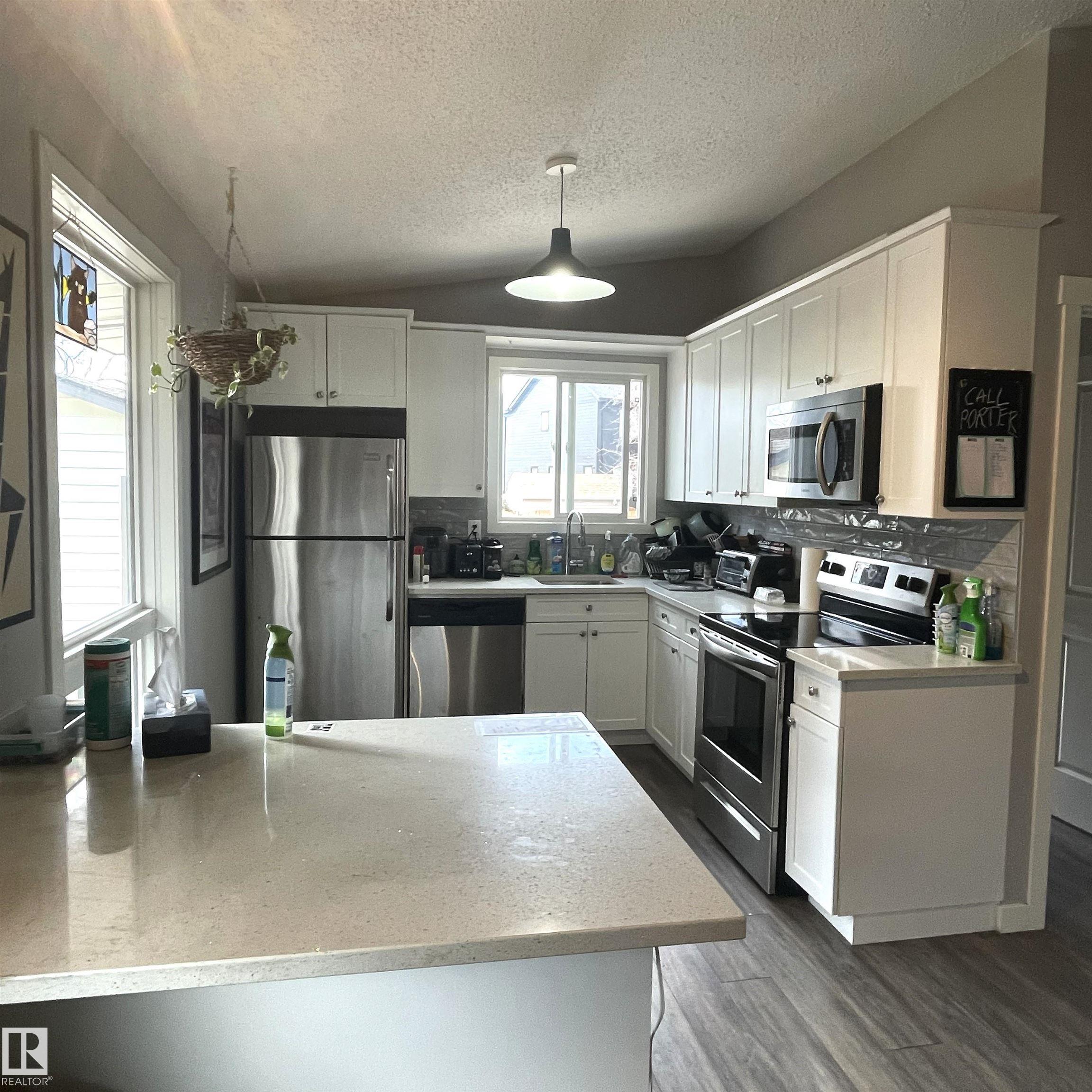 Move in ready home in a great neighborhood. This 3+1 bedroom home with 2 full baths, a finished basement with a huge family room, den, laundry area, a fully fenced and landscaped yard with a single detached garage with lane access and a front driveway for additional parking. Home features vaulted ceiling in living room, dining room and kitchen, a newer kitchen with quartz counter top, vinyl plank flooring on the main level, laminate in the basement, furnace & hot water tank (2016), updated shingles, soffit and fascia.