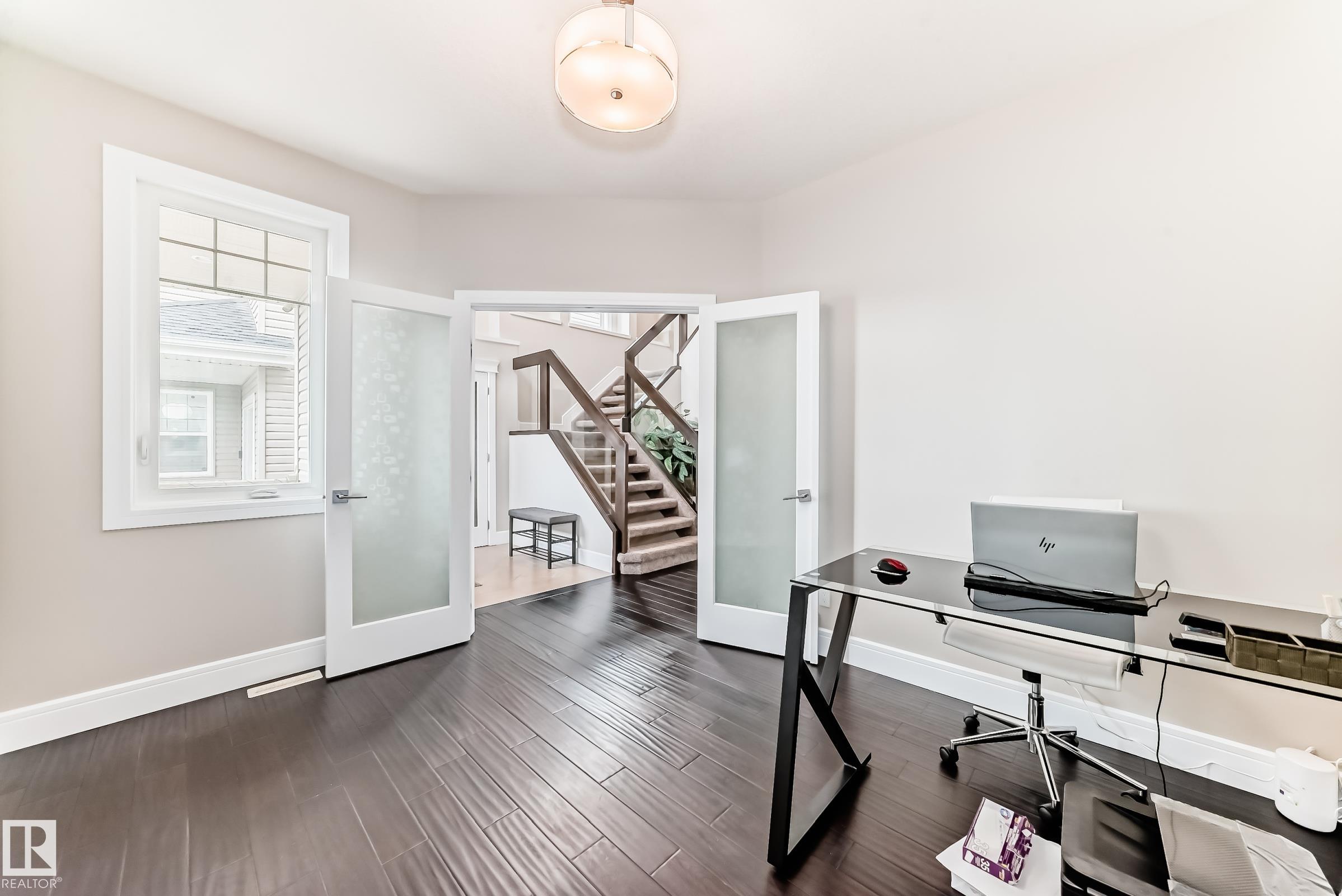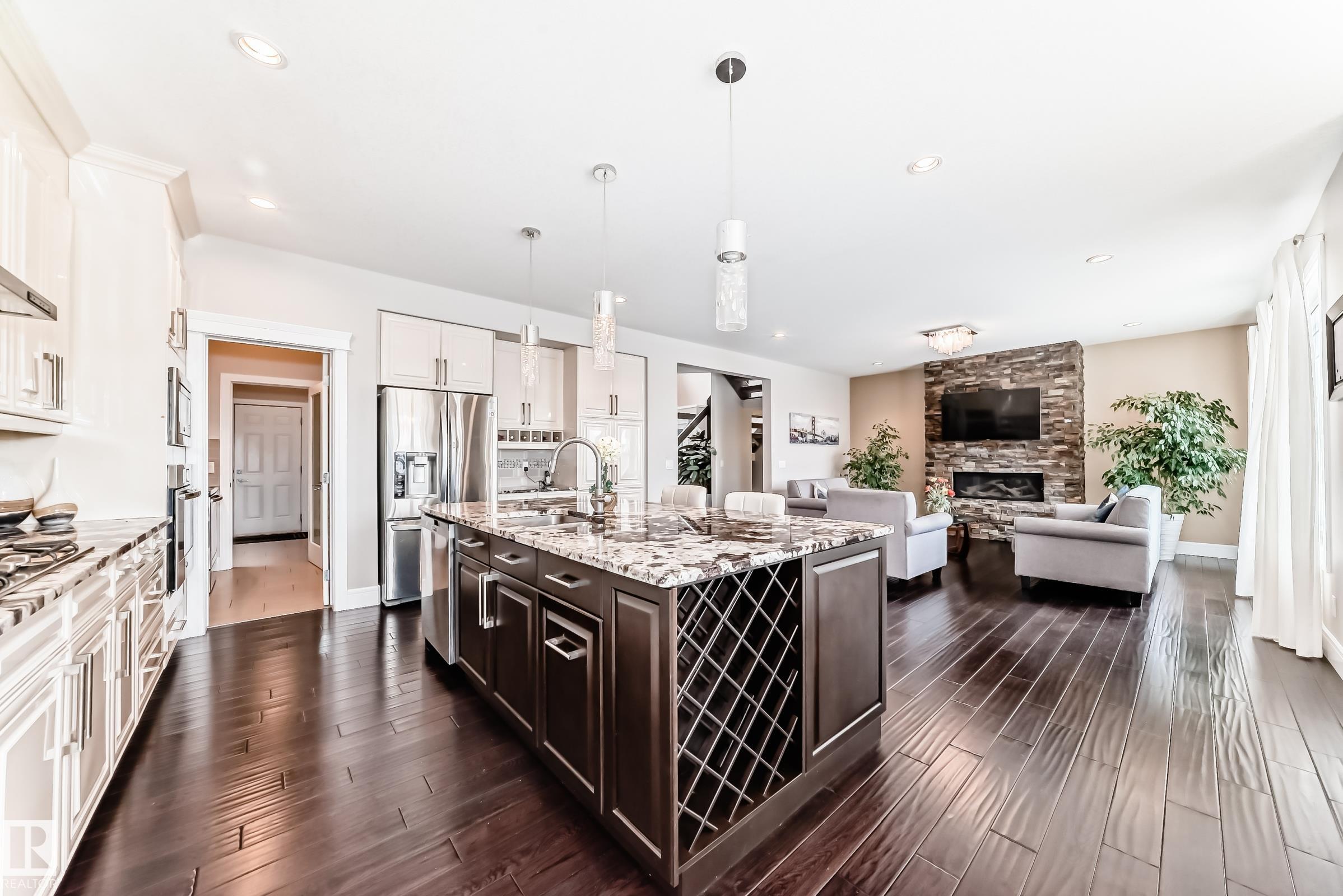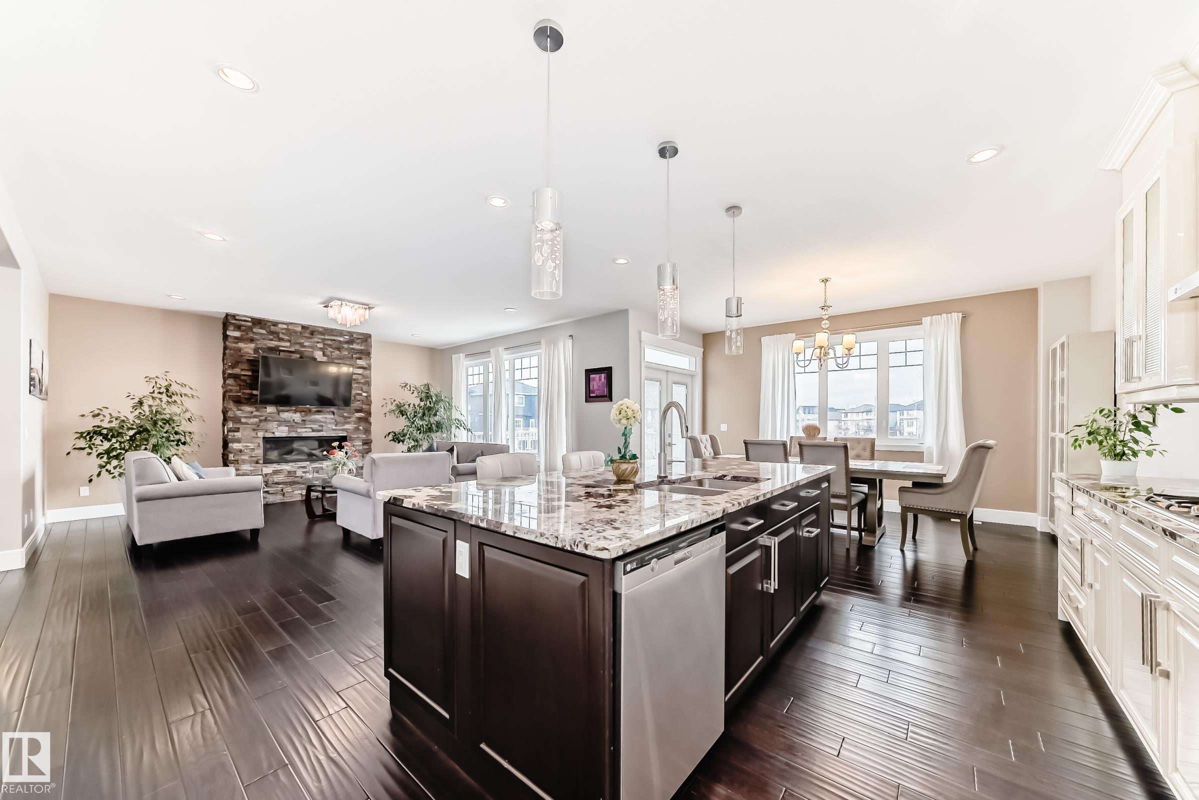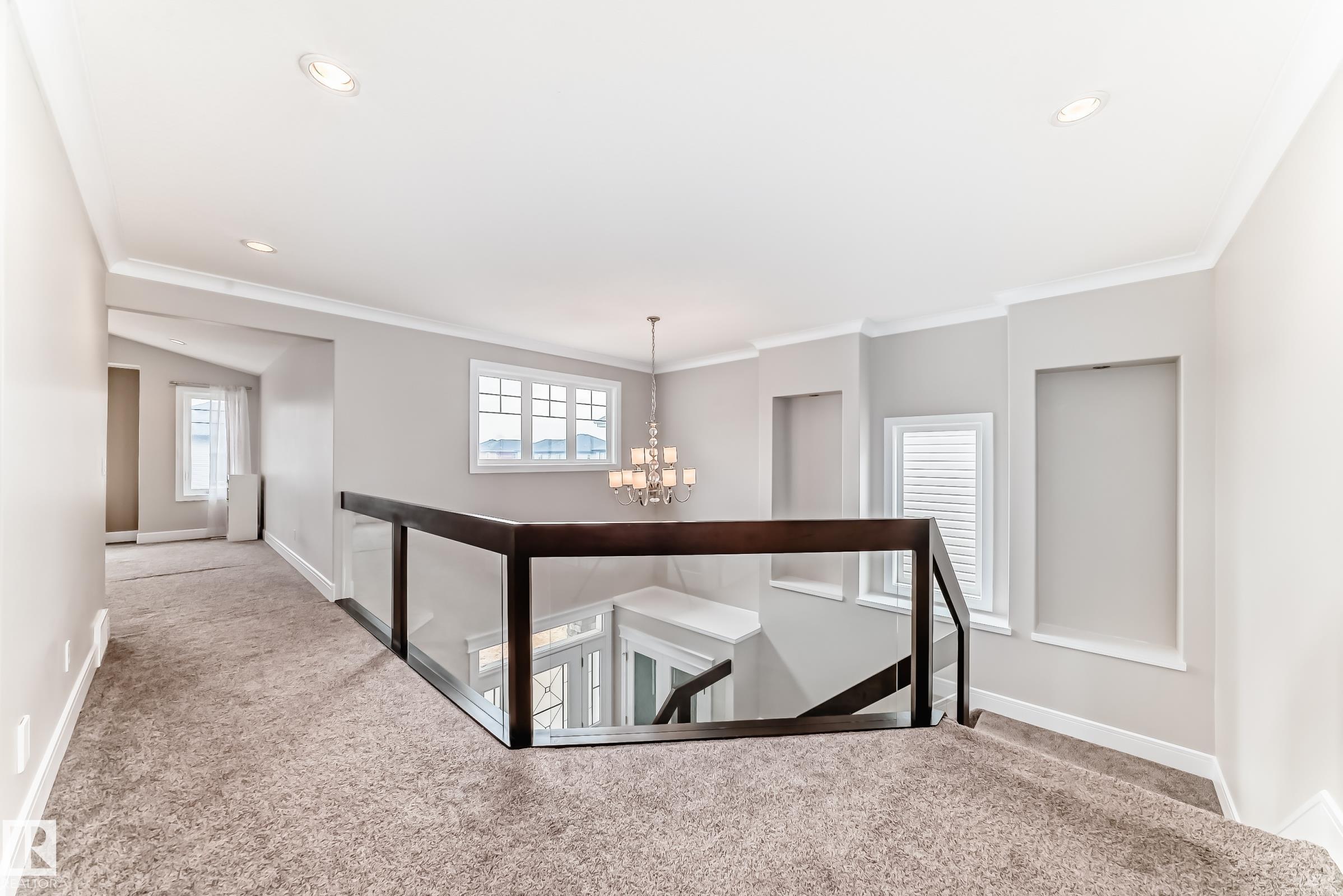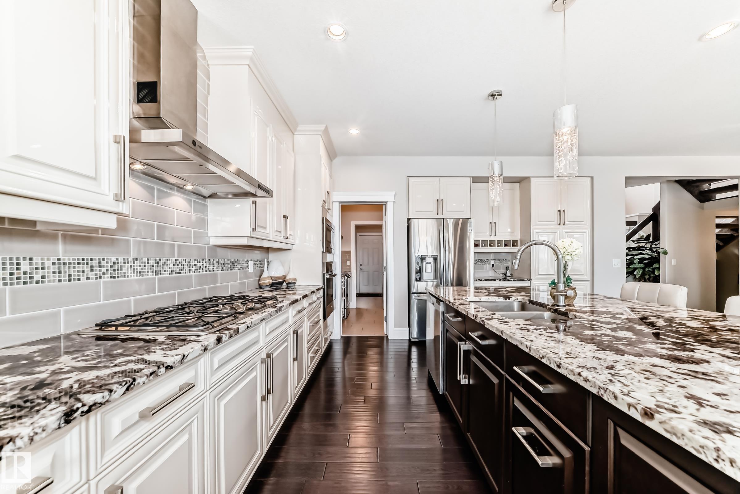 Custom-Built 2-Storey Walkout Backing Onto the Lake in Chappelle! Welcome to this stunning custom-built 2-storey home offering 2,809 sq ft of luxurious living space, unfinished basement & breathtaking pond views. Located in the desirable community of Chappelle, residents enjoy access to a splash park, skating rink, & picnic areas. The main floor features a grand foyer with soaring ceilings, a versatile den, a full 3-piece bath, and a convenient laundry/mudroom. The dining area offers direct access to the deck?perfect for entertaining. The kitchen boasts high-gloss cream cabinetry, a massive island, granite countertops, and a walk-through pantry with prep kitchen. Upstairs, the elegant open-tread staircase with modern glass railings leads to a spacious bonus room with vaulted ceilings, three generously sized bedrooms, and two full bathrooms. Highlights include an oversized double attached garage, a prime location just steps from parks and playgrounds, with easy access to the airport & Anthony Henday.