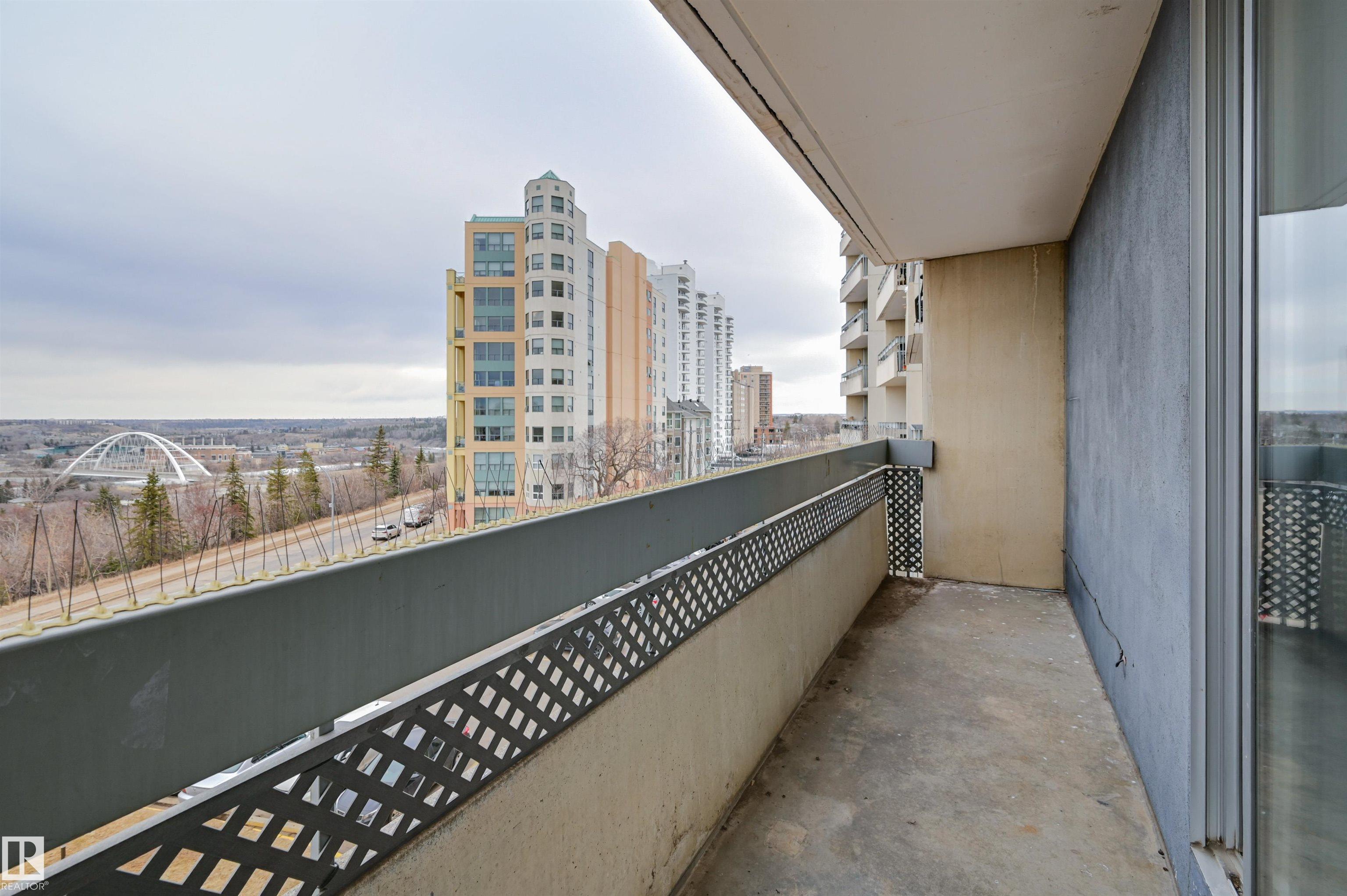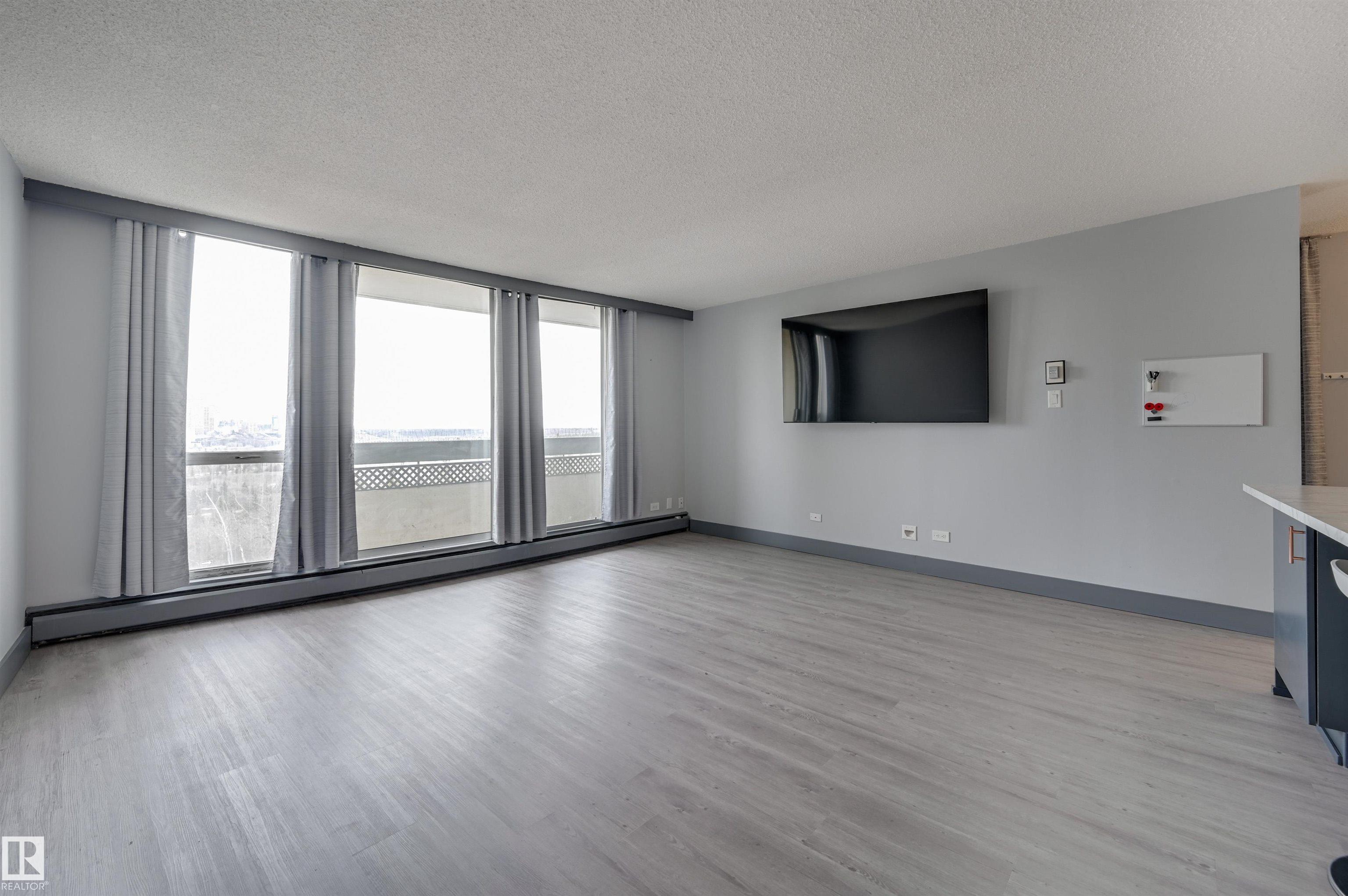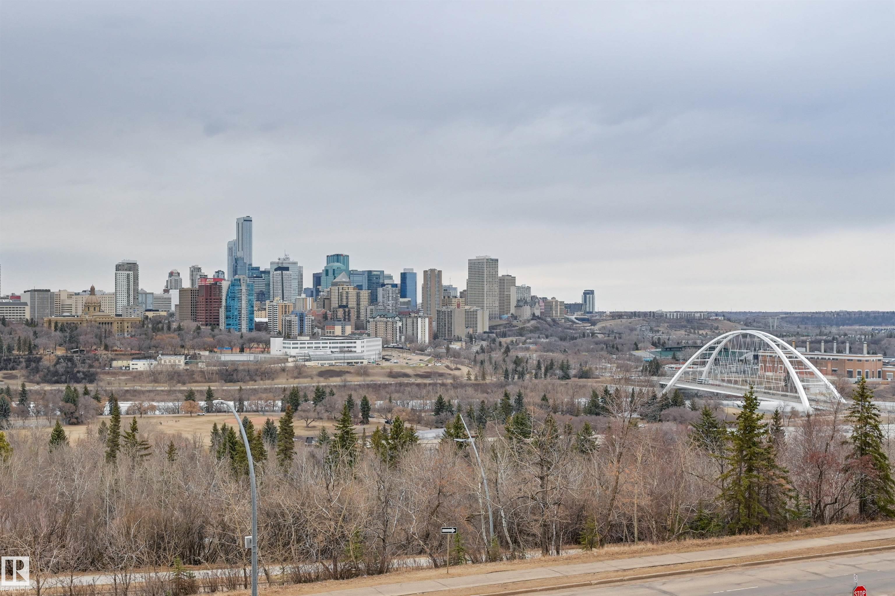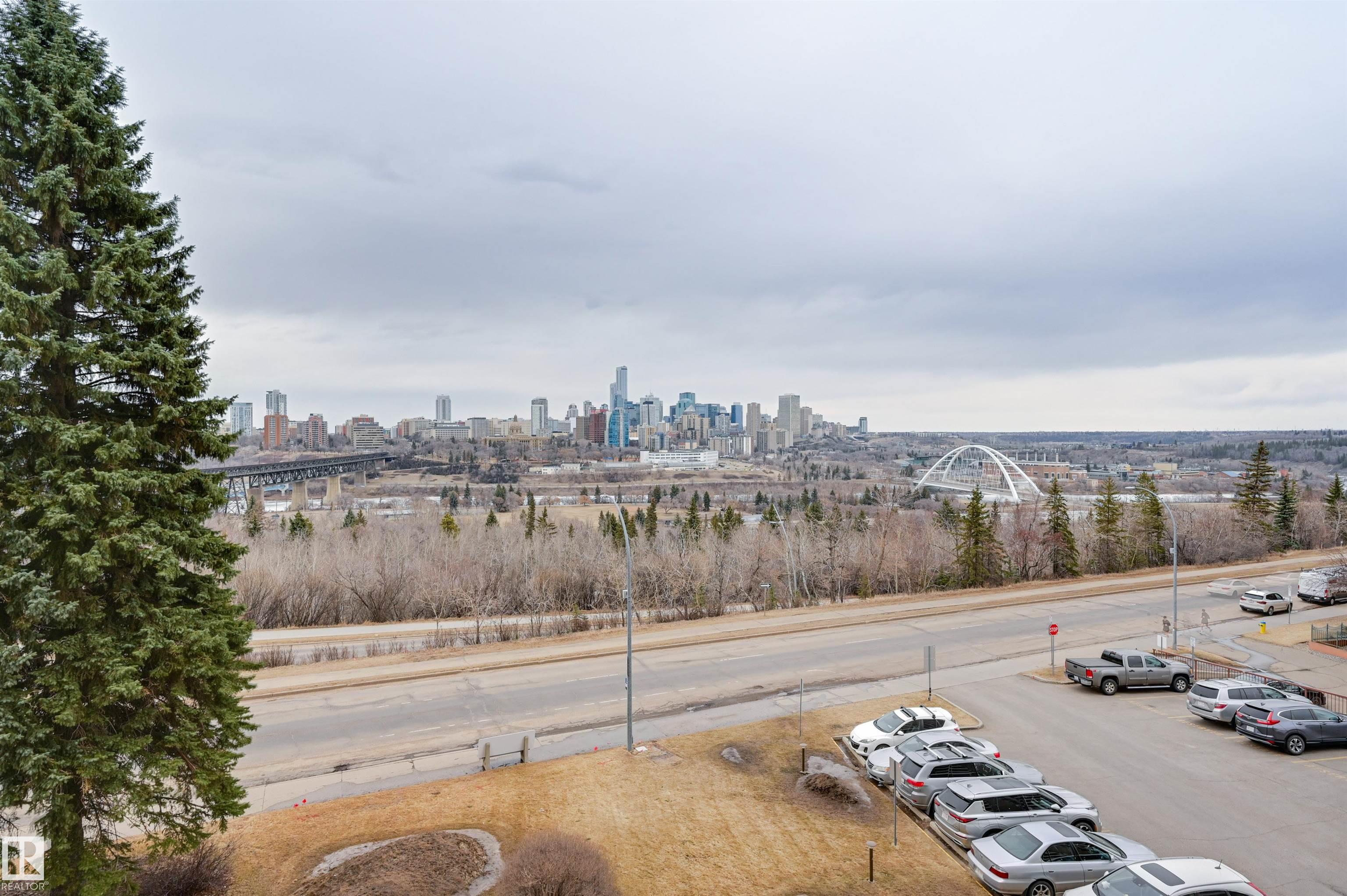 DOWNTOWN and RIVER VALLEY VIEWS from this RENOVATED 652 sq.ft. condo conveniently located on SASKATCHEWAN DRIVE just steps to the river valley trails, trendy shops, restaurants, coffee shops and a short walk to the U of A and Whyte Avenue. Features of this beautiful home include an OPEN KITCHEN with 2 tone cabinetry with lots of storage, a pantry and a large island, vinyl plank flooring throughout & a 3 piece bathroom with a large walk-in shower. Included is the fridge, ceramic top stove, microwave hood fan, dishwasher, wall mounted TV's in the living room & bedroom & the bar stools. Enjoy the gorgeous views from the spacious north facing balcony. The condo fees include all the utilities and building amenities which include an outside courtyard, fitness centre, social room, saunas and visitor parking. Shows very well!
