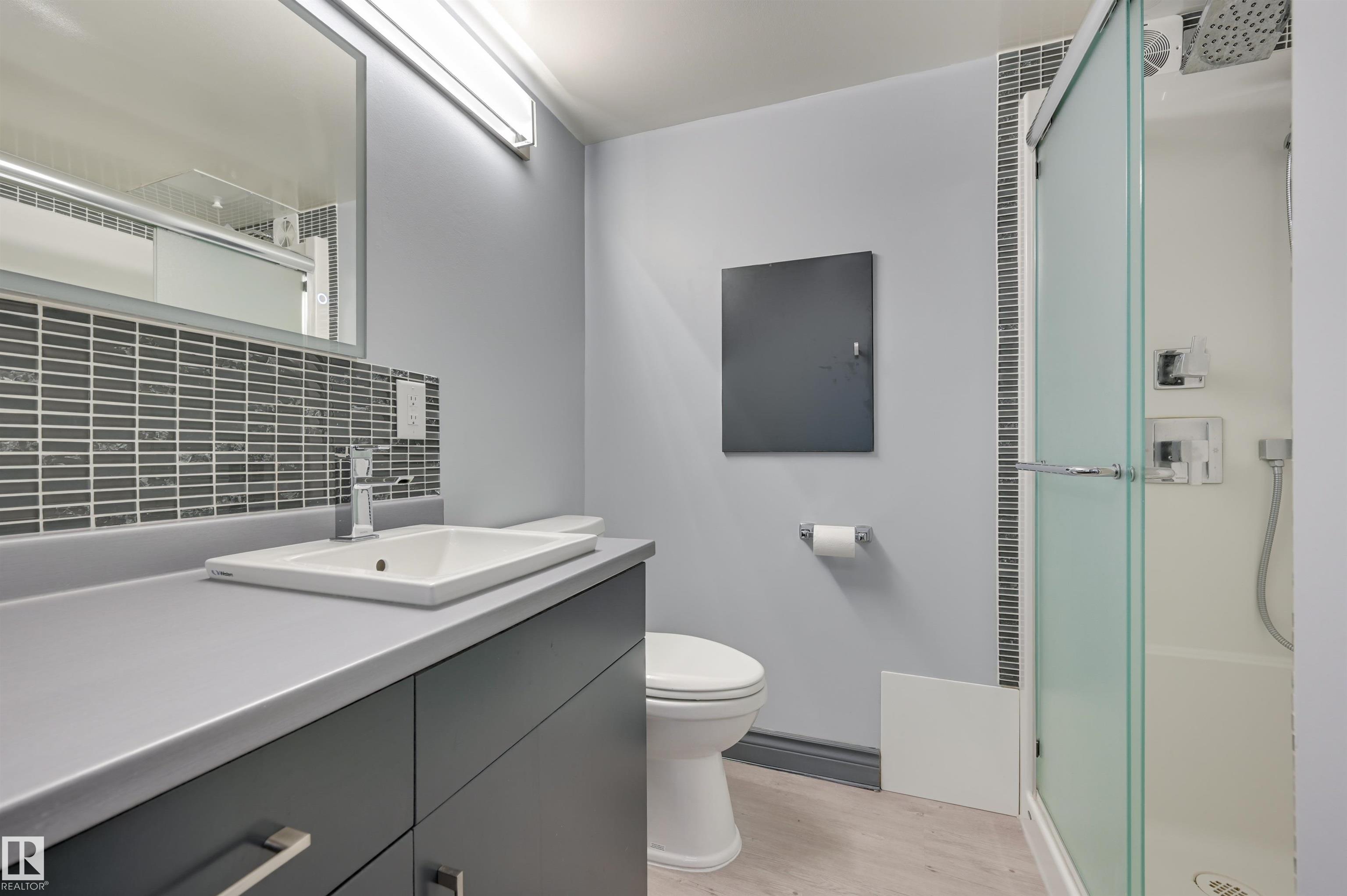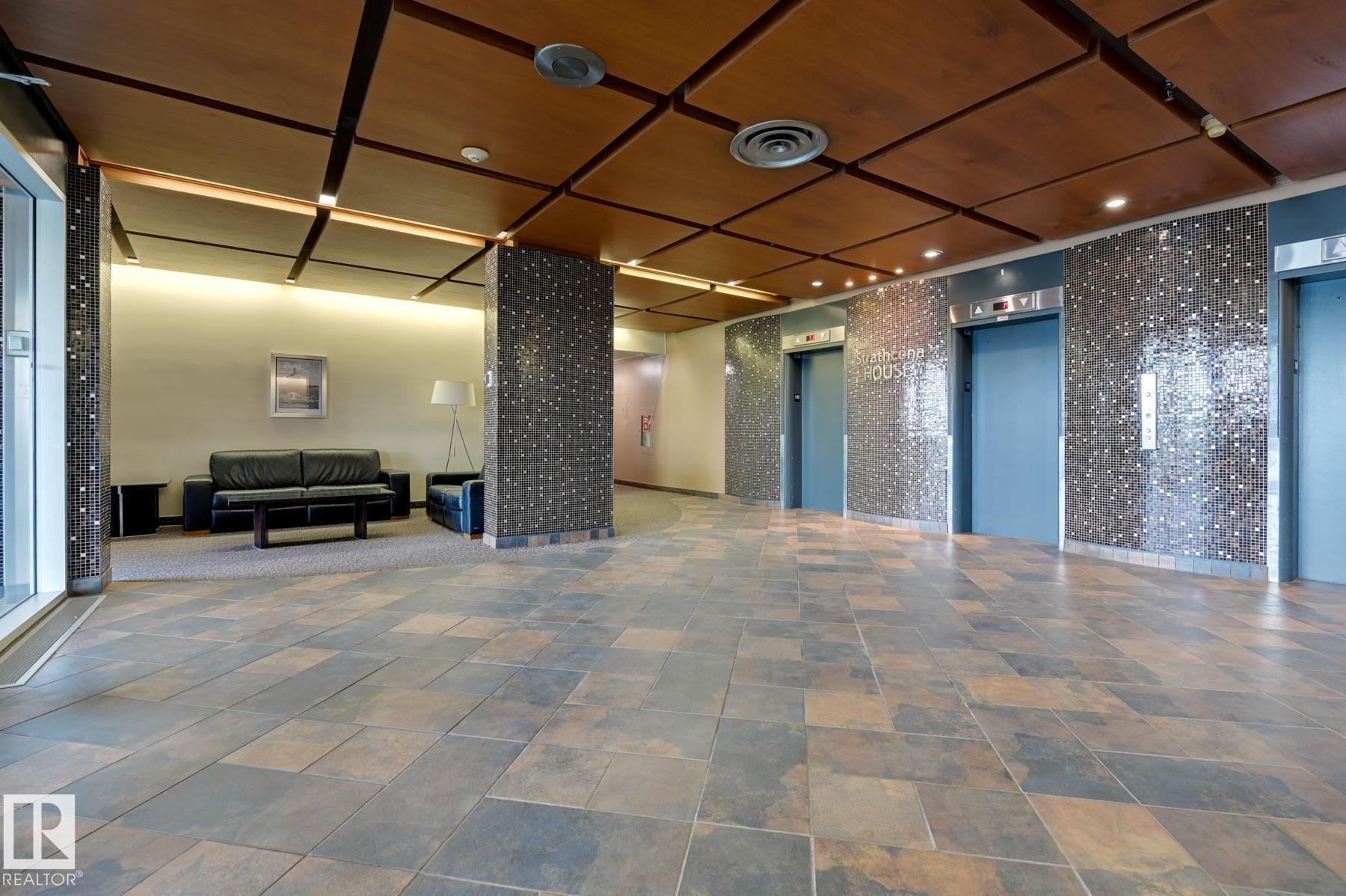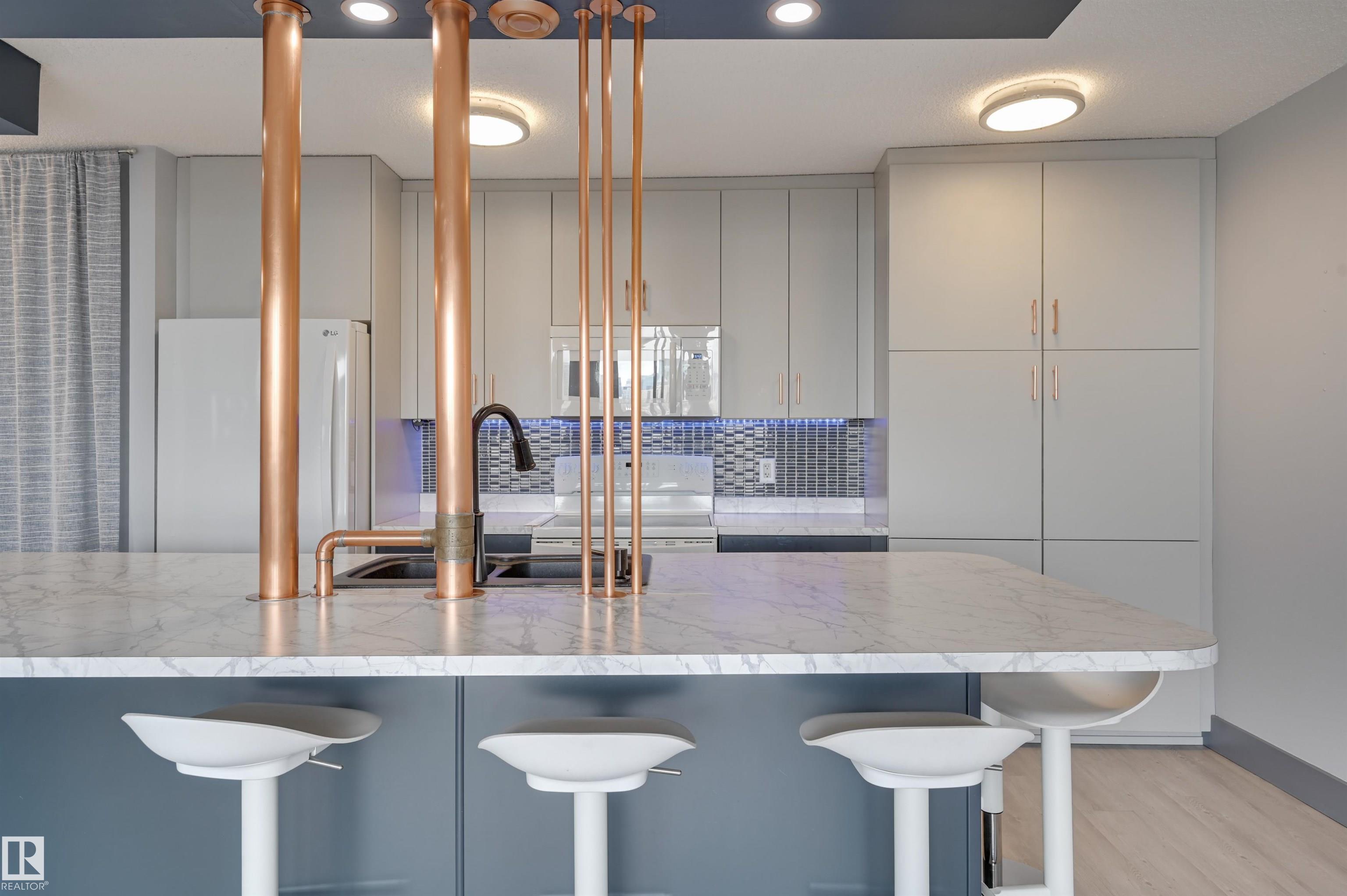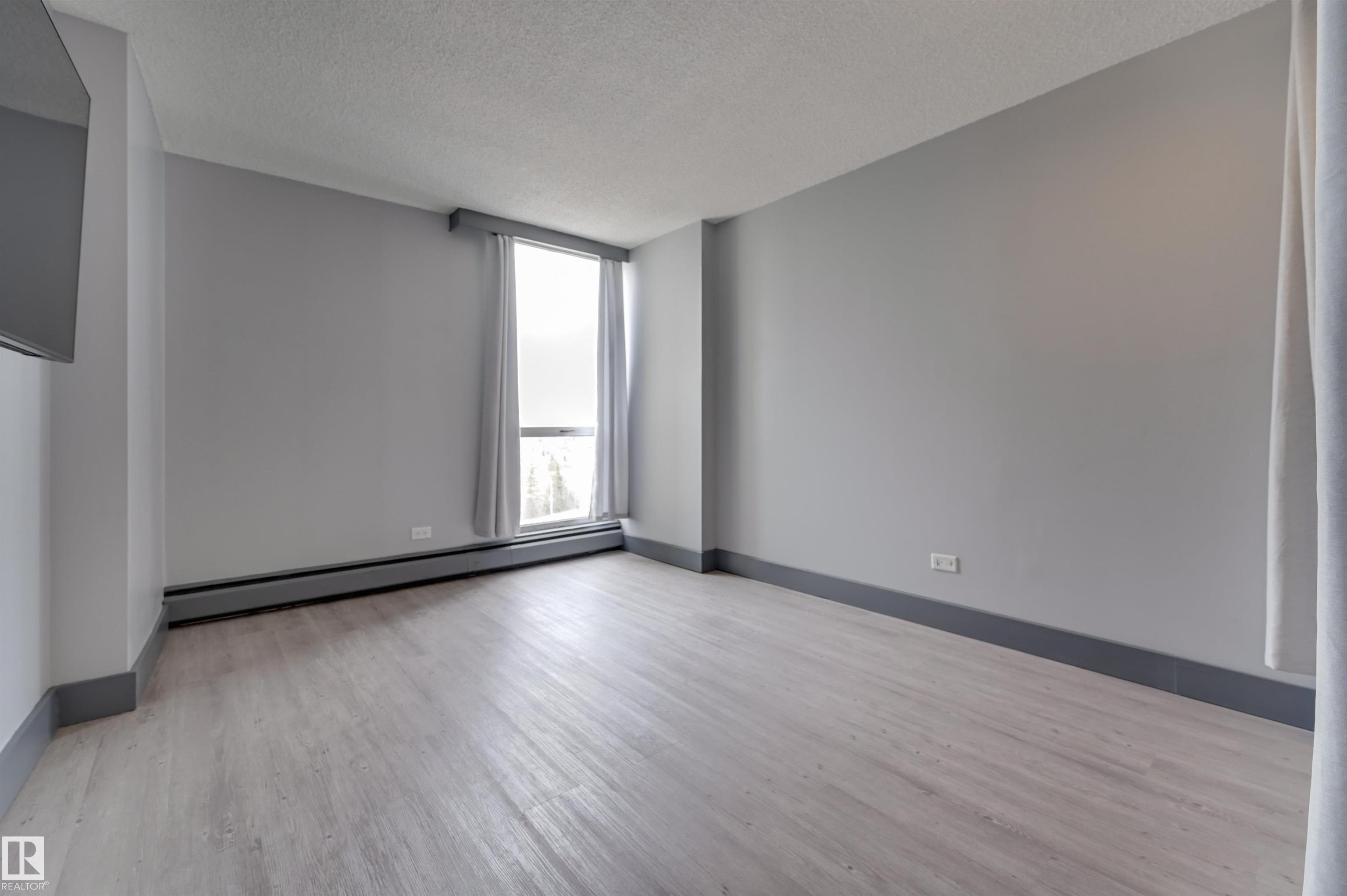 DOWNTOWN and RIVER VALLEY VIEWS from this RENOVATED 652 sq.ft. condo conveniently located on SASKATCHEWAN DRIVE just steps to the river valley trails, trendy shops, restaurants, coffee shops and a short walk to the U of A and Whyte Avenue. Features of this beautiful home include an OPEN KITCHEN with 2 tone cabinetry with lots of storage, a pantry and a large island, vinyl plank flooring throughout & a 3 piece bathroom with a large walk-in shower. Included is the fridge, ceramic top stove, microwave hood fan, dishwasher, wall mounted TV's in the living room & bedroom & the bar stools. Enjoy the gorgeous views from the spacious north facing balcony. The condo fees include all the utilities and building amenities which include an outside courtyard, fitness centre, social room, saunas and visitor parking. Shows very well!