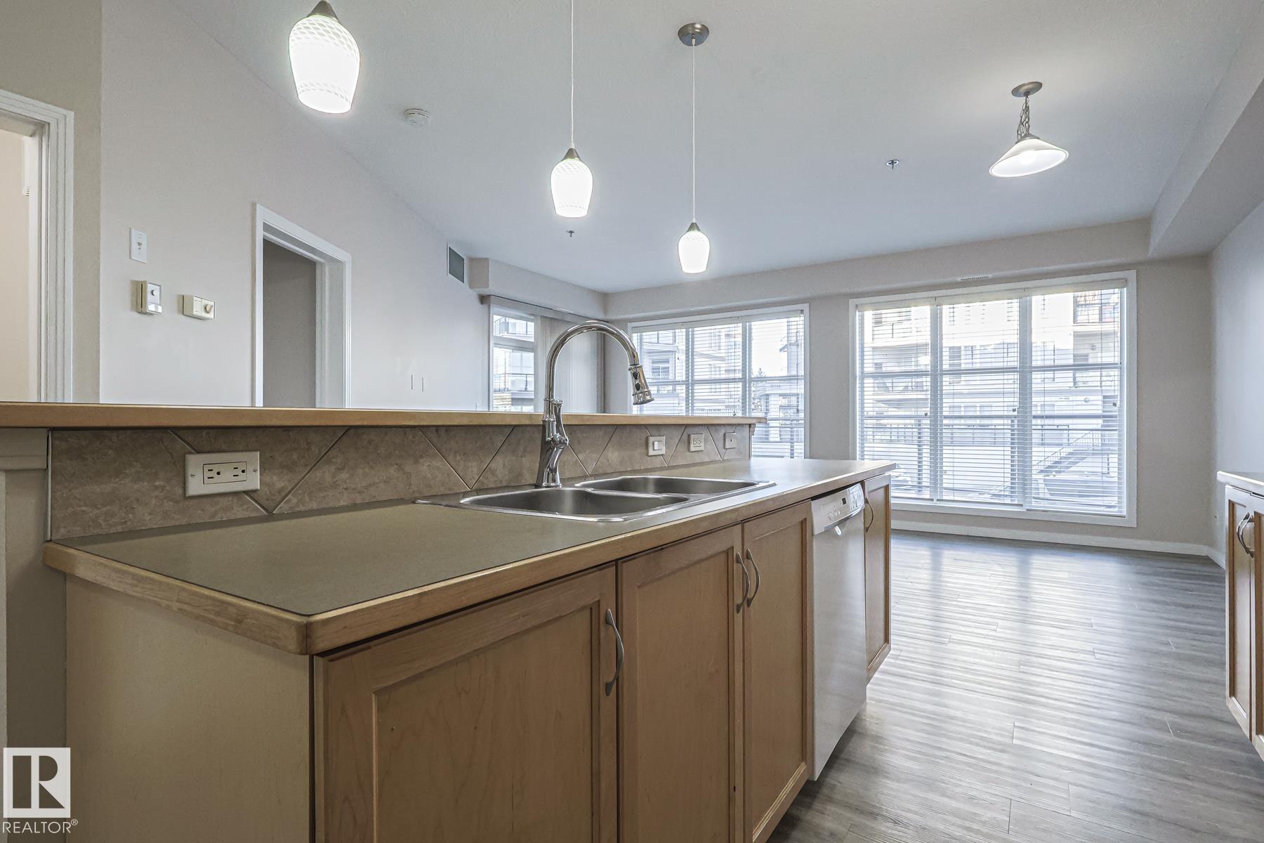 This spacious condo is located in the desired complex of SOUTHVIEW COURT in the community of EMPIRE PARK. Entering this unit, you come to an OPEN CONCEPT layout with a large living room, dining area and an ideal kitchen with a BREAKFAST ISLAND featuring all your essential appliances. This unit comes with large windows exhibiting plenty of NATURAL LIGHT, vinyl plank throughout and a large dedicated BALCONY for your summer enjoyment. The spacious large bedroom features an ENSUITE full bathroom. There is another bedroom and full bathroom. Enjoy the convenience of in-suite laundry and your own dedicated TITLED underground parking stall with an allocated STORAGE CAGE. This amazing location features many amenities including grocery stores, shopping, restaurants, schools, public transportation and easy access to major roadways like Gatway Blvd, Calgary Trail, and Whitmud.