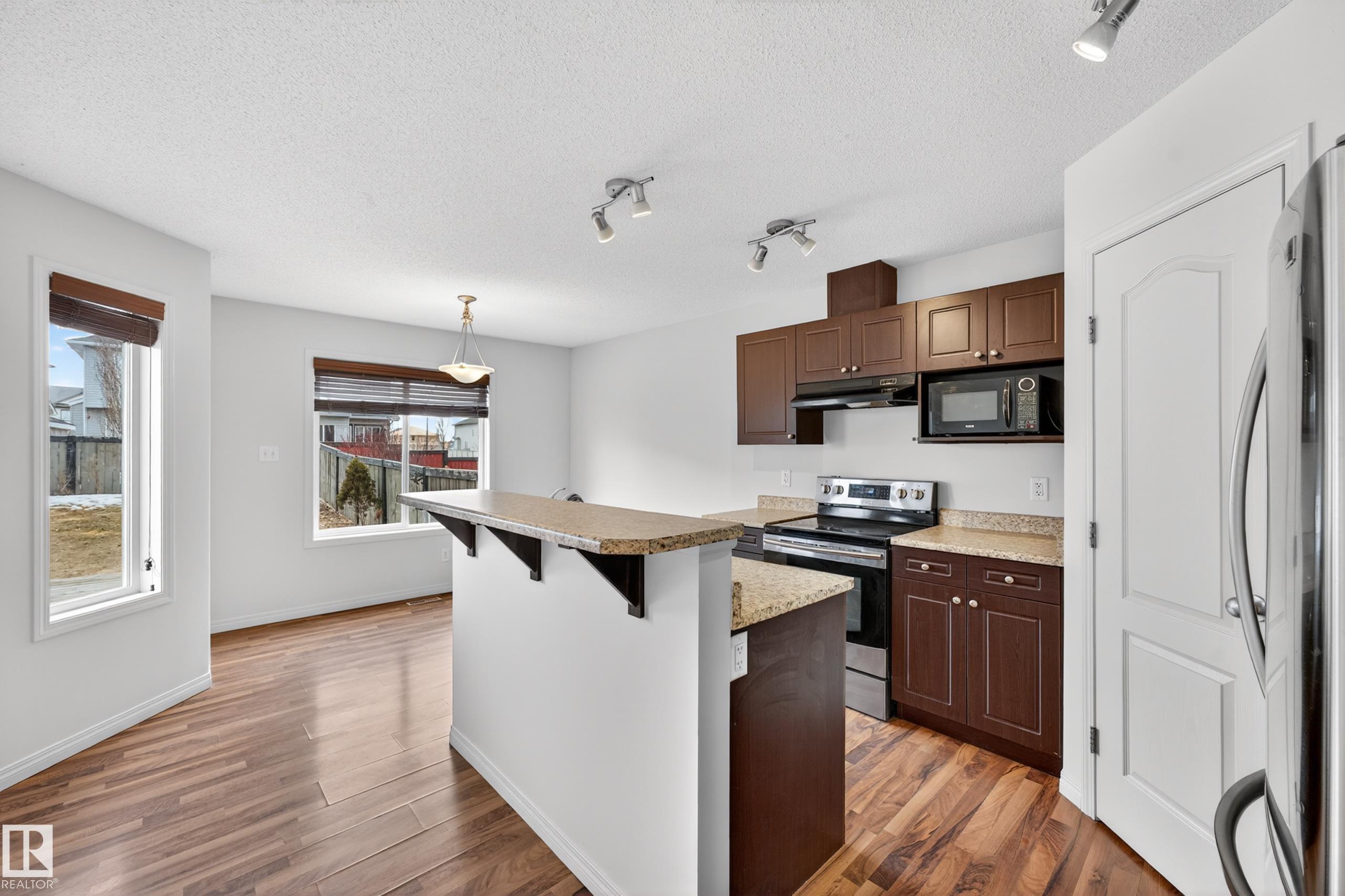 The perfect place to call home! This fully finished, 1,429 sq. ft. half-duplex is nestled in the heart of Westpark, one of Fort Saskatchewan?s most desirable communities. Walking through the front door, you are greeted by an inviting open-concept main floor that seamlessly connects the living, dining, and kitchen areas. Large windows allow for loads of natural light to fill the space. Upstairs, discover a versatile bonus room alongside 3 spacious bedrooms, including a primary suite with transitional ensuite. The value continues in the fully finished basement featuring a large recreation room. Step outside to your private deck and fully fenced yard, ideal for summer BBQs and outdoor activities. Parking is a breeze with your attached garage and paved driveway. Located steps from the city's trail network, you are close to schools, shopping, playgrounds, and the river valley. This 2-storey home offers the perfect blend of comfort and convenience. Welcome home!