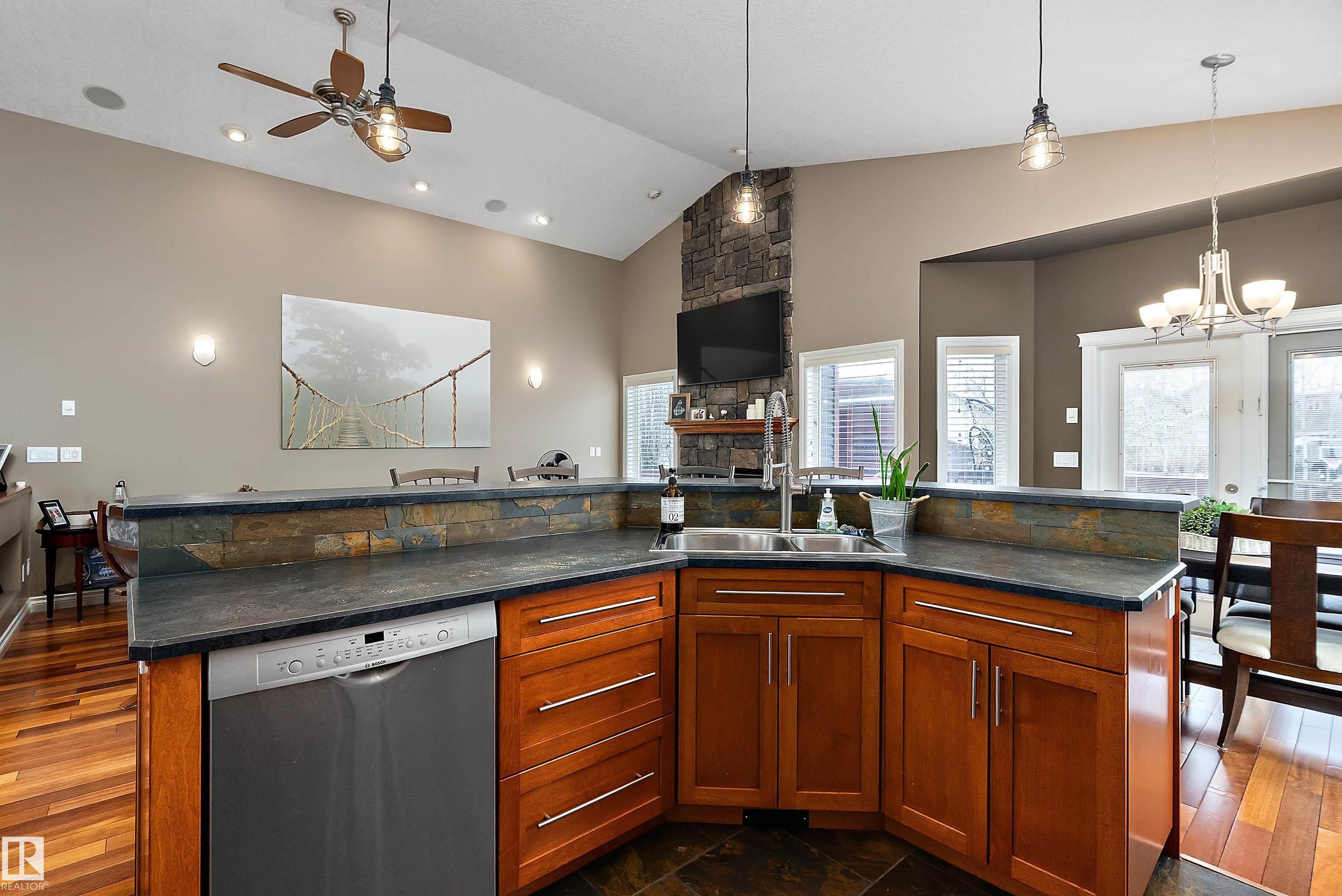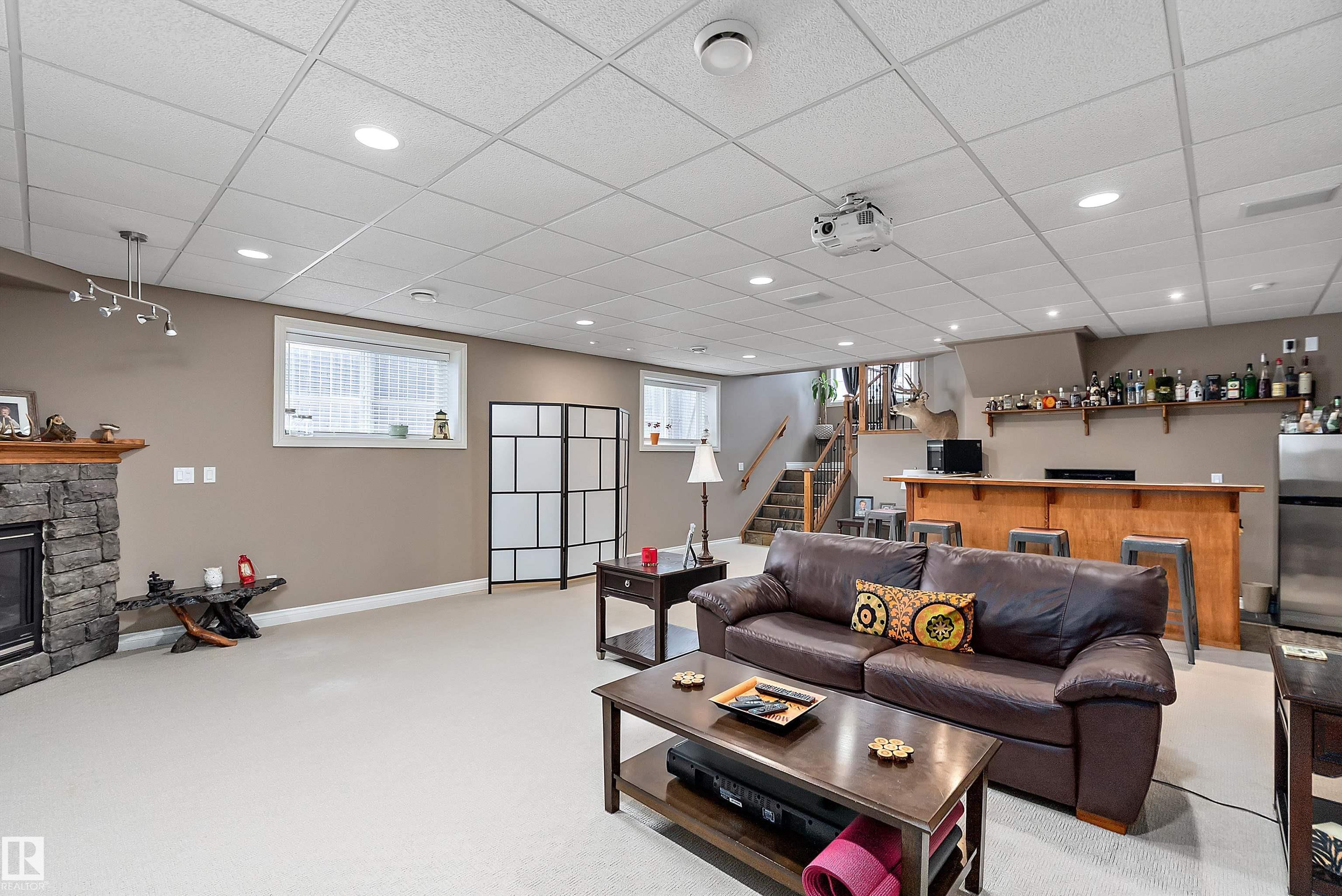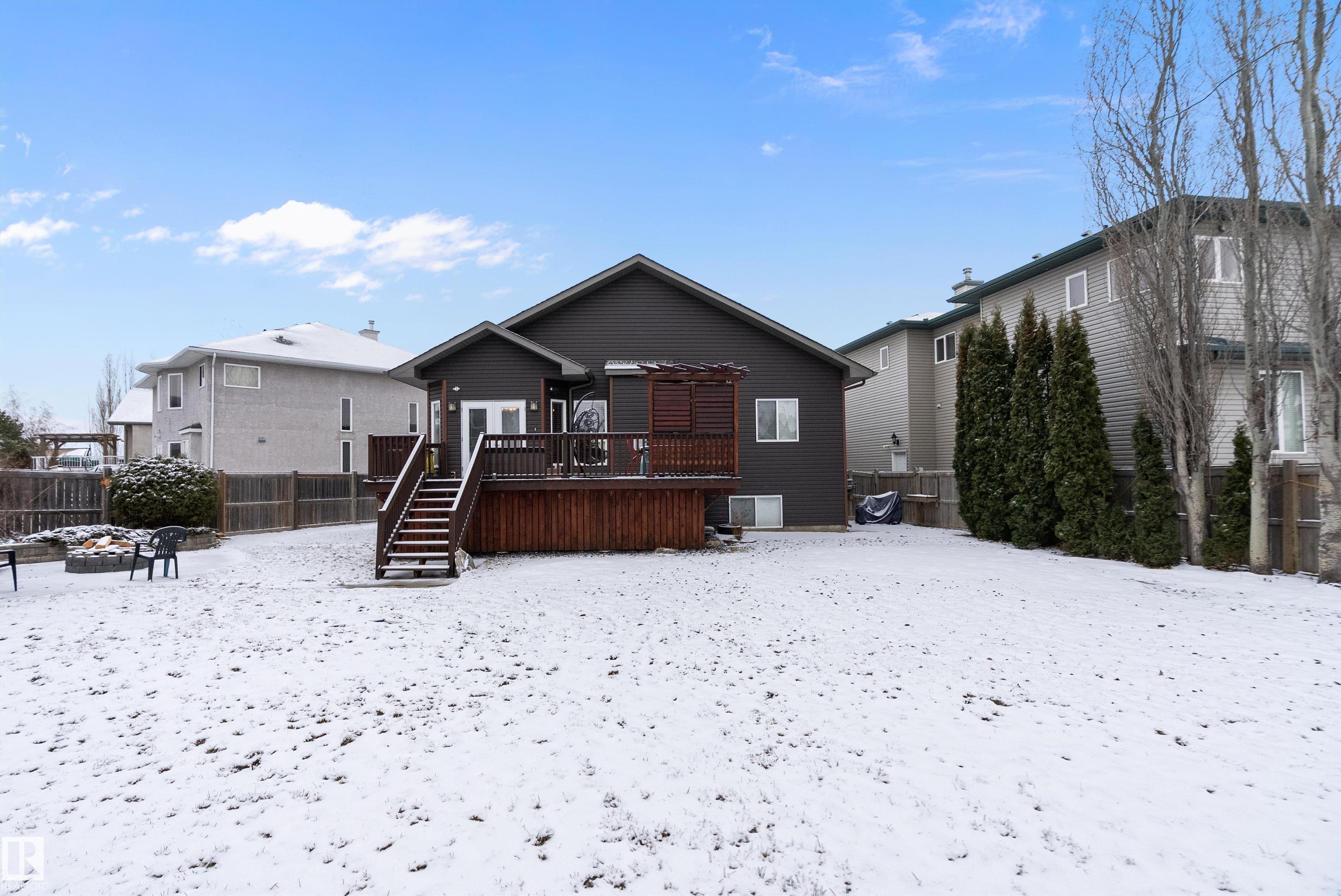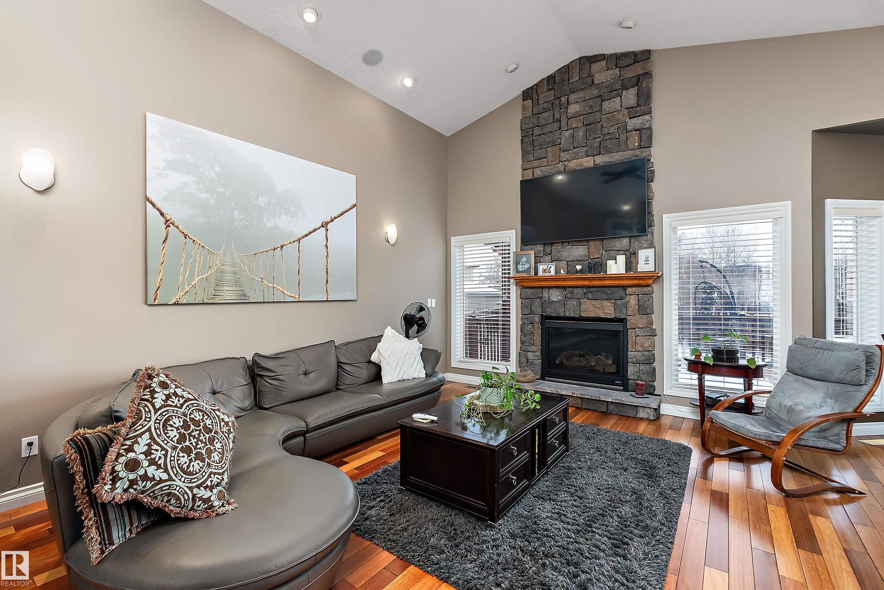 STOP THE CAR!!! This exceptional executive 1946 SQ FT Bi-level offers an impressive blend of style and functionality with 4 bed & 3 full baths on a quiet cul-de-sac, set on a massive 8,900+ sq. ft. lot. The open-concept design features soaring vaulted ceilings, hardwood & slate flooring, with a striking floor-to-ceiling stone fireplace in the living room. The spacious kitchen includes a raised eating bar, stainless steel appliances, and flows into a large dining area with patio doors leading to a deck and fully fenced backyard?ideal for entertaining, kids, and pets. The main level also includes a den, two bedrooms, and a 4-piece bath. Upstairs, the primary suite boasts a walk-in closet and a luxurious 5-piece ensuite. The fully finished basement offers a large rec room, wet bar, corner gas fireplace, fourth bedroom, and another 4-piece bath. Extras include surround sound, outdoor speakers, and a fire pit. Located within walking distance to the river valley, trails, and parks?this home truly has it all!