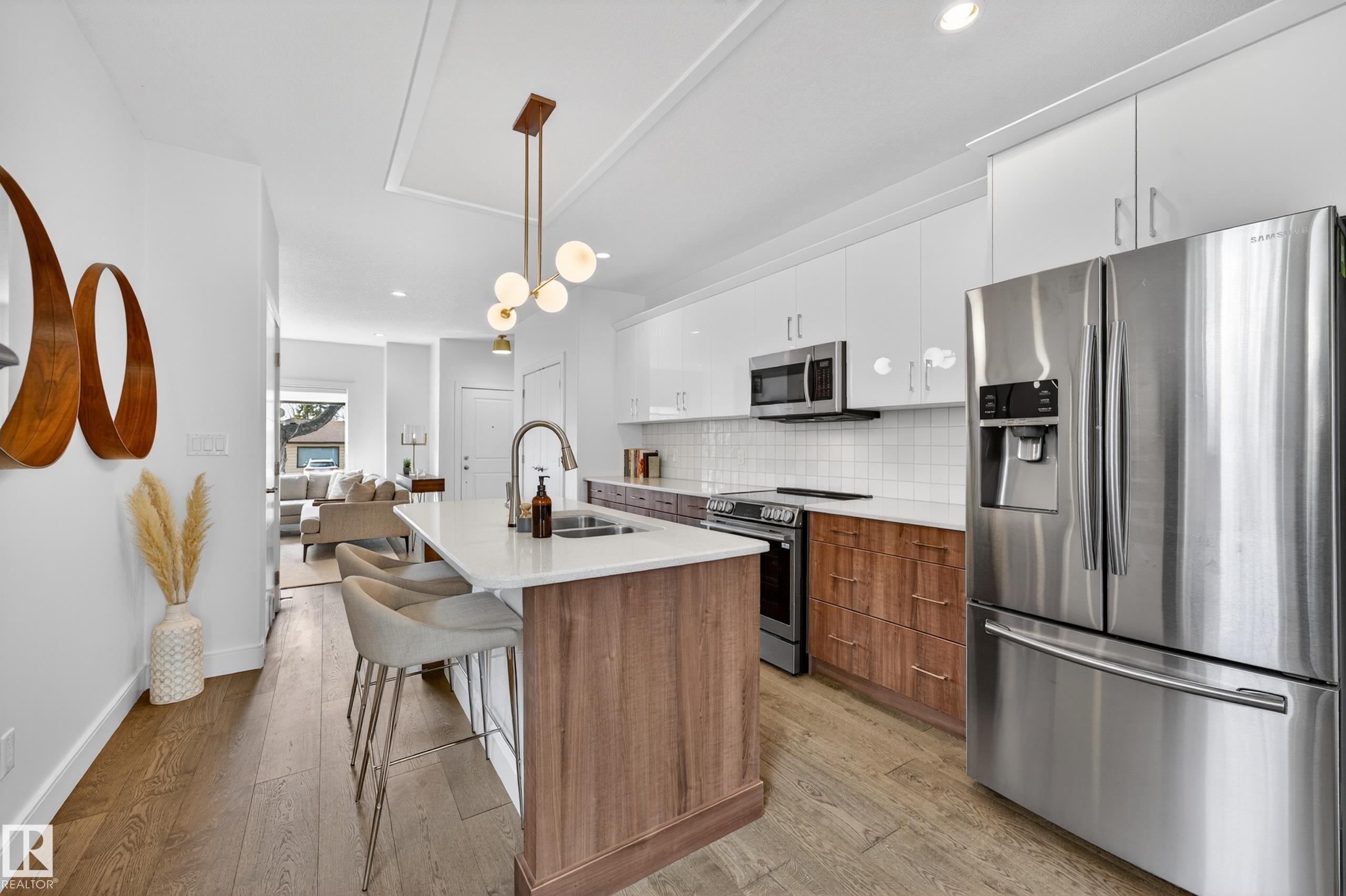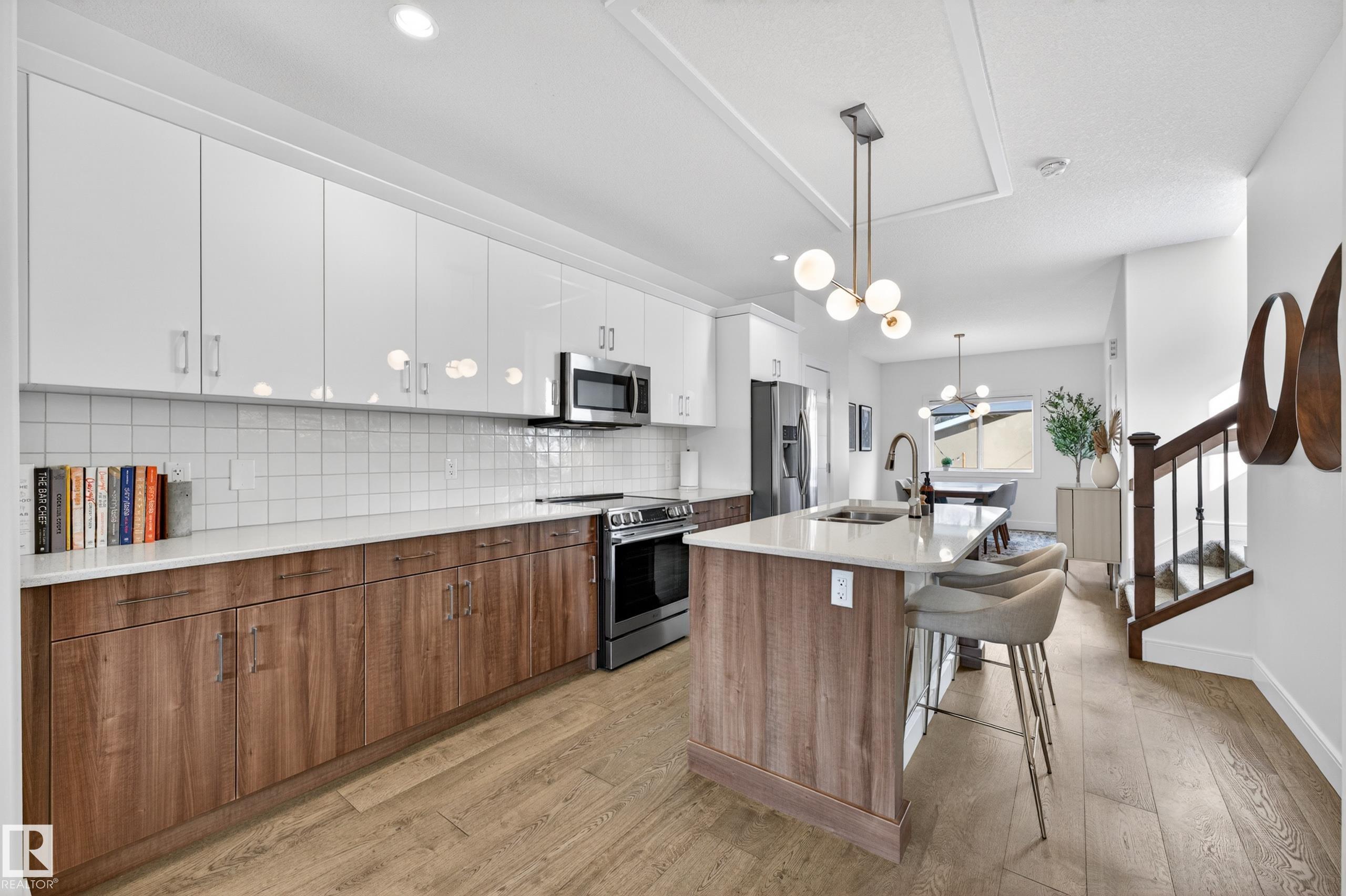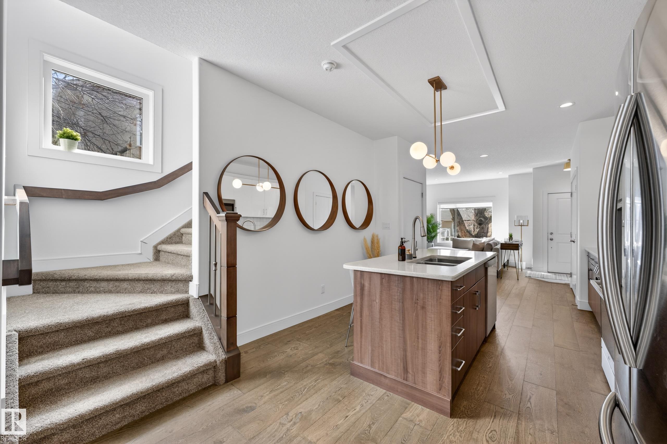 Welcome to this stunning 2-storey in sought-after Holyrood, built by Shree Homes! Offering 1,611 sq ft above grade plus a fully finished basement, this 3 bedroom, 2.5 bath home is loaded with upgrades and designed for modern living. The main floor features a bright open-concept layout with 9? ceilings, hardwood flooring, and ceramic tile in entryways and baths. Spacious foyer leads to a cozy great room with fireplace, flowing into a chef-inspired kitchen with quartz countertops, stainless steel appliances, and large dining area. Convenient 2-pc bath completes the main level. Upstairs offers a generous primary suite with walk-in closet and ensuite with dual sinks, plus 2 additional bedrooms and full bath. Fully finished basement adds extra living space with rec room and gym. Enjoy a fully fenced yard, front landscaping, gas line for BBQ, side entrance, and double detached garage. Exceptional location and value. A must see!