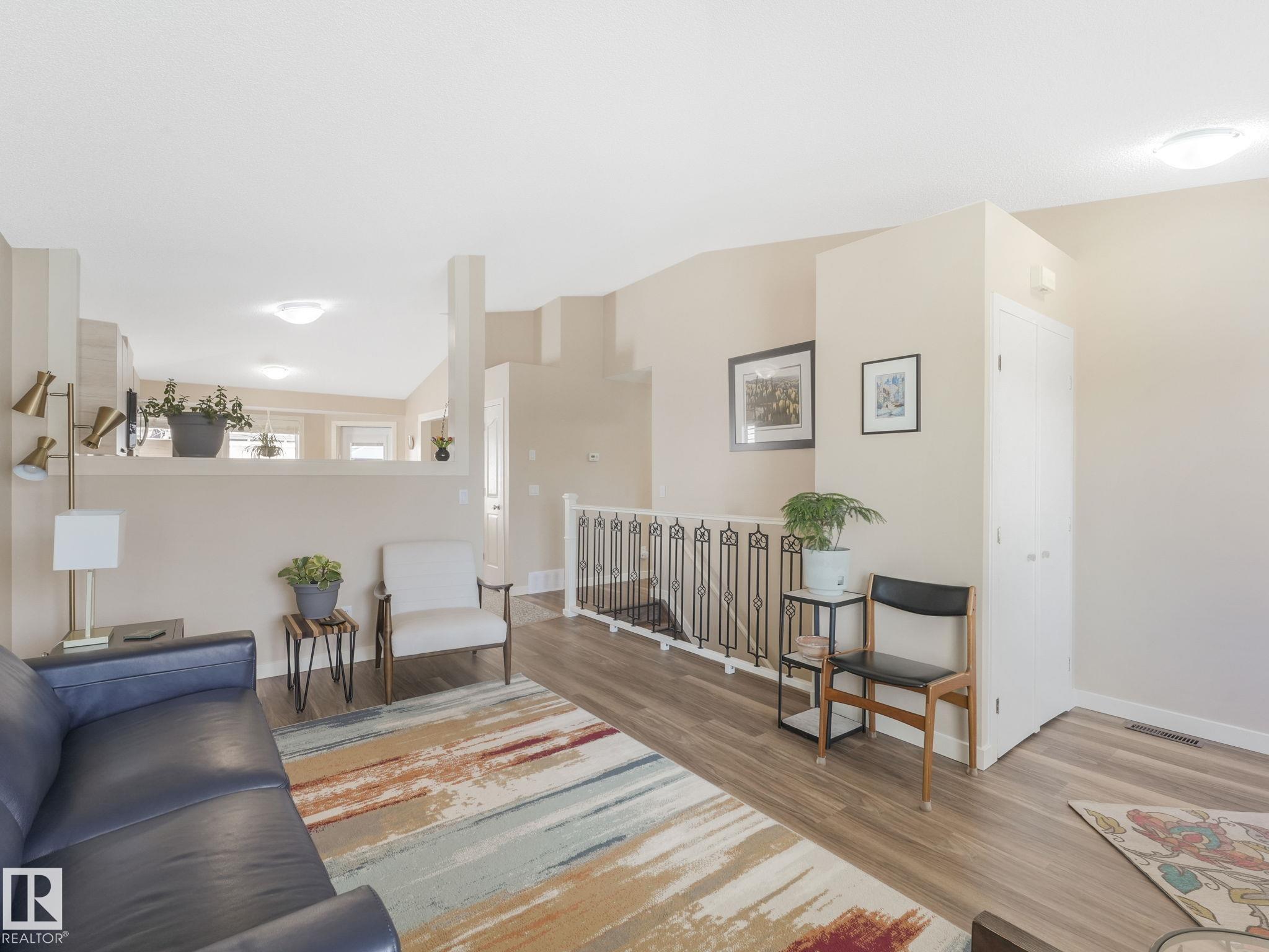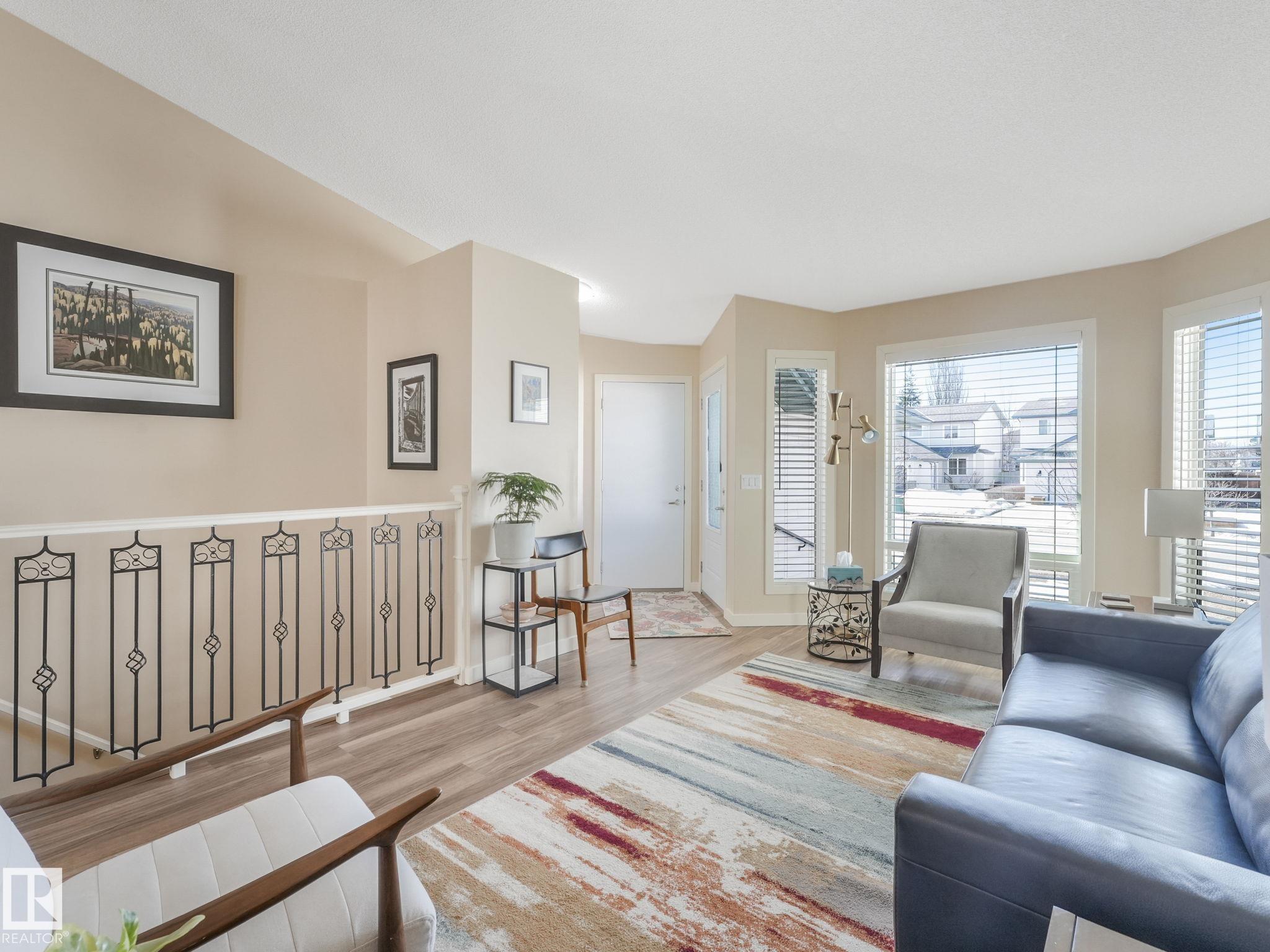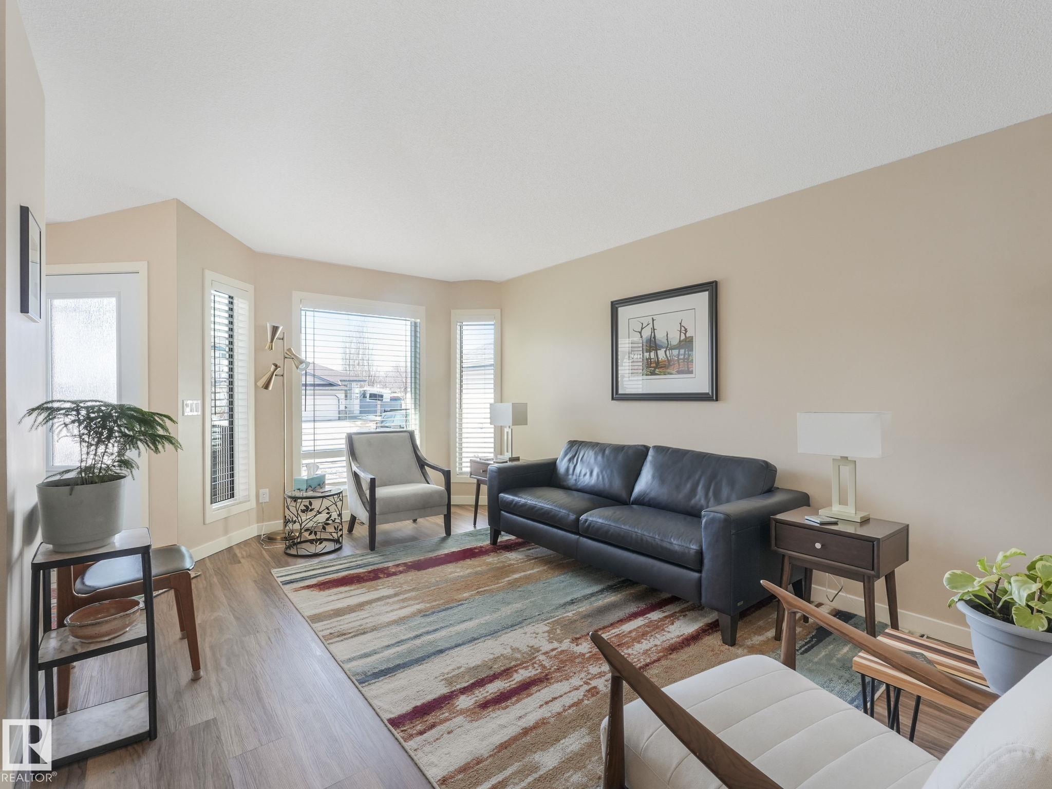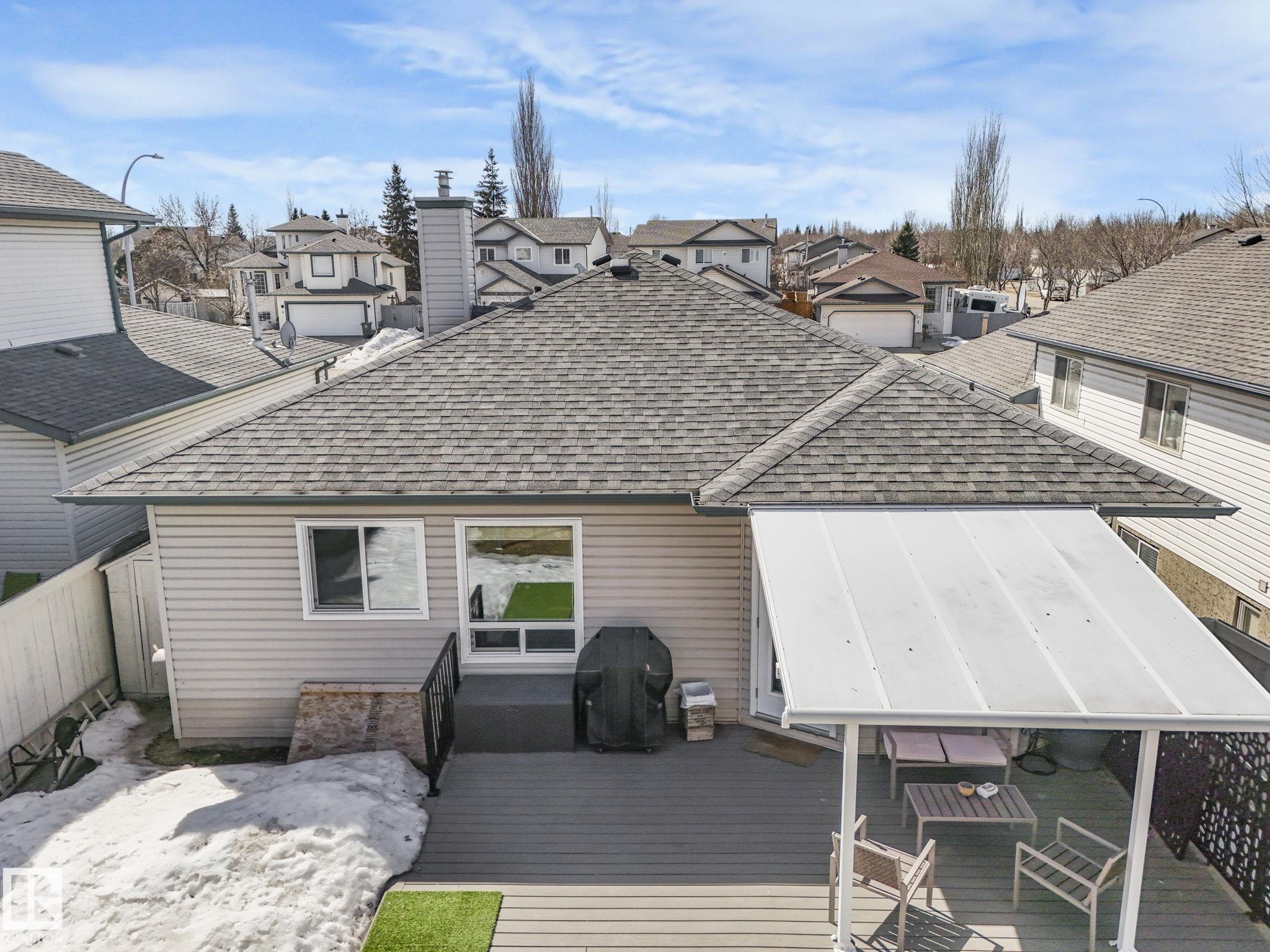 REMODELLED in HERITAGE LAKES. 3 bedrooms total and 3 full baths. This 1068 sq ft bungalow has extensive improvements. This open home has vaulted ceilings accentuated with an open main floor. The kitchen was remodeled(2024) with new soft-close cabinets, island, countertops, and stainless steel appliances. New doors and triple pane windows with custom window coverings throughout with SunStop on west facing windows(2024), floorcoverings(2023 up, 2025 down), painted(2023), baseboards(2025), new insulated overhead garage door(2025), all light fixtures(2023), central air conditioning(2023), backyard retaining wall brickwork(2023). Primary bedroom has a walkin closet and 3 -pc ensuite. Maintenace free deck and enclosed fenced yard for kids and pets. Furnace last serviced Feb 2026. Close to schools, parks, playground. Easy access to Edmonton via 170St, Ray Gibbon Dr, and Anthony Henday.