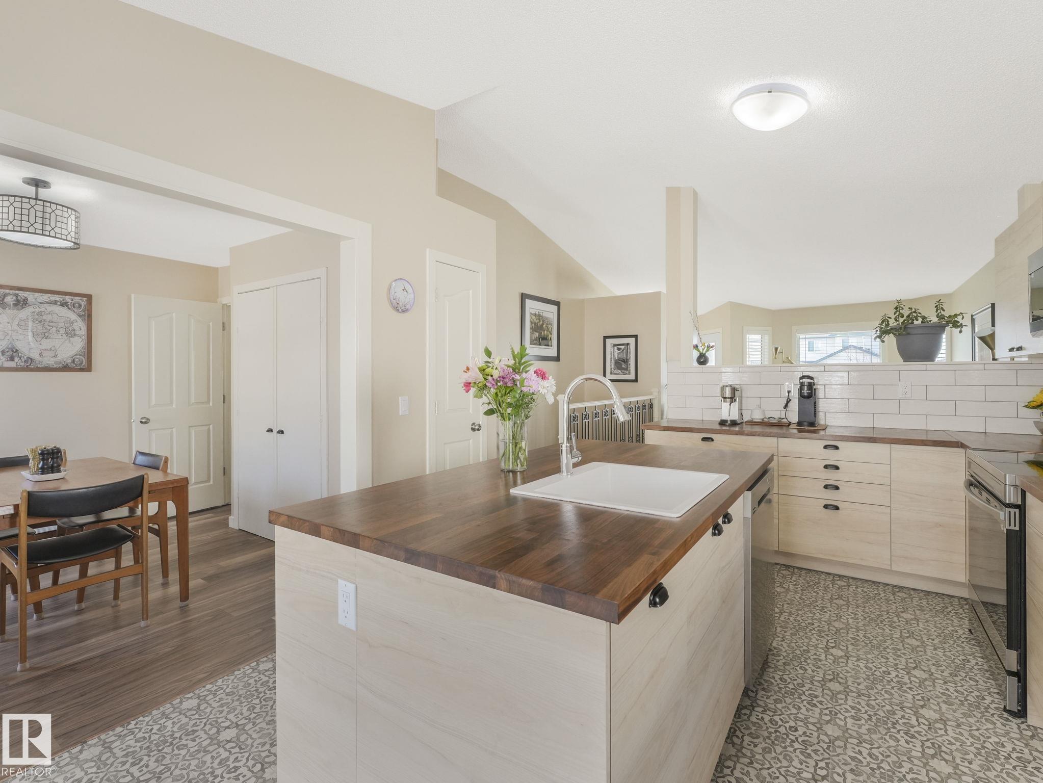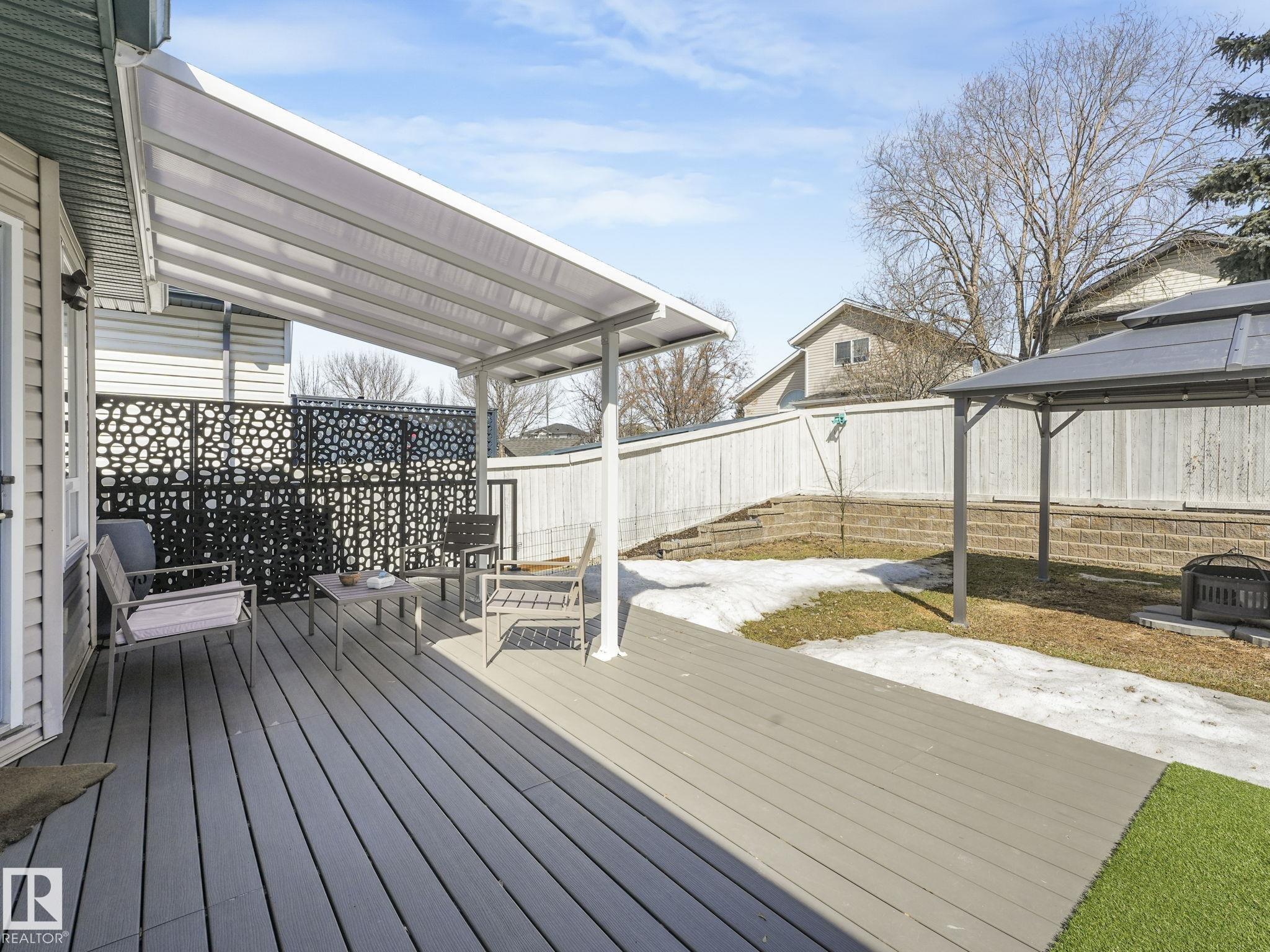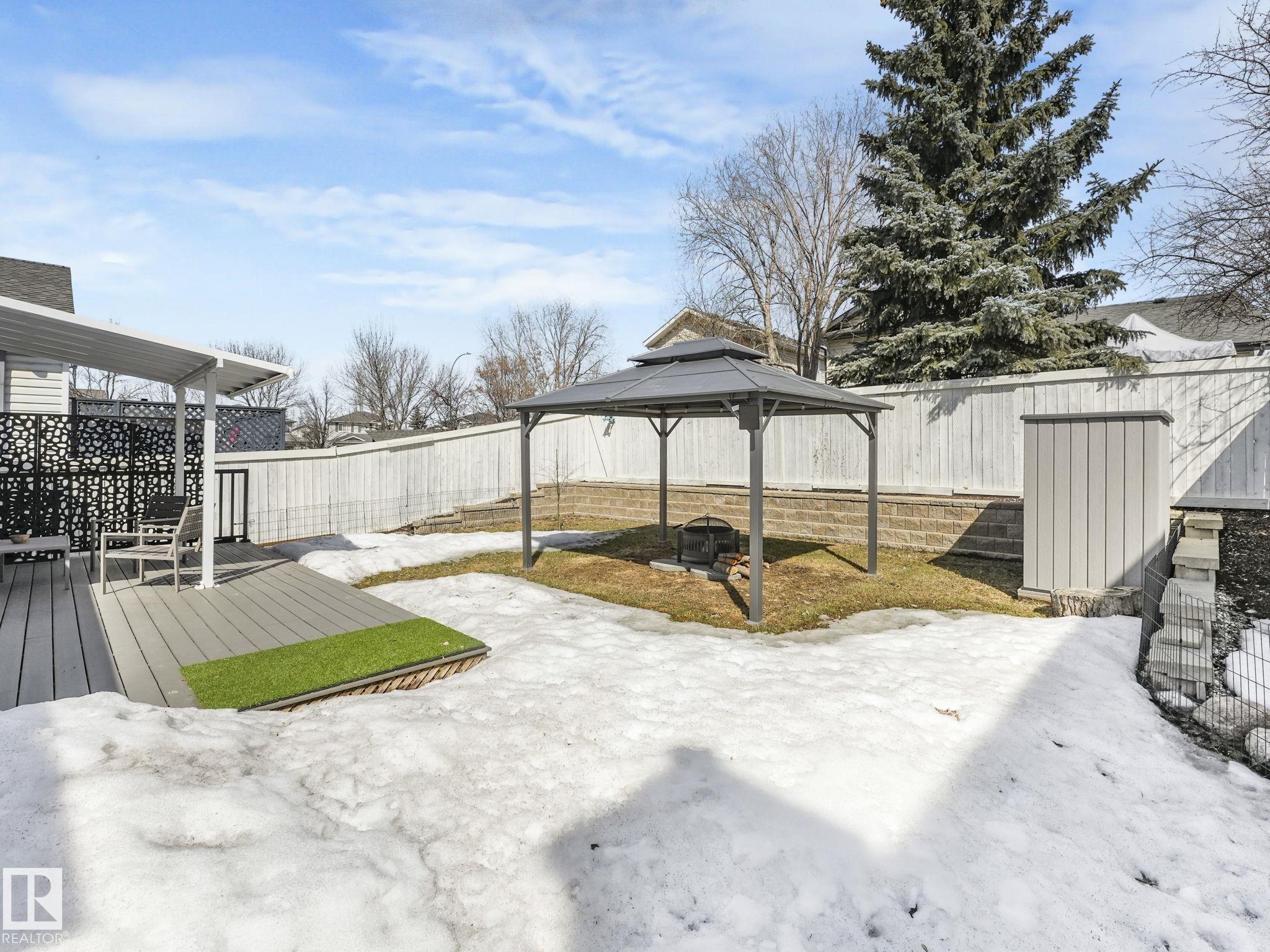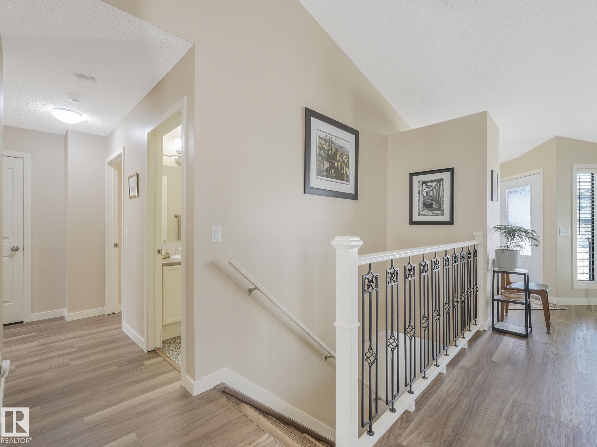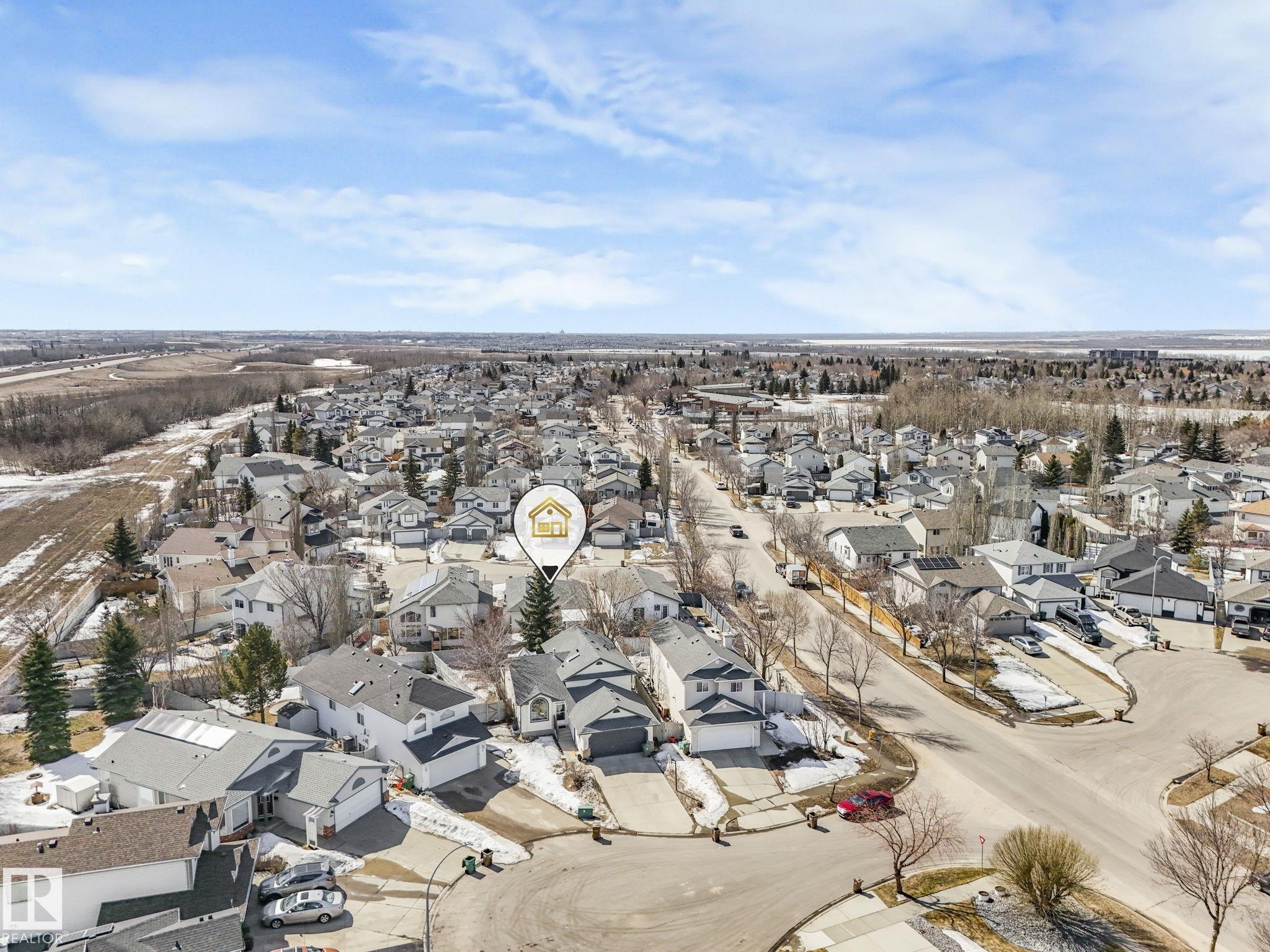 REMODELLED in HERITAGE LAKES. 3 bedrooms total and 3 full baths. This 1068 sq ft bungalow has extensive improvements. This open home has vaulted ceilings accentuated with an open main floor. The kitchen was remodeled(2024) with new soft-close cabinets, island, countertops, and stainless steel appliances. New doors and triple pane windows with custom window coverings throughout with SunStop on west facing windows(2024), floorcoverings(2023 up, 2025 down), painted(2023), baseboards(2025), new insulated overhead garage door(2025), all light fixtures(2023), central air conditioning(2023), backyard retaining wall brickwork(2023). Primary bedroom has a walkin closet and 3 -pc ensuite. Maintenace free deck and enclosed fenced yard for kids and pets. Furnace last serviced Feb 2026. Close to schools, parks, playground. Easy access to Edmonton via 170St, Ray Gibbon Dr, and Anthony Henday.
