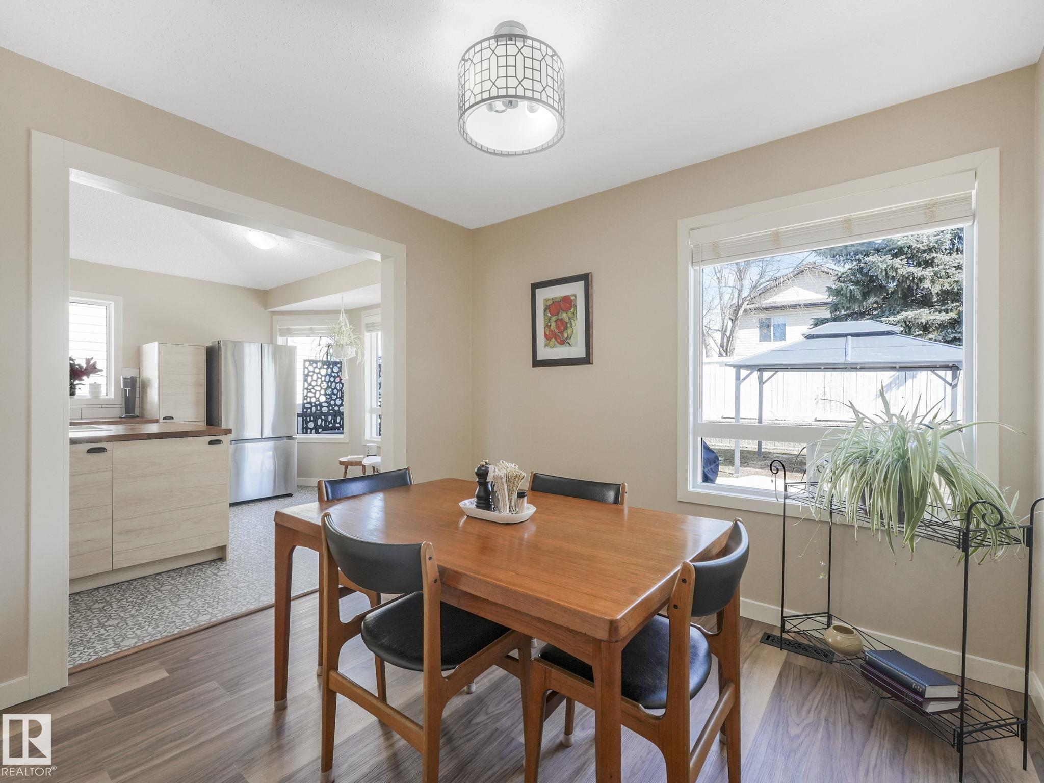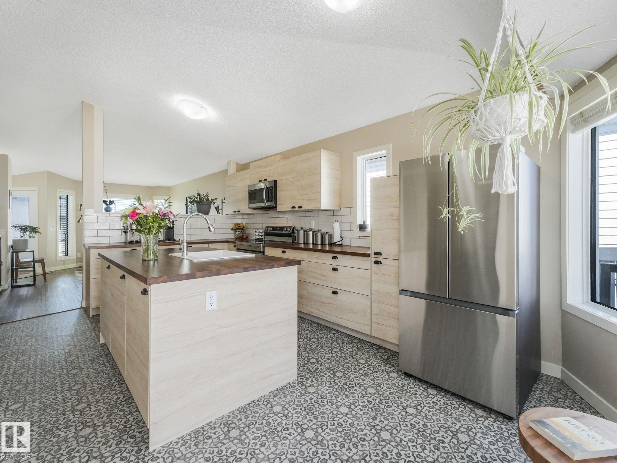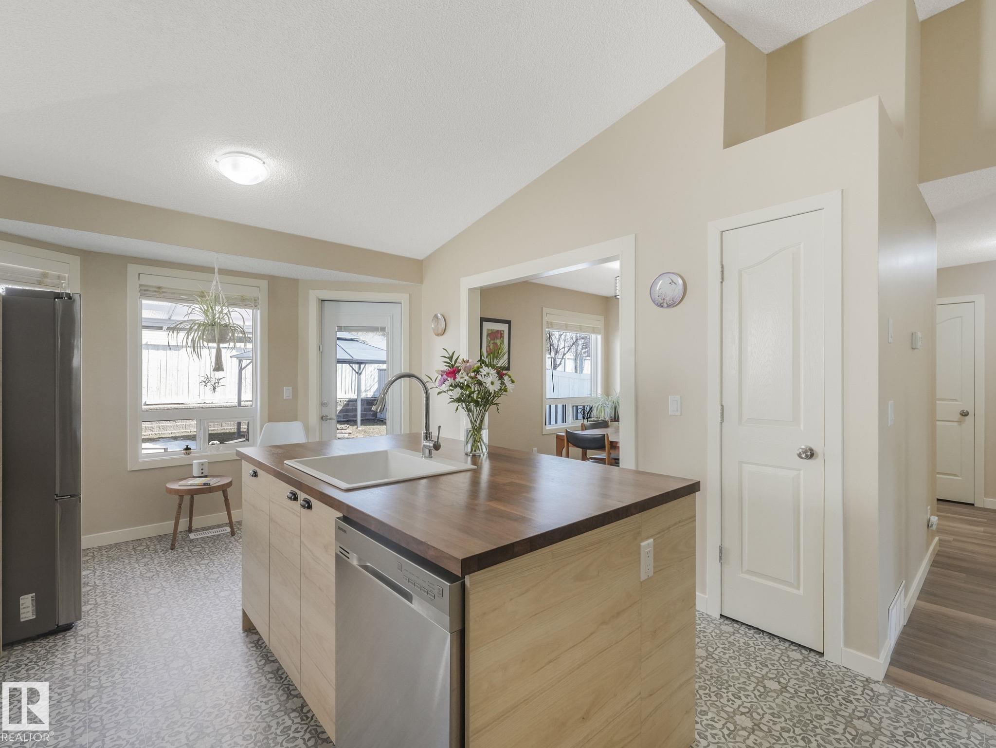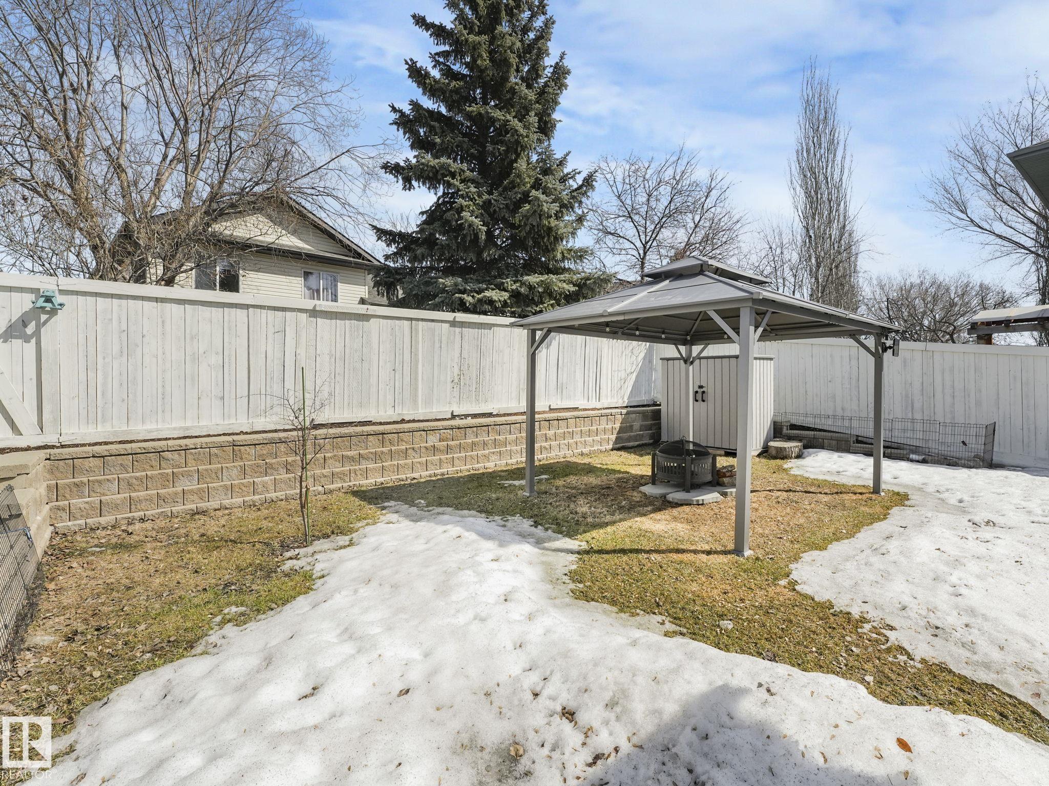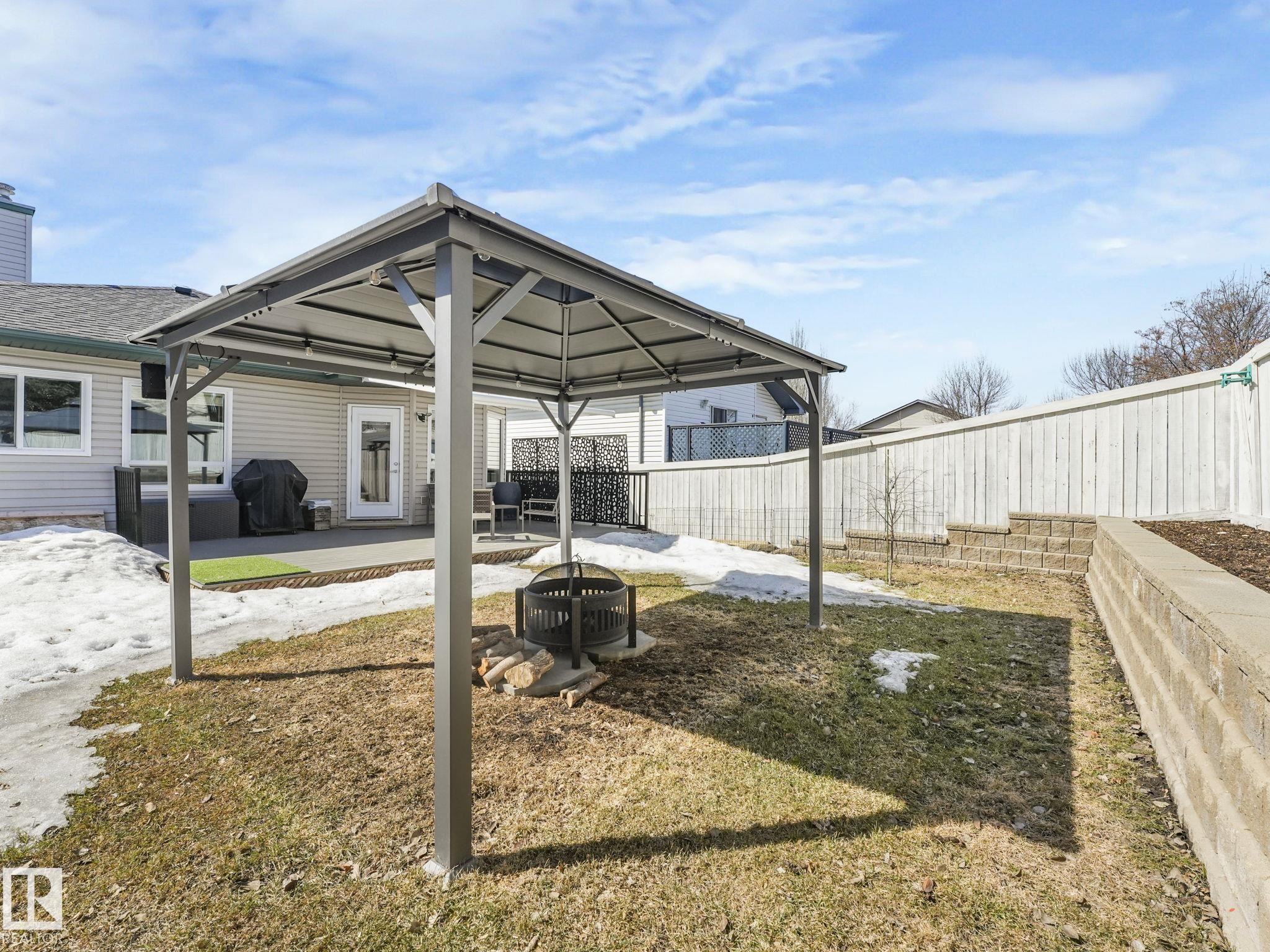 REMODELLED in HERITAGE LAKES. 3 bedrooms total and 3 full baths. This 1068 sq ft bungalow has extensive improvements. This open home has vaulted ceilings accentuated with an open main floor. The kitchen was remodeled(2024) with new soft-close cabinets, island, countertops, and stainless steel appliances. New doors and triple pane windows with custom window coverings throughout with SunStop on west facing windows(2024), floorcoverings(2023 up, 2025 down), painted(2023), baseboards(2025), new insulated overhead garage door(2025), all light fixtures(2023), central air conditioning(2023), backyard retaining wall brickwork(2023). Primary bedroom has a walkin closet and 3 -pc ensuite. Maintenace free deck and enclosed fenced yard for kids and pets. Furnace last serviced Feb 2026. Close to schools, parks, playground. Easy access to Edmonton via 170St, Ray Gibbon Dr, and Anthony Henday.