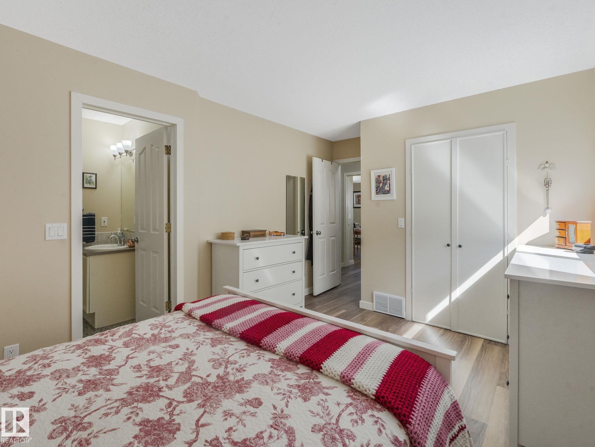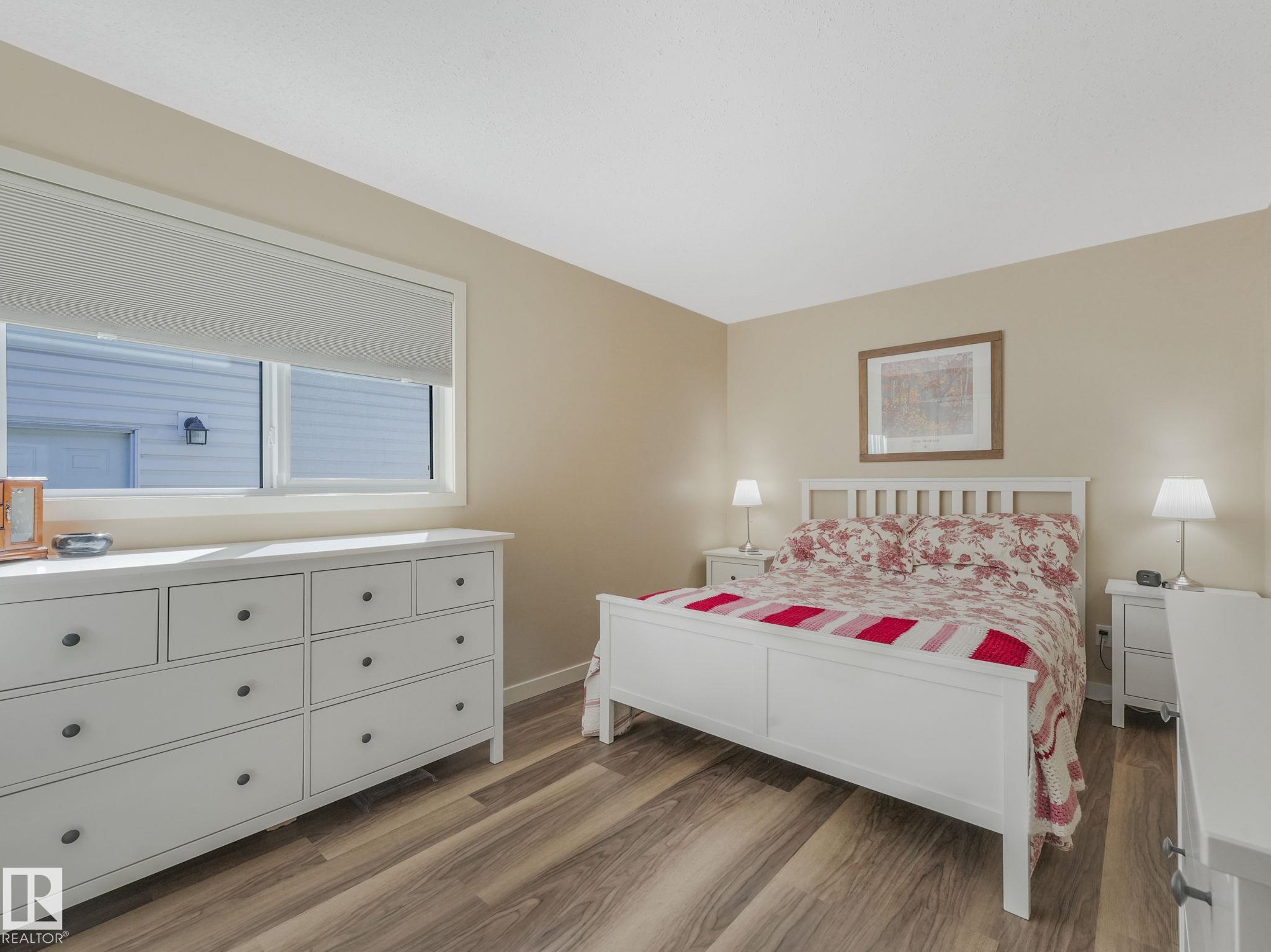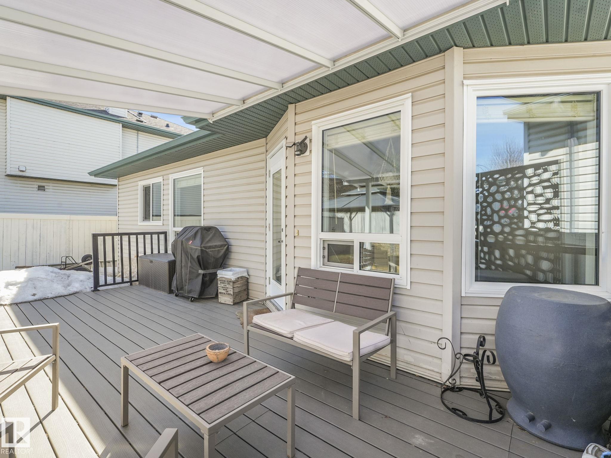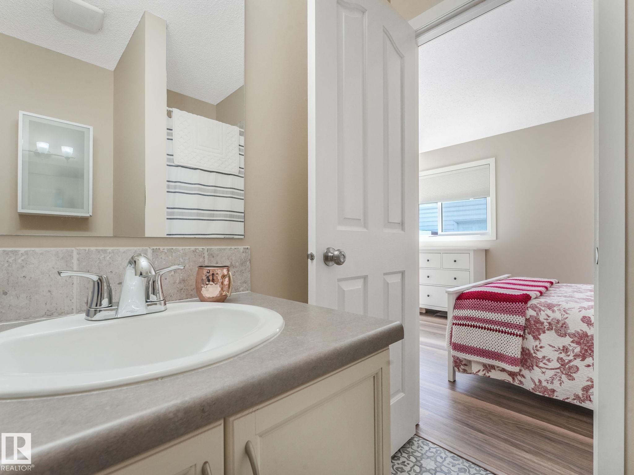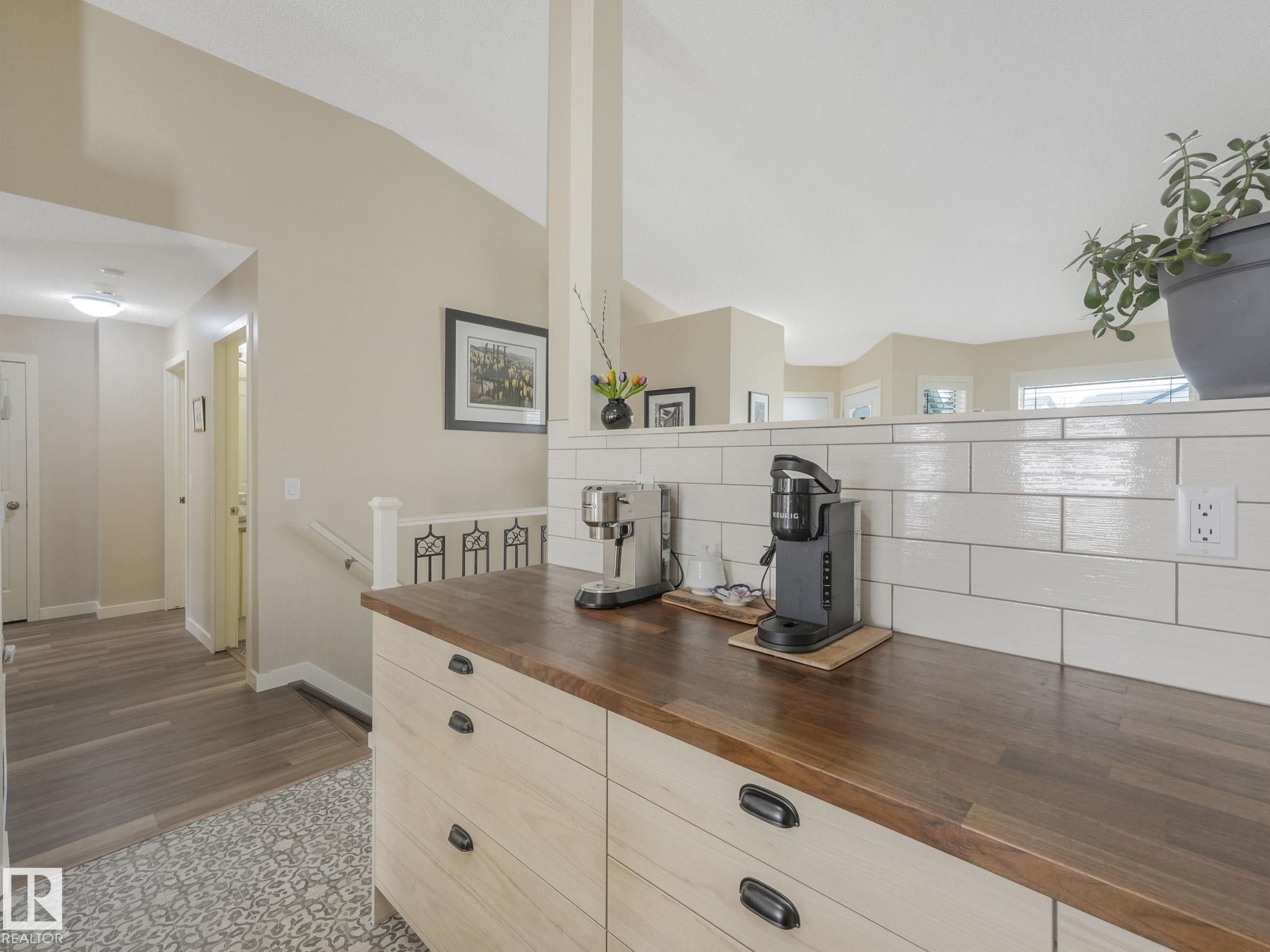 REMODELLED in HERITAGE LAKES. 3 bedrooms total and 3 full baths. This 1068 sq ft bungalow has extensive improvements. This open home has vaulted ceilings accentuated with an open main floor. The kitchen was remodeled(2024) with new soft-close cabinets, island, countertops, and stainless steel appliances. New doors and triple pane windows with custom window coverings throughout with SunStop on west facing windows(2024), floorcoverings(2023 up, 2025 down), painted(2023), baseboards(2025), new insulated overhead garage door(2025), all light fixtures(2023), central air conditioning(2023), backyard retaining wall brickwork(2023). Primary bedroom has a walkin closet and 3 -pc ensuite. Maintenace free deck and enclosed fenced yard for kids and pets. Furnace last serviced Feb 2026. Close to schools, parks, playground. Easy access to Edmonton via 170St, Ray Gibbon Dr, and Anthony Henday.