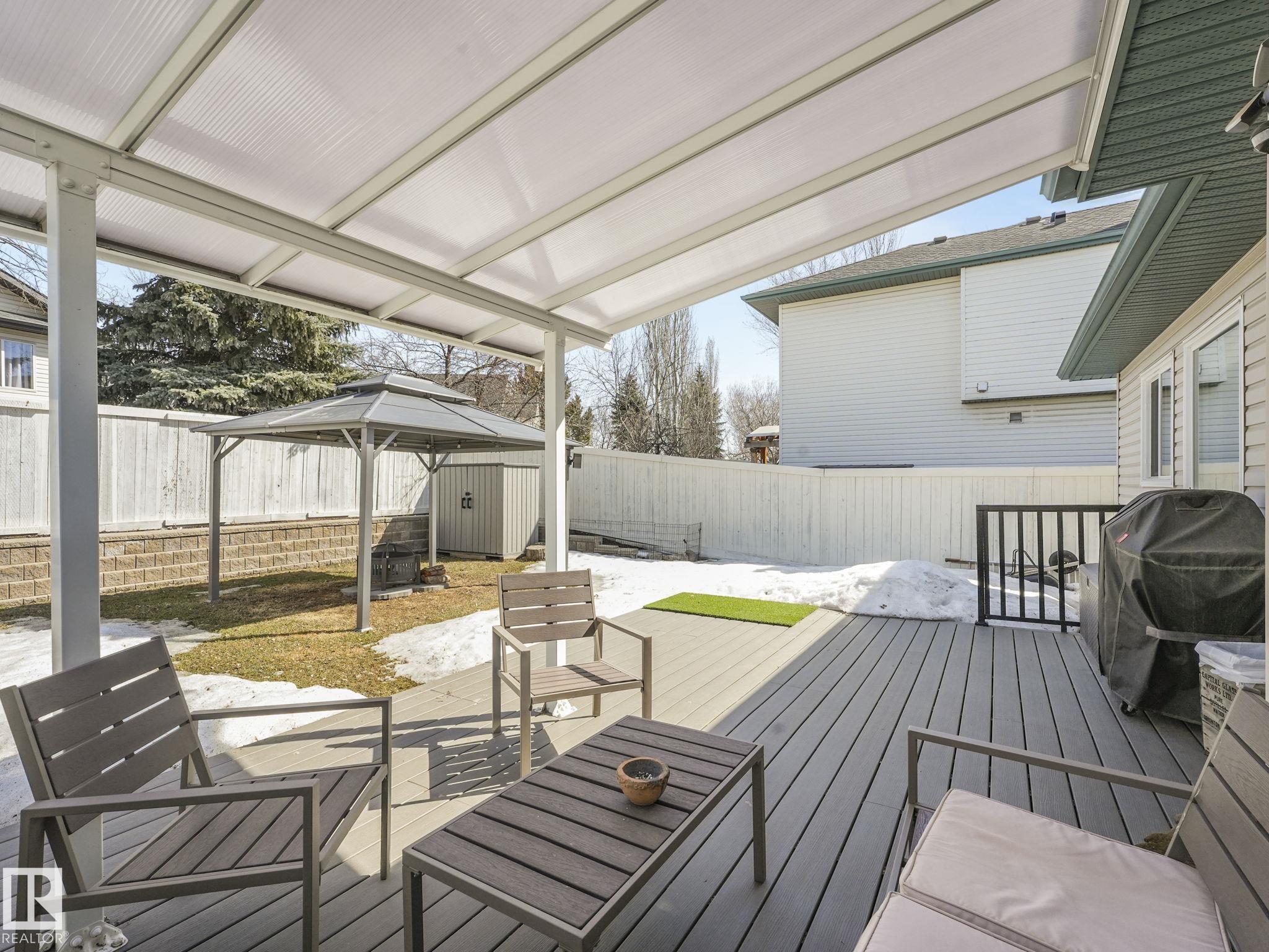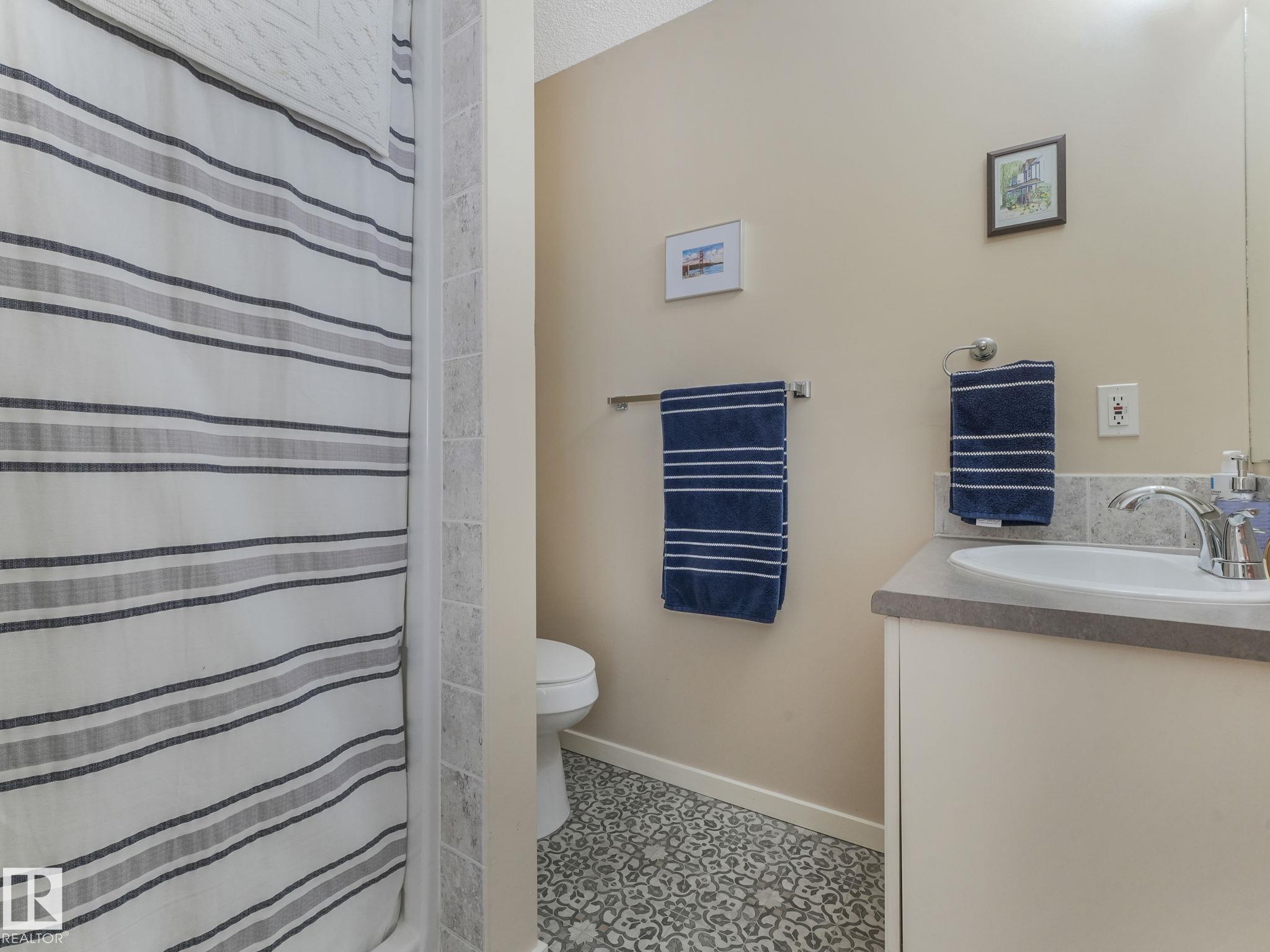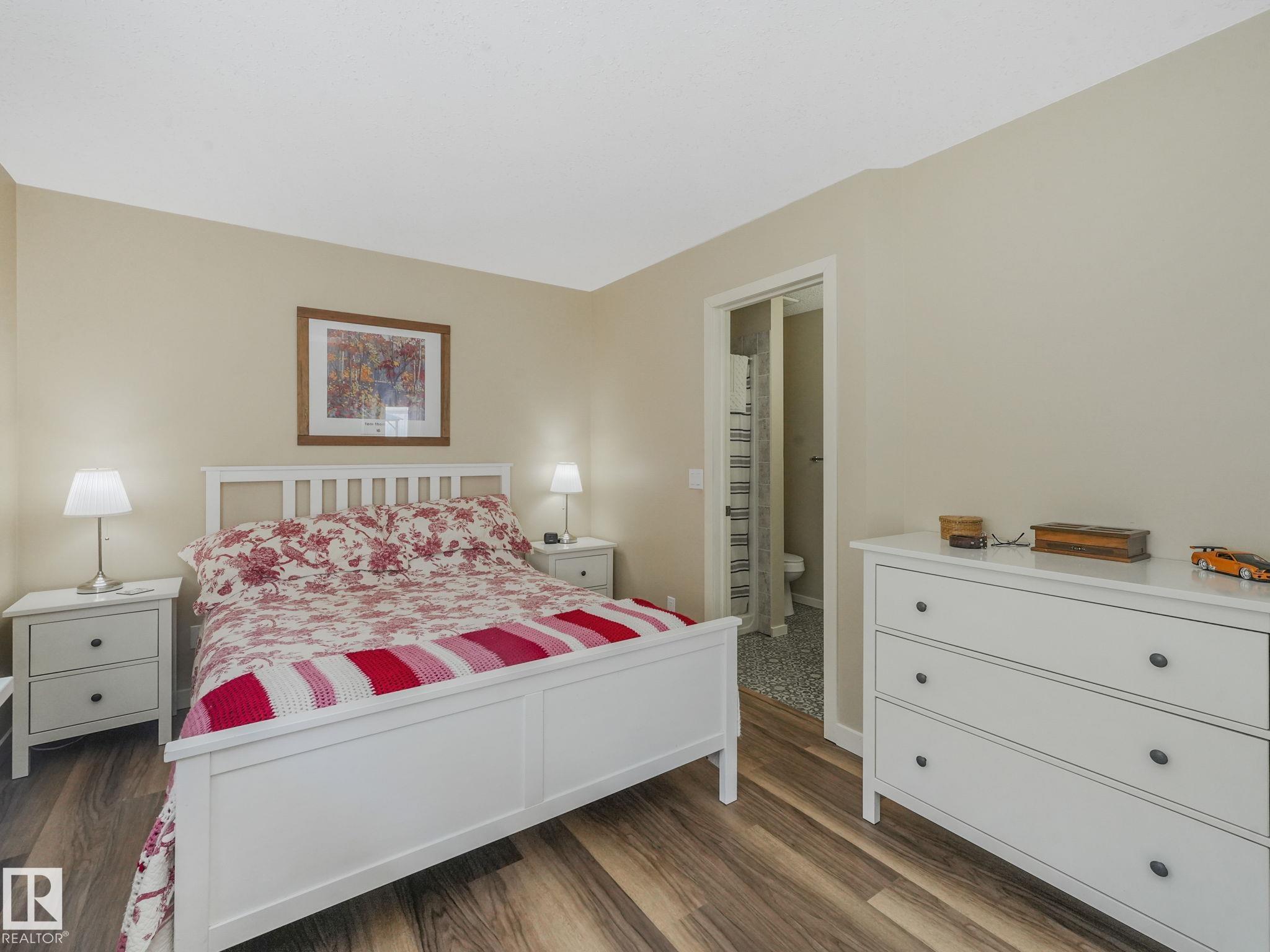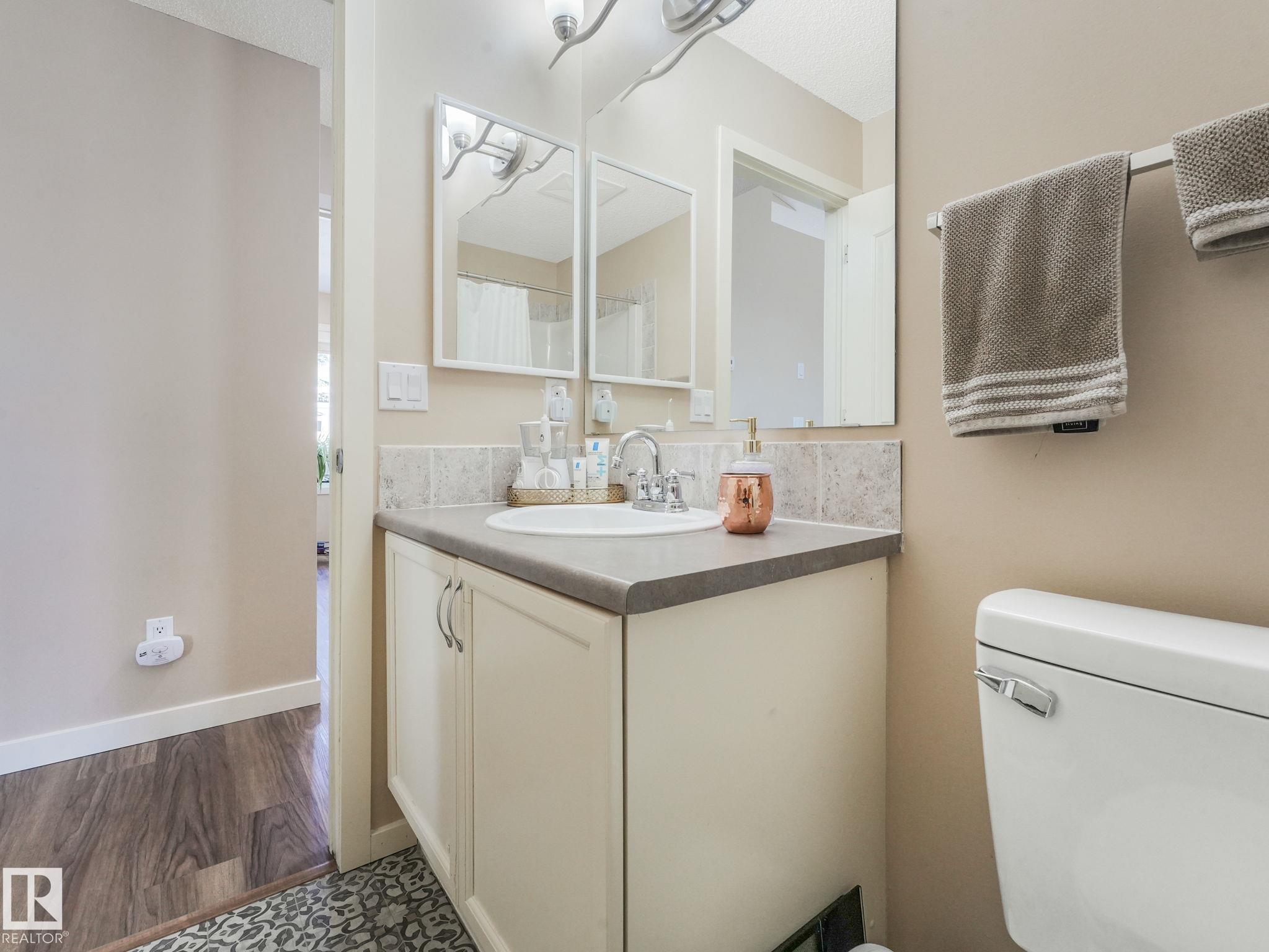 REMODELLED in HERITAGE LAKES. 3 bedrooms total and 3 full baths. This 1068 sq ft bungalow has extensive improvements. This open home has vaulted ceilings accentuated with an open main floor. The kitchen was remodeled(2024) with new soft-close cabinets, island, countertops, and stainless steel appliances. New doors and triple pane windows with custom window coverings throughout with SunStop on west facing windows(2024), floorcoverings(2023 up, 2025 down), painted(2023), baseboards(2025), new insulated overhead garage door(2025), all light fixtures(2023), central air conditioning(2023), backyard retaining wall brickwork(2023). Primary bedroom has a walkin closet and 3 -pc ensuite. Maintenace free deck and enclosed fenced yard for kids and pets. Furnace last serviced Feb 2026. Close to schools, parks, playground. Easy access to Edmonton via 170St, Ray Gibbon Dr, and Anthony Henday.