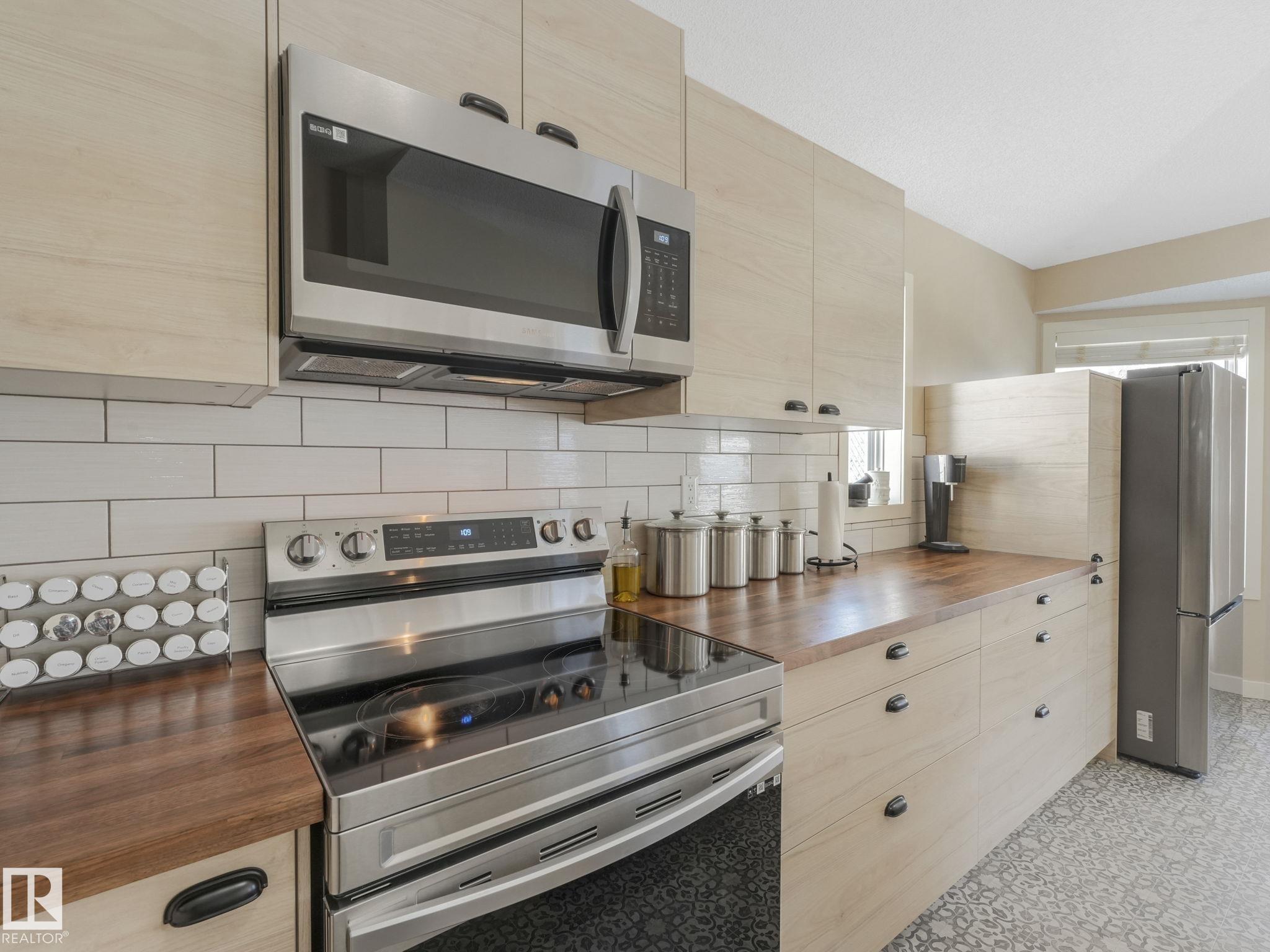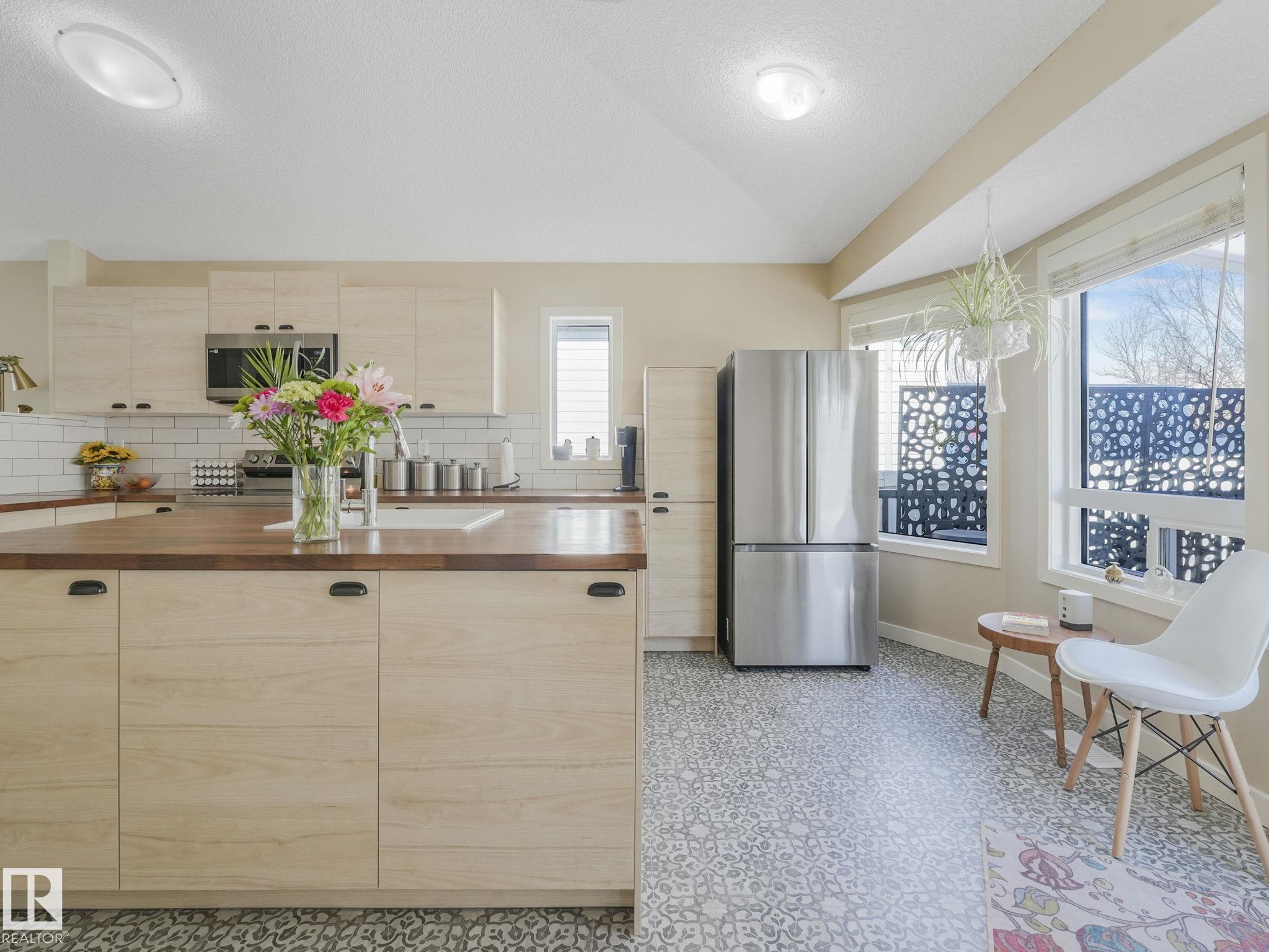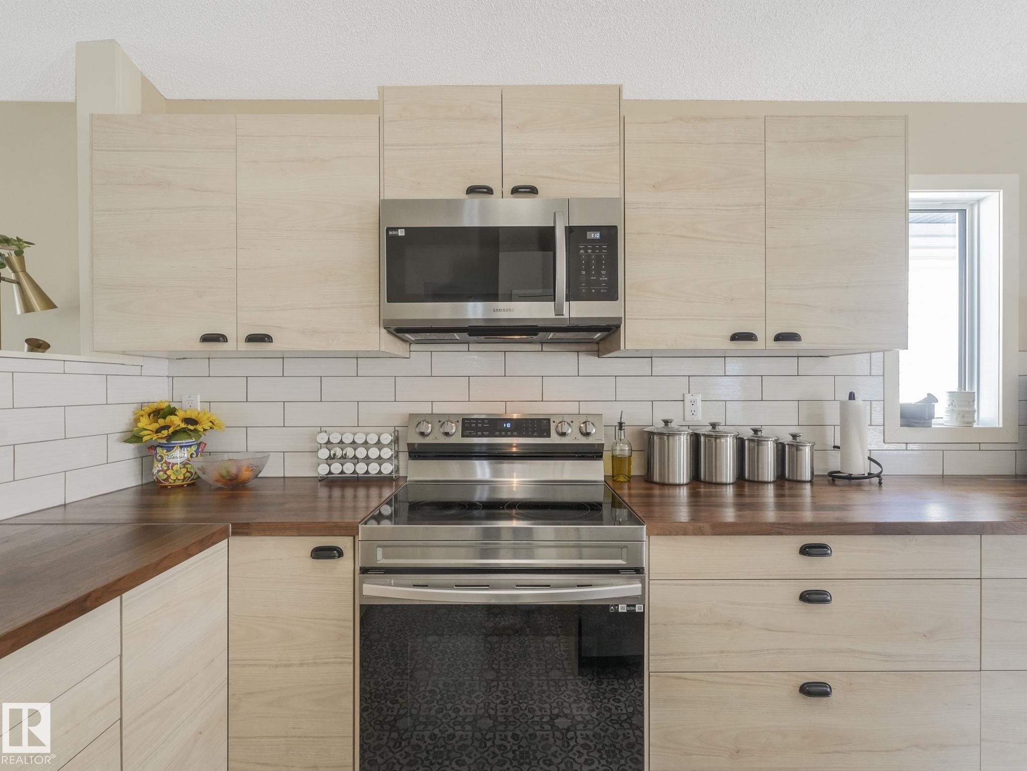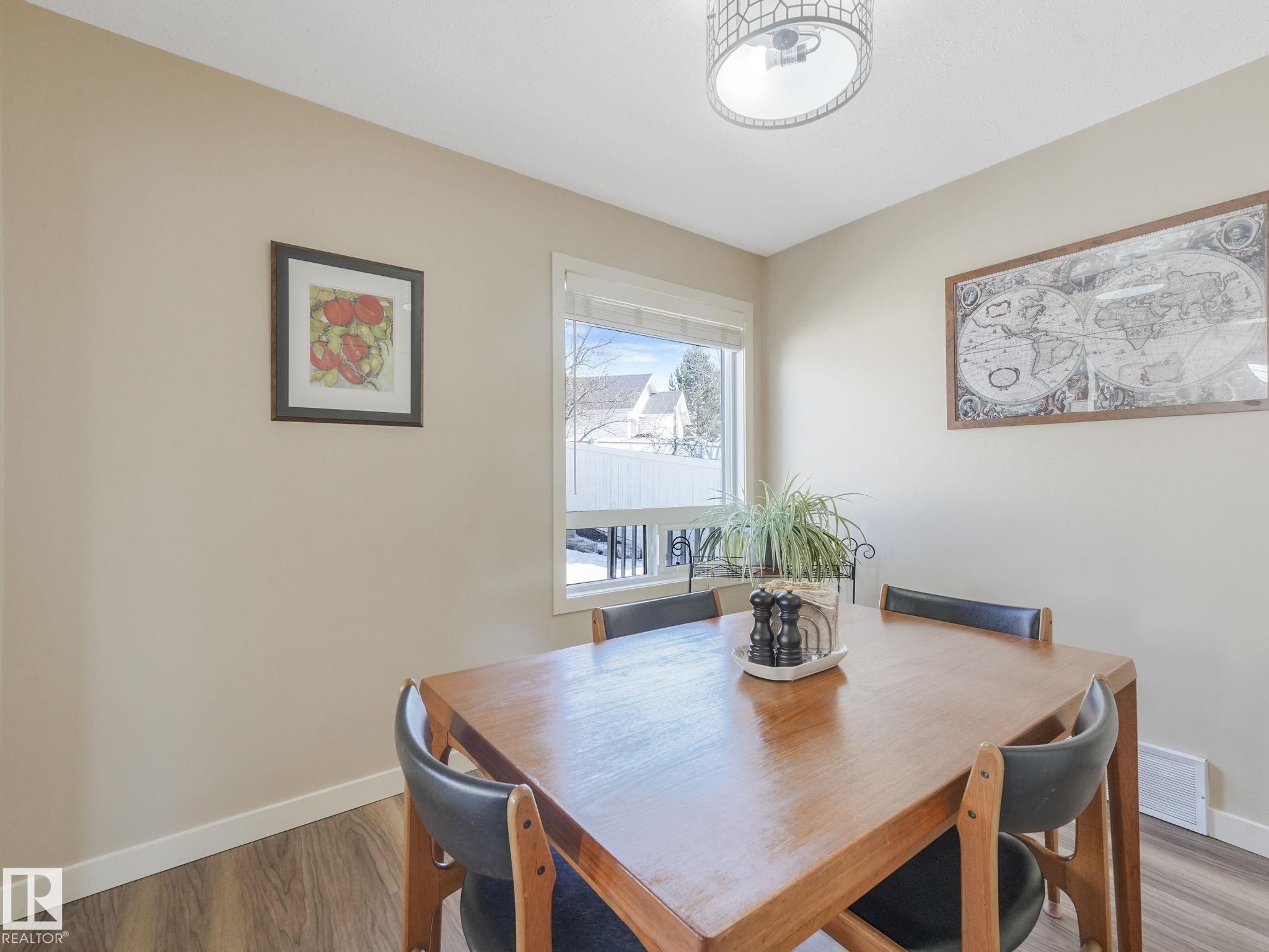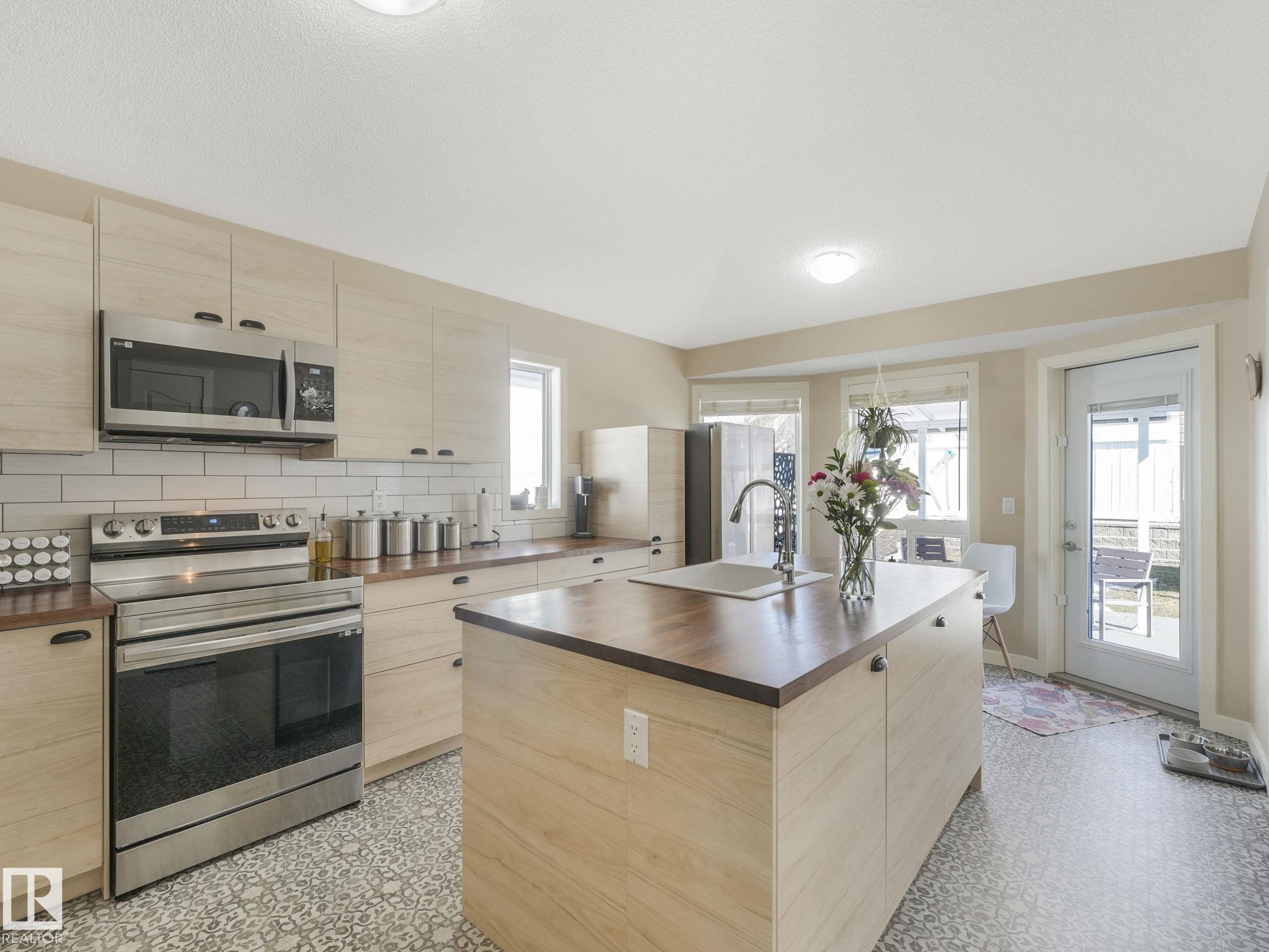REMODELLED in HERITAGE LAKES. 3 bedrooms total and 3 full baths. This 1068 sq ft bungalow has extensive improvements. This open home has vaulted ceilings accentuated with an open main floor. The kitchen was remodeled(2024) with new soft-close cabinets, island, countertops, and stainless steel appliances. New doors and triple pane windows with custom window coverings throughout with SunStop on west facing windows(2024), floorcoverings(2023 up, 2025 down), painted(2023), baseboards(2025), new insulated overhead garage door(2025), all light fixtures(2023), central air conditioning(2023), backyard retaining wall brickwork(2023). Primary bedroom has a walkin closet and 3 -pc ensuite. Maintenace free deck and enclosed fenced yard for kids and pets. Furnace last serviced Feb 2026. Close to schools, parks, playground. Easy access to Edmonton via 170St, Ray Gibbon Dr, and Anthony Henday.