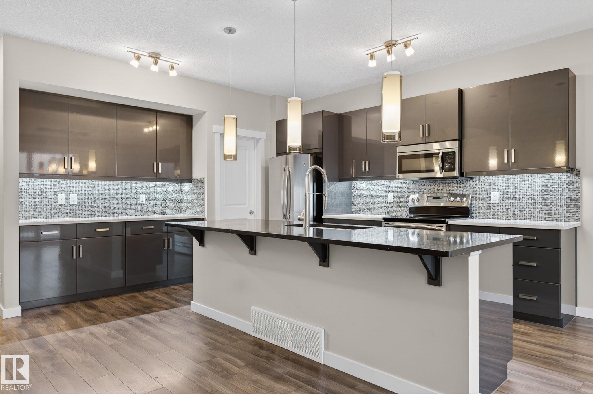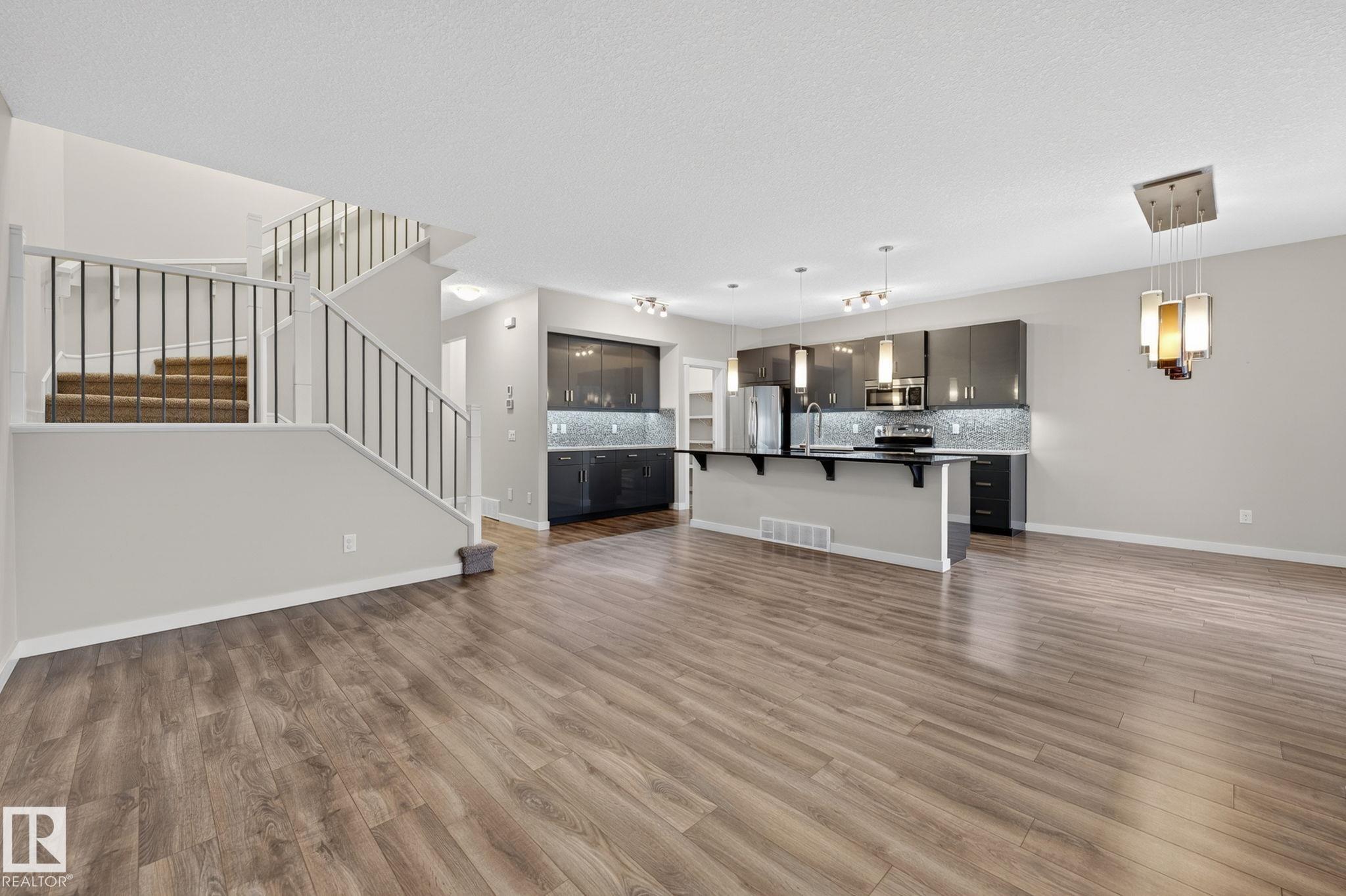 Welcome to nature inspired living. This beautiful walkout home in Trumpeter offers breathtaking pond views and a thoughtfully designed layout tailored for your family. The airy, open-concept main floor is flooded with natural light. The spacious living and dining areas feature large windows that frame your private, picturesque view of the water. The kitchen is an entertainer's dream, offering ample prep space, a generous island, and a seamless flow out to the upper deck. A walkthrough pantry, roomy mudroom and a main floor den complete the main level. Head upstairs to discover a versatile, sunlit bonus room that is perfect for the kids. The upper level also features a rare and highly desired layout: three bedrooms that each have their own dedicated walk-in closet. The primary bedroom is a true retreat, complete with a beautiful ensuite and peaceful water views to wake up to every morning. The walkout basement has everything you need: oversized custom wet bar, rec space and another bathroom and bedroom.