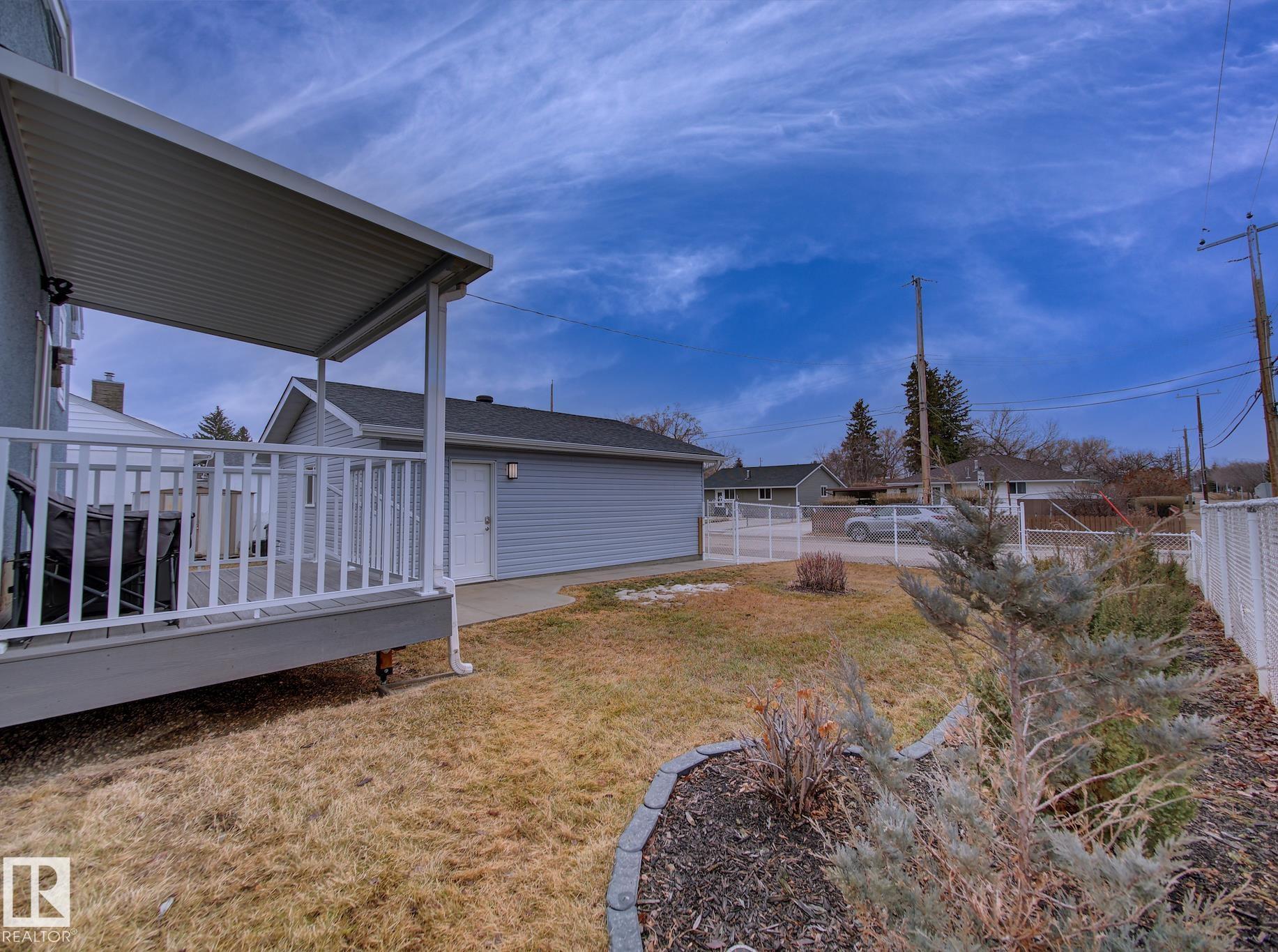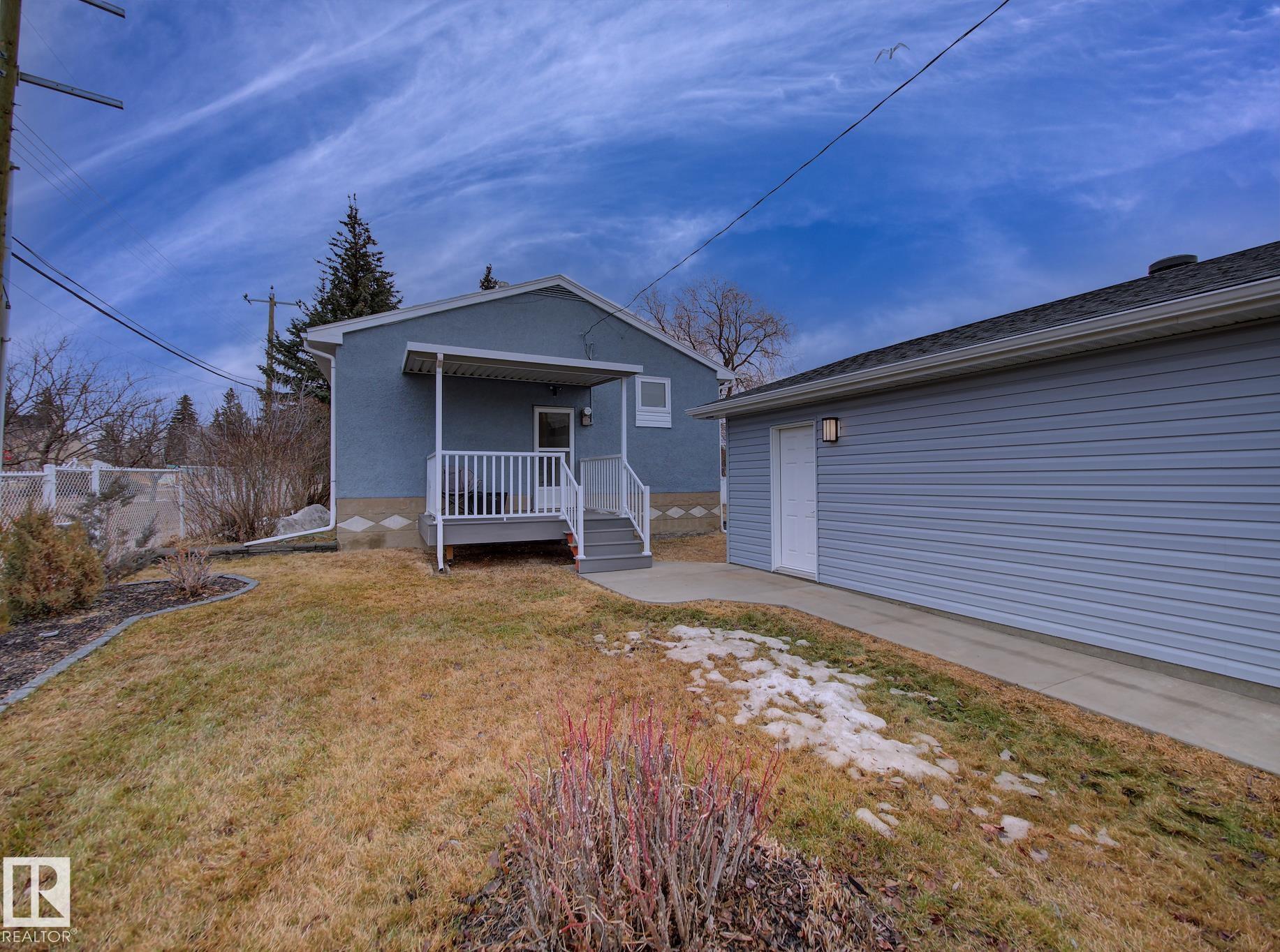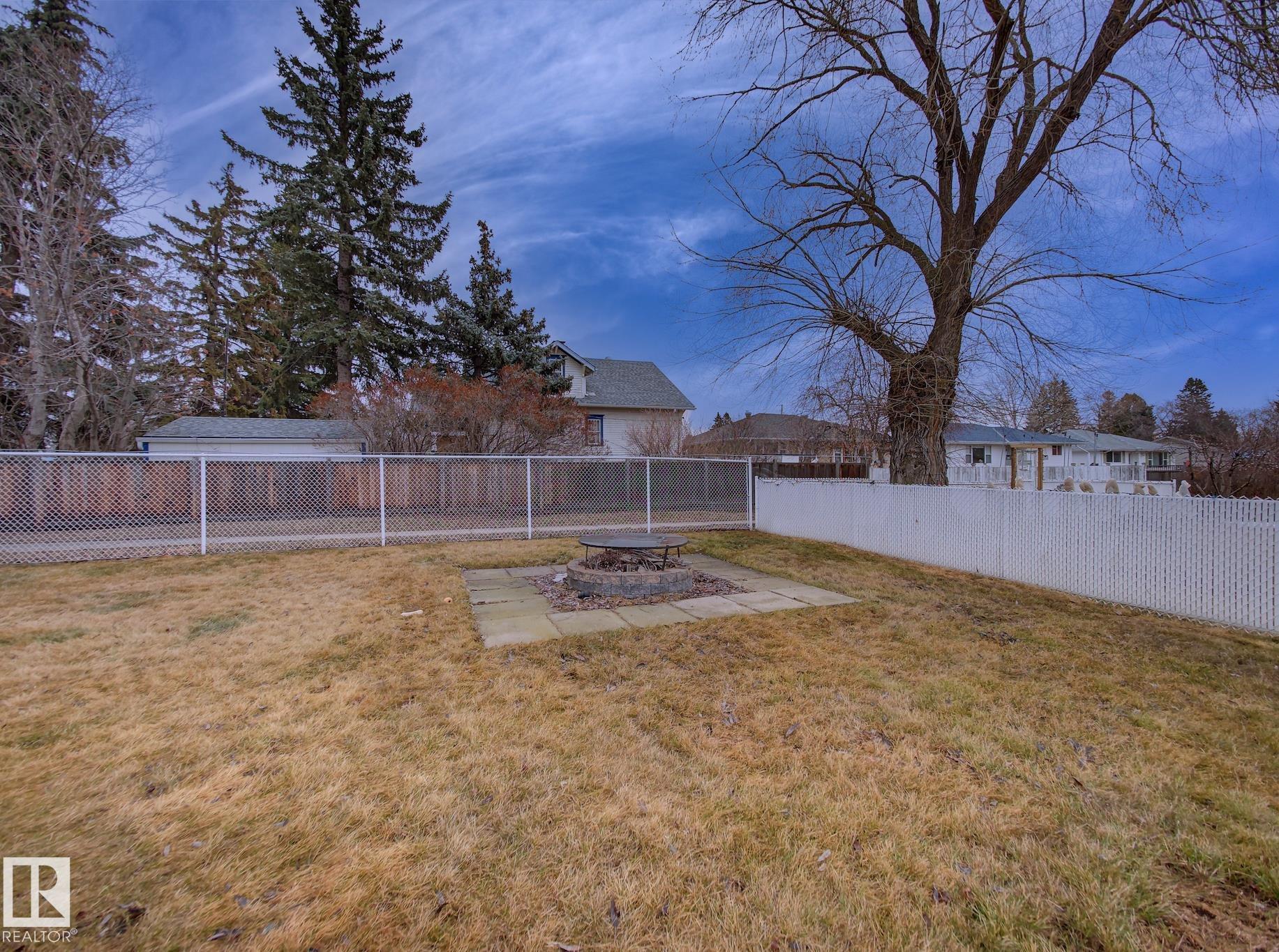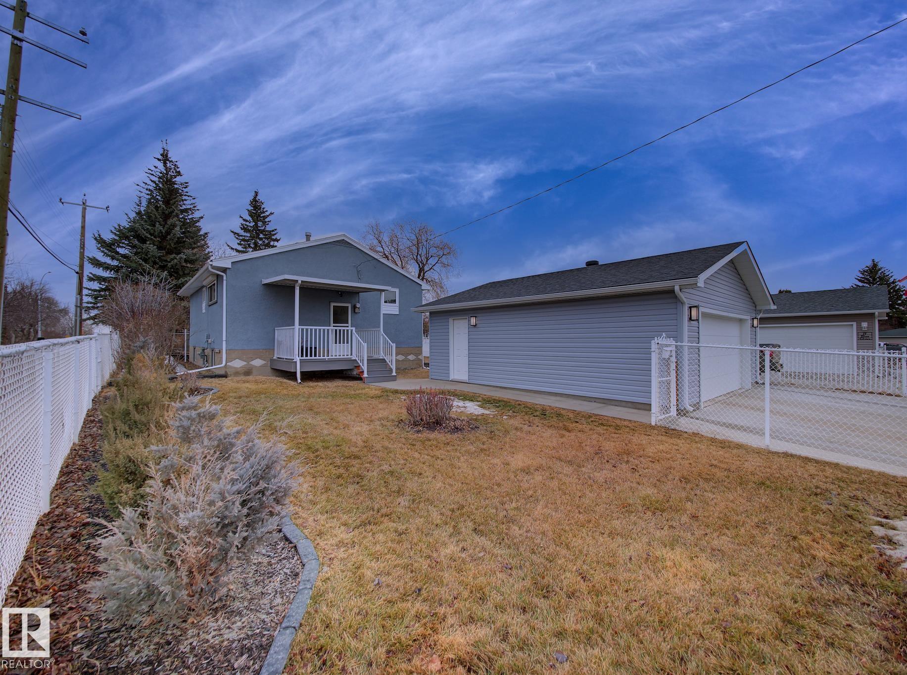 Welcome to Old Fort Saskatchewan! Ideally located within walking distance to schools, shopping, parks, and recreational amenities, this renovated 2+1 bedroom bungalow offers a great blend of comfort and functionality. The main floor features an upgraded kitchen overlooking a bright, spacious living room, creating an inviting space for everyday living and entertaining. Garden door access leads to your deck?perfect for relaxing or enjoying your morning coffee. Two well-sized bedrooms, including the primary, and a 4PC bath complete this level. Large windows fill the home with natural light, while durable ceramic flooring adds style and easy maintenance. The fully developed basement offers a generous recreation room, a large third bedroom with walk-in closet area, a 3PC bathroom, and a convenient laundry space with enclosed furnace and hot water tank. Outside, enjoy a fully fenced yard with mature trees, garden area, RV parking, and a heated 24' x 26' double detached garage. A fantastic opportunity