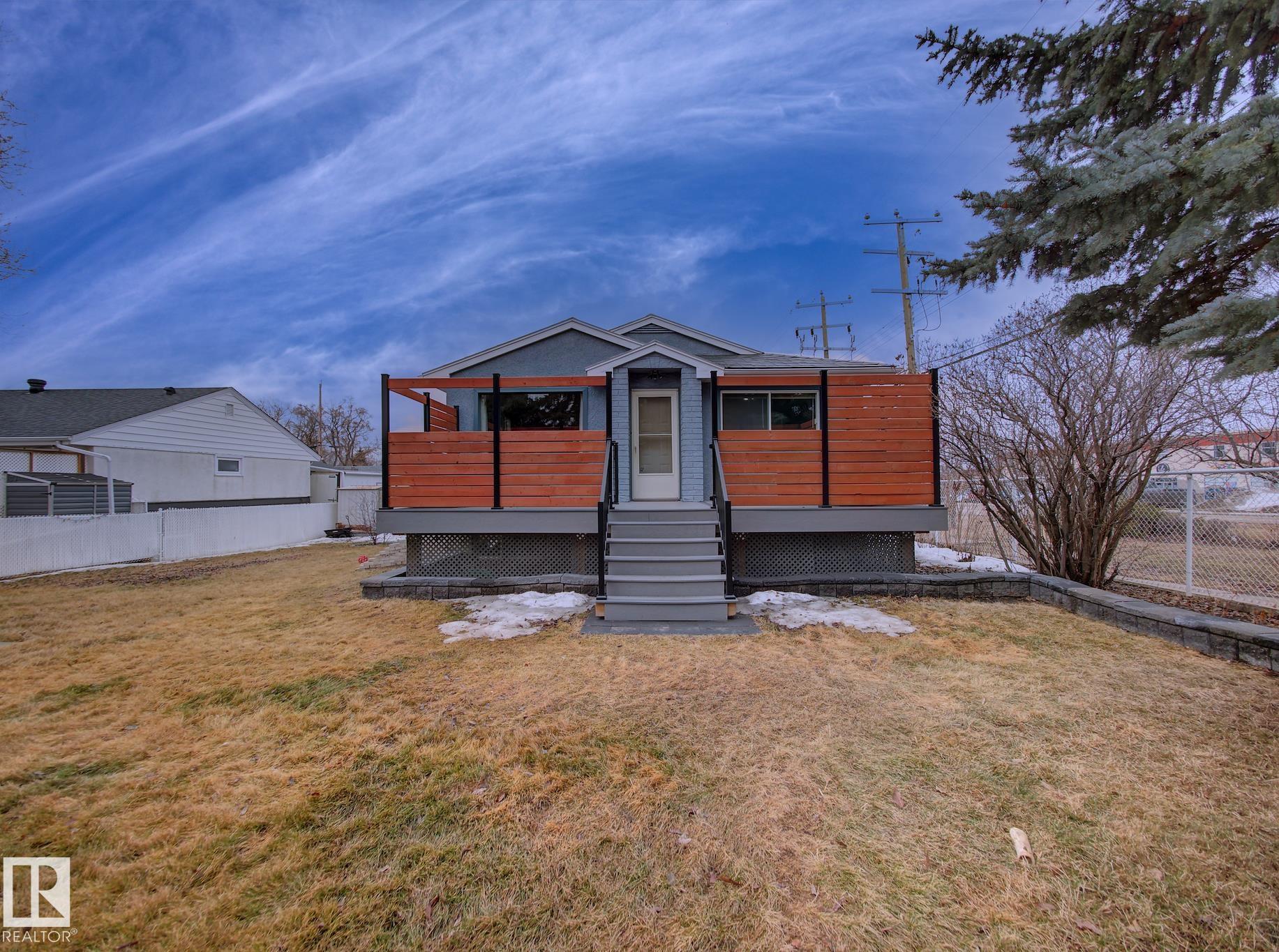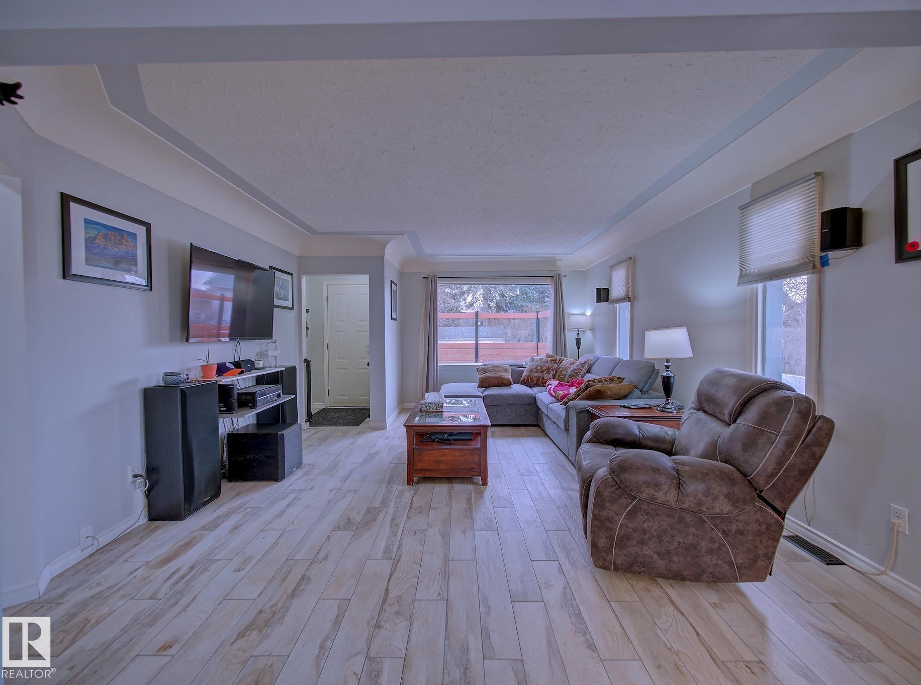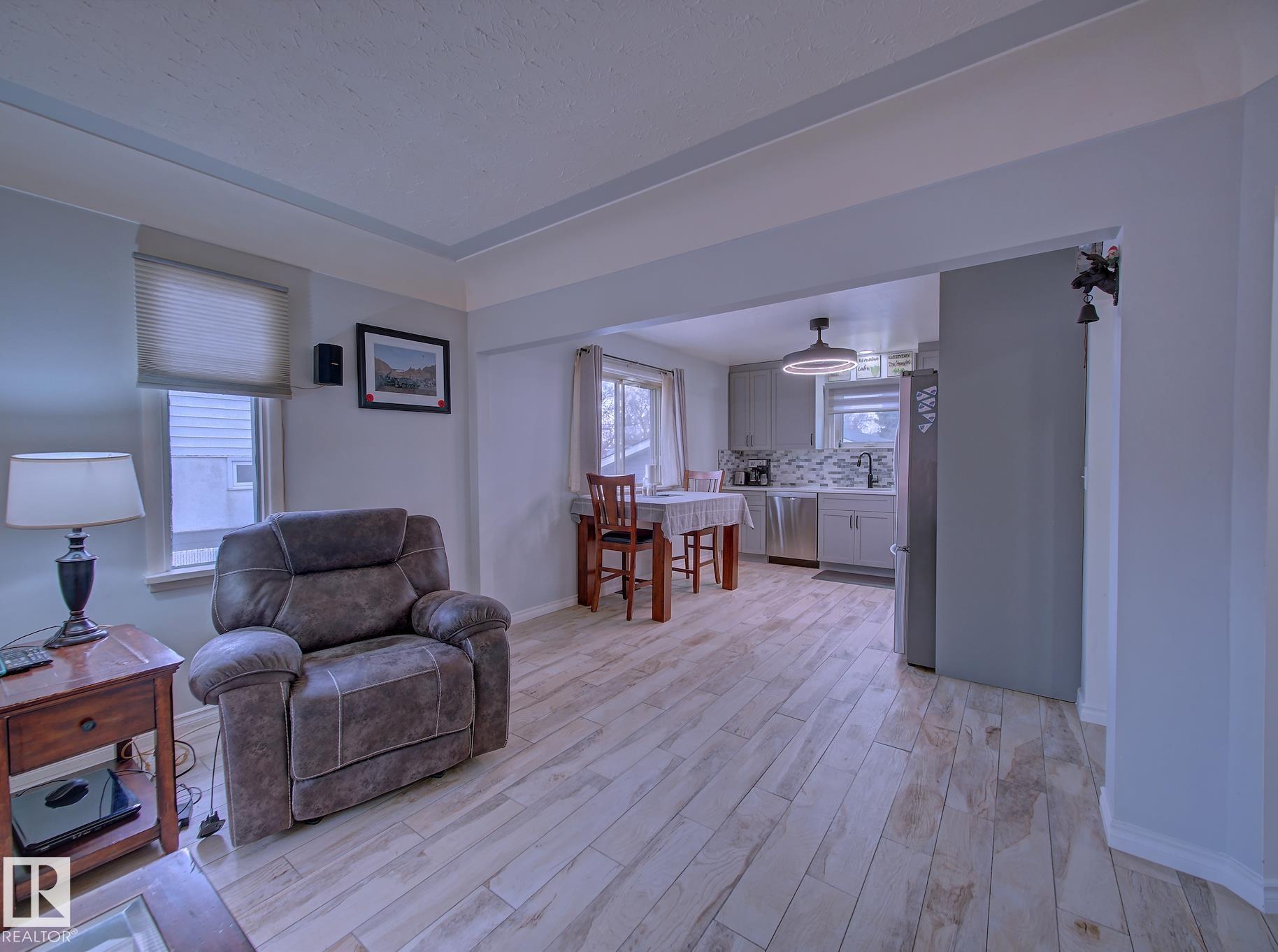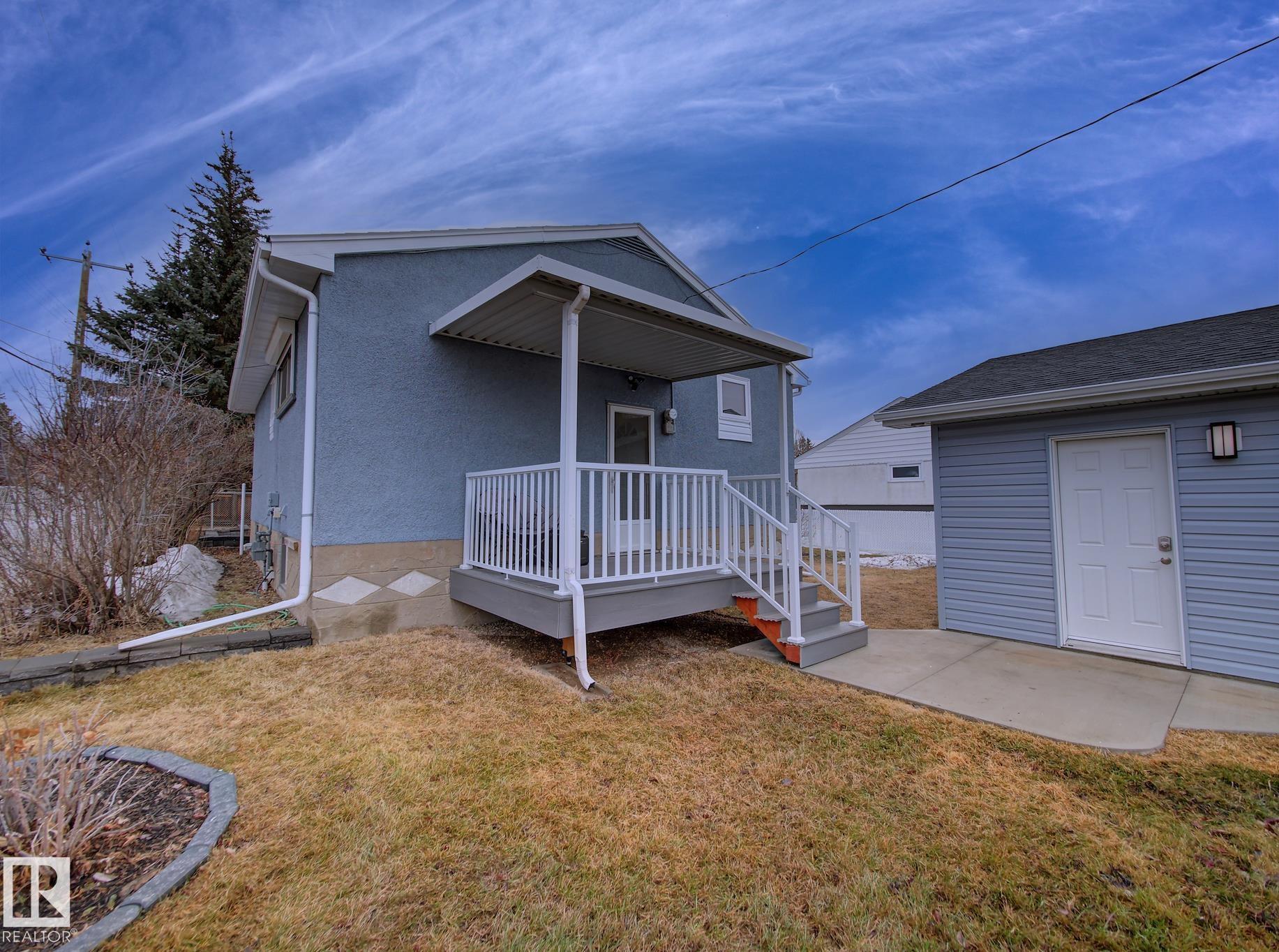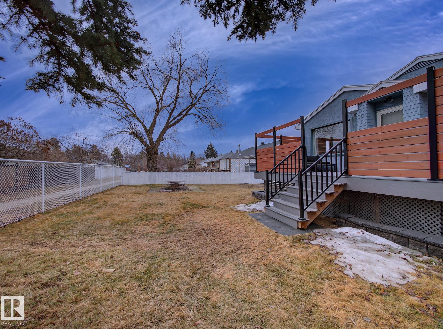 Welcome to Old Fort Saskatchewan! Ideally located within walking distance to schools, shopping, parks, and recreational amenities, this renovated 2+1 bedroom bungalow offers a great blend of comfort and functionality. The main floor features an upgraded kitchen overlooking a bright, spacious living room, creating an inviting space for everyday living and entertaining. Garden door access leads to your deck?perfect for relaxing or enjoying your morning coffee. Two well-sized bedrooms, including the primary, and a 4PC bath complete this level. Large windows fill the home with natural light, while durable ceramic flooring adds style and easy maintenance. The fully developed basement offers a generous recreation room, a large third bedroom with walk-in closet area, a 3PC bathroom, and a convenient laundry space with enclosed furnace and hot water tank. Outside, enjoy a fully fenced yard with mature trees, garden area, RV parking, and a heated 24' x 26' double detached garage. A fantastic opportunity