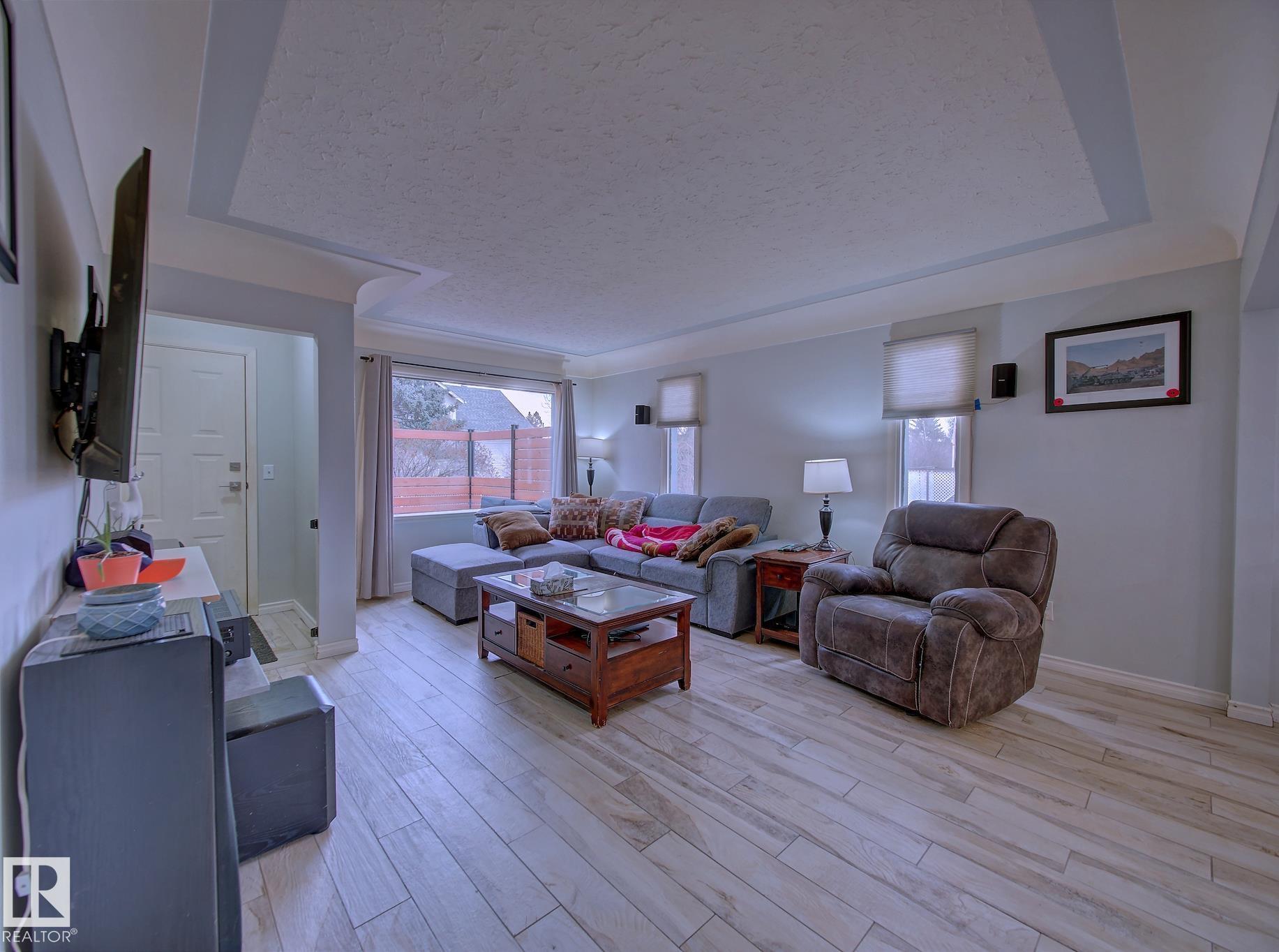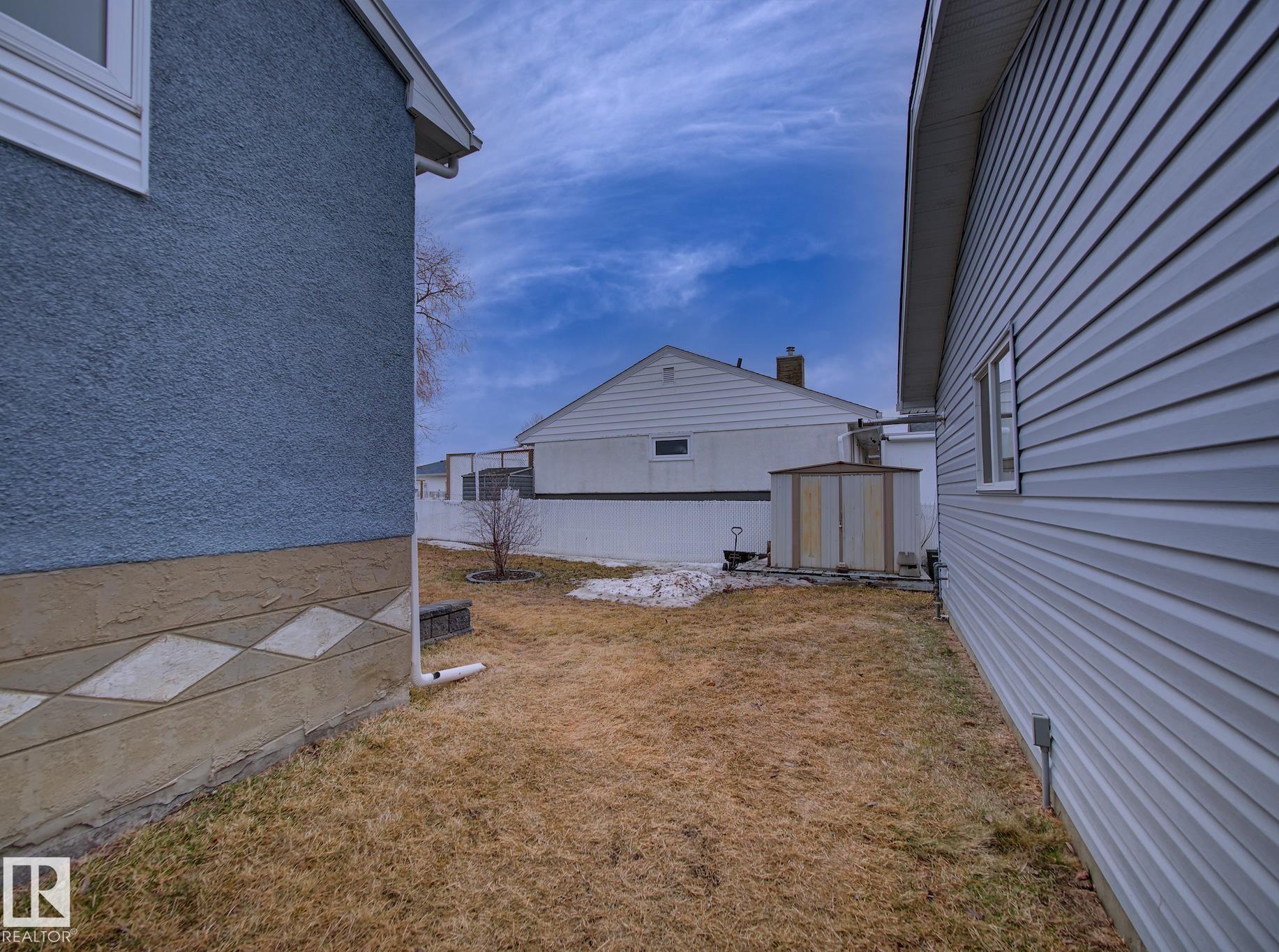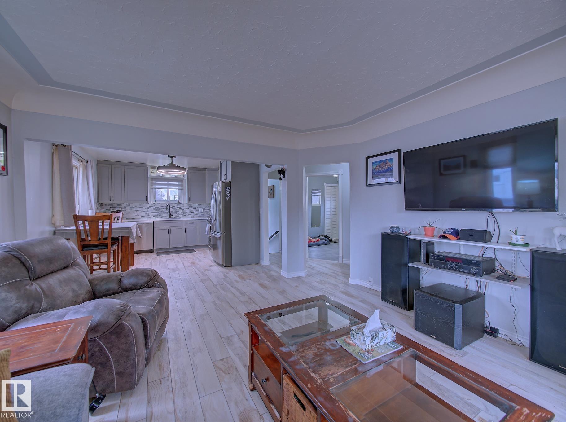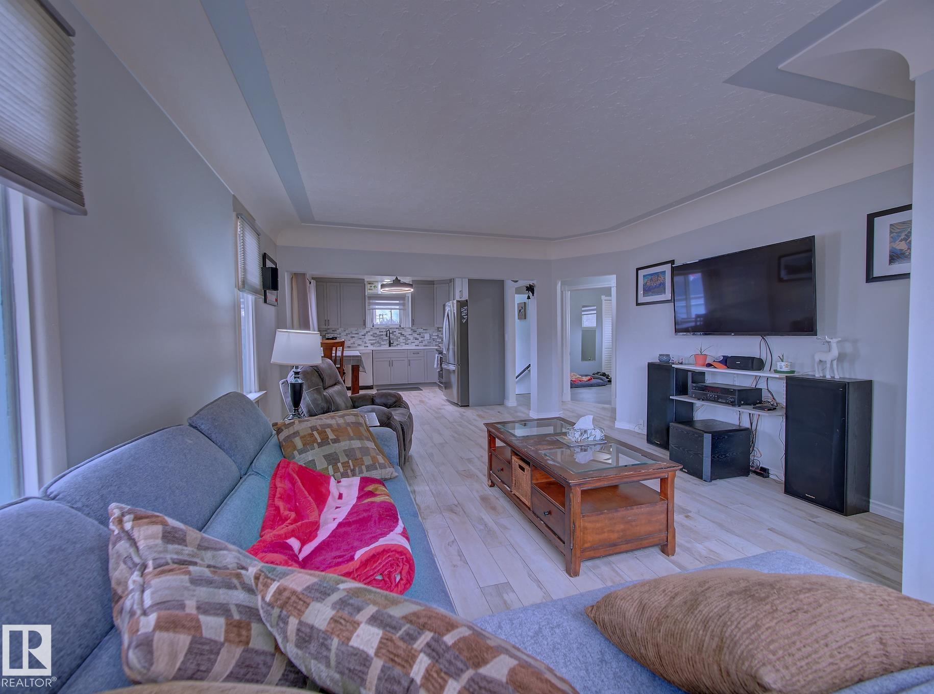 Welcome to Old Fort Saskatchewan! Ideally located within walking distance to schools, shopping, parks, and recreational amenities, this renovated 2+1 bedroom bungalow offers a great blend of comfort and functionality. The main floor features an upgraded kitchen overlooking a bright, spacious living room, creating an inviting space for everyday living and entertaining. Garden door access leads to your deck?perfect for relaxing or enjoying your morning coffee. Two well-sized bedrooms, including the primary, and a 4PC bath complete this level. Large windows fill the home with natural light, while durable ceramic flooring adds style and easy maintenance. The fully developed basement offers a generous recreation room, a large third bedroom with walk-in closet area, a 3PC bathroom, and a convenient laundry space with enclosed furnace and hot water tank. Outside, enjoy a fully fenced yard with mature trees, garden area, RV parking, and a heated 24' x 26' double detached garage. A fantastic opportunity