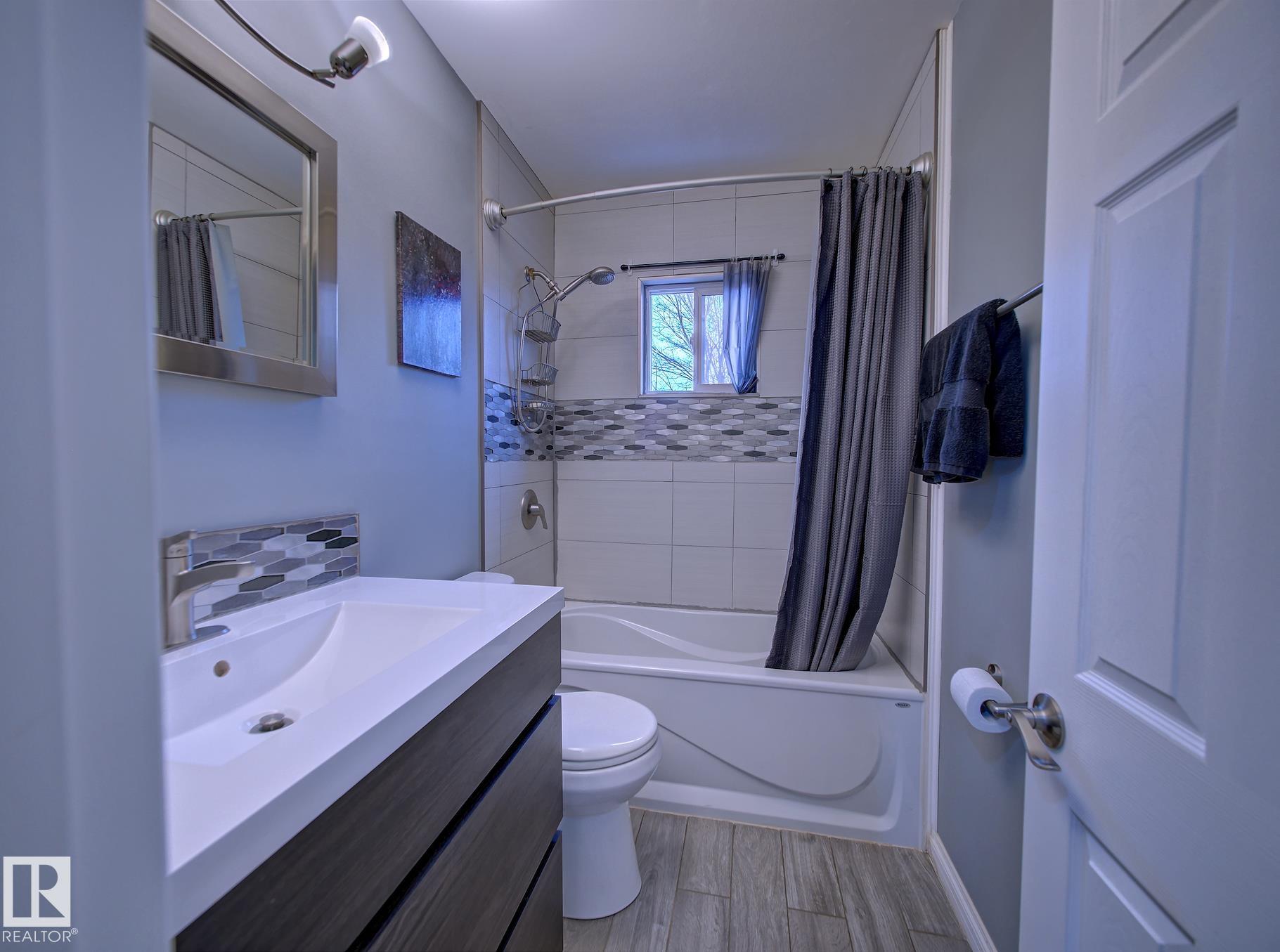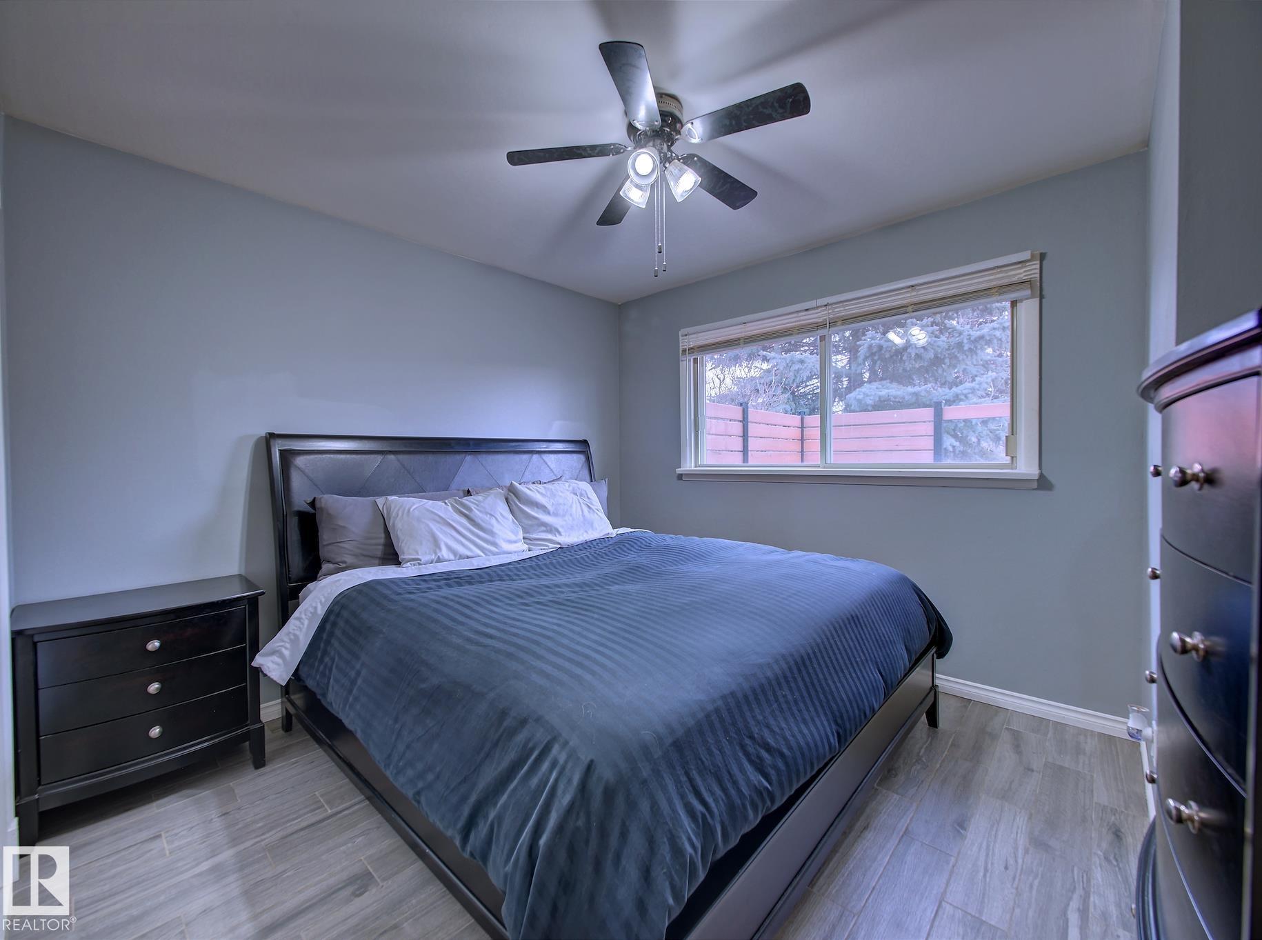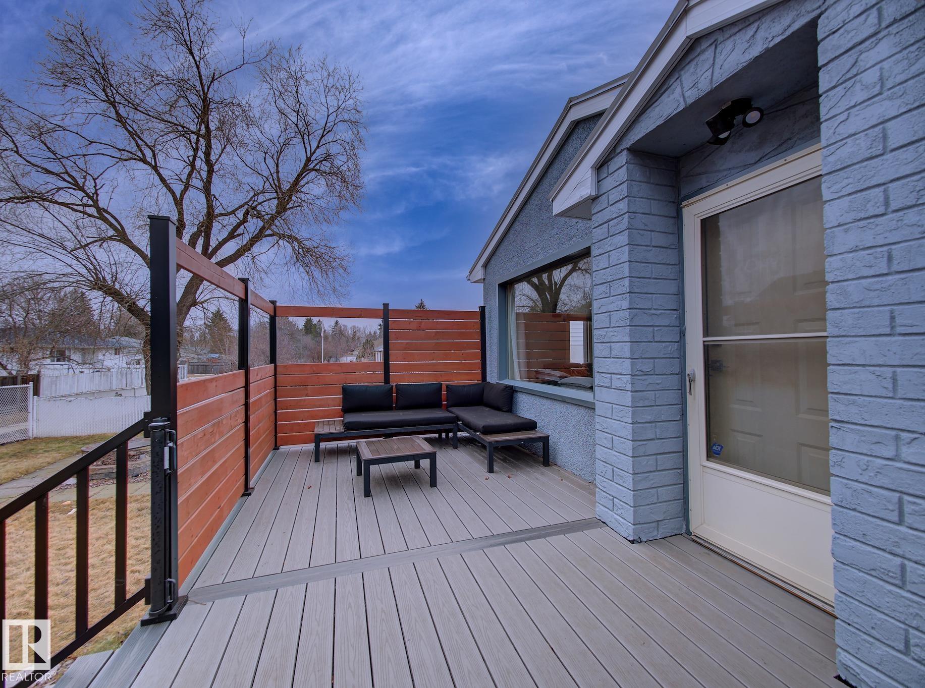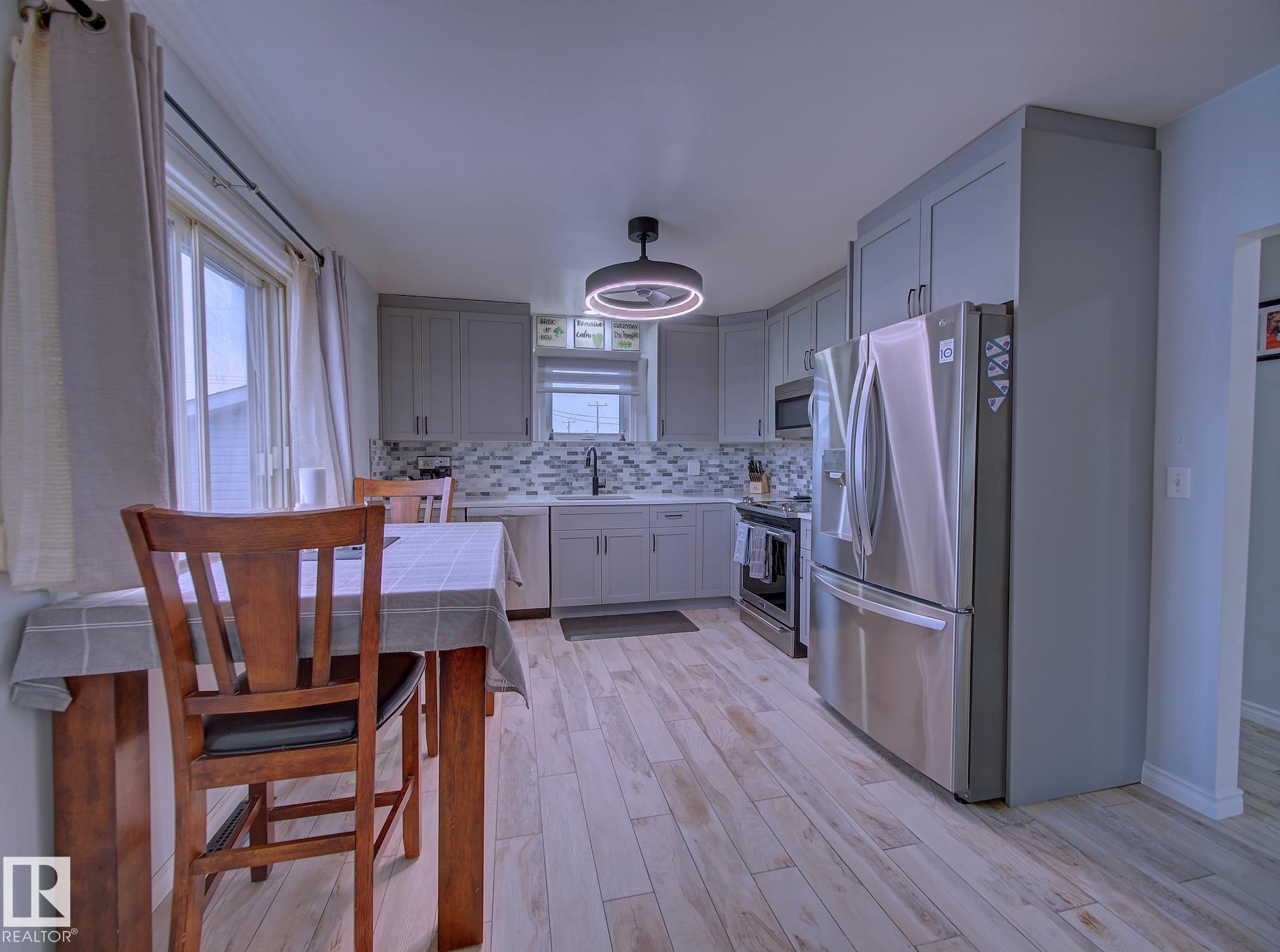 Welcome to Old Fort Saskatchewan! Ideally located within walking distance to schools, shopping, parks, and recreational amenities, this renovated 2+1 bedroom bungalow offers a great blend of comfort and functionality. The main floor features an upgraded kitchen overlooking a bright, spacious living room, creating an inviting space for everyday living and entertaining. Garden door access leads to your deck?perfect for relaxing or enjoying your morning coffee. Two well-sized bedrooms, including the primary, and a 4PC bath complete this level. Large windows fill the home with natural light, while durable ceramic flooring adds style and easy maintenance. The fully developed basement offers a generous recreation room, a large third bedroom with walk-in closet area, a 3PC bathroom, and a convenient laundry space with enclosed furnace and hot water tank. Outside, enjoy a fully fenced yard with mature trees, garden area, RV parking, and a heated 24' x 26' double detached garage. A fantastic opportunity