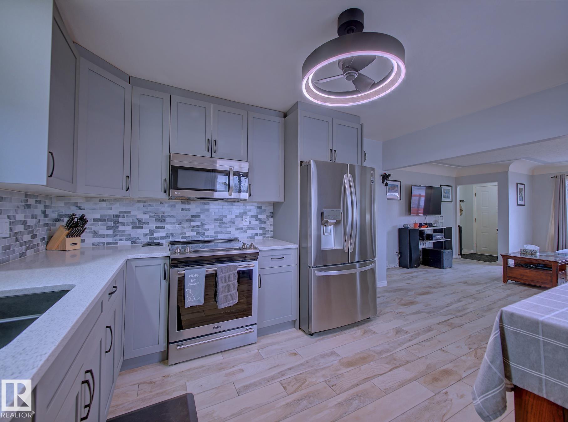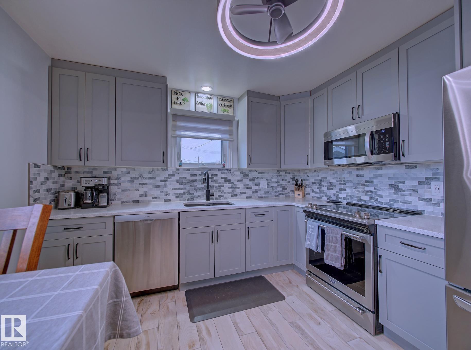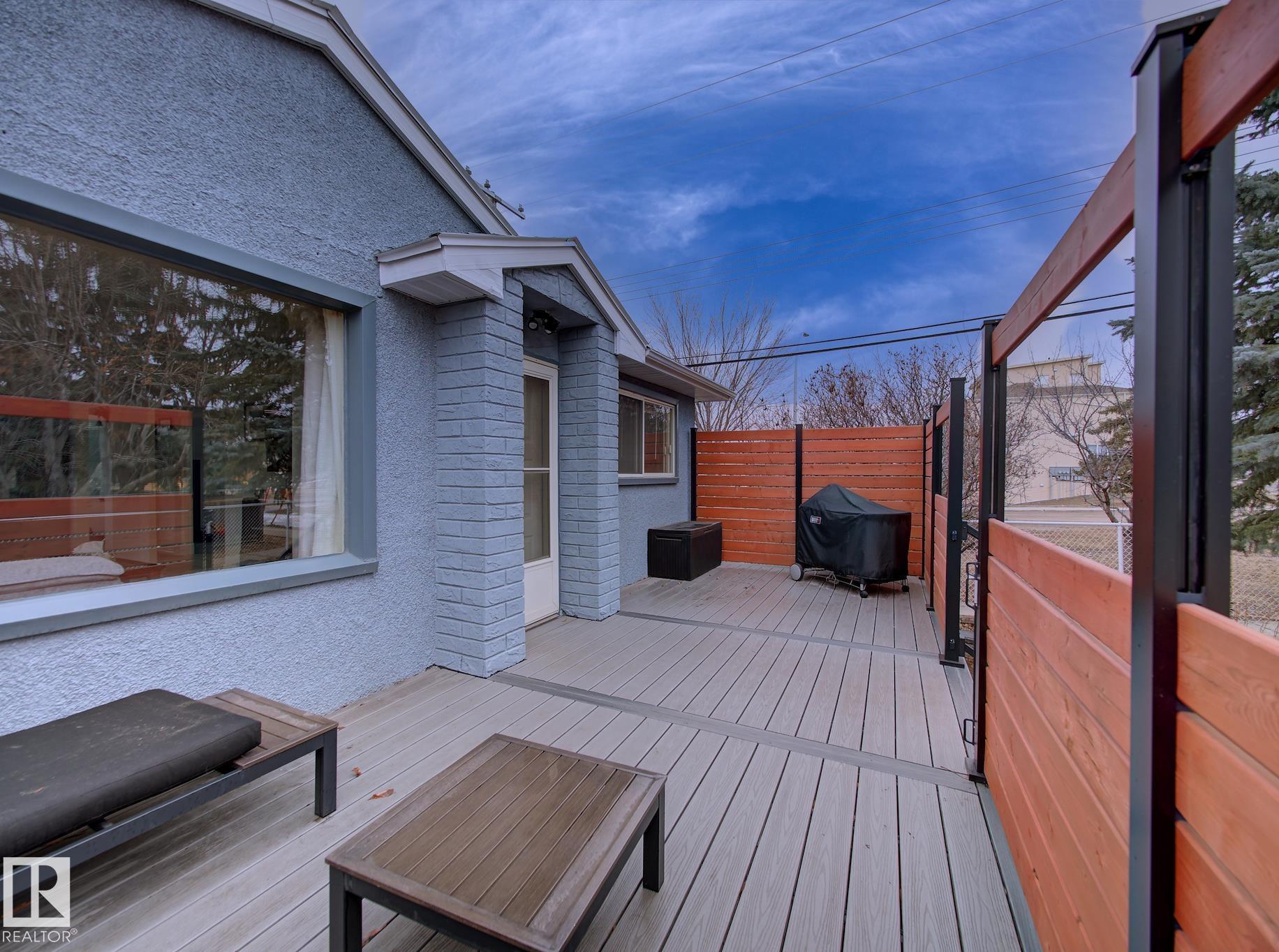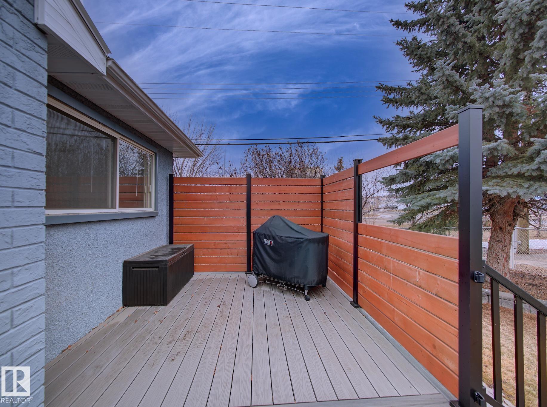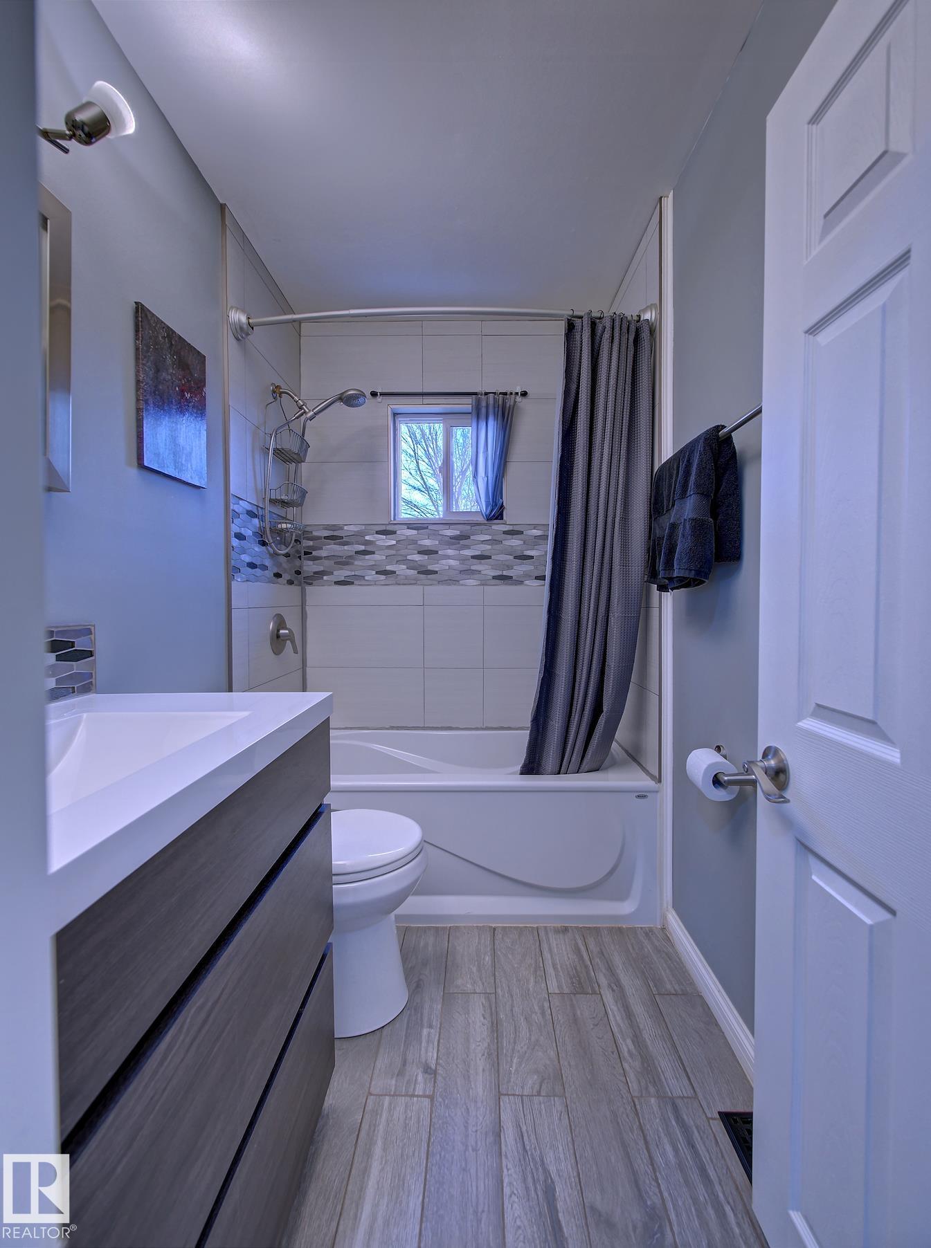 Welcome to Old Fort Saskatchewan! Ideally located within walking distance to schools, shopping, parks, and recreational amenities, this renovated 2+1 bedroom bungalow offers a great blend of comfort and functionality. The main floor features an upgraded kitchen overlooking a bright, spacious living room, creating an inviting space for everyday living and entertaining. Garden door access leads to your deck?perfect for relaxing or enjoying your morning coffee. Two well-sized bedrooms, including the primary, and a 4PC bath complete this level. Large windows fill the home with natural light, while durable ceramic flooring adds style and easy maintenance. The fully developed basement offers a generous recreation room, a large third bedroom with walk-in closet area, a 3PC bathroom, and a convenient laundry space with enclosed furnace and hot water tank. Outside, enjoy a fully fenced yard with mature trees, garden area, RV parking, and a heated 24' x 26' double detached garage. A fantastic opportunity