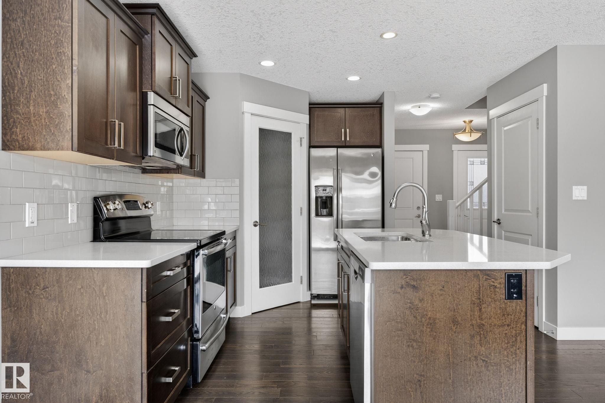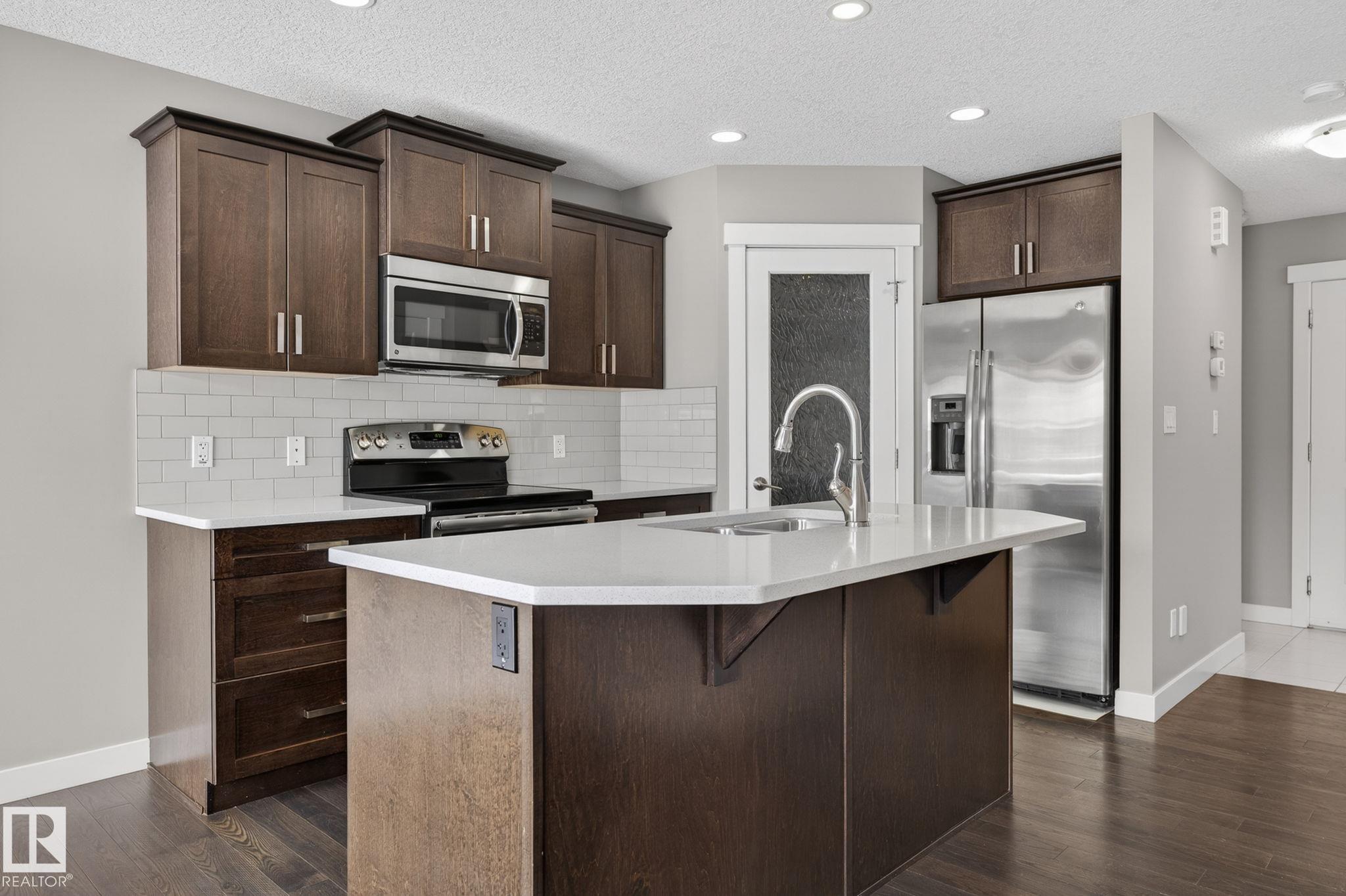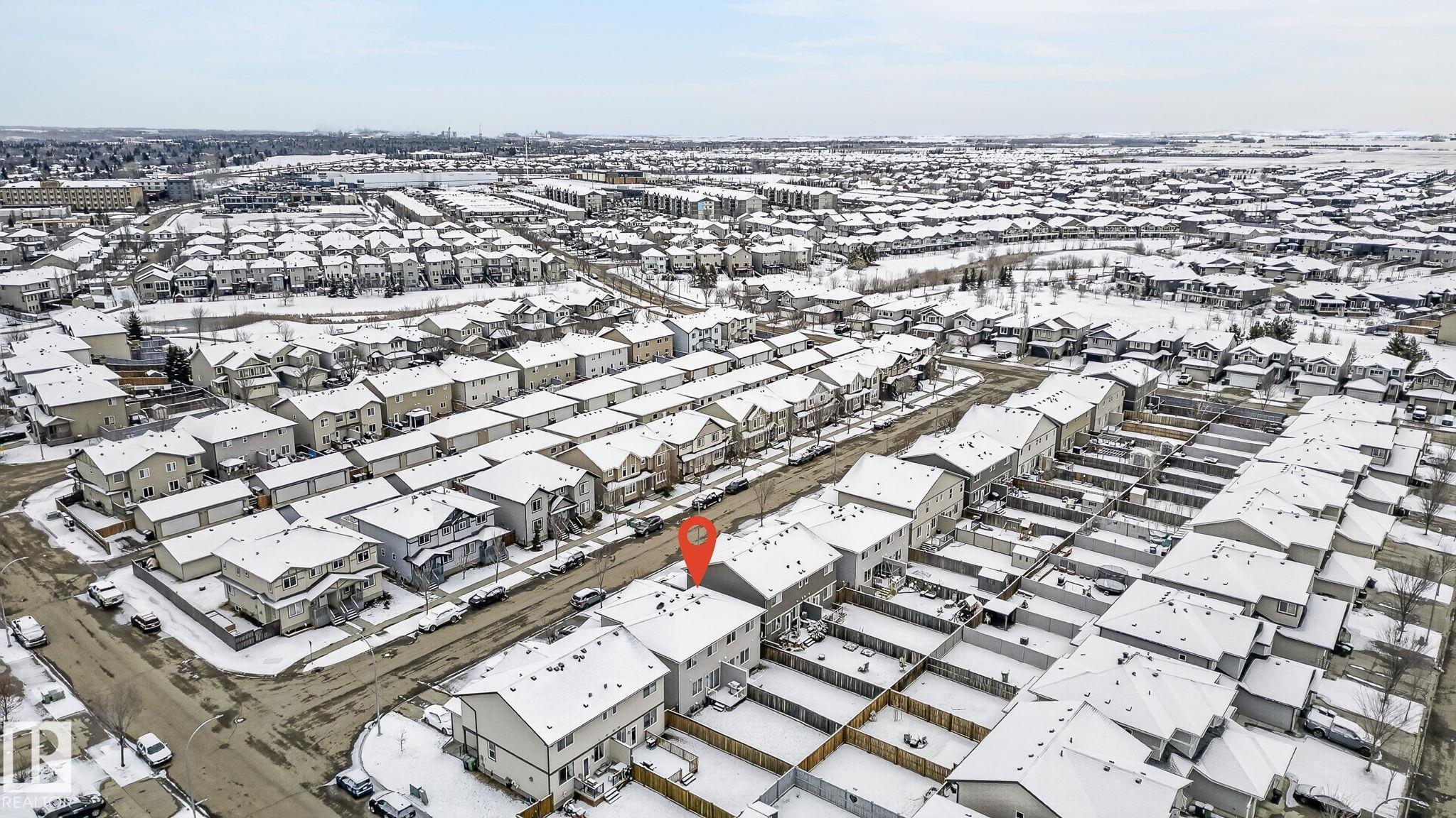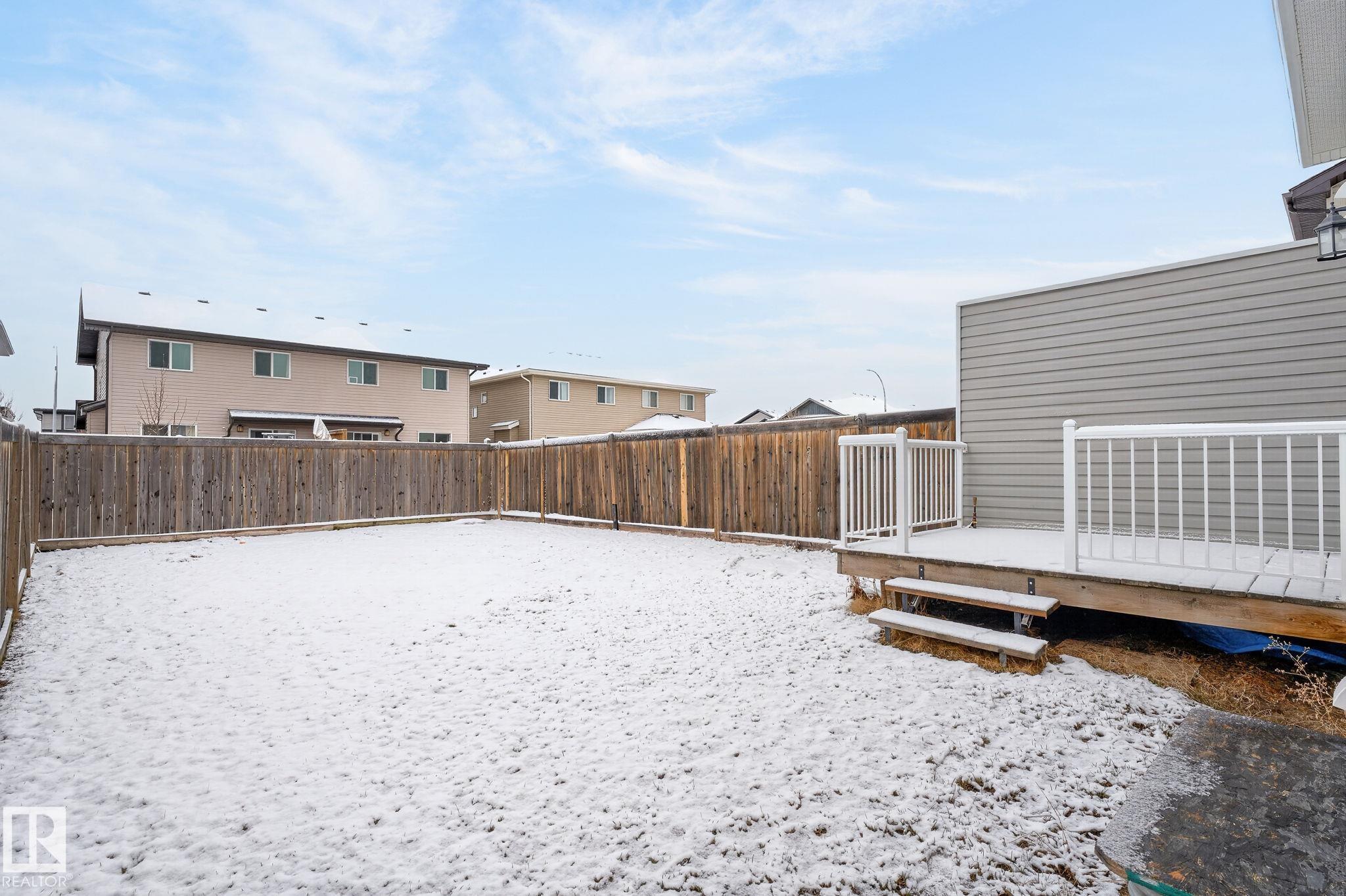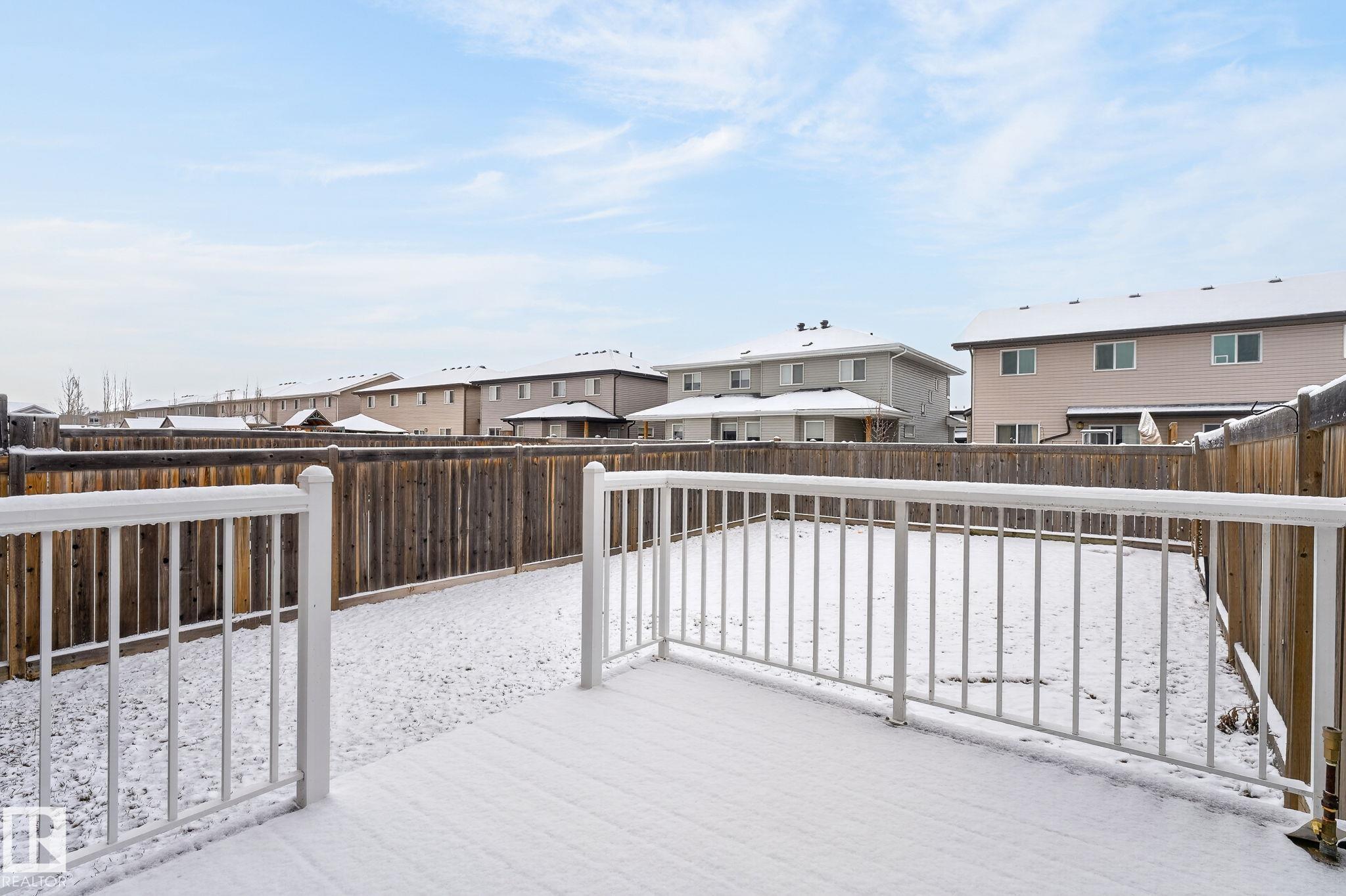 Discover the amazing value in this affordable, quality-built half duplex in Fort Saskatchewan! Freshly painted, this home features 3 bedrooms and 2.5 baths, highlighted by a huge primary suite with a walk-in closet and a 4-piece ensuite. The upper level also includes two additional bedrooms, a spacious full bathroom, and convenient laundry facilities. The main floor boasts an open-concept design with upgraded hardwood and ceramic floors, a cozy corner gas fireplace, and a stylish kitchen equipped with quartz countertops, a working island, and stainless steel appliances. Step out through patio doors to enjoy the great-sized, landscaped, and fenced yard. Additional features include an oversized single garage and a basement ready for future development. Perfect for families or investors, this home is walking distance to Tim Hortons, Southfort Ridge Playground and the Fort's renowned walking trails, and with easy access to HWY 21, any commute will be nearly seamless! Some photos virtually staged.
