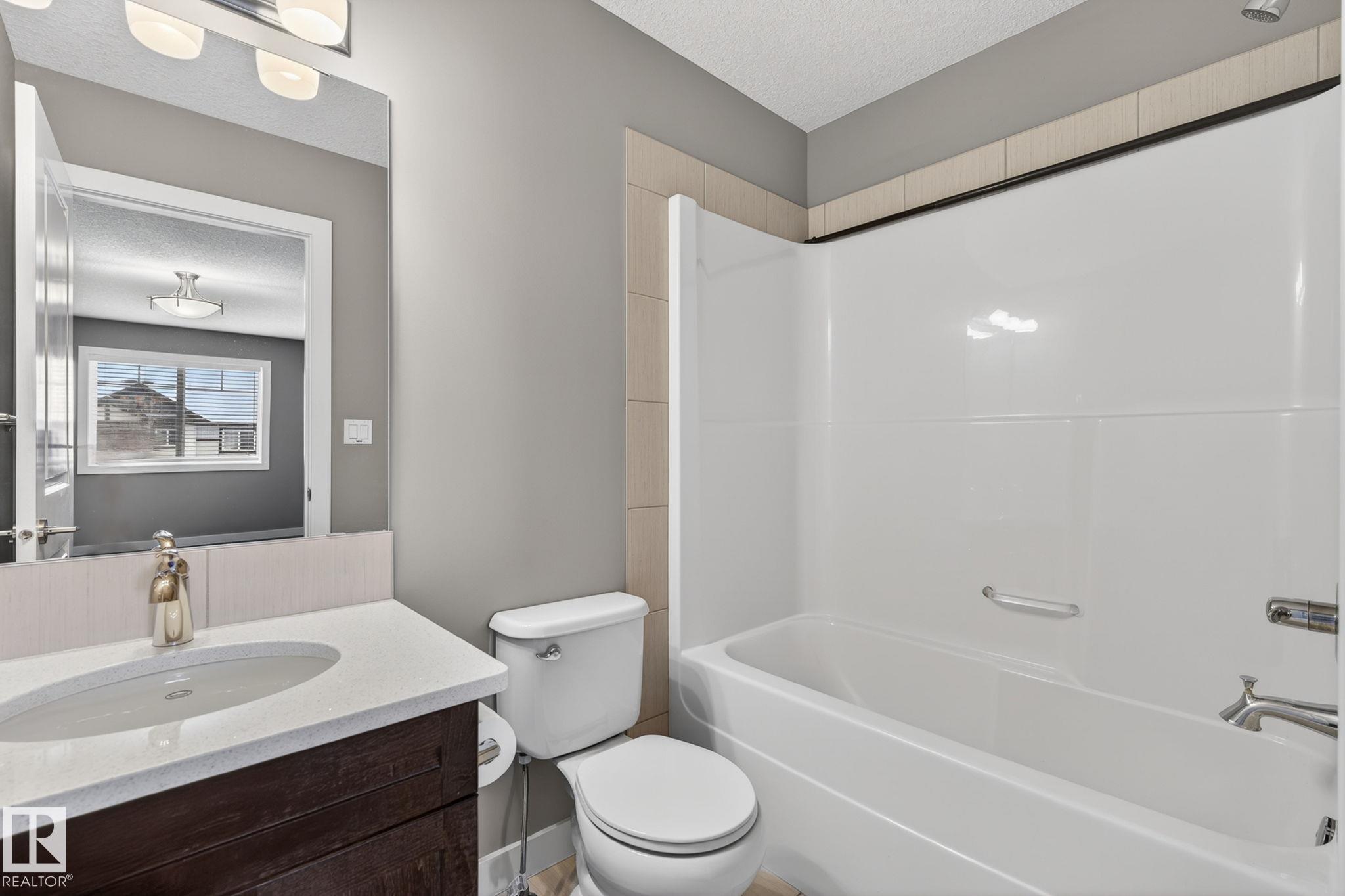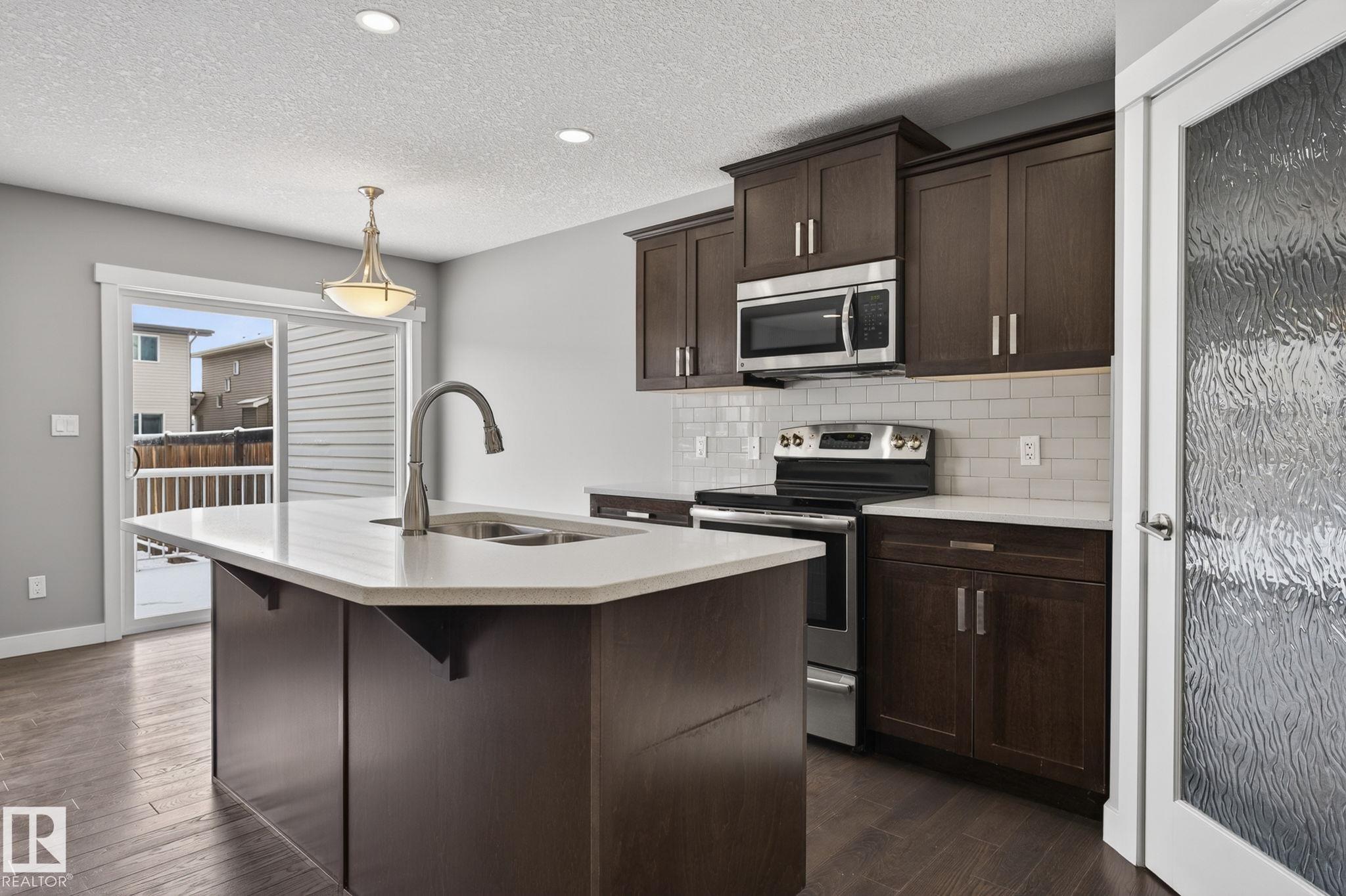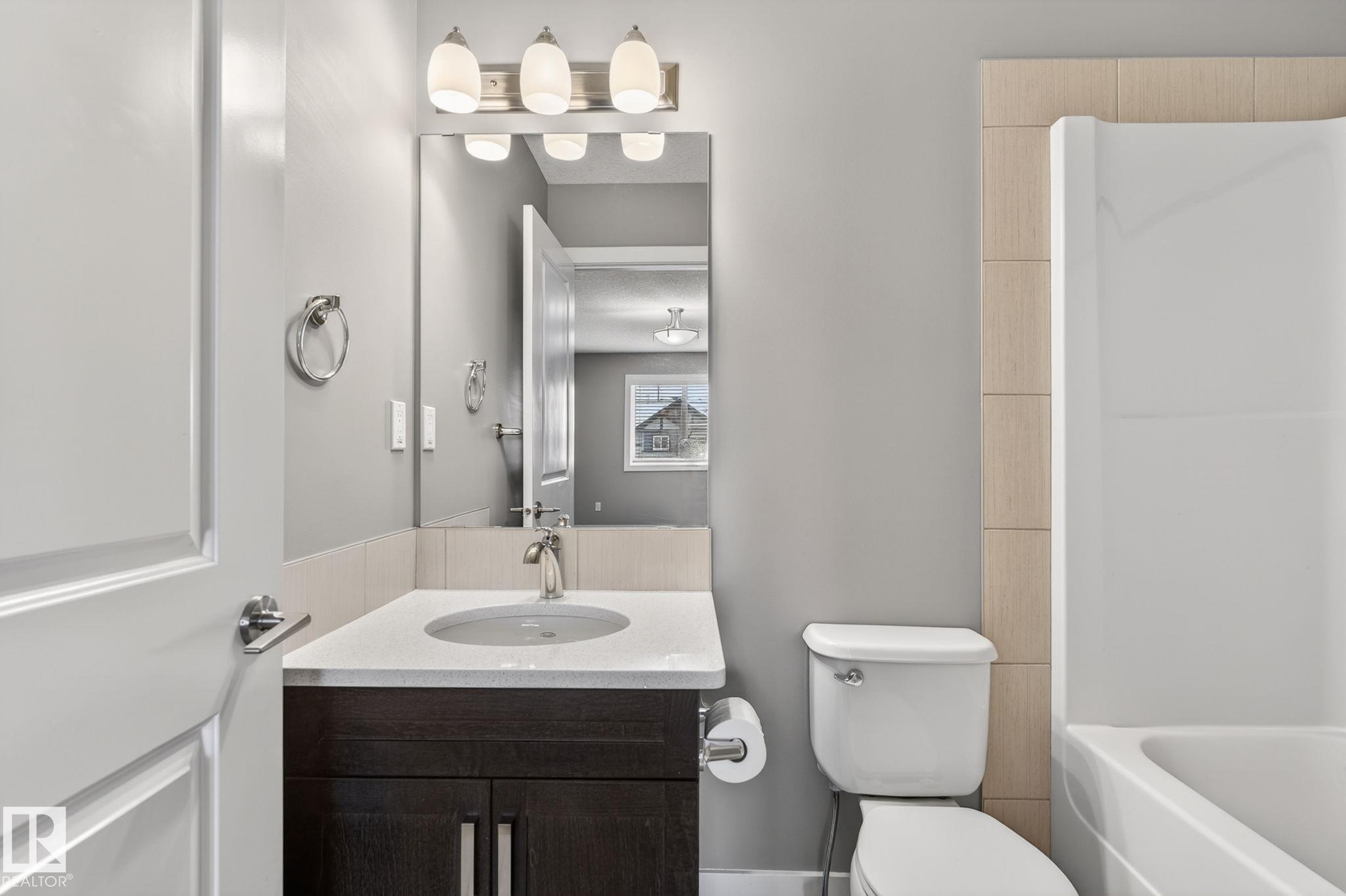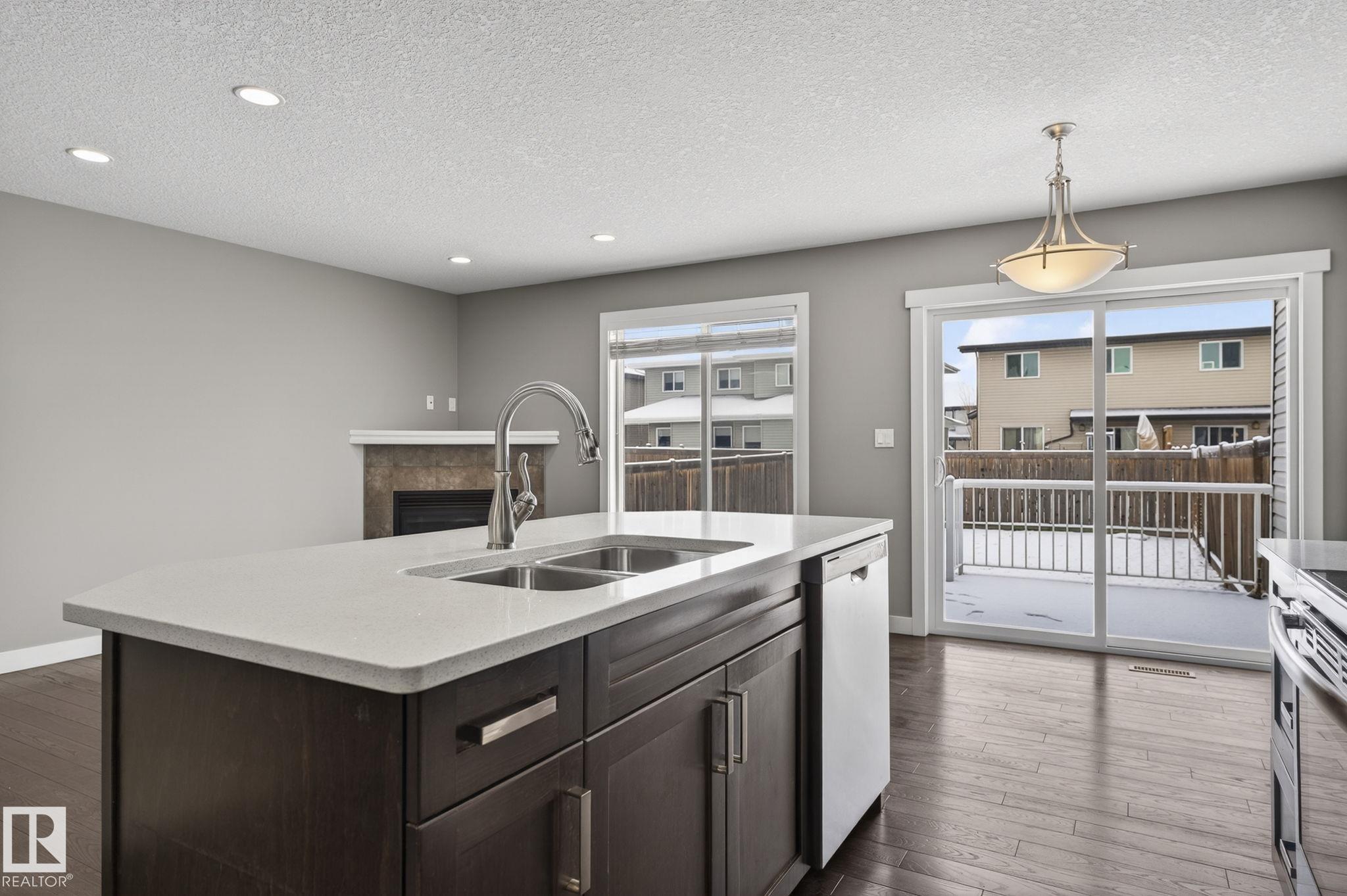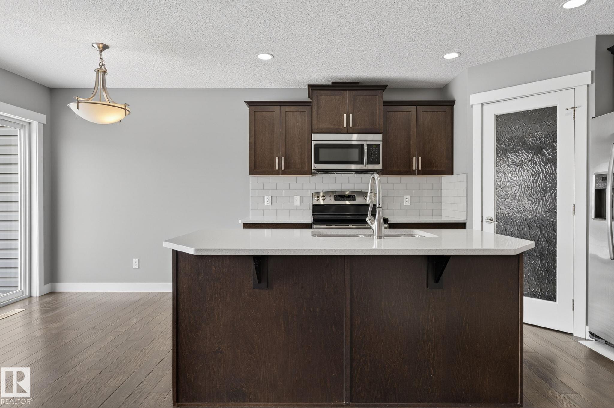 Discover the amazing value in this affordable, quality-built half duplex in Fort Saskatchewan! Freshly painted, this home features 3 bedrooms and 2.5 baths, highlighted by a huge primary suite with a walk-in closet and a 4-piece ensuite. The upper level also includes two additional bedrooms, a spacious full bathroom, and convenient laundry facilities. The main floor boasts an open-concept design with upgraded hardwood and ceramic floors, a cozy corner gas fireplace, and a stylish kitchen equipped with quartz countertops, a working island, and stainless steel appliances. Step out through patio doors to enjoy the great-sized, landscaped, and fenced yard. Additional features include an oversized single garage and a basement ready for future development. Perfect for families or investors, this home is walking distance to Tim Hortons, Southfort Ridge Playground and the Fort's renowned walking trails, and with easy access to HWY 21, any commute will be nearly seamless! Some photos virtually staged.
