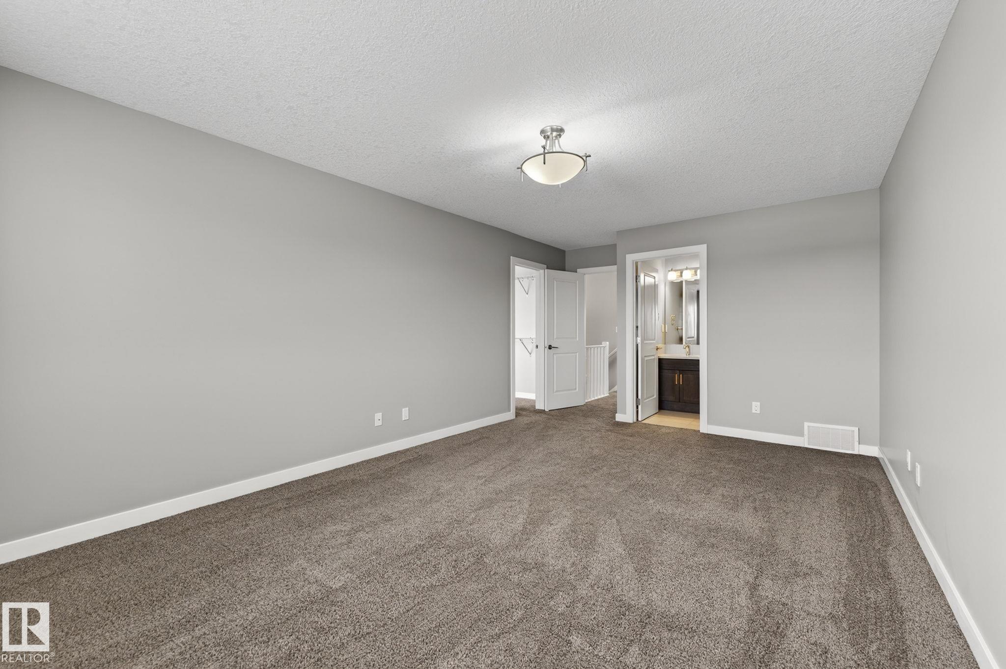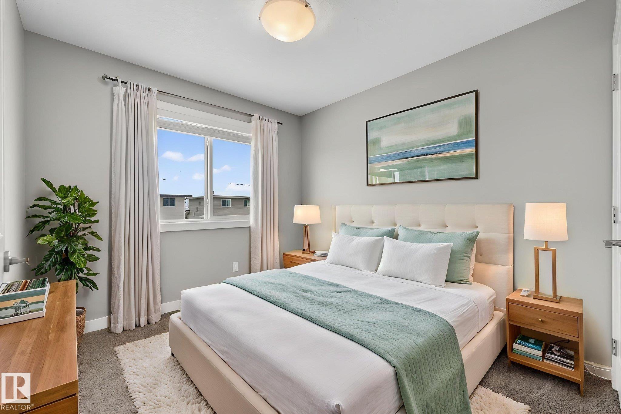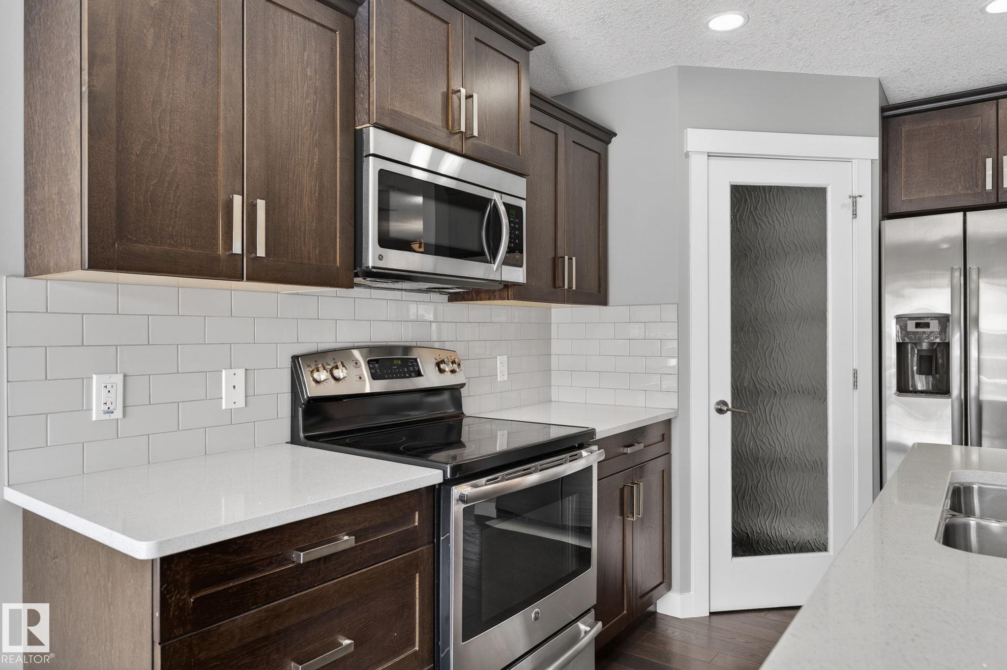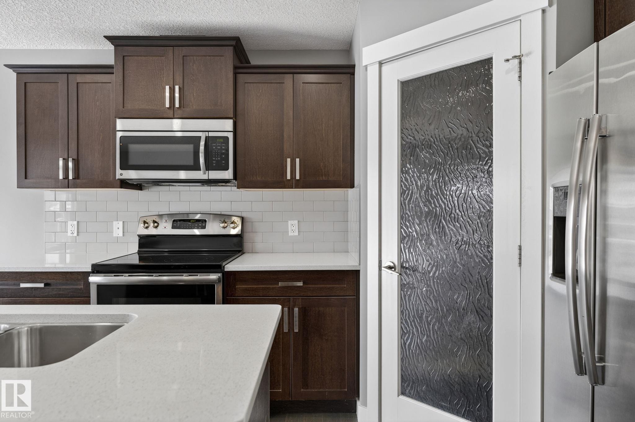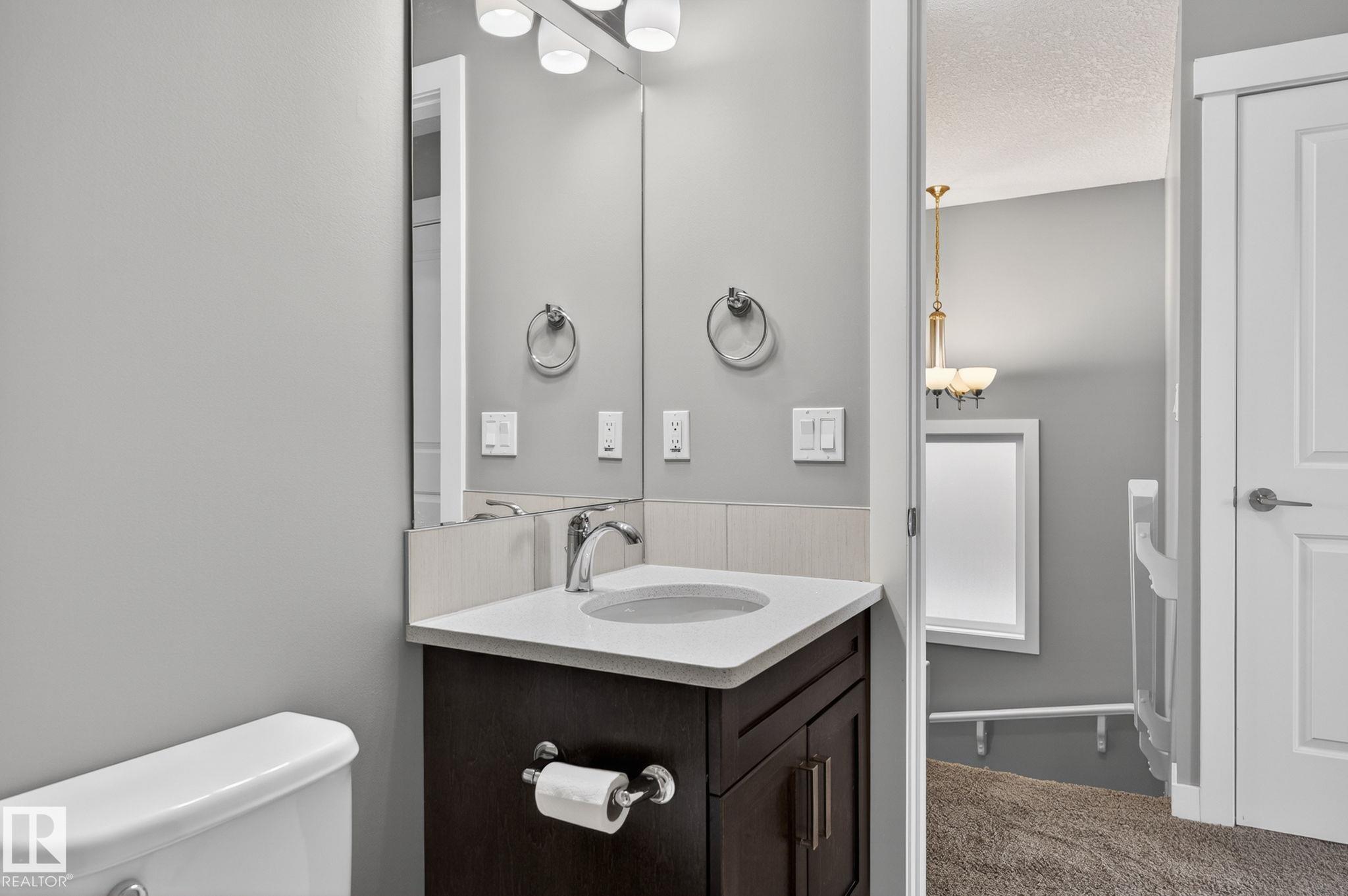 Discover the amazing value in this affordable, quality-built half duplex in Fort Saskatchewan! Freshly painted, this home features 3 bedrooms and 2.5 baths, highlighted by a huge primary suite with a walk-in closet and a 4-piece ensuite. The upper level also includes two additional bedrooms, a spacious full bathroom, and convenient laundry facilities. The main floor boasts an open-concept design with upgraded hardwood and ceramic floors, a cozy corner gas fireplace, and a stylish kitchen equipped with quartz countertops, a working island, and stainless steel appliances. Step out through patio doors to enjoy the great-sized, landscaped, and fenced yard. Additional features include an oversized single garage and a basement ready for future development. Perfect for families or investors, this home is walking distance to Tim Hortons, Southfort Ridge Playground and the Fort's renowned walking trails, and with easy access to HWY 21, any commute will be nearly seamless! Some photos virtually staged.