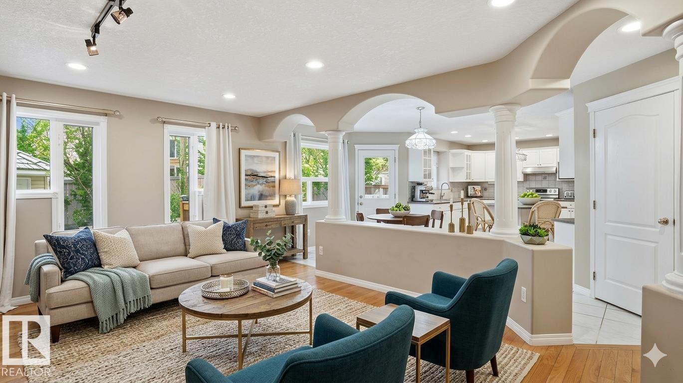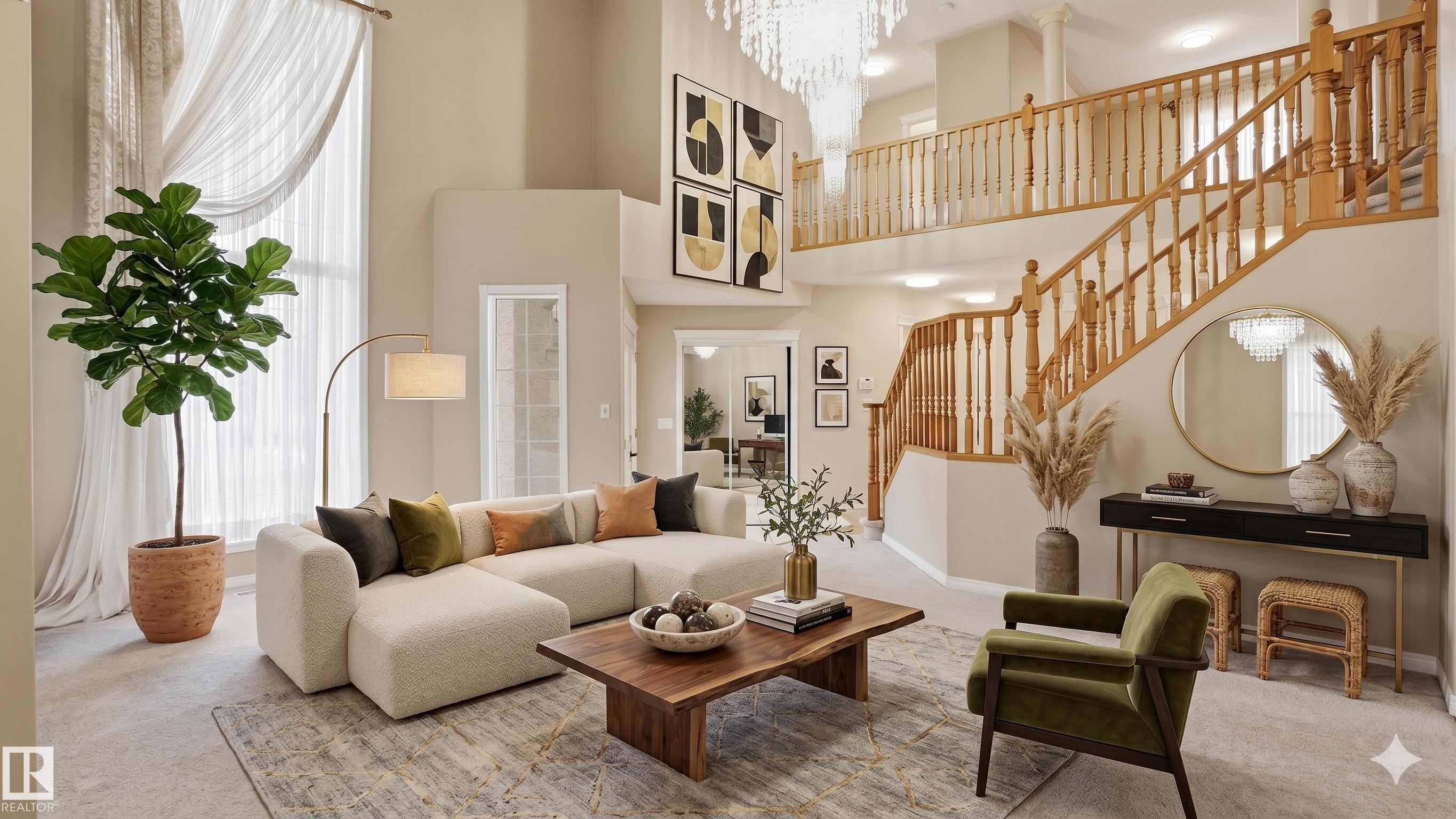 ORMSBY PLACE 2 STOREY! This beautifully classic family home offers 2585 SQ FT / 240.16 m2. This property showcases a spacious LIVING ROOM WITH 18 FT ceilings, a bright modern kitchen with an island, dining room, & family room. The elegant CURVED STAIRCASE leads to the upper level with the primary bedroom featuring a 5 piece ensuite, a walk in closet, a 3 sided fireplace & private balcony. Completing the upper level are 2 additional bedrooms, a den/loft and 4 piece family bath. THE BASEMENT IS FULLY FINISHED with 2 additional bedrooms, a 2 piece & 3 piece bath, a 2nd family room & utility room. Total of three fireplaces! Park in the double attached garage with direct access to main floor & basement. Excellent location offers easy access to terrific schools, great shopping & dining, recreation facilities, public TRANSPORTATION AND MAJOR roadways.