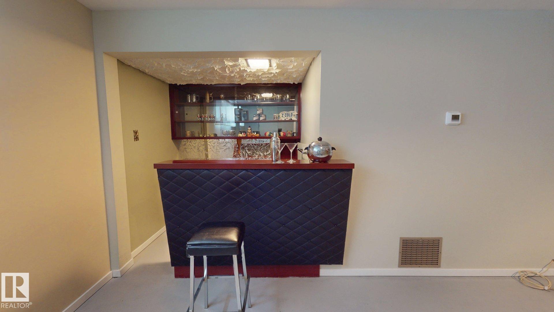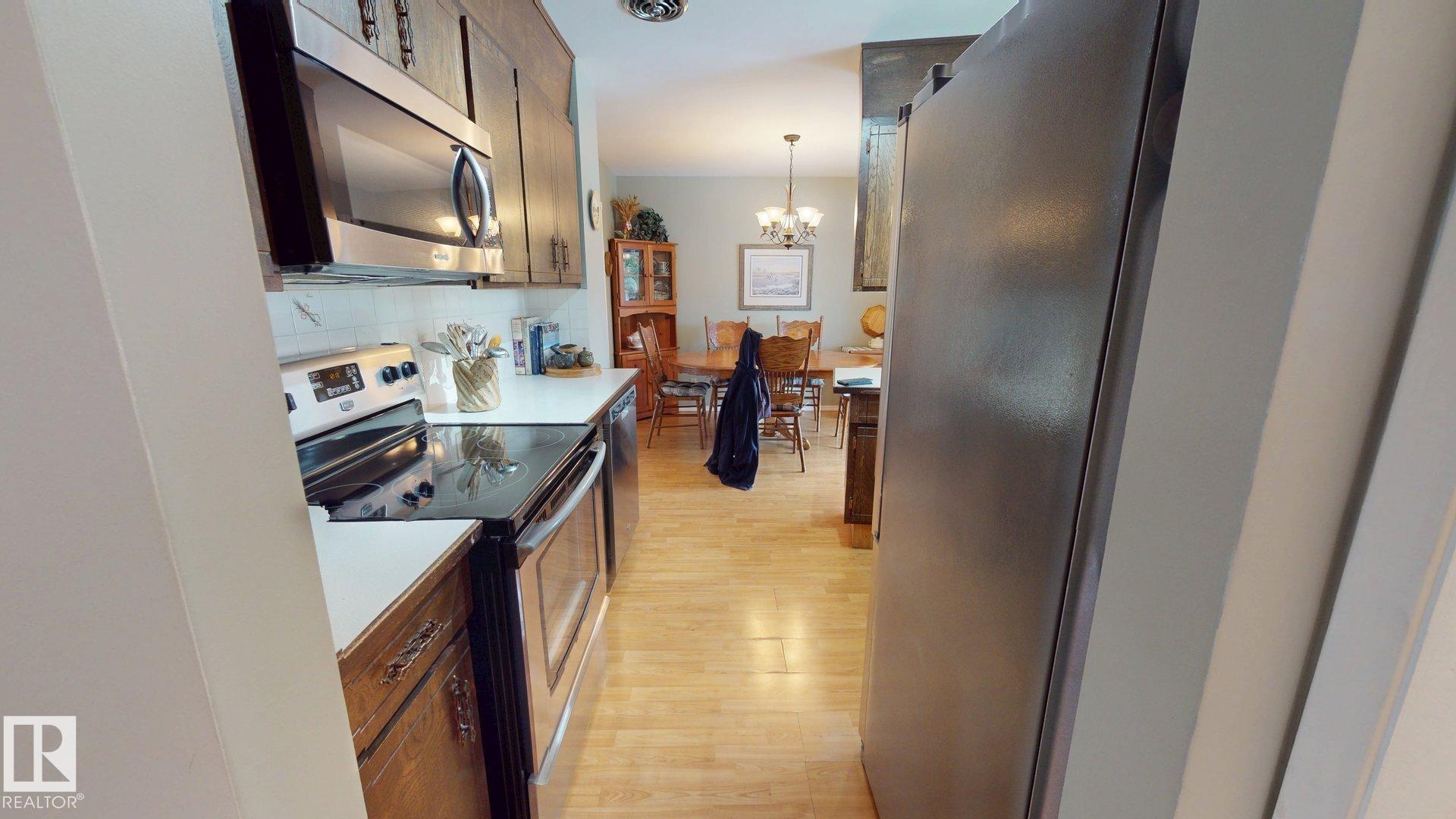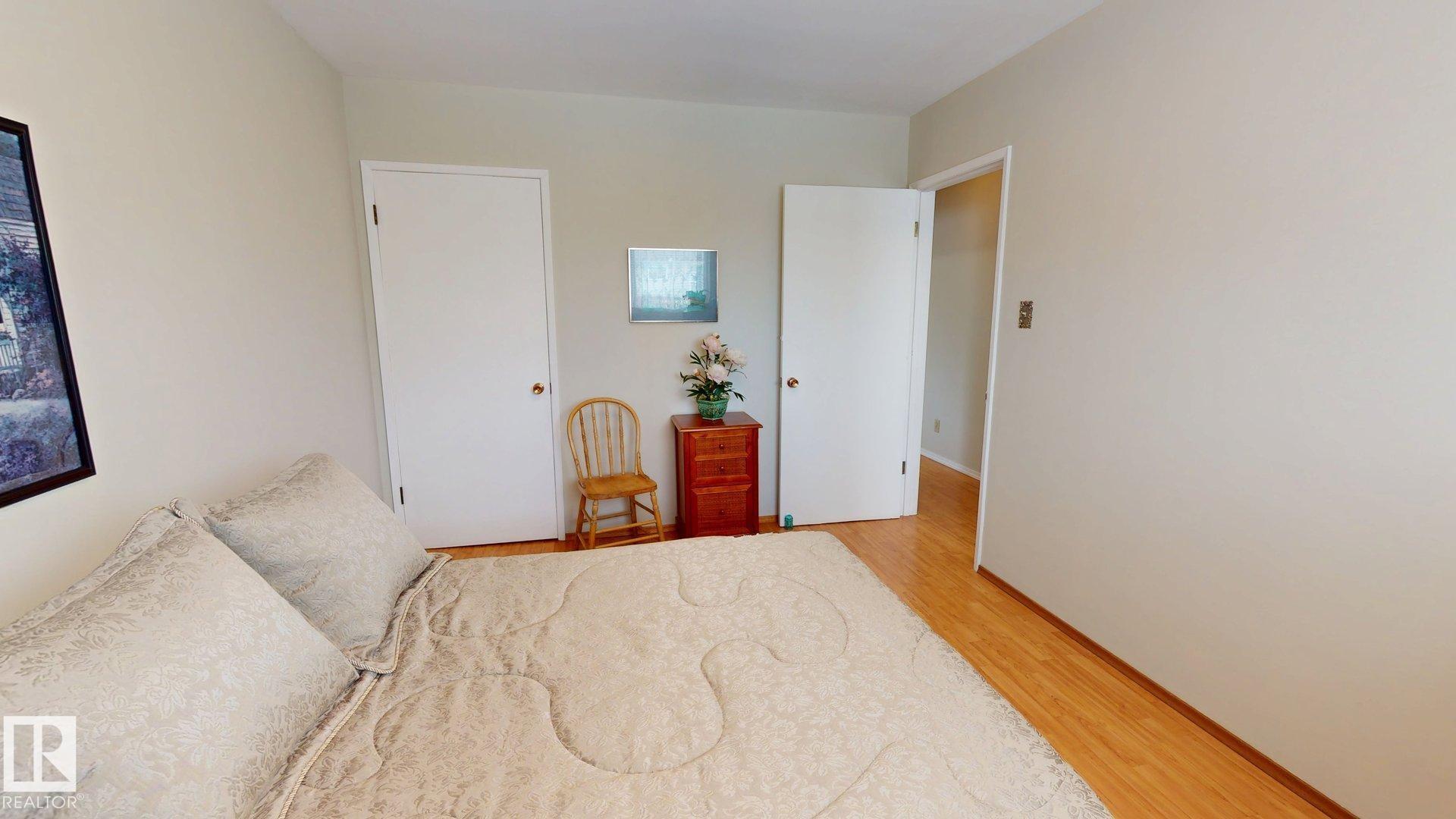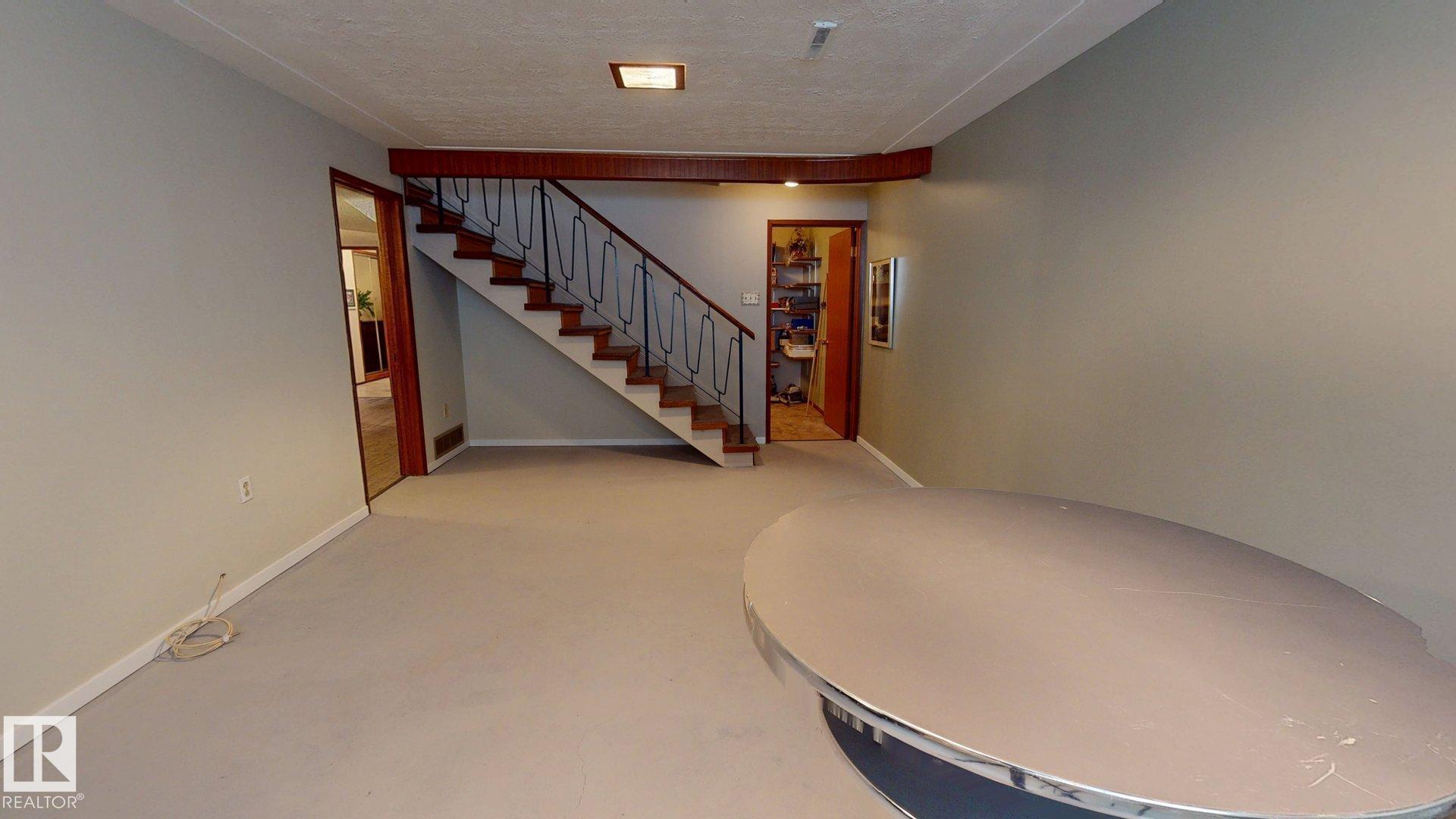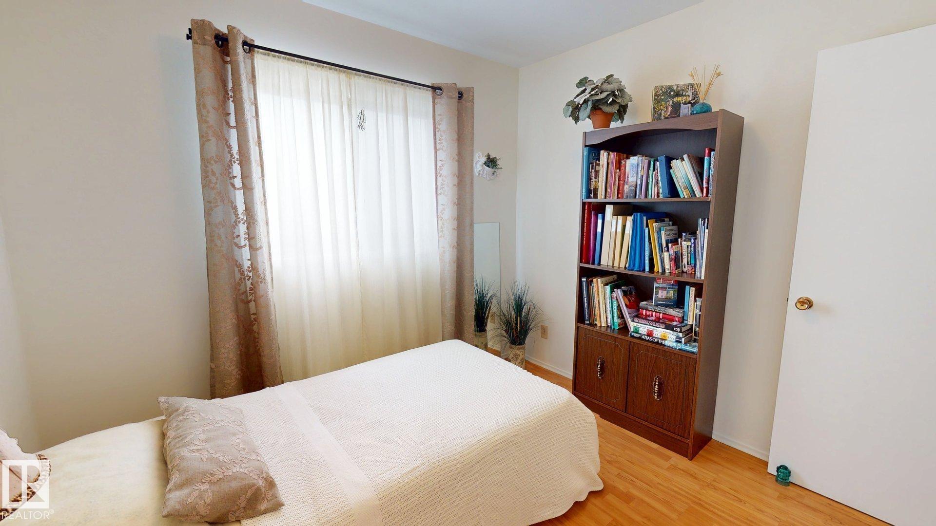 Spacious home, on a pie-shaped lot in a quiet, mature neighbourhood. Features a single attached garage and double detached garage with two driveways, accommodating up to 8 vehicles. The main floor includes an eat-in kitchen with stainless steel appliances, family room with French doors, 3 bedrooms, 3pc bath, and den with garage access. The fully finished lower level offers a recreation room with wet bar, kitchenette, bedroom, 3pc bath, laundry area, storage, and bonus room. Exterior includes new roof (Aug 2024), aluminum siding, stucco, metal fencing, covered deck & patio, and gas BBQ hookup. Landscaped yard with garden, fruit trees, and award-winning curb appeal. Close to schools, shopping, and transit.