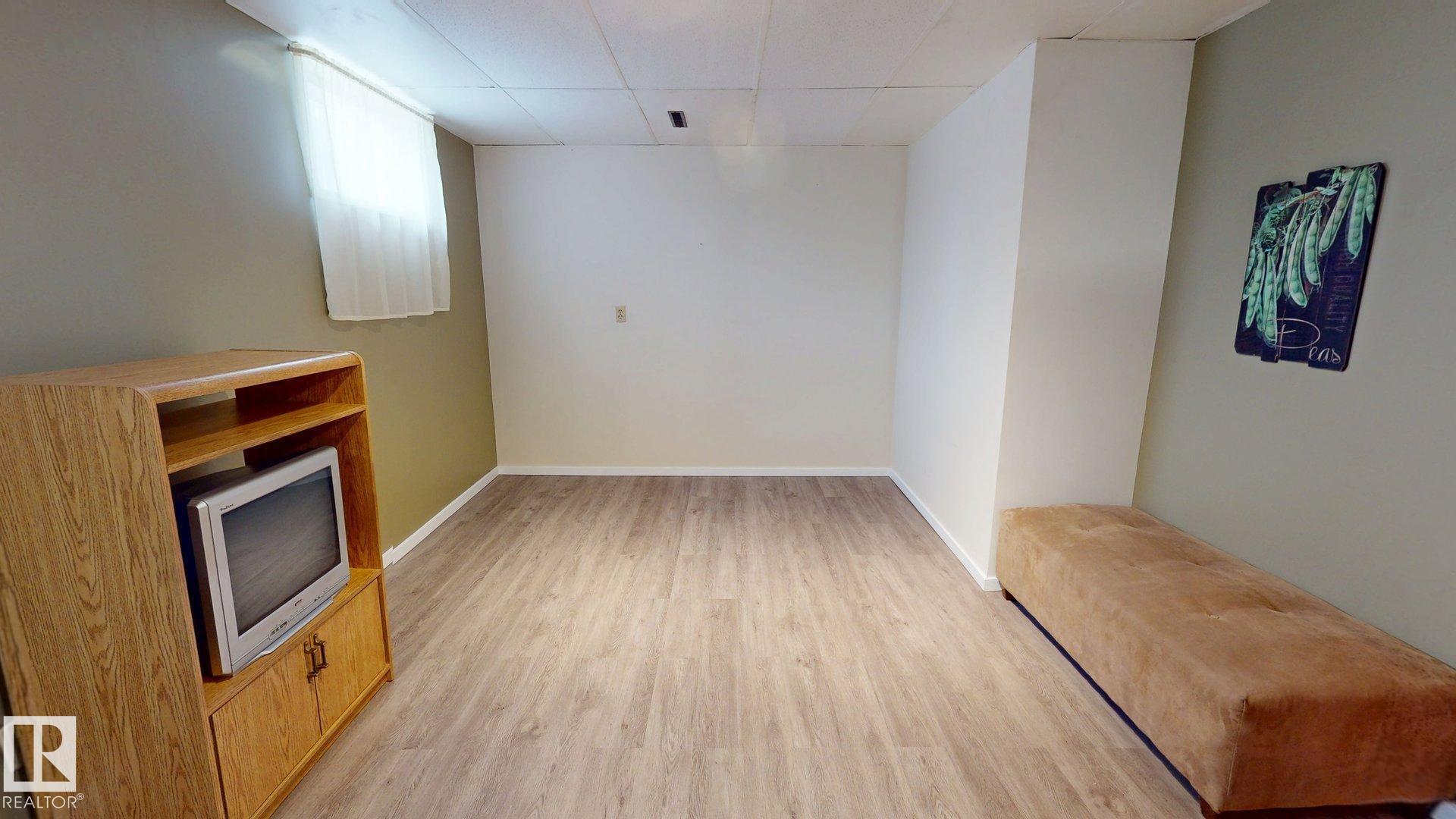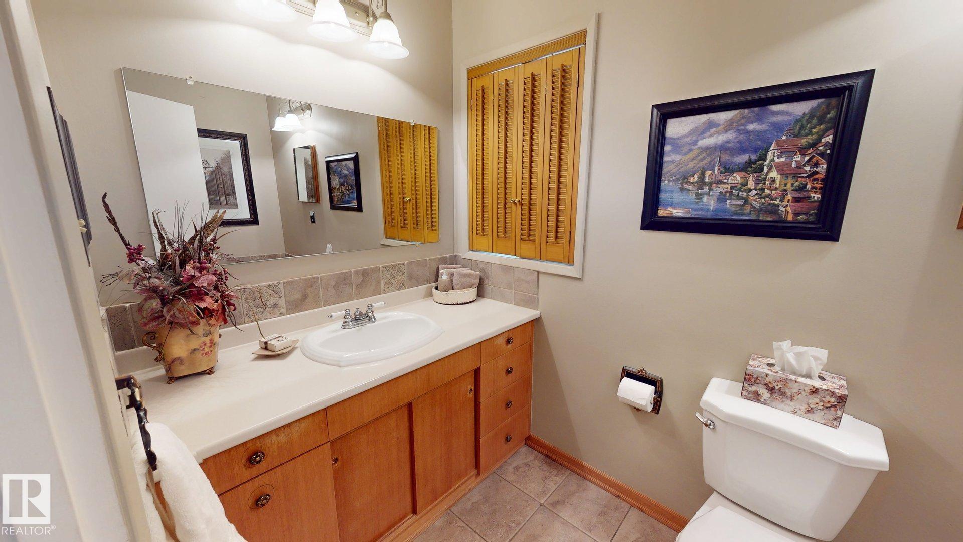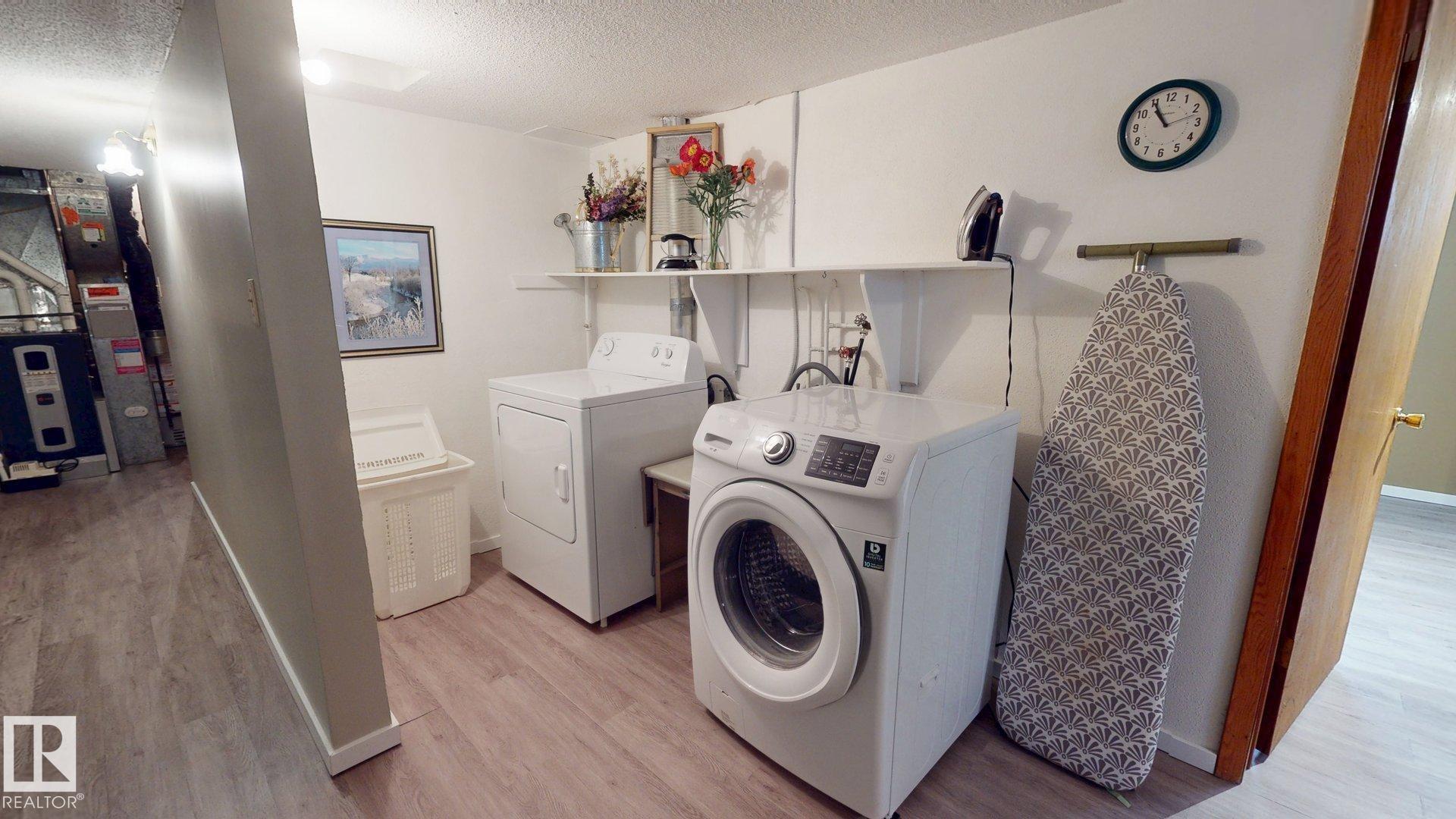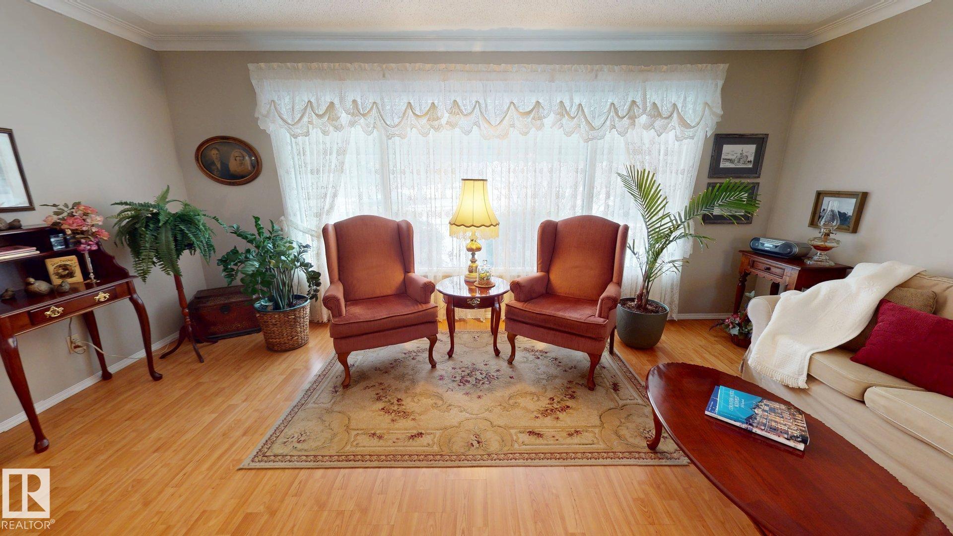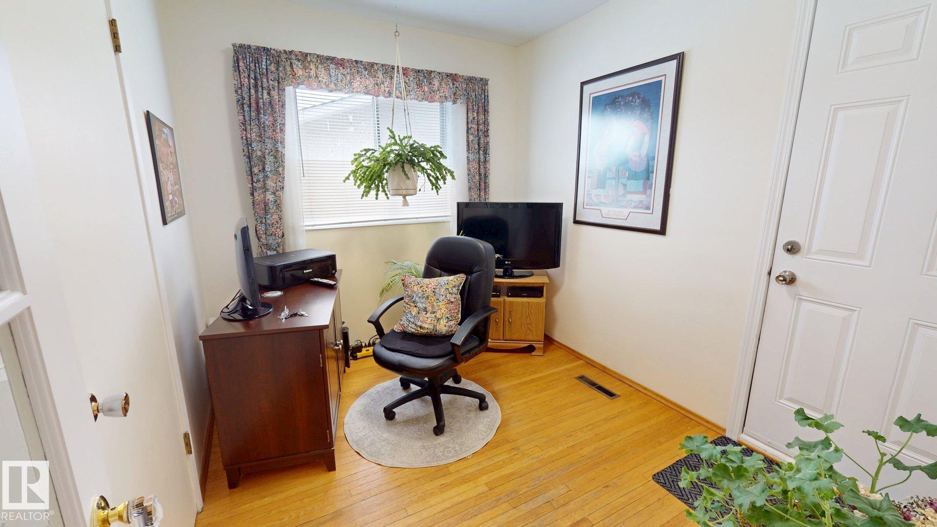 Spacious home, on a pie-shaped lot in a quiet, mature neighbourhood. Features a single attached garage and double detached garage with two driveways, accommodating up to 8 vehicles. The main floor includes an eat-in kitchen with stainless steel appliances, family room with French doors, 3 bedrooms, 3pc bath, and den with garage access. The fully finished lower level offers a recreation room with wet bar, kitchenette, bedroom, 3pc bath, laundry area, storage, and bonus room. Exterior includes new roof (Aug 2024), aluminum siding, stucco, metal fencing, covered deck & patio, and gas BBQ hookup. Landscaped yard with garden, fruit trees, and award-winning curb appeal. Close to schools, shopping, and transit.