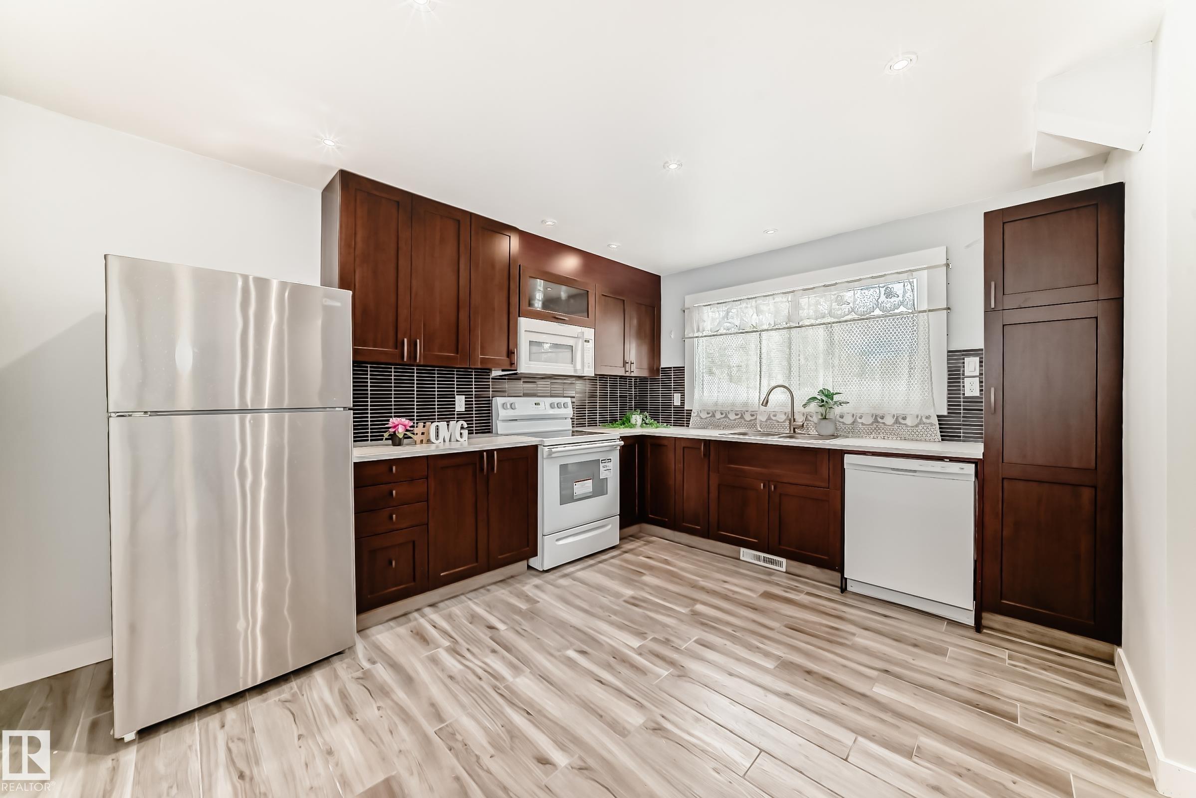 Welcome to this fantastic 2-storey home in the convenient community of Beacon Heights! Offering 3 bedrooms and 1.5 bathrooms, this carpet-free home is perfect for families or investors. Main floor features a bright, sun-filled living room with stunning laminate flooring throughout. The dining area adjacent to a spacious kitchen w modern cabinetry, plus a 2-pc bathroom. Upstairs, you?ll find three good-sized bedrooms, all finished w newer floorings, along with a 4-pc bathroom. Back door entrance leads to the basement, c/w a laundry/utility rm & plenty of space for future development. Enjoy the landscaped & fully fenced backyard. Recent upgrades include: kitchen cabinet /countertop/dishwasher/microwave hood fan/shingles (approx. 10.5 years)/newer fridge/painting/kitchen flooring (3.5 years)/newer windows & 100-amp electrical panel/updated bedroom flooring/upper bathroom/bathtube/granite counter/doors/entire house w LED lightings. Easy access to school/playground/public transit & all amenities. Don't miss!