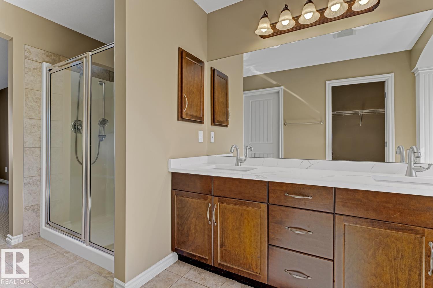 4 BEDS | 2.5 BATHS | HOME OFFICE | 3-CAR GARAGE |LARGE LOT | QUIET CUL-DE-SAC in TERWILLEGAR GARDENS. This beautiful well maintained home features neutral décor and recent upgrades include premium Quartz countertops, tile backsplash, plumbing fixtures, washer, dryer and fridge. The main floor is bright and open with a well-appointed kitchen, family room, formal living/dining rooms, and a large den. This home also features hardwood flooring, gorgeous dark maple kitchen with stainless steel appliances, corner pantry and a large island. Central A/C unit. Oversized family room features a gas fireplace and has lots of windows for natural lighting. A large nook leads onto a big deck for outdoor summer entertaining. Iron spindles and maple railing leads to the four large upper bedrooms. The spacious primary suite boasts a large walk-in closet and a spa like 5 piece ensuite including an oversized shower, his/hers sinks & a grand soaker framed by two elegant pillars.